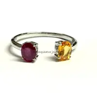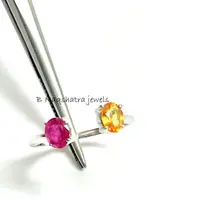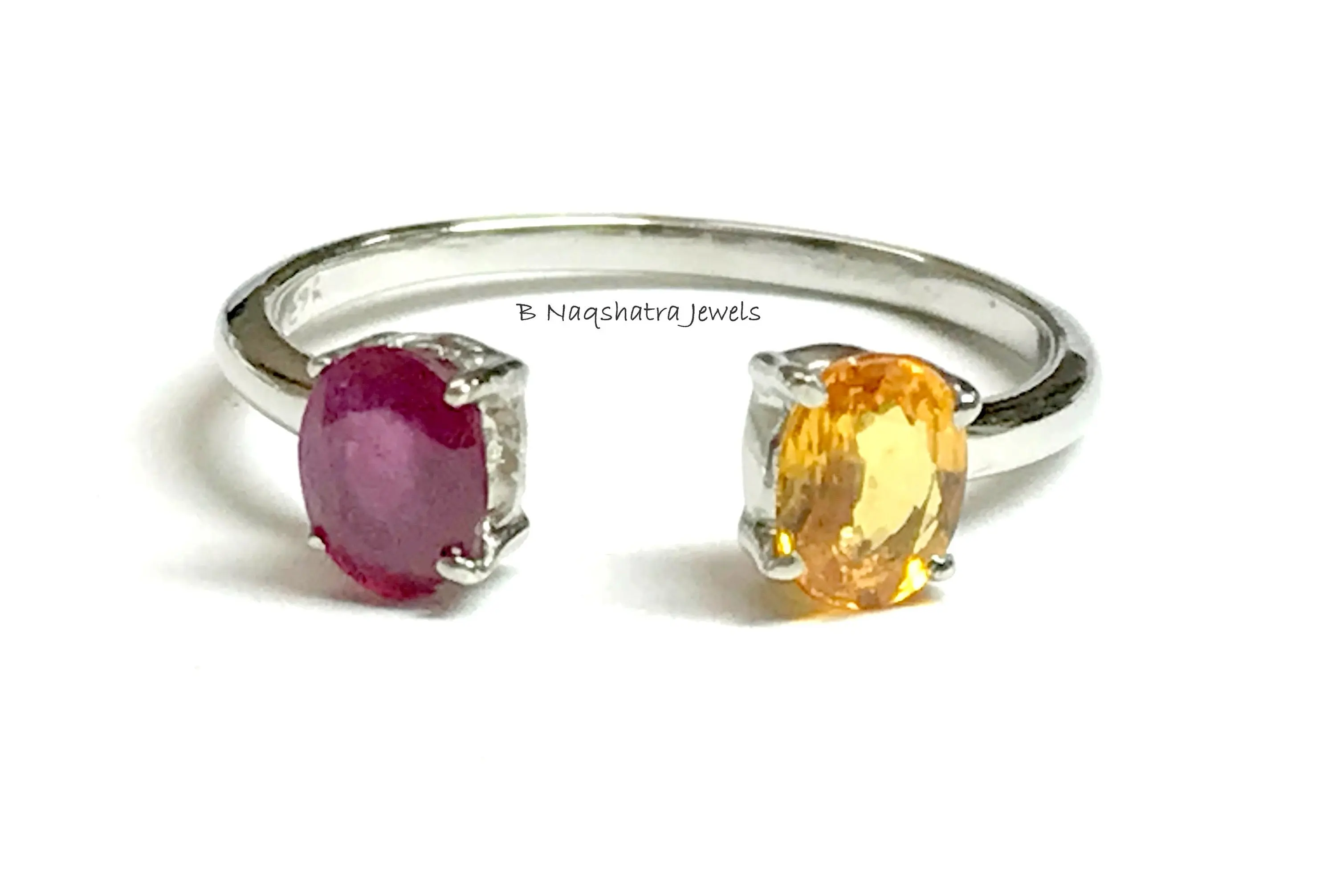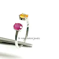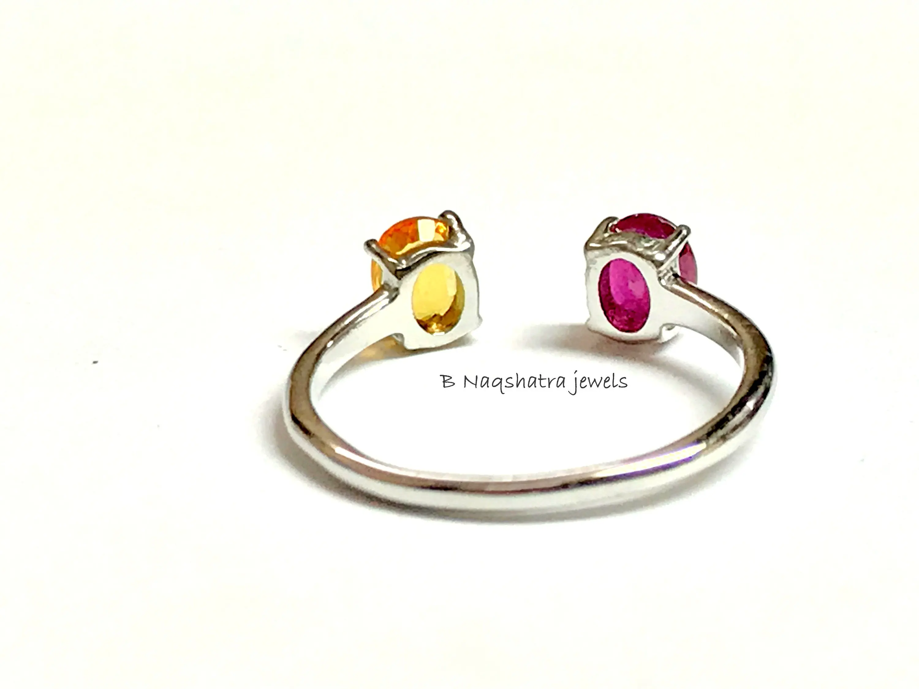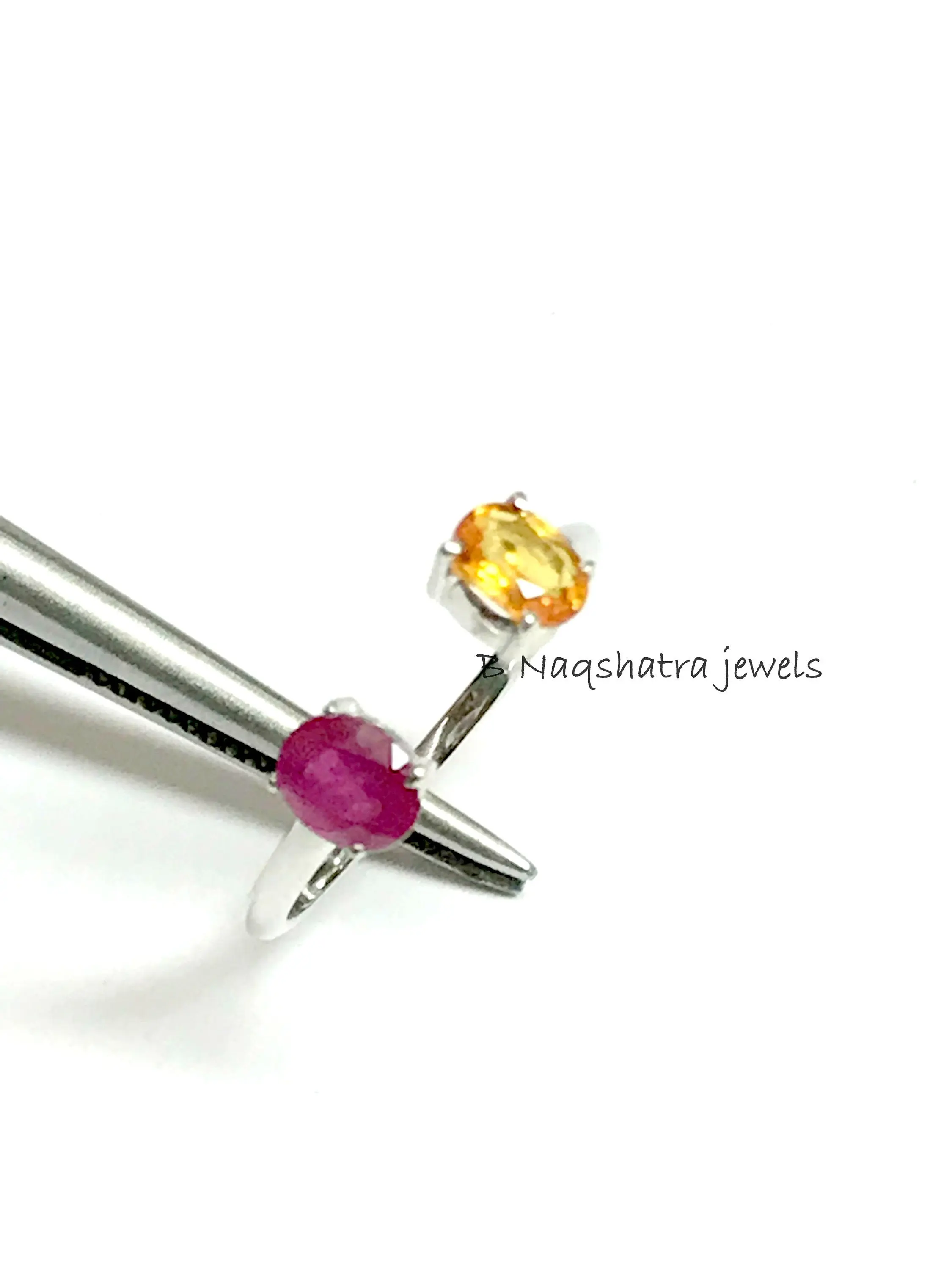 RUBY YELLOW SAPPHIRE Dainty Silver Ring , Red Ruby ,sapphires , Tiny gemstones , Best Gift For loved Ones .............