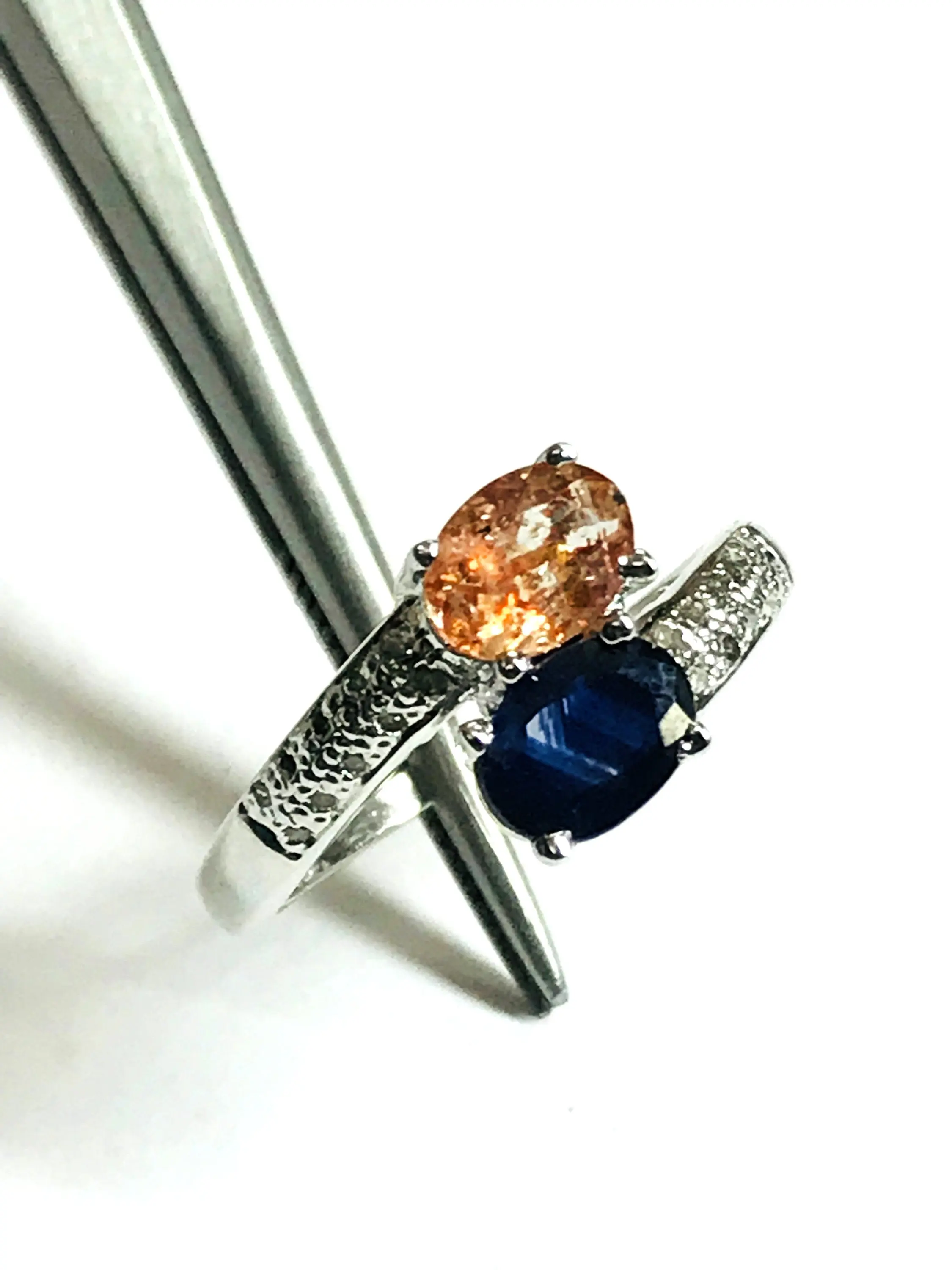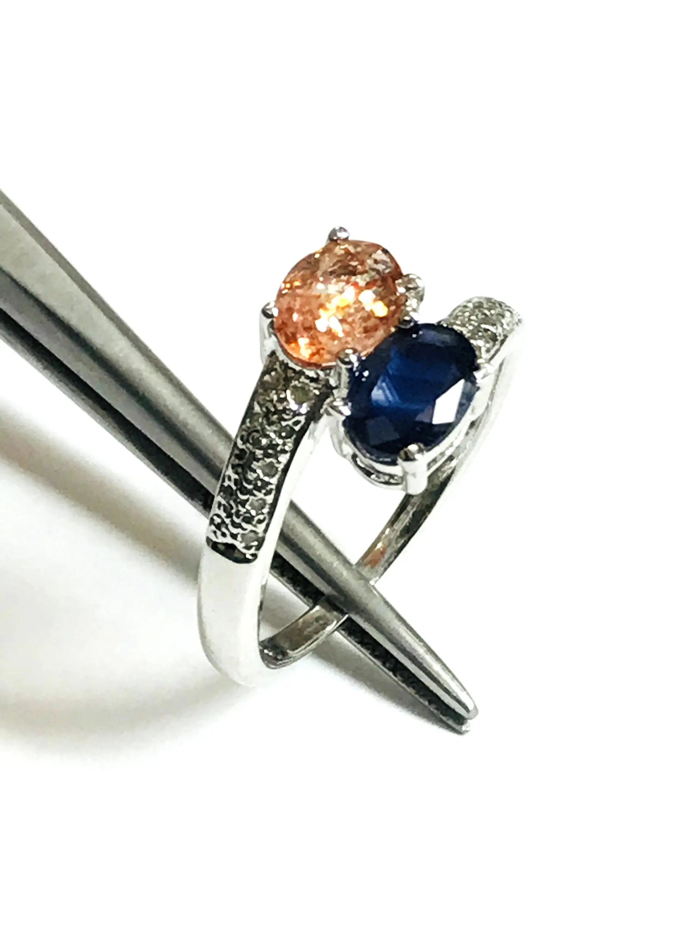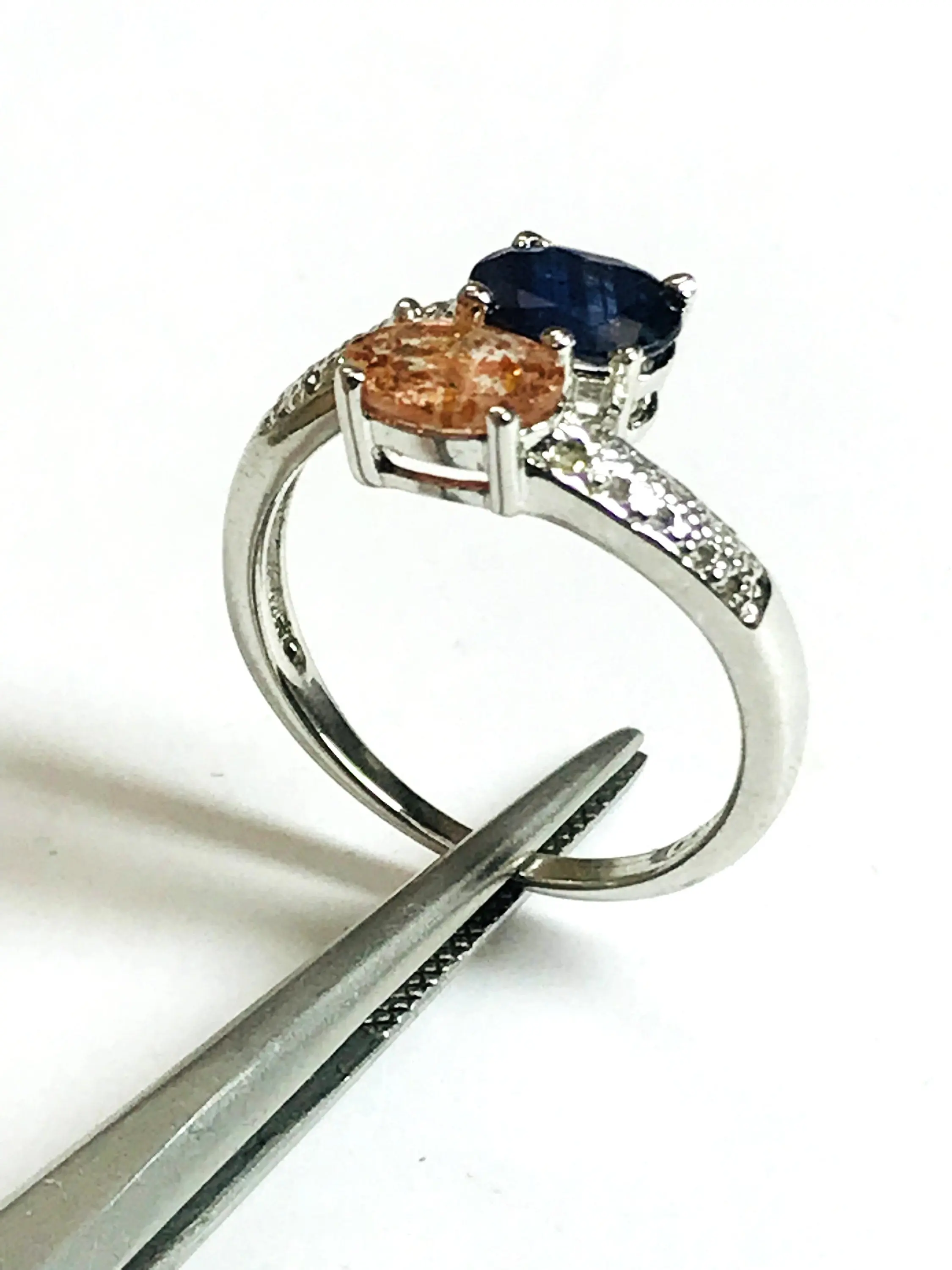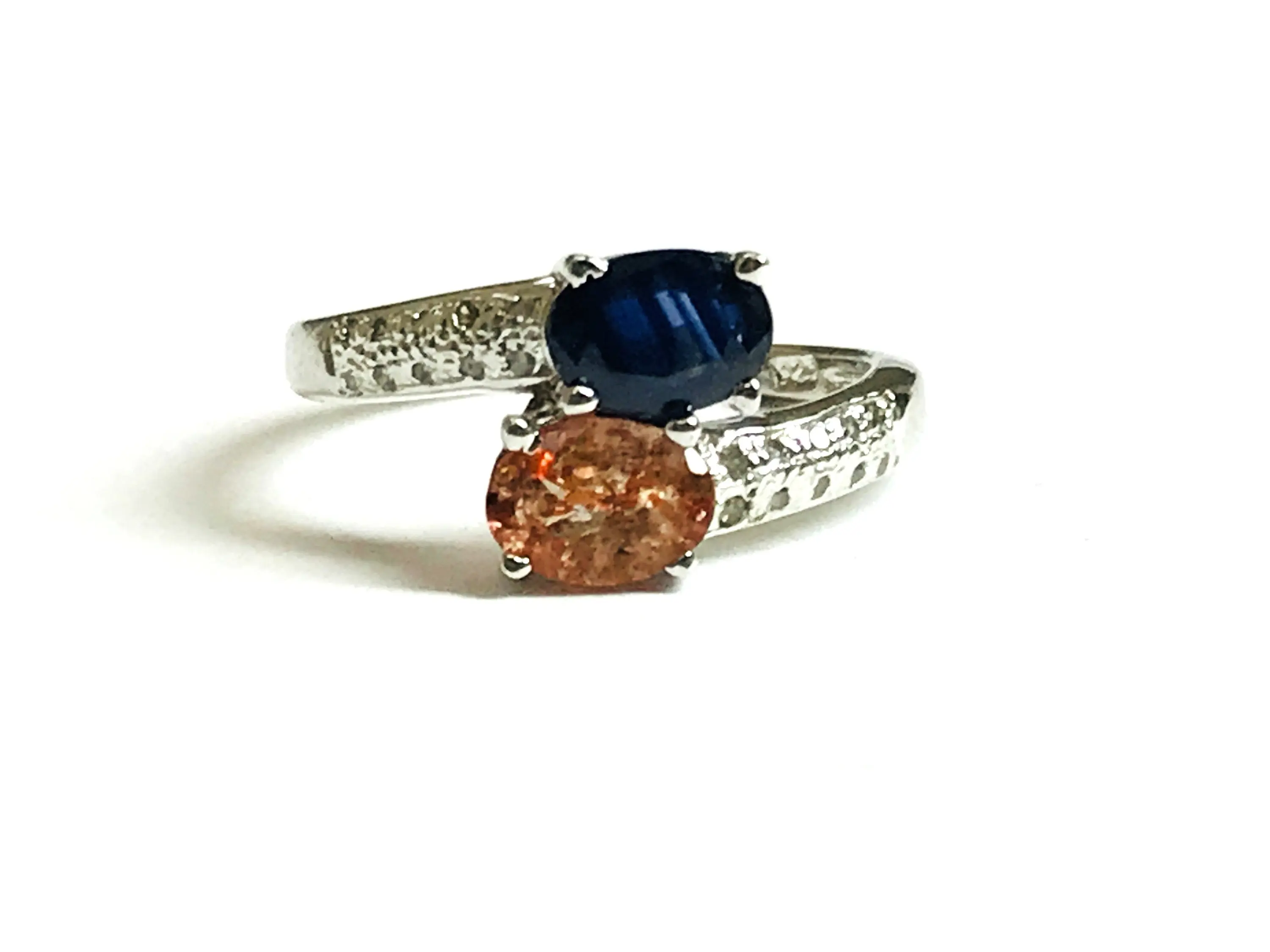SAPPHIRE SUNSTONE DIAMOND Bypass Engagement Ring, Blue sapphire Oval , Multistone ring , Beautiful Piece for Gift to loved ones ....