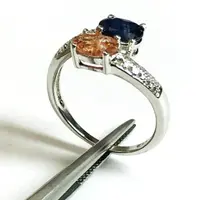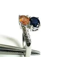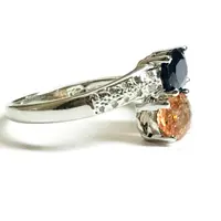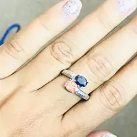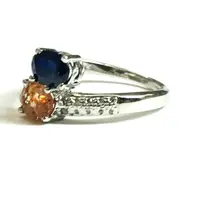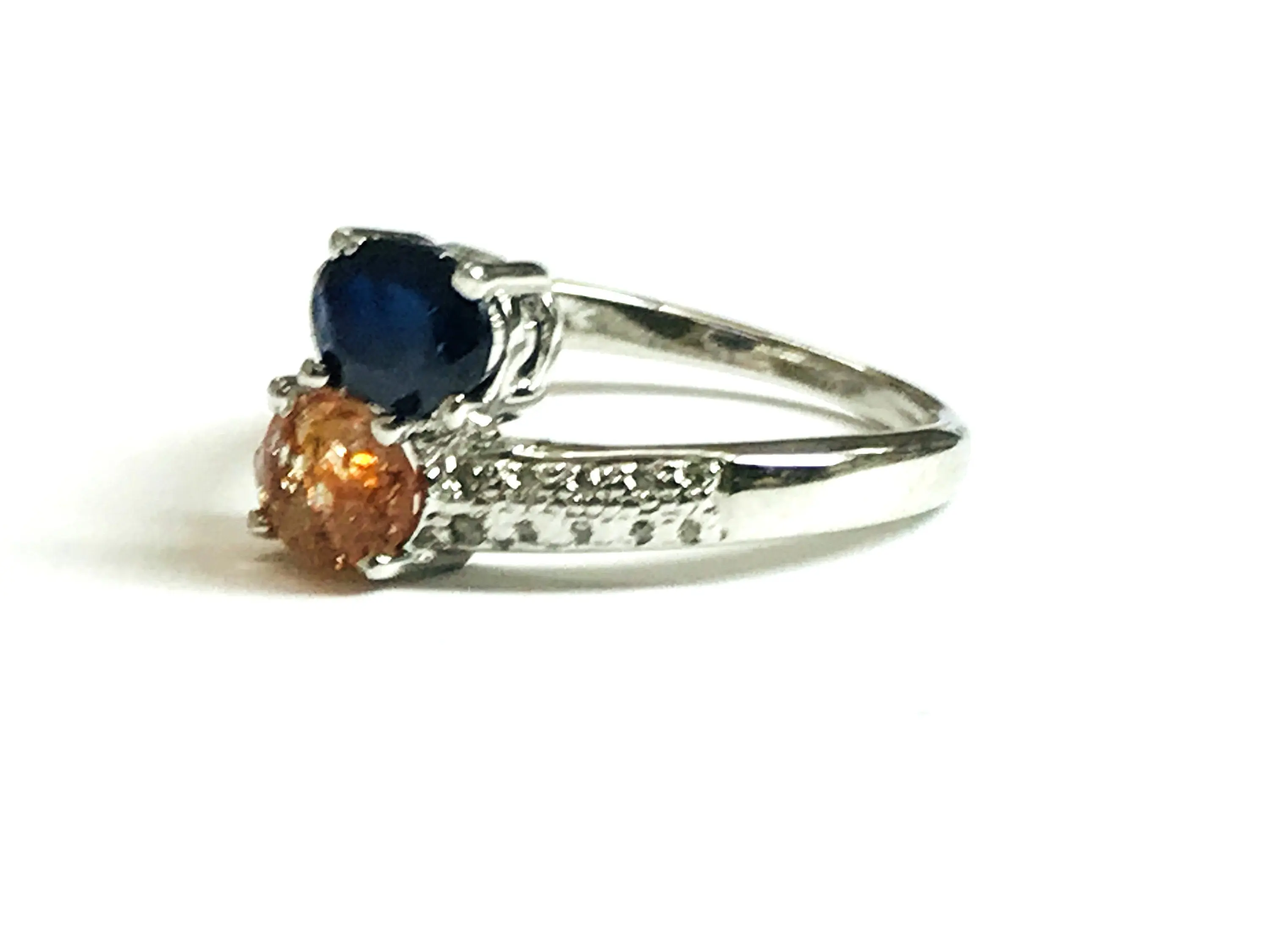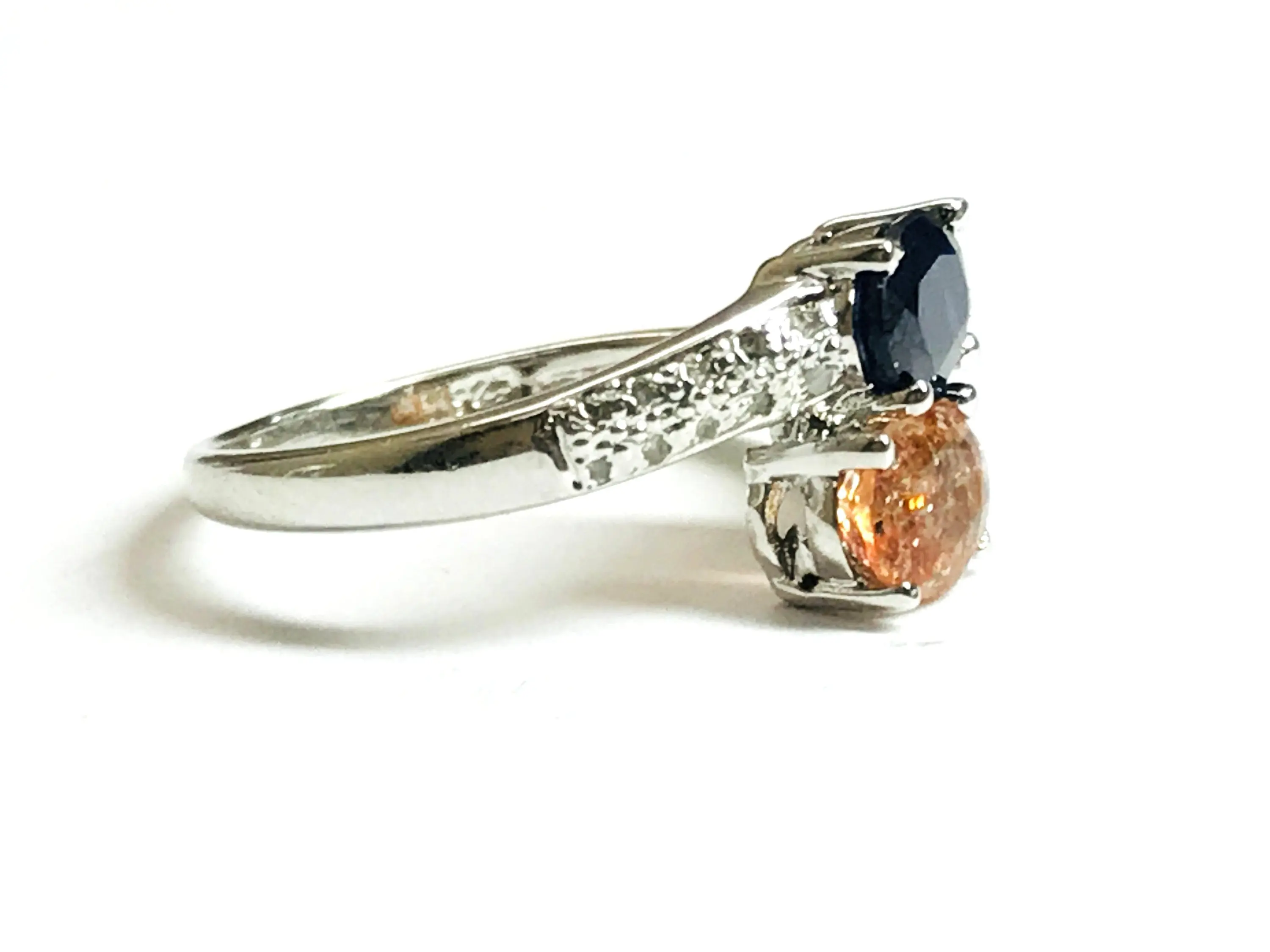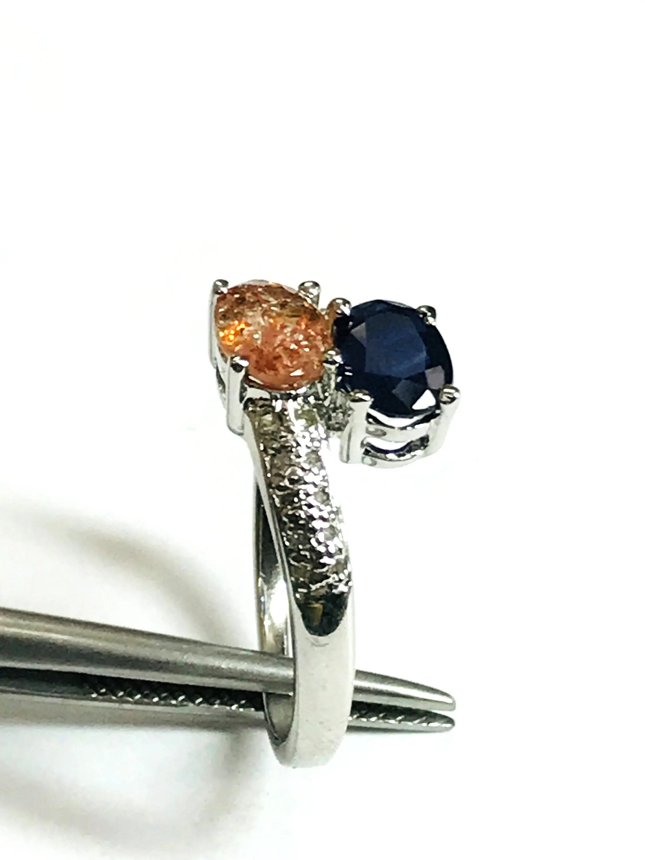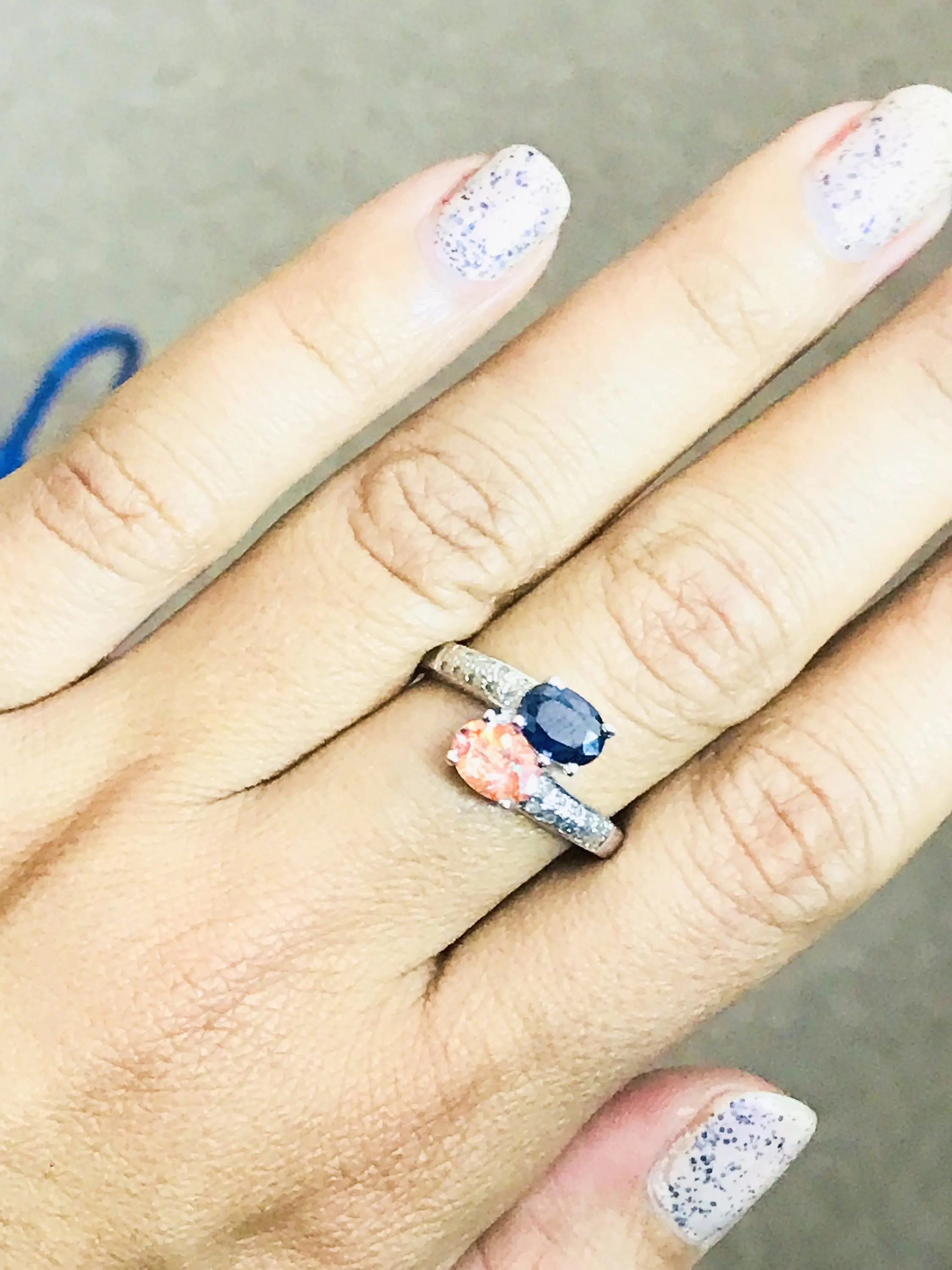 SAPPHIRE SUNSTONE DIAMOND Bypass Engagement Ring, Blue sapphire Oval , Multistone ring , Beautiful Piece for Gift to loved ones ....