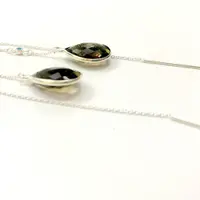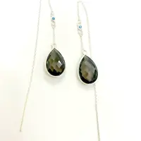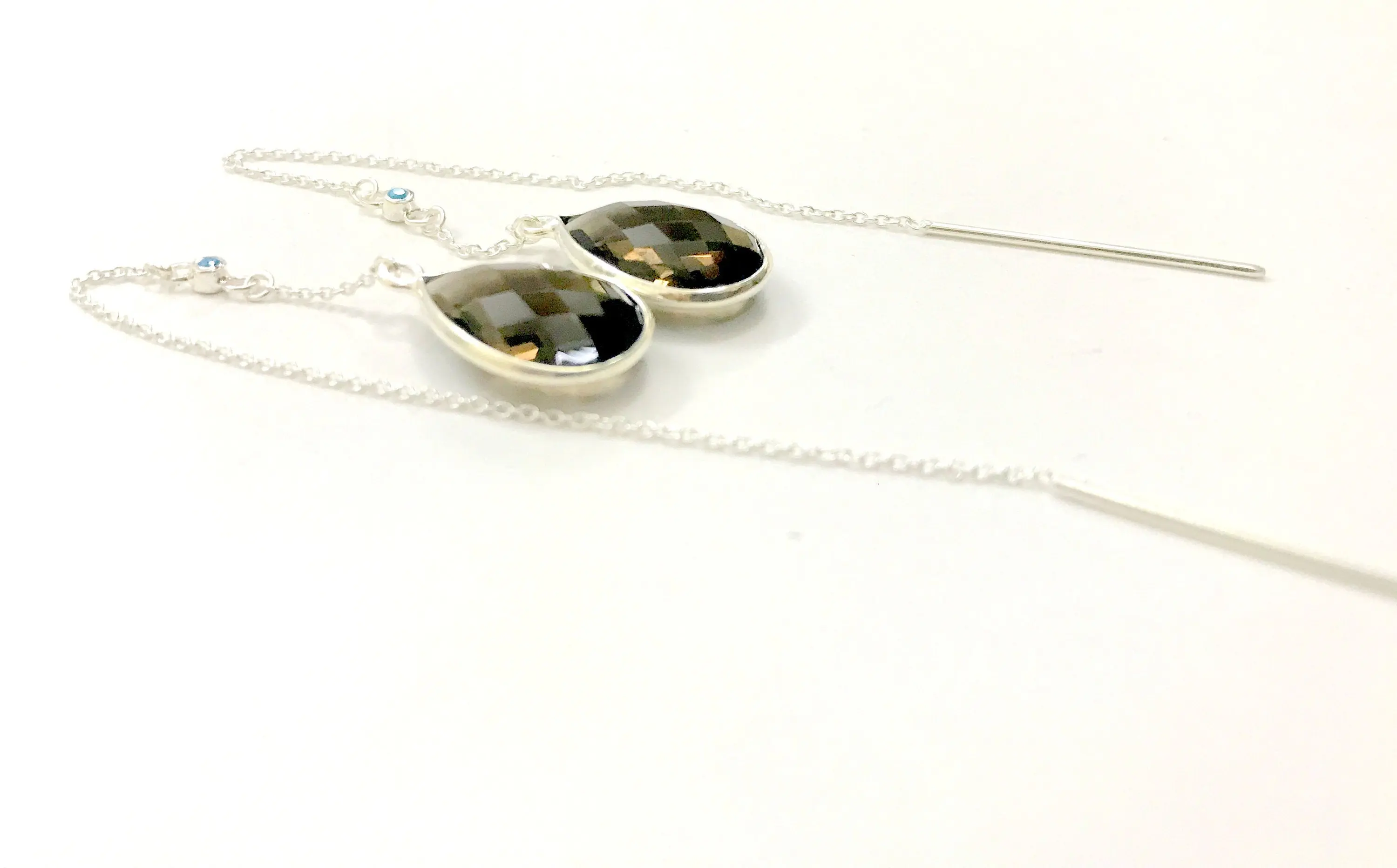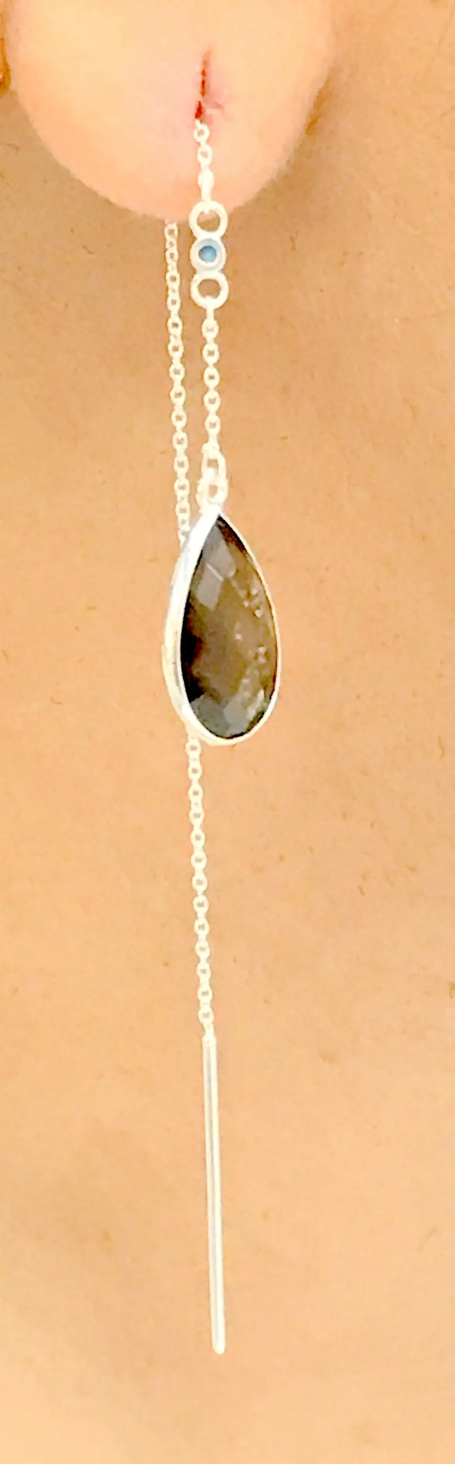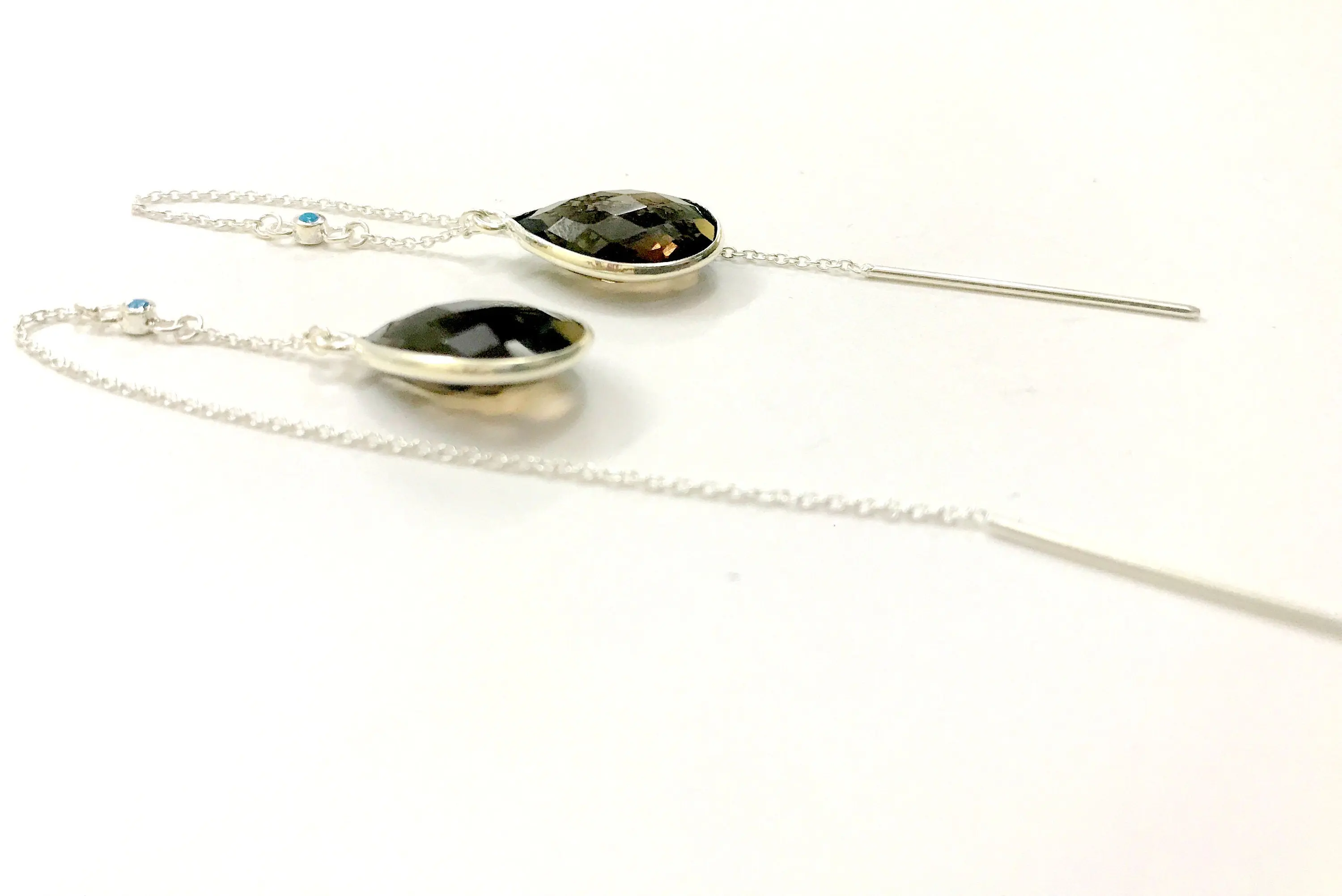 SMOKEY TOPAZ THREADER Earrings,Smokey Quartz, 925 Silver long chain with small turquoise studded, Ear Pencil ..