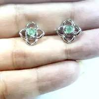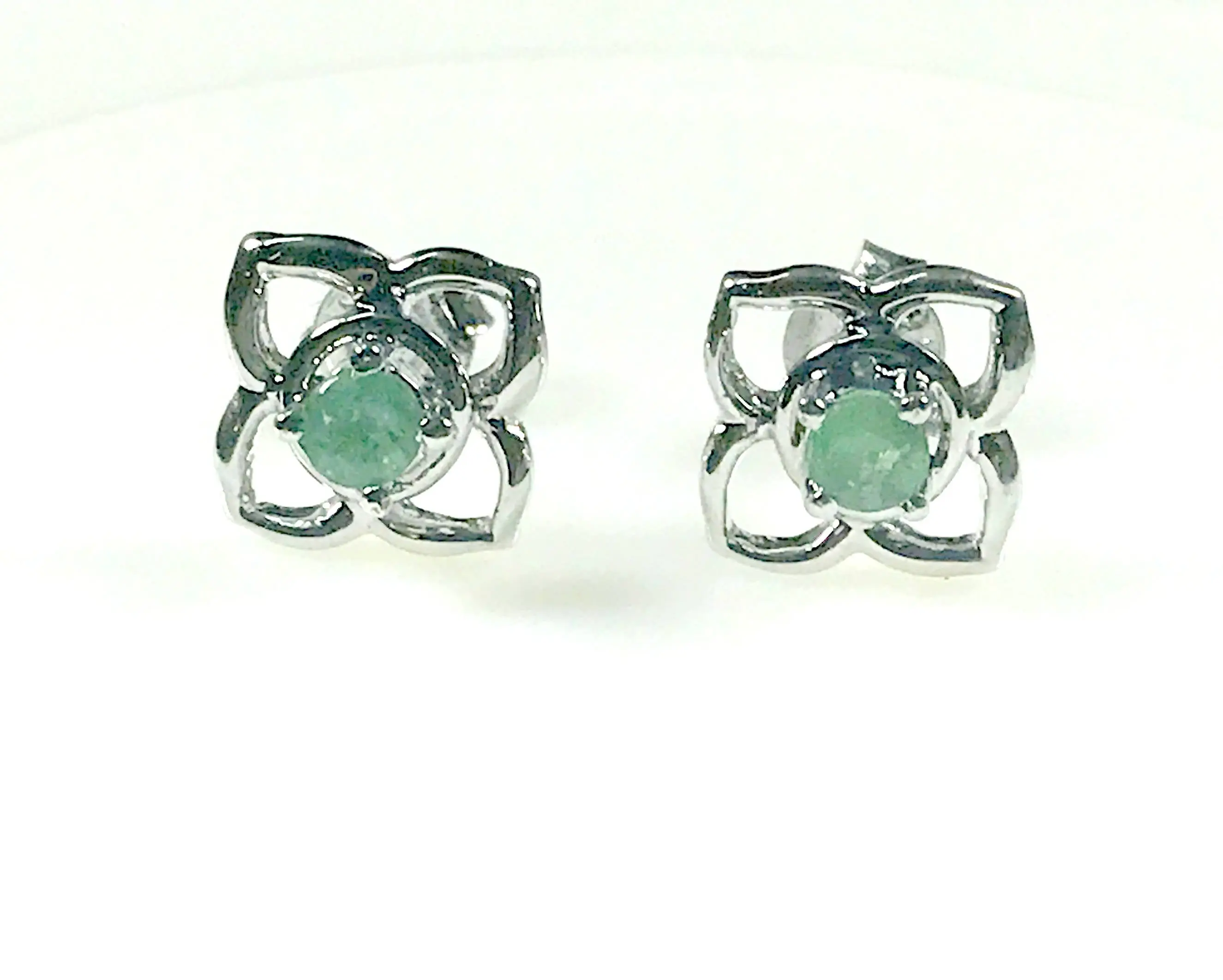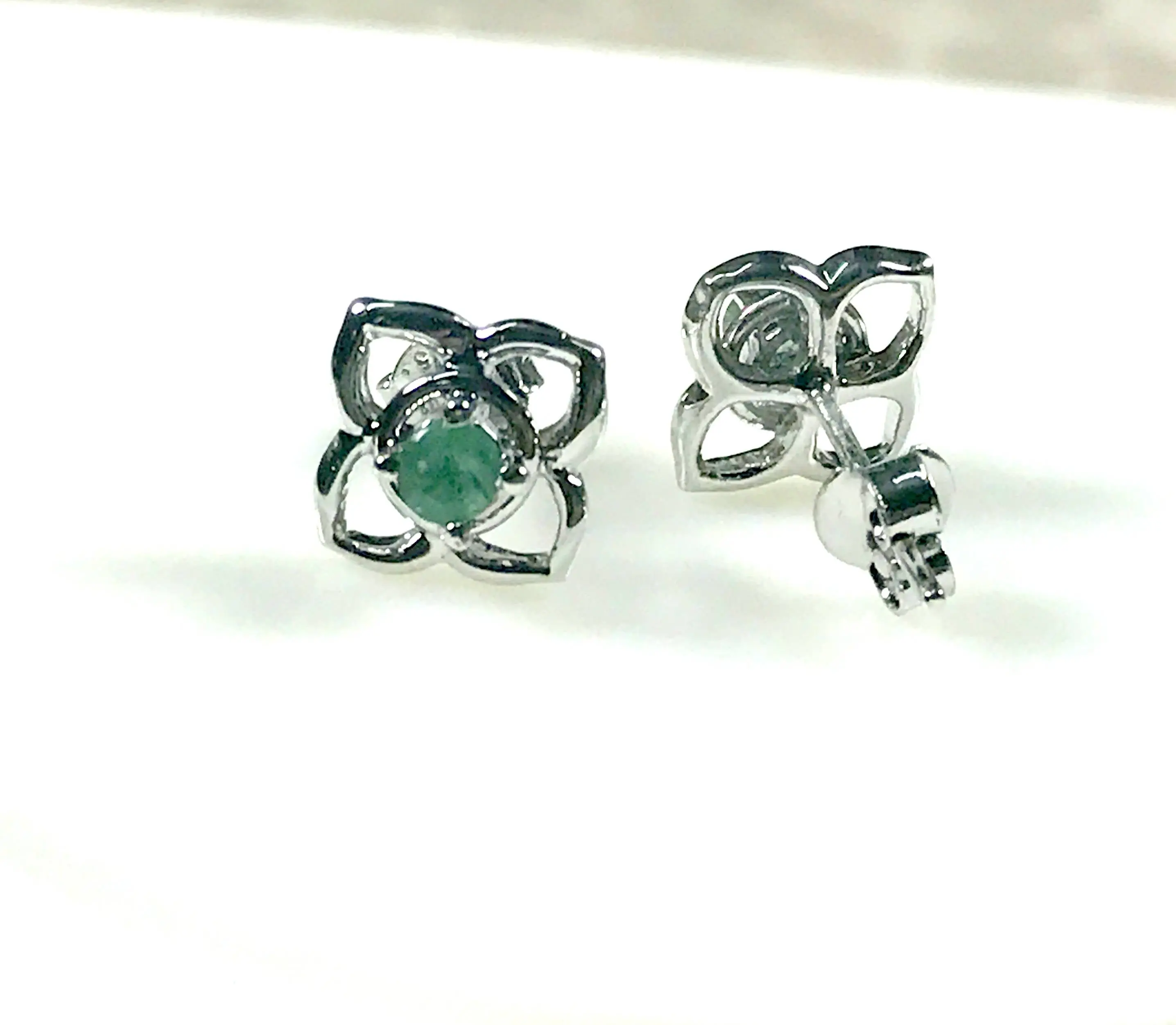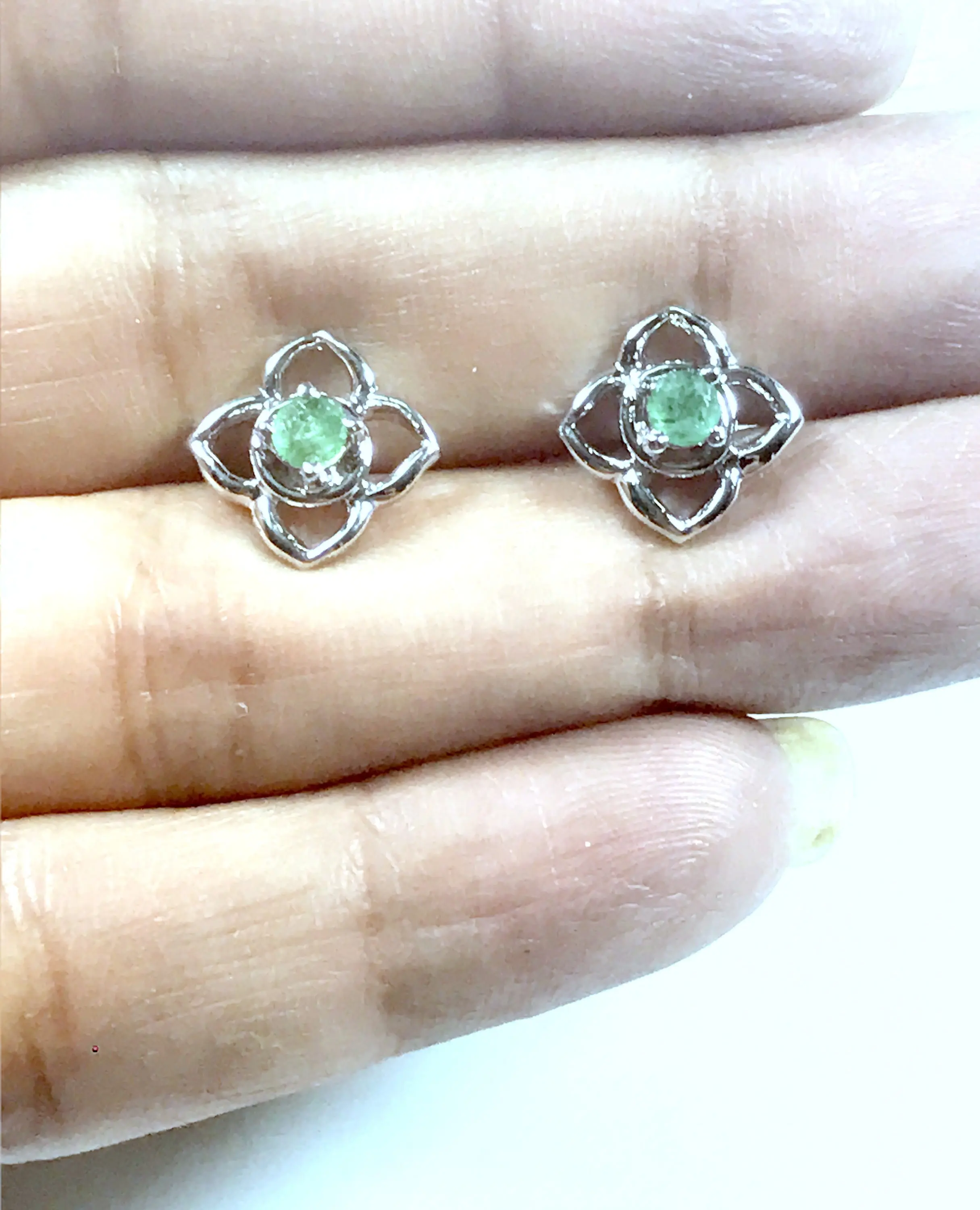 NATURAL GREEN EMERALD Stud Earrings in silver with beautiful flower inspiration design, Perfect gift for May birthstone , Gift for her.....