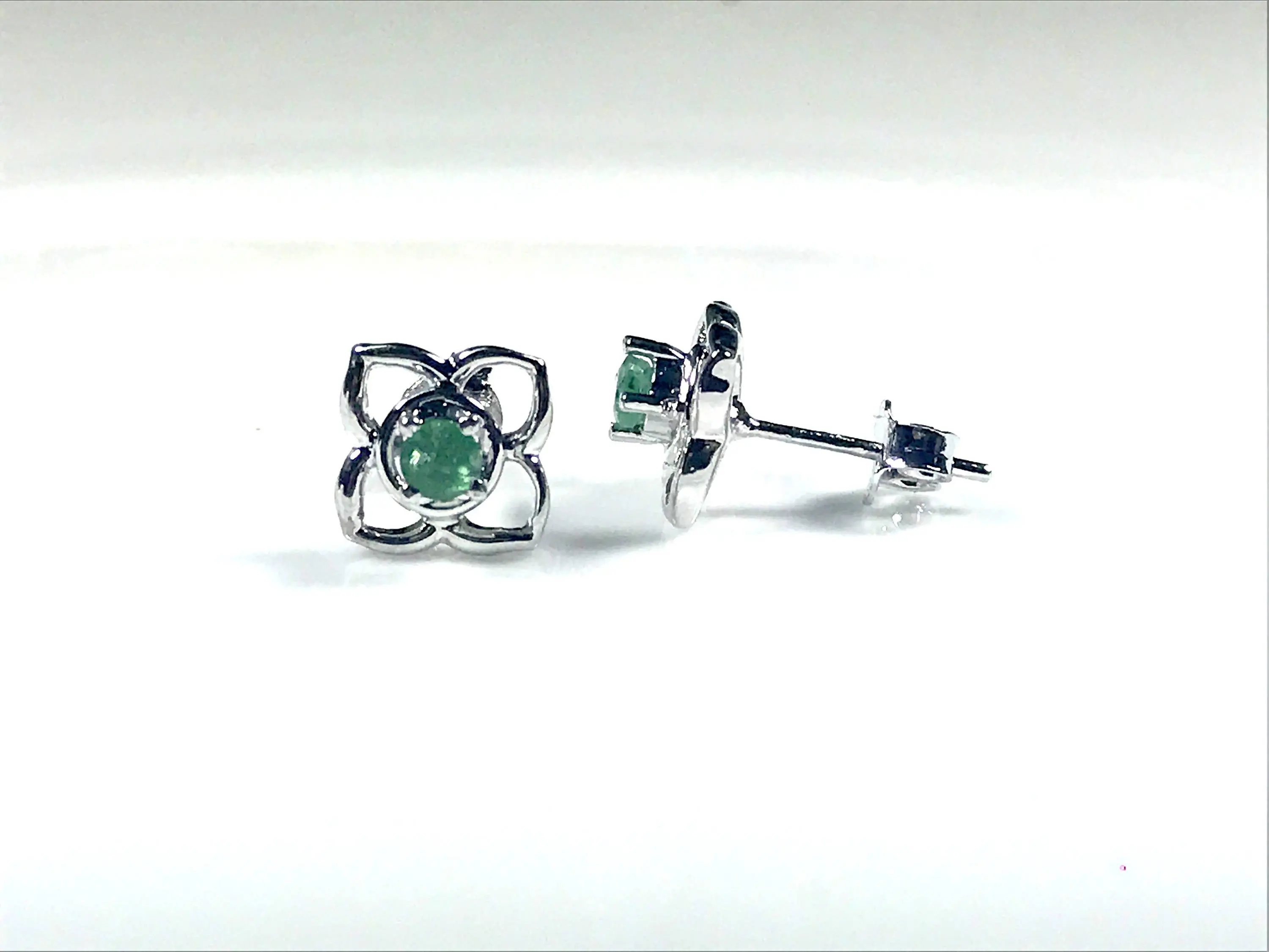 STUD EARRINGS WITH NATURAL EMERALDS,