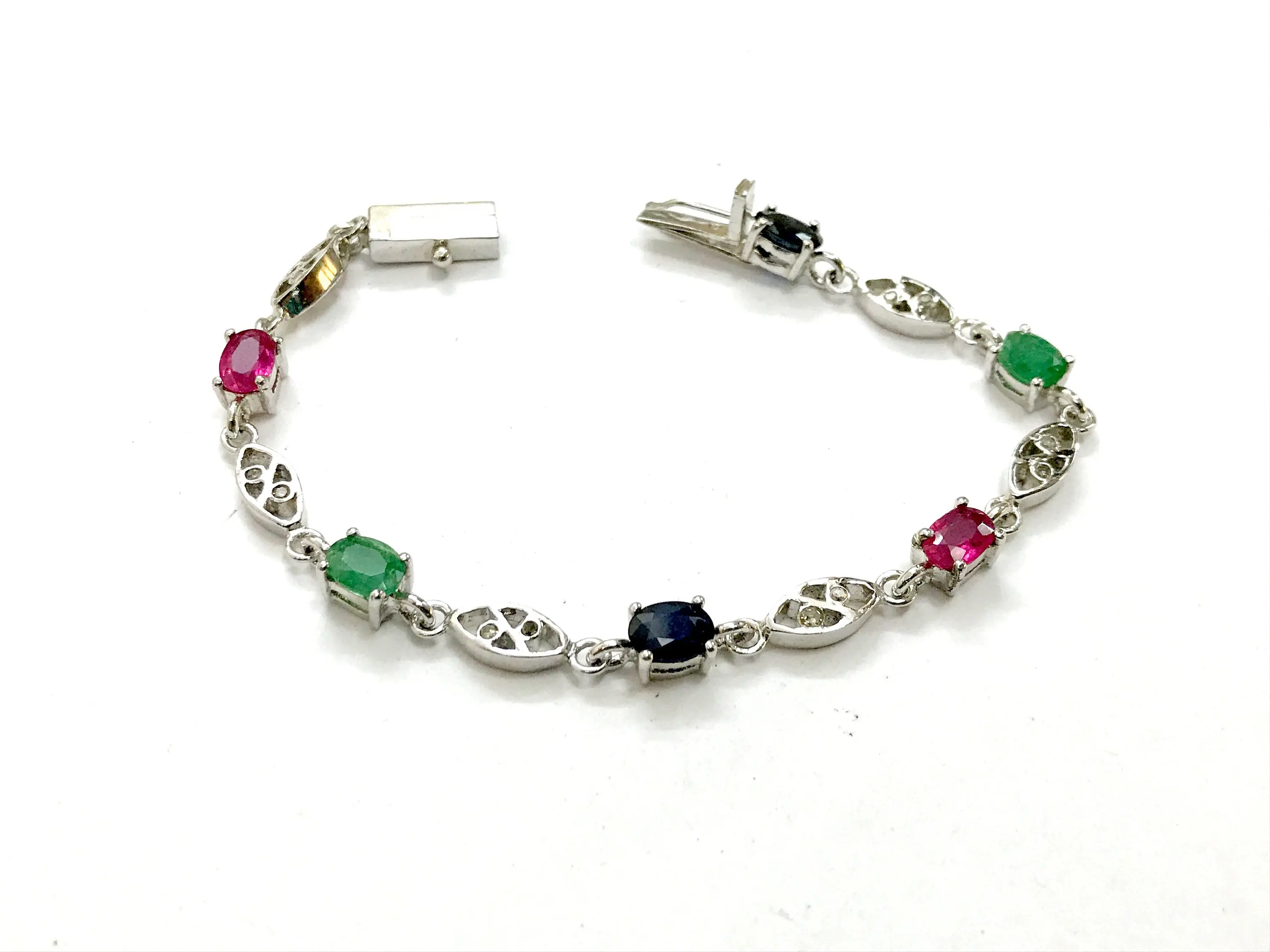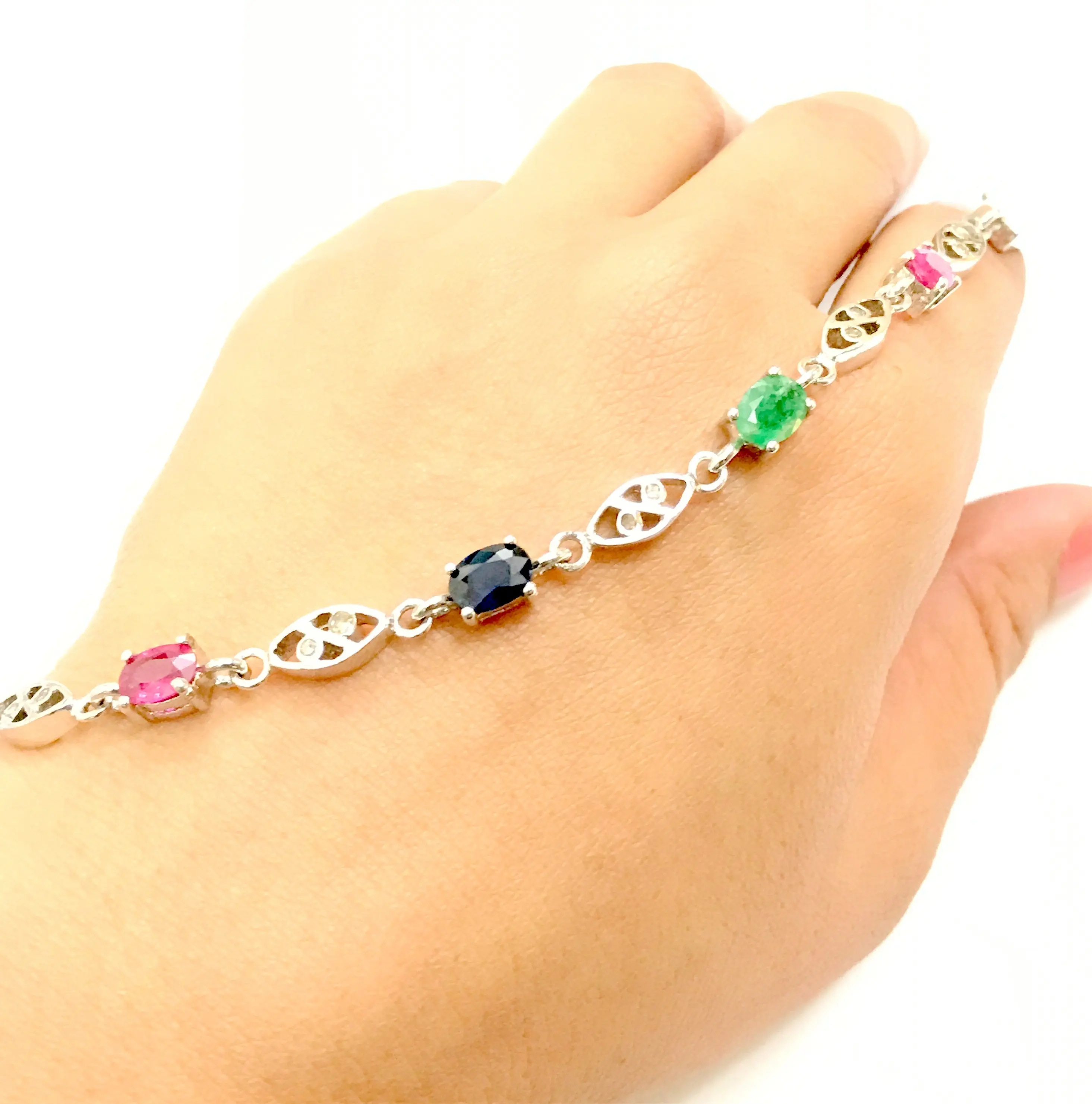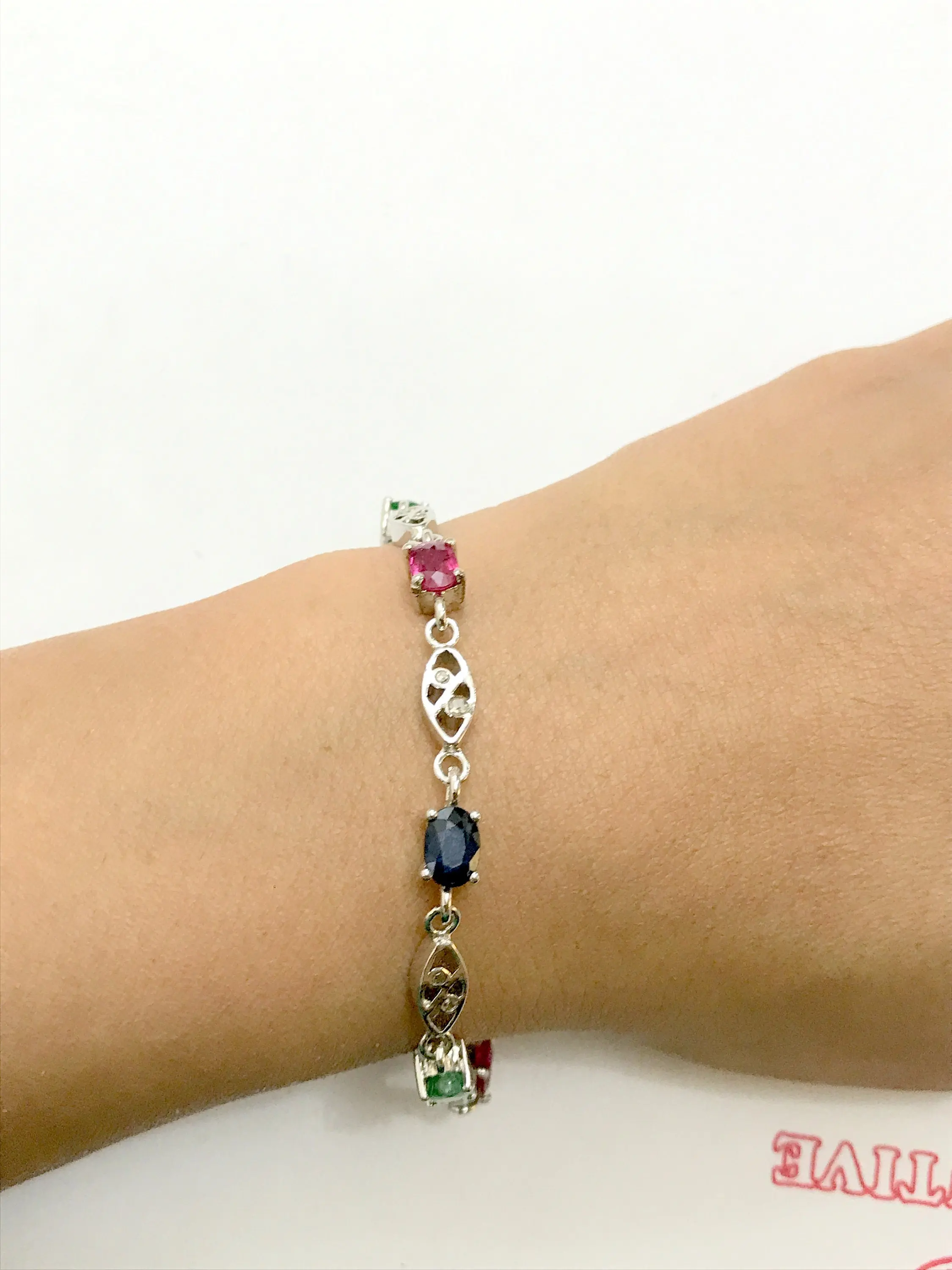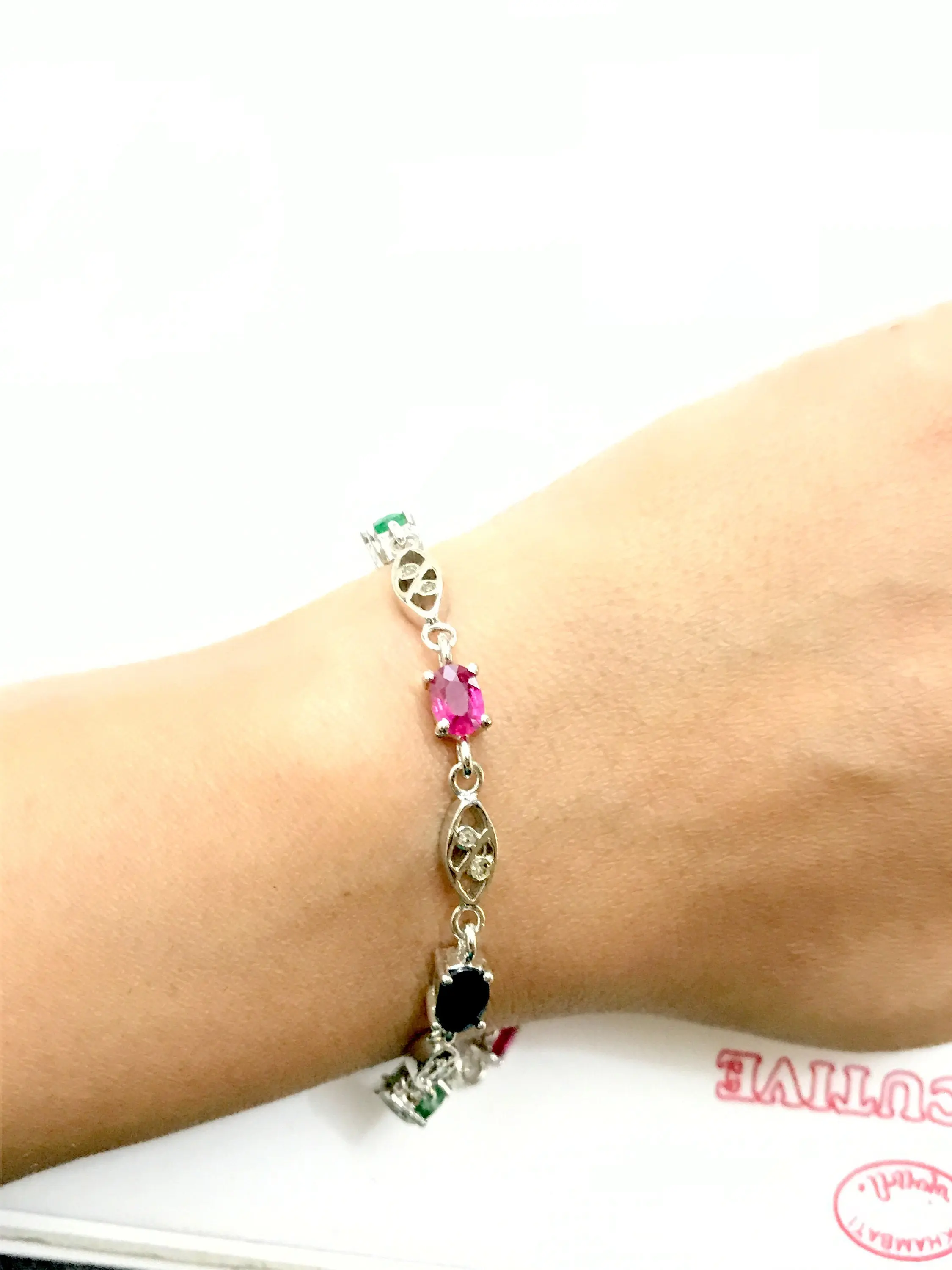7.5 inches EMERALD RUBY SAPPHIRE Diamond Bracelets , 925 sterling silver , Wedding Collection , Bridal Gift,Women Bracelets ,Christmas Gift