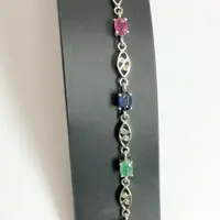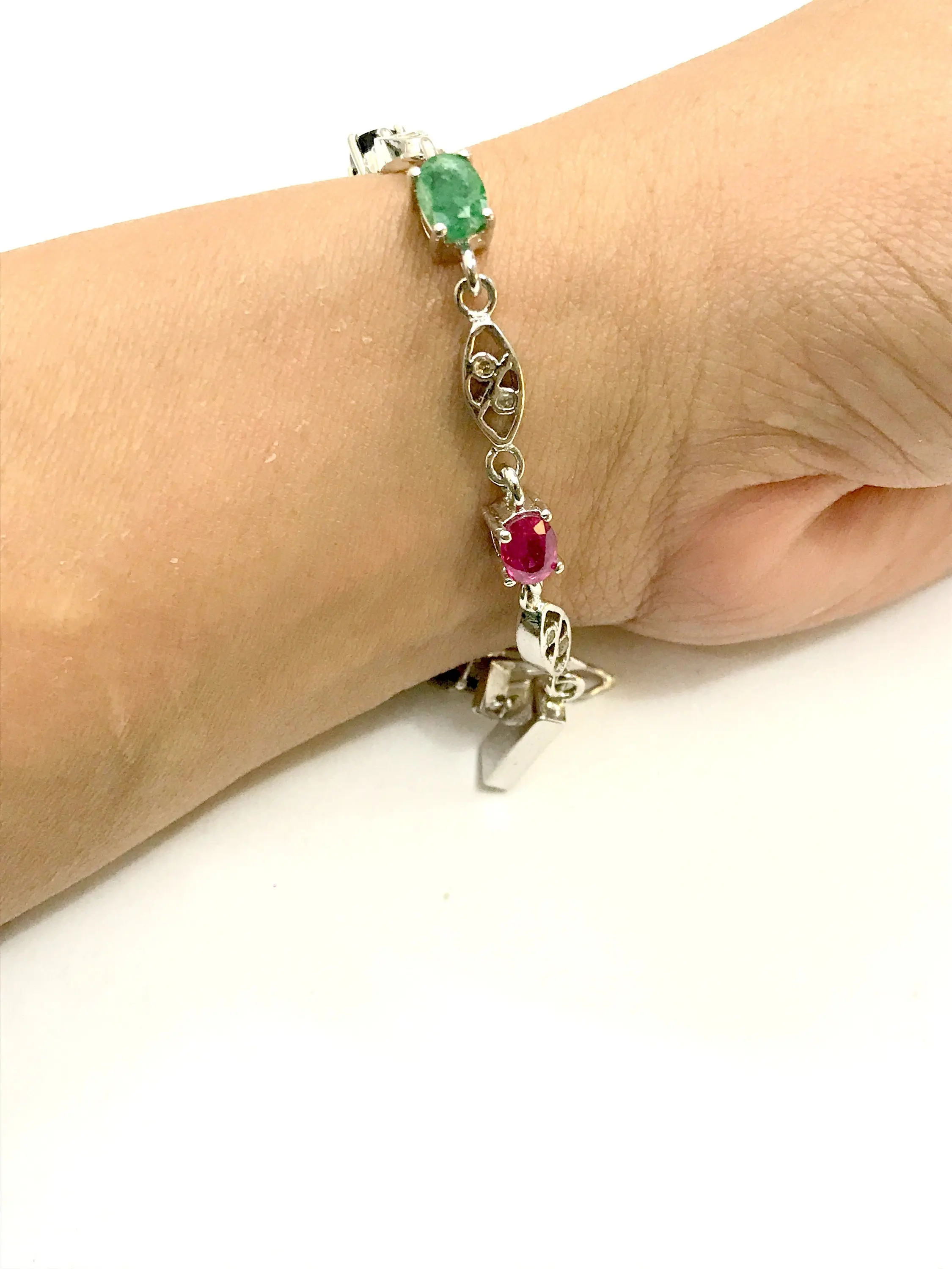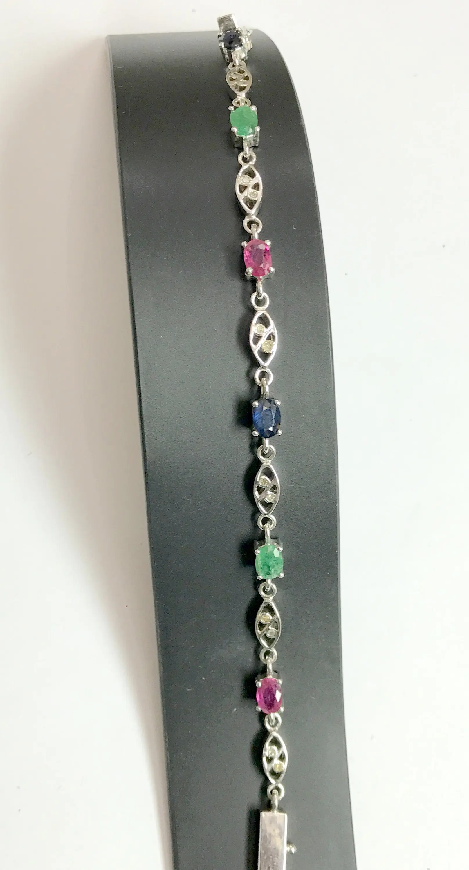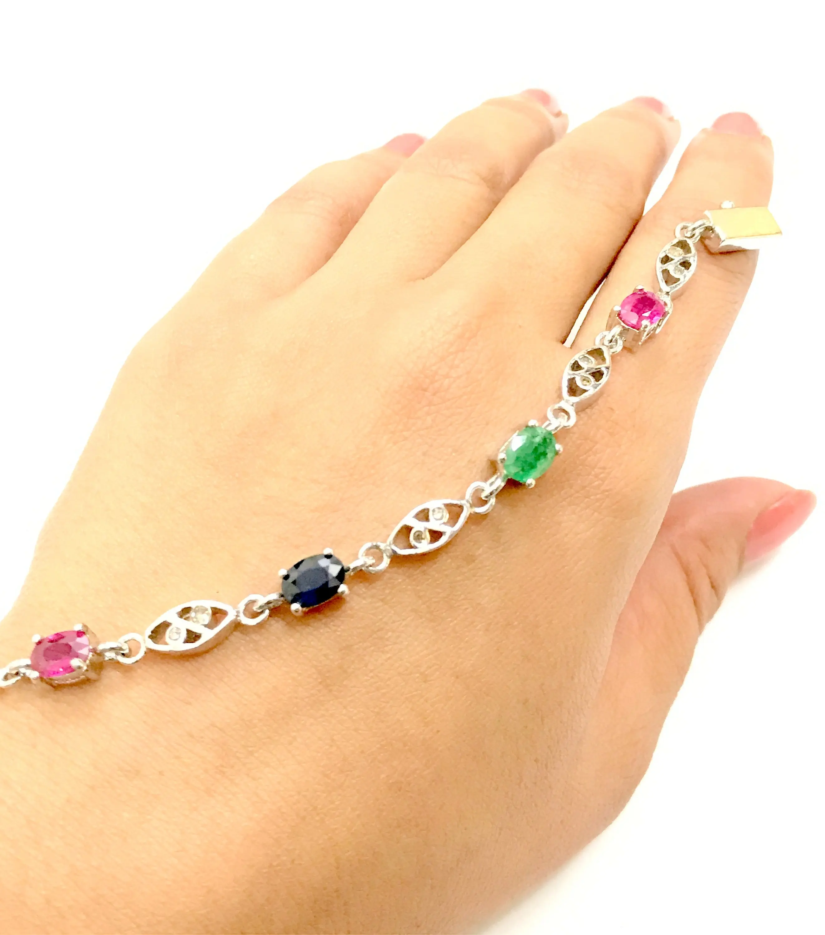 7.5 inches EMERALD RUBY SAPPHIRE Diamond Bracelets , 925 sterling silver , Wedding Collection , Bridal Gift,Women Bracelets ,Christmas Gift