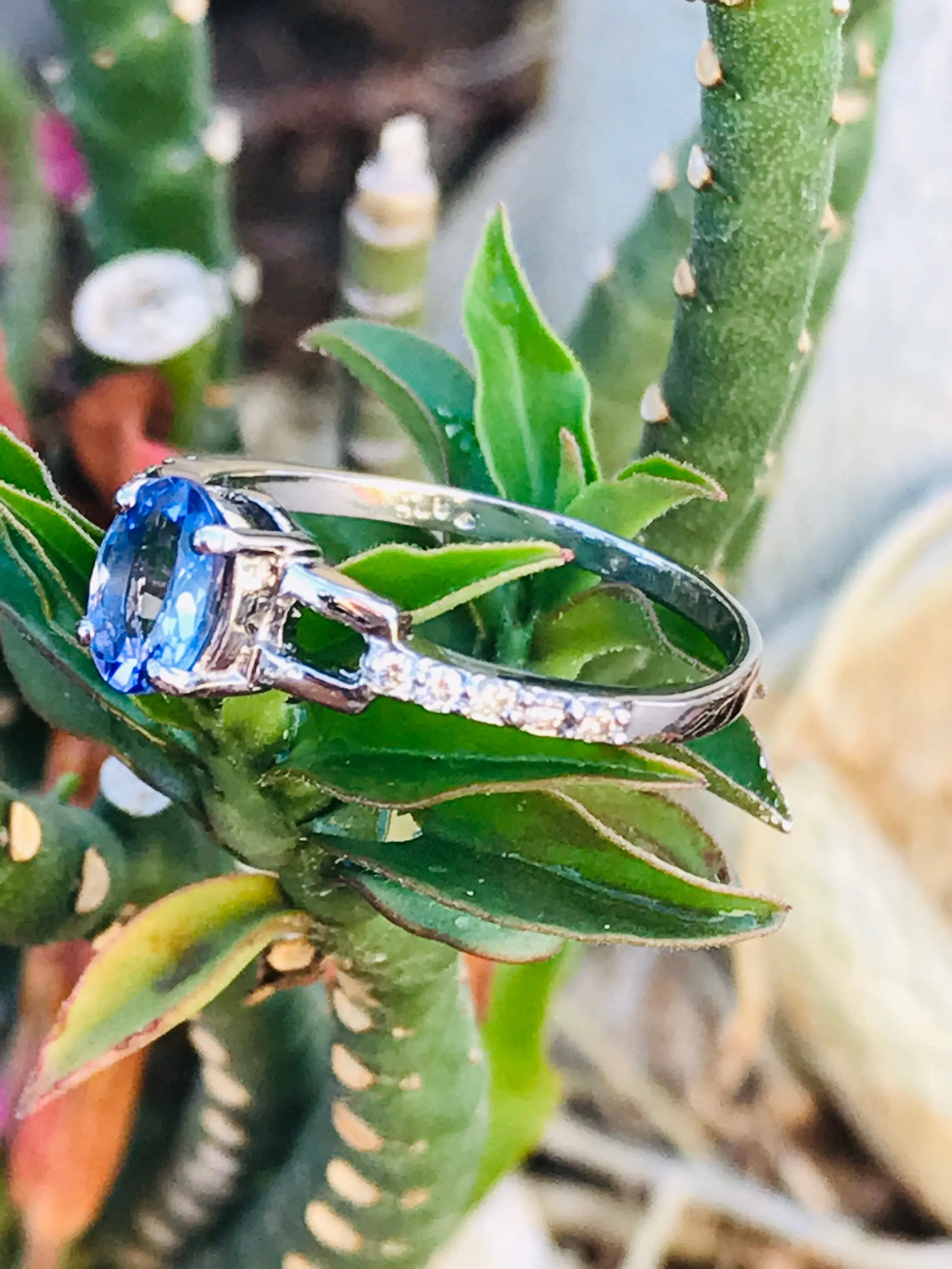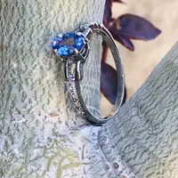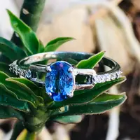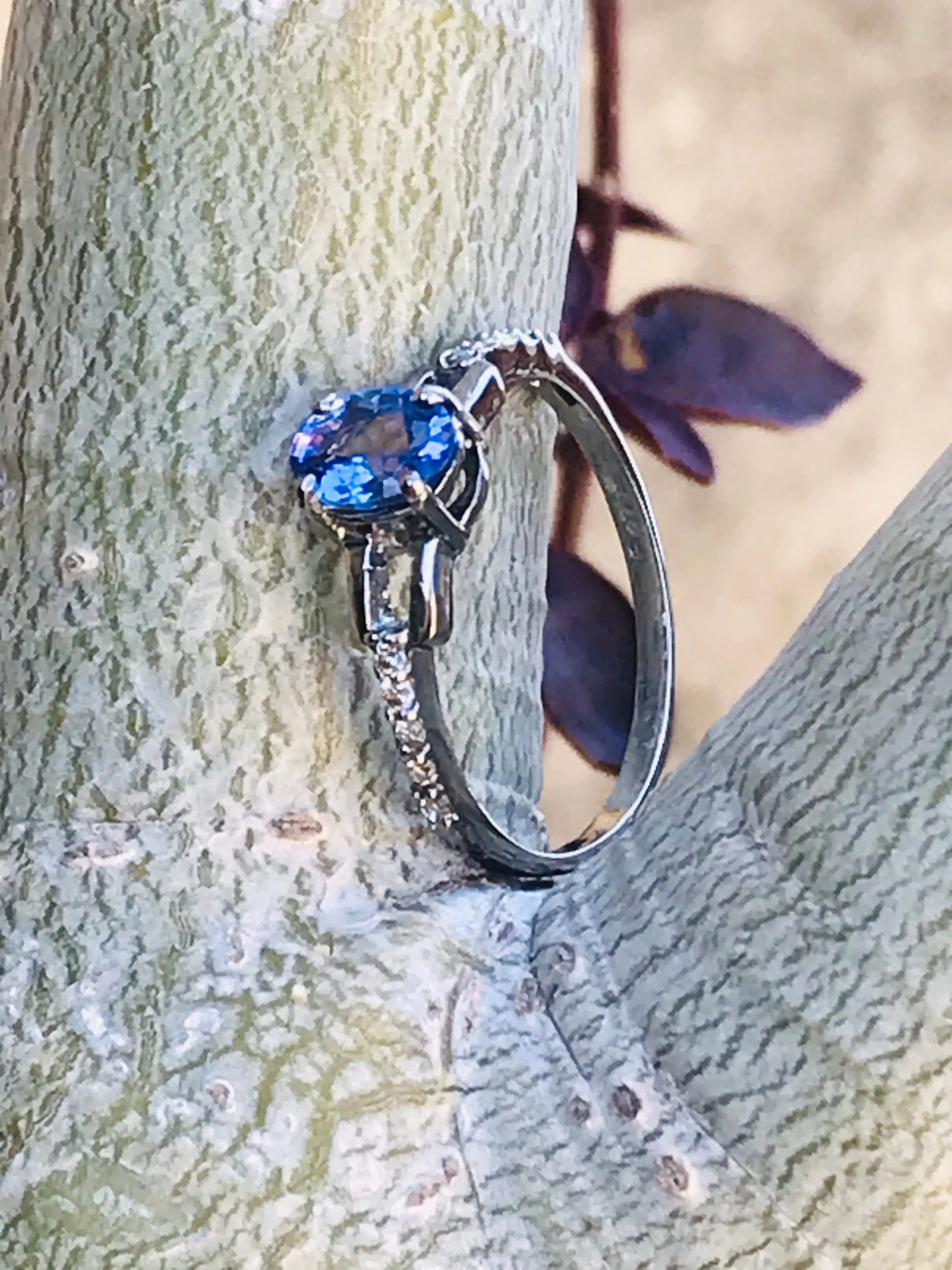 Super thin and feminine ring with a lovely Oval cut natural Tanzanite diamond cluster ring .........