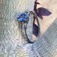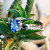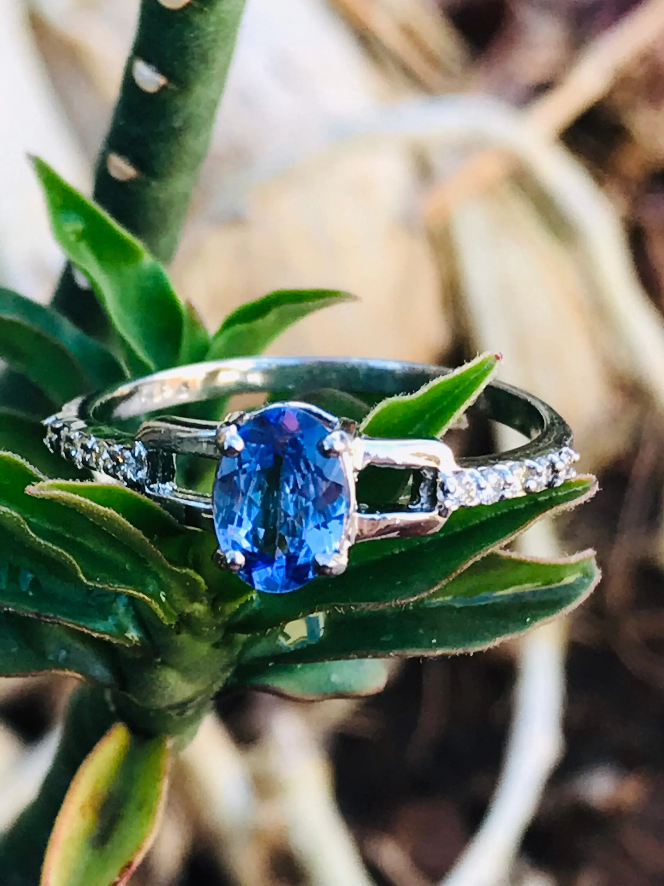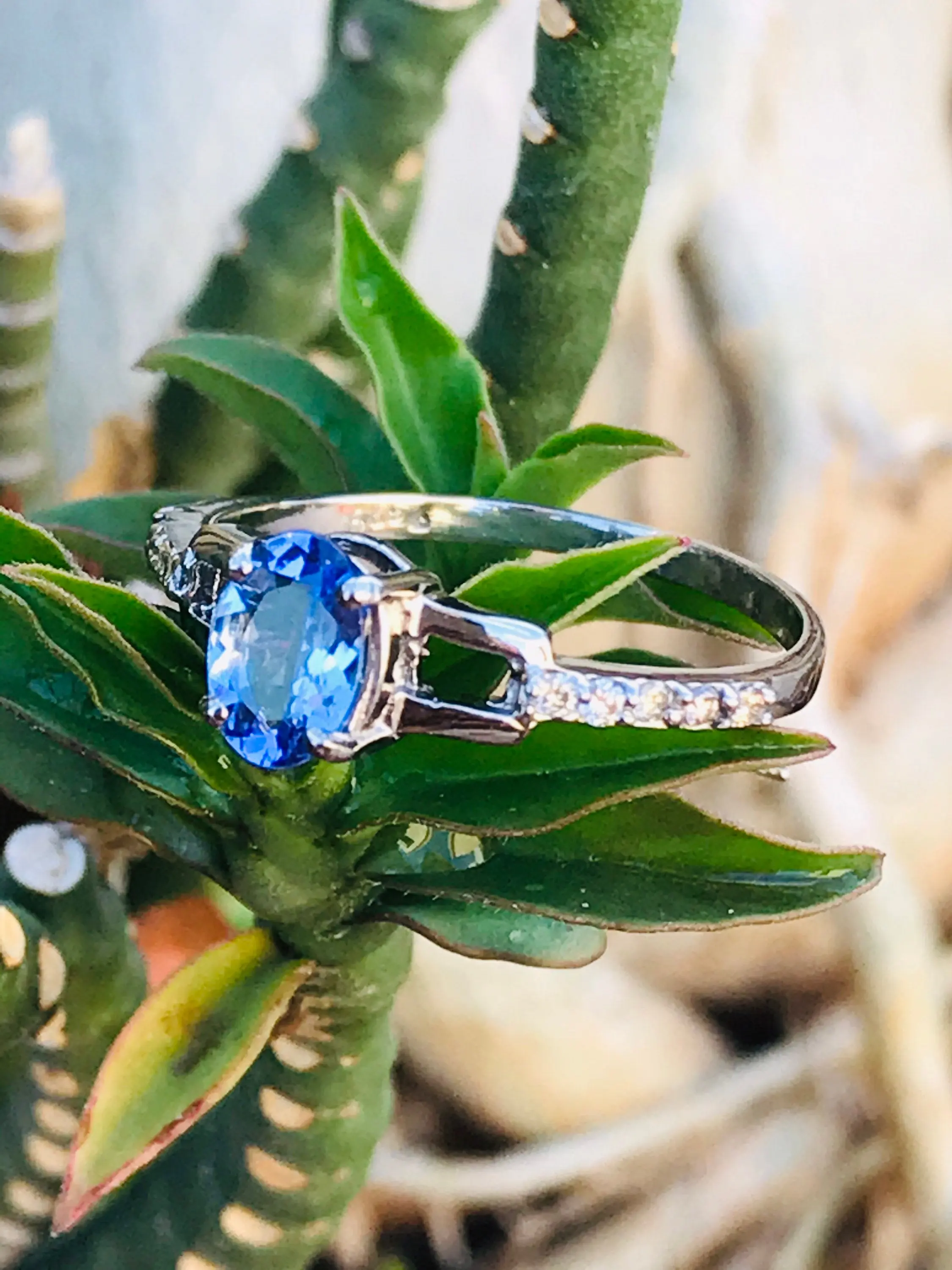 NATURAL TANZANITE Ring in 925 Sterling Silver,oval cut Tanzanite,Hola Diamonds, Engagement Ring ,Gift for Her.