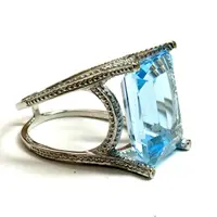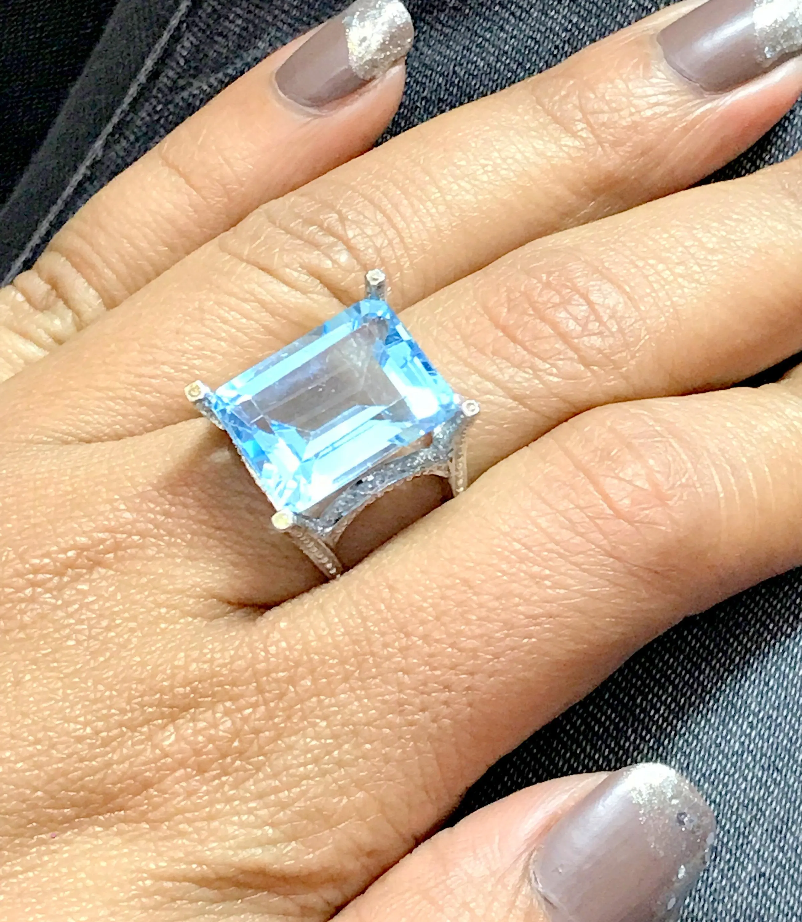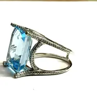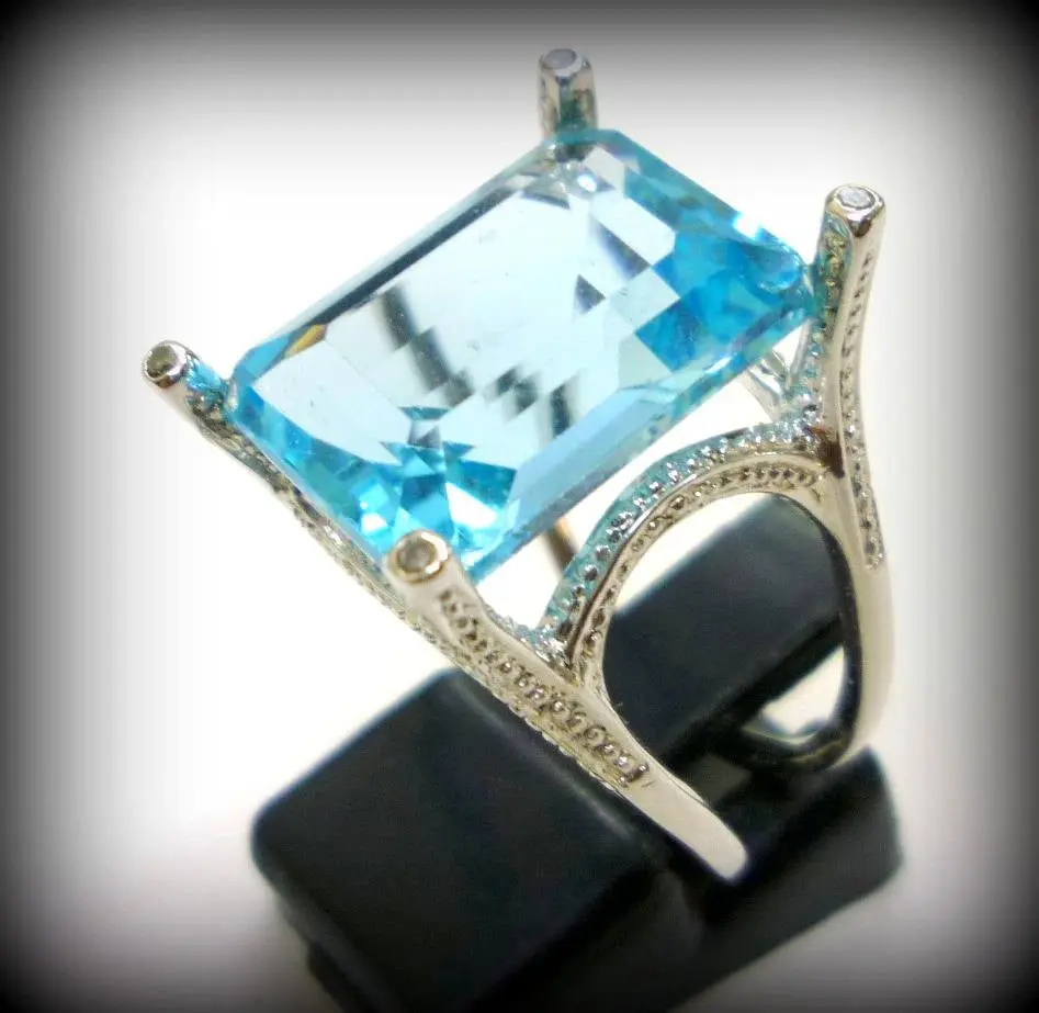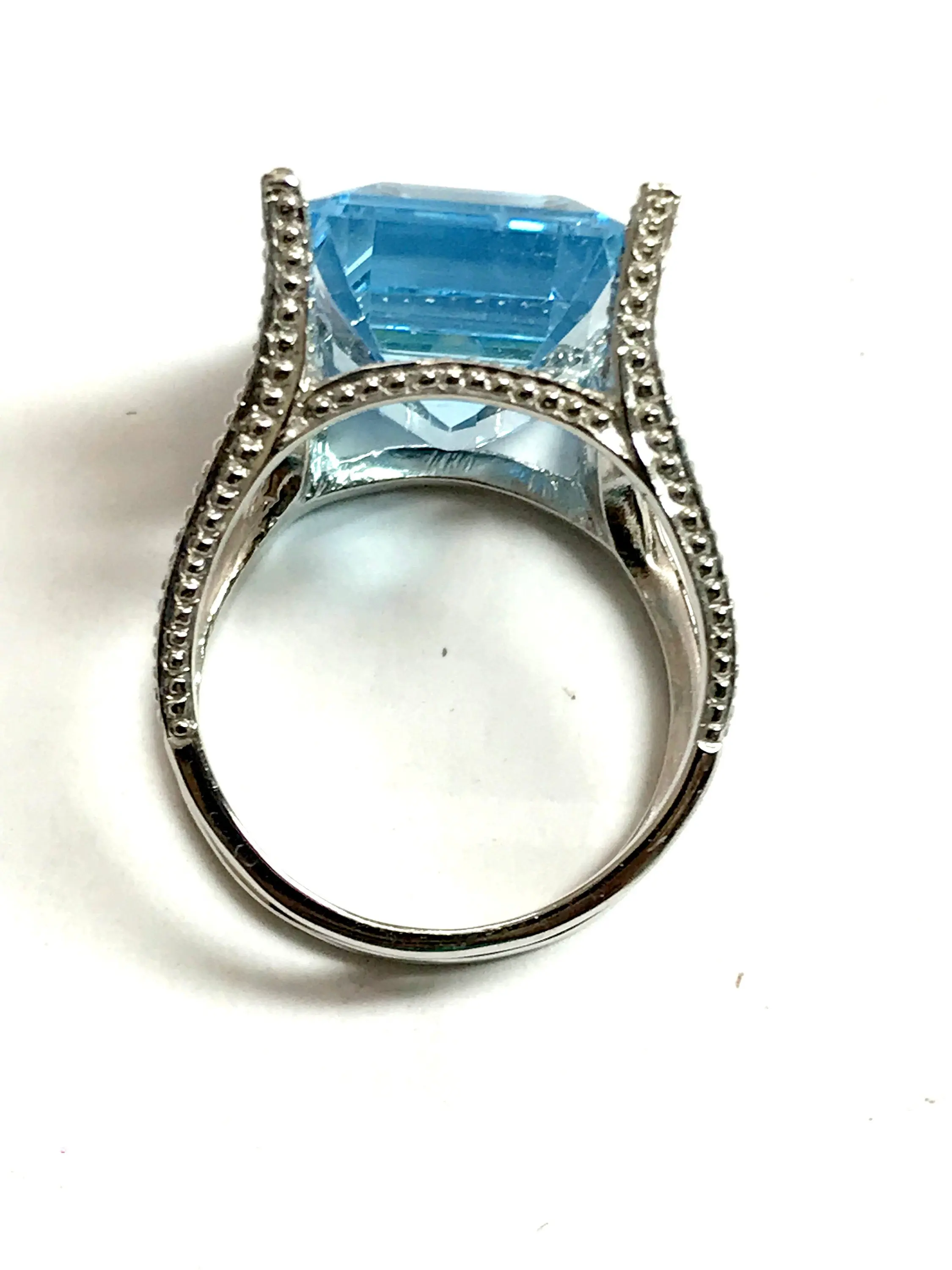 Super fine quality 925 silver ring studded with blue topaz and diamonds on prong...........with full light and energy.......in life !!!!!!!