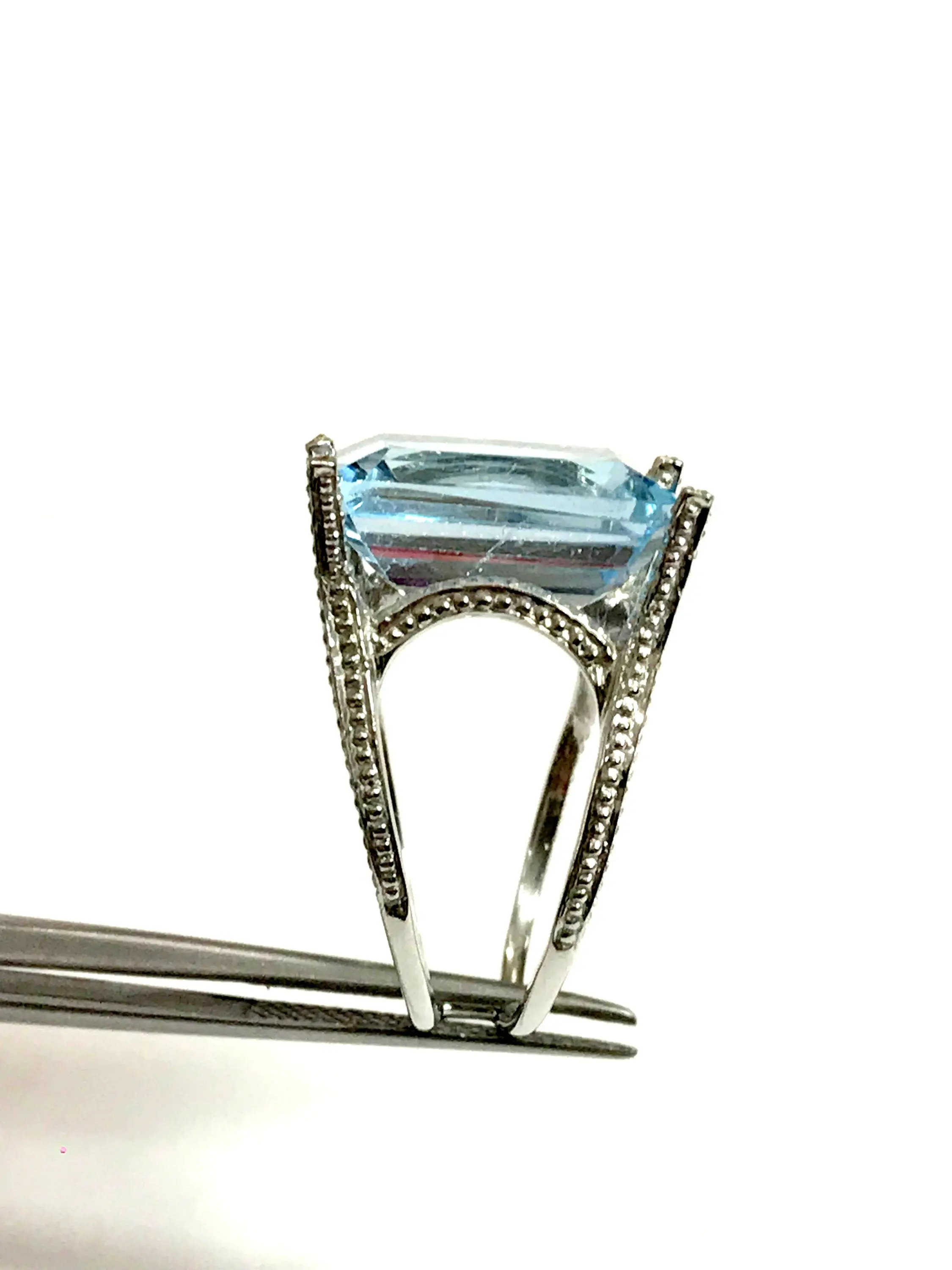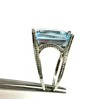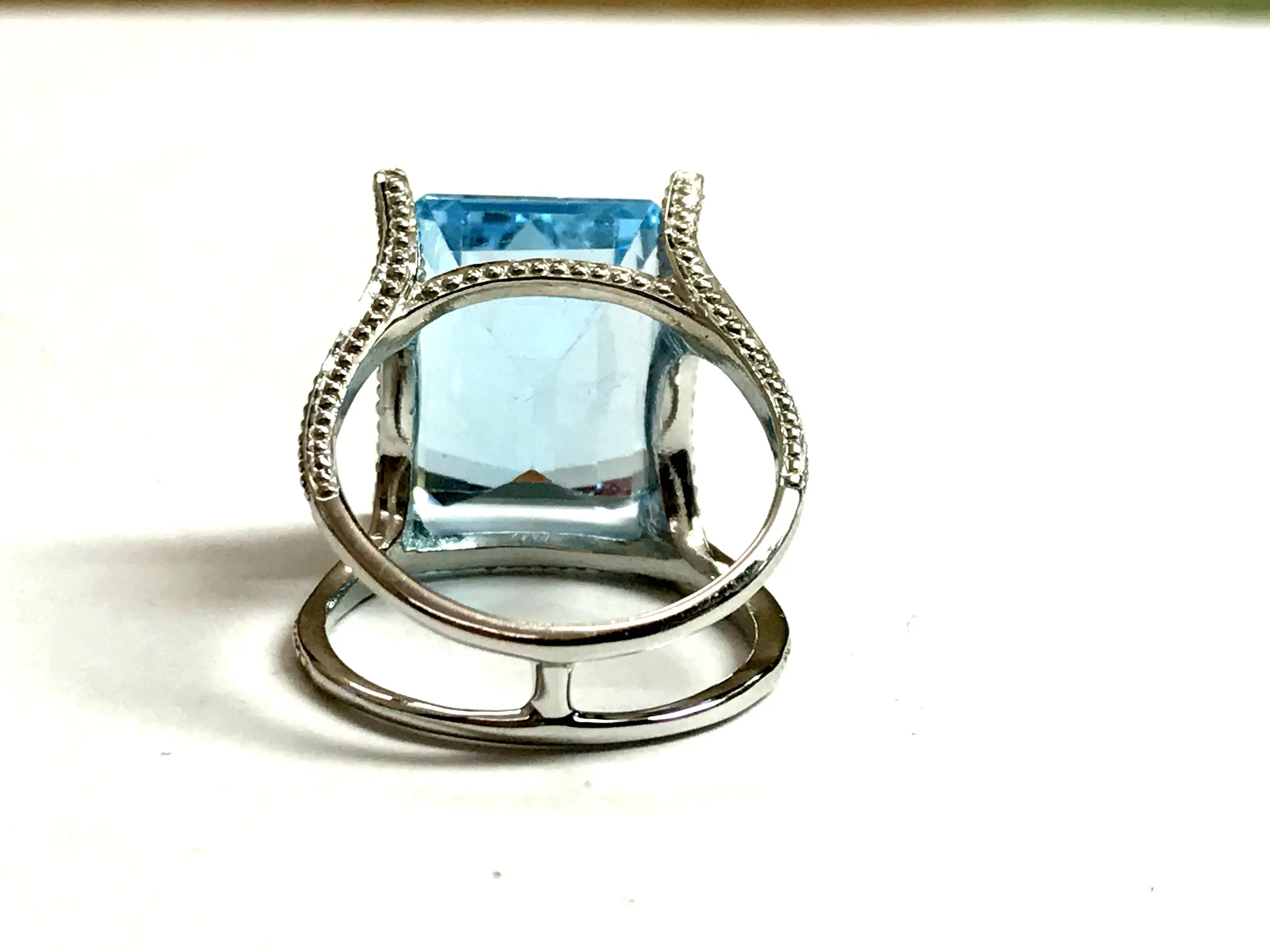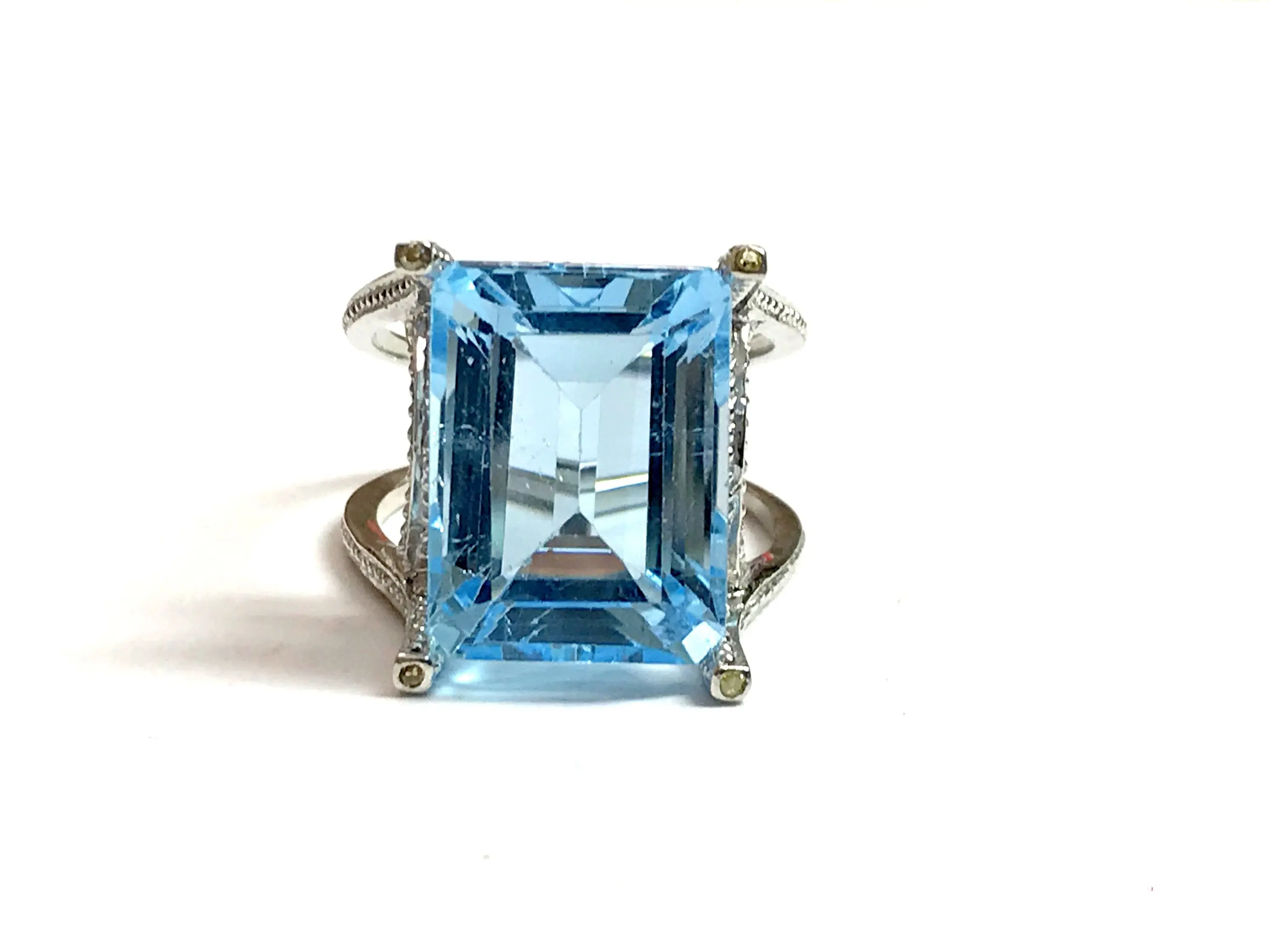 Super fine quality 925 silver ring studded with blue topaz and diamonds on prong...........with full light and energy.......in life !!!!!!!