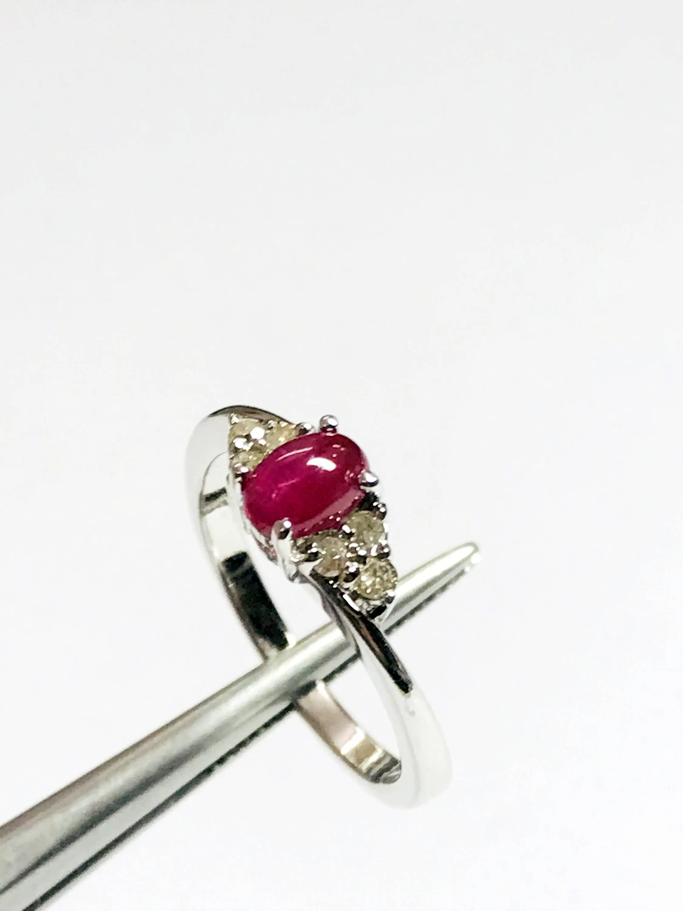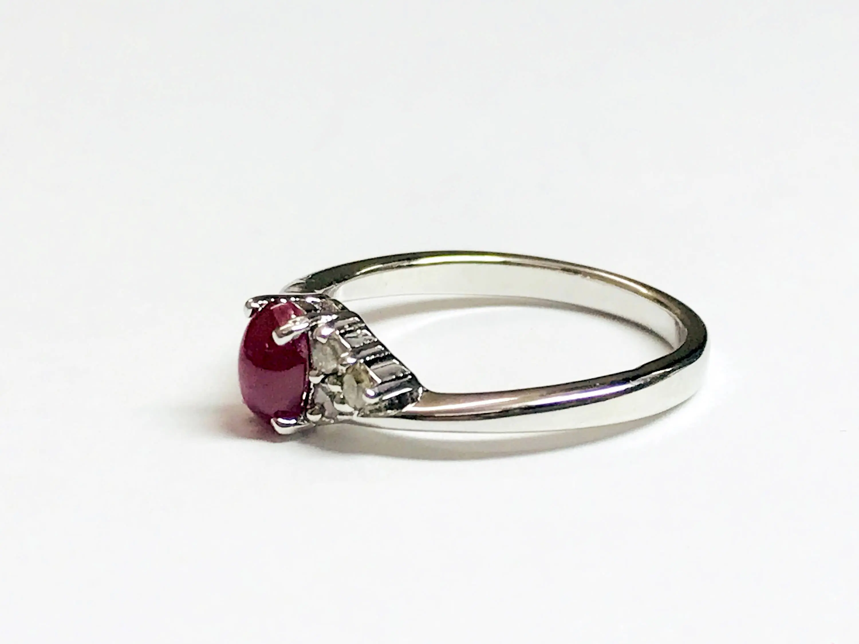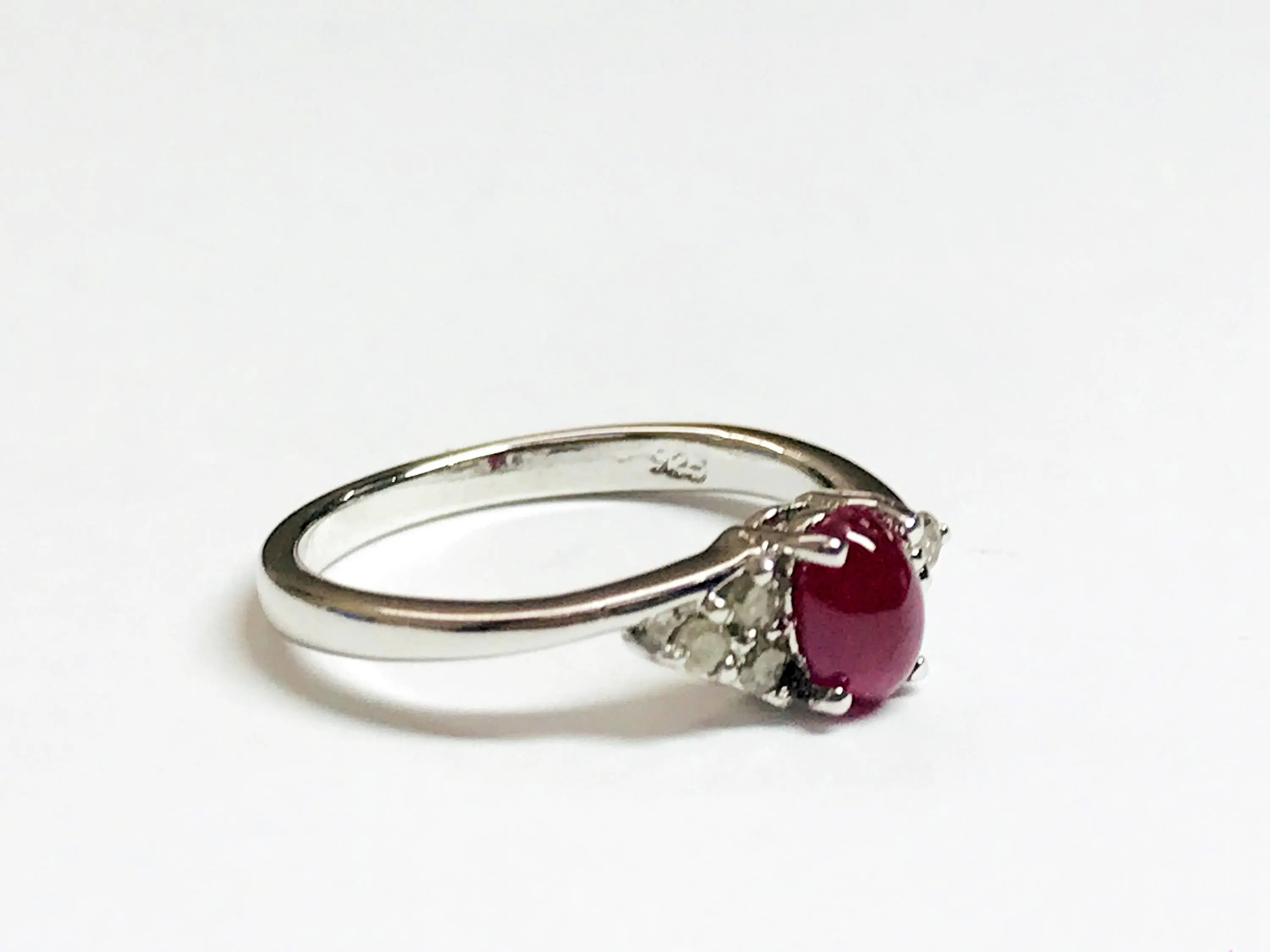BLOOD RED RUBY Diamonds silver Ring , Ruby Cabochon , July Birthstone , Engagement ring , Ruby Anniversary Gift..........