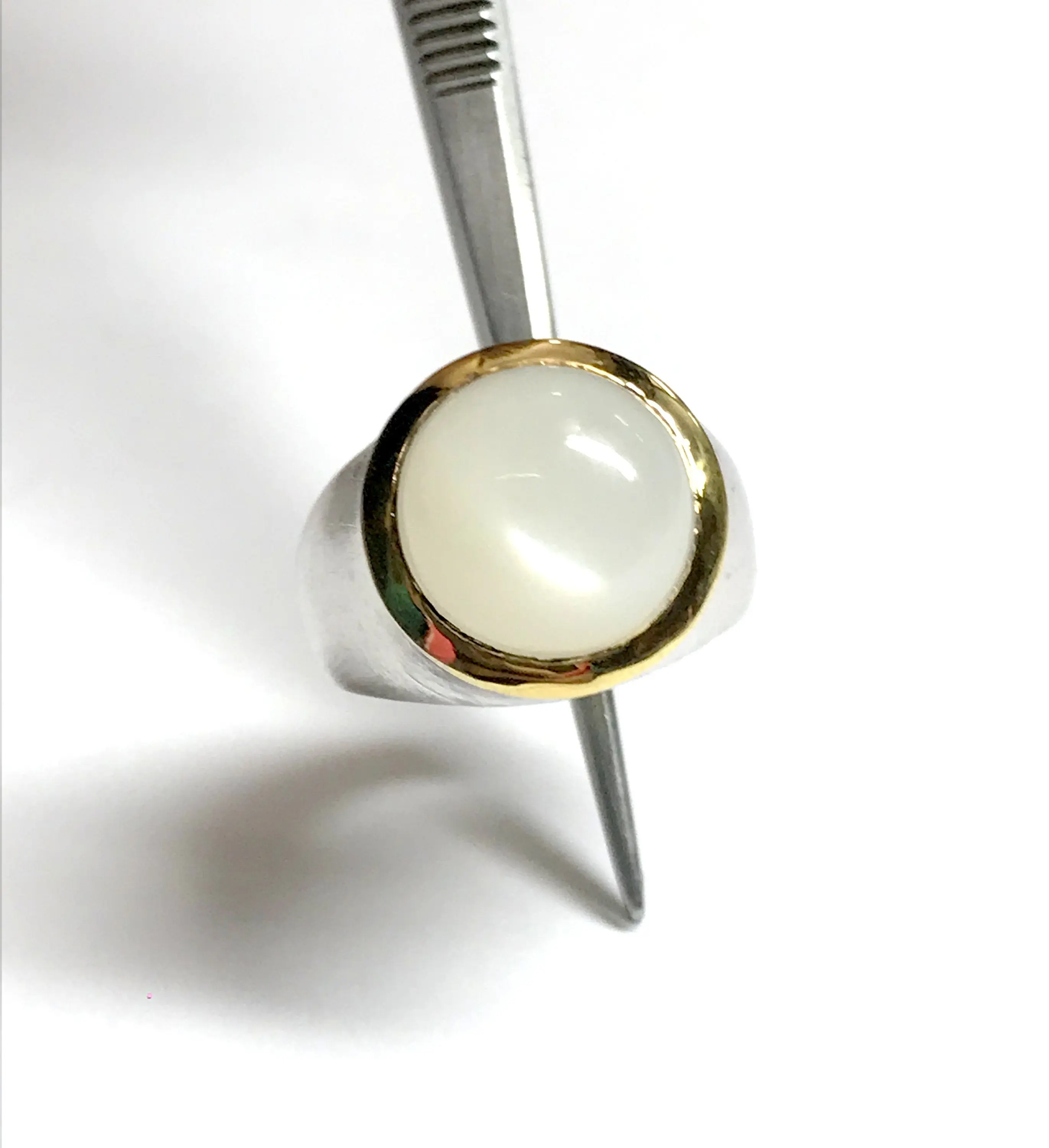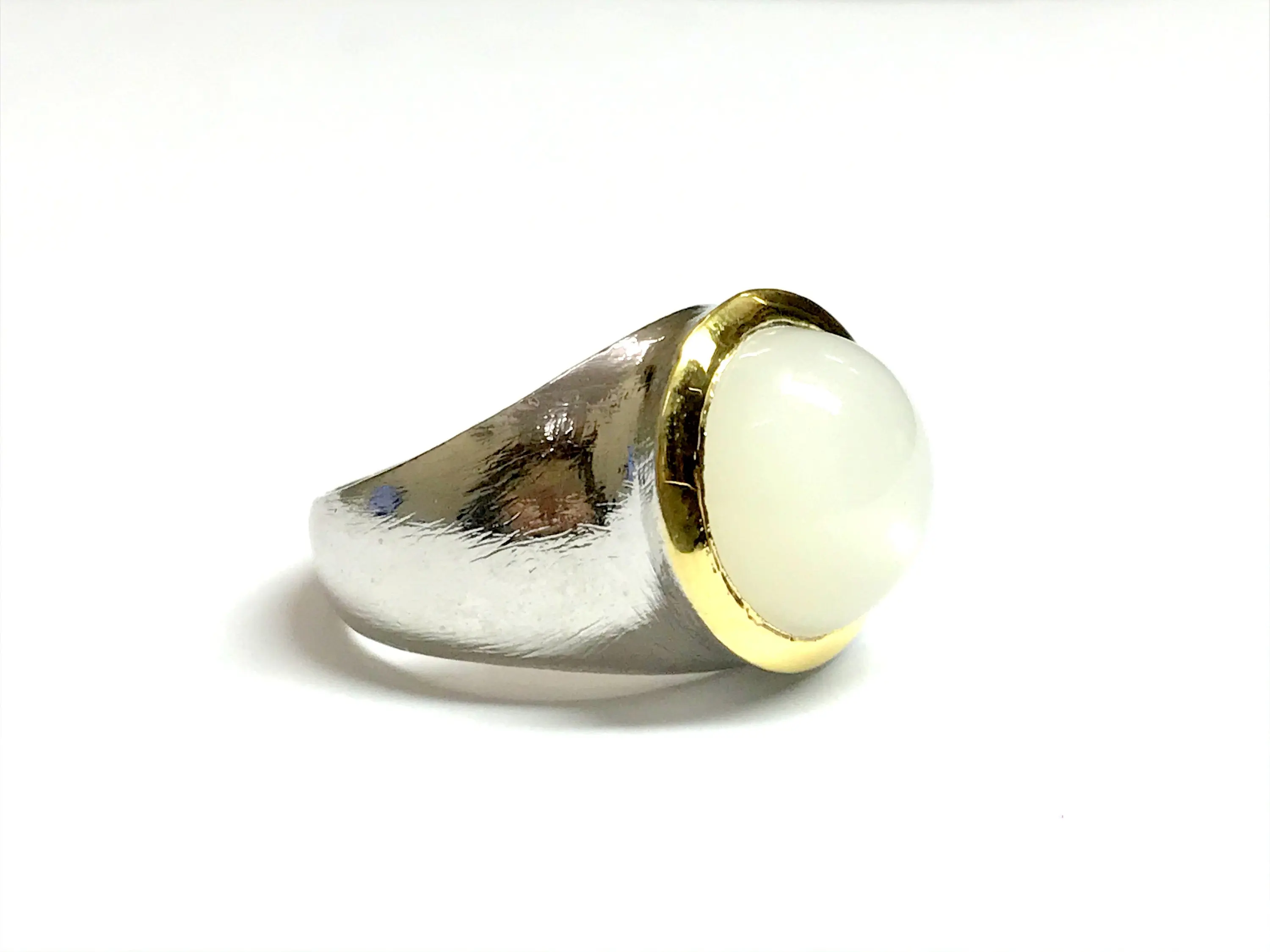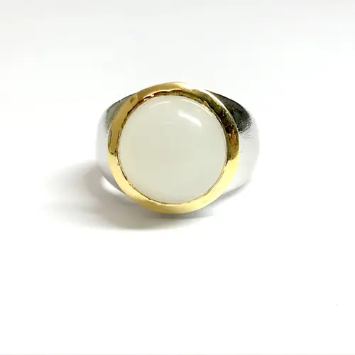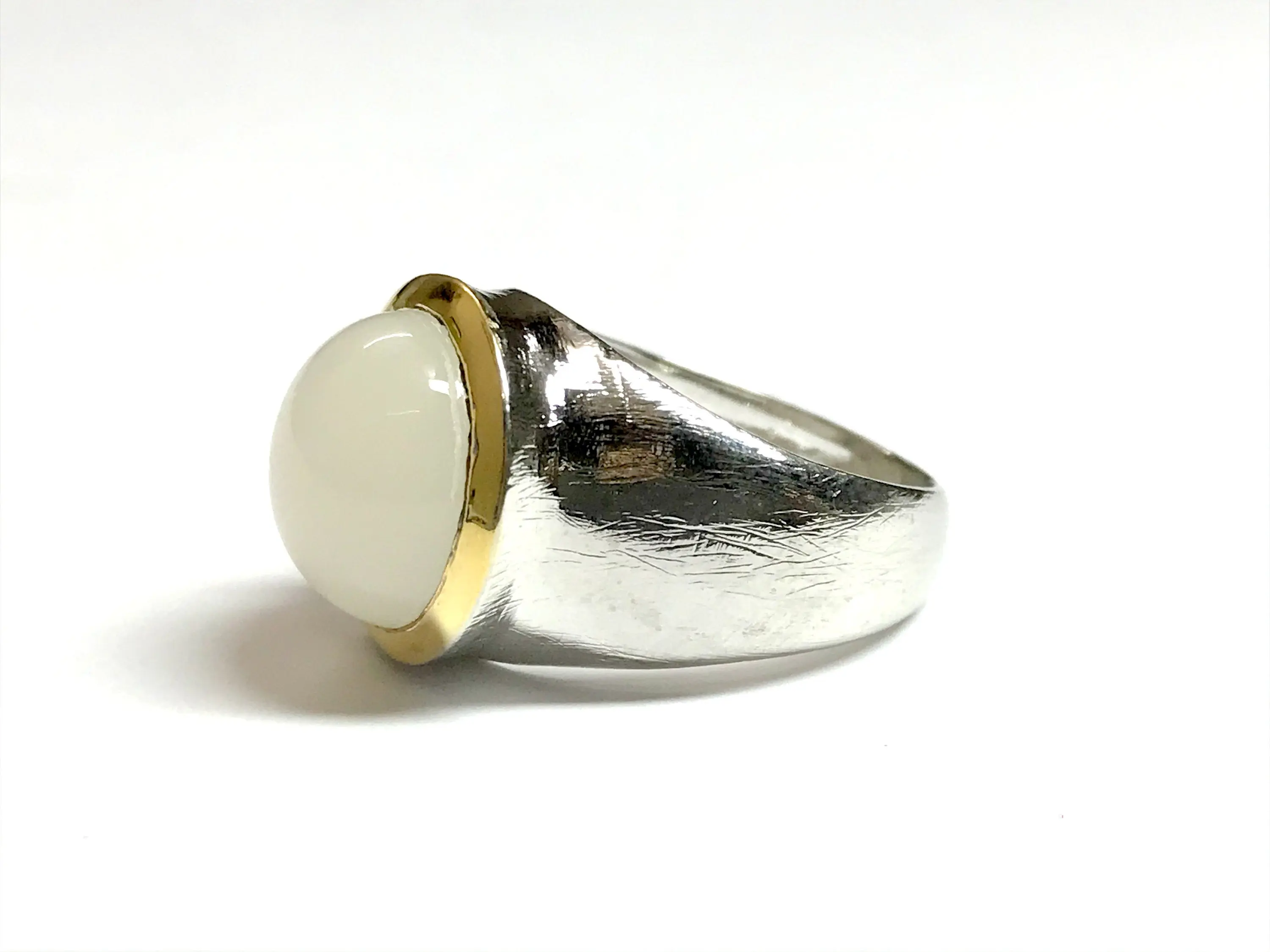 Fine quality NATURAL WHITE MOONSTONE round Cabochon Ring , sterling Silver , Men ring , Textured , perfect Moonlight , June Birthstone....