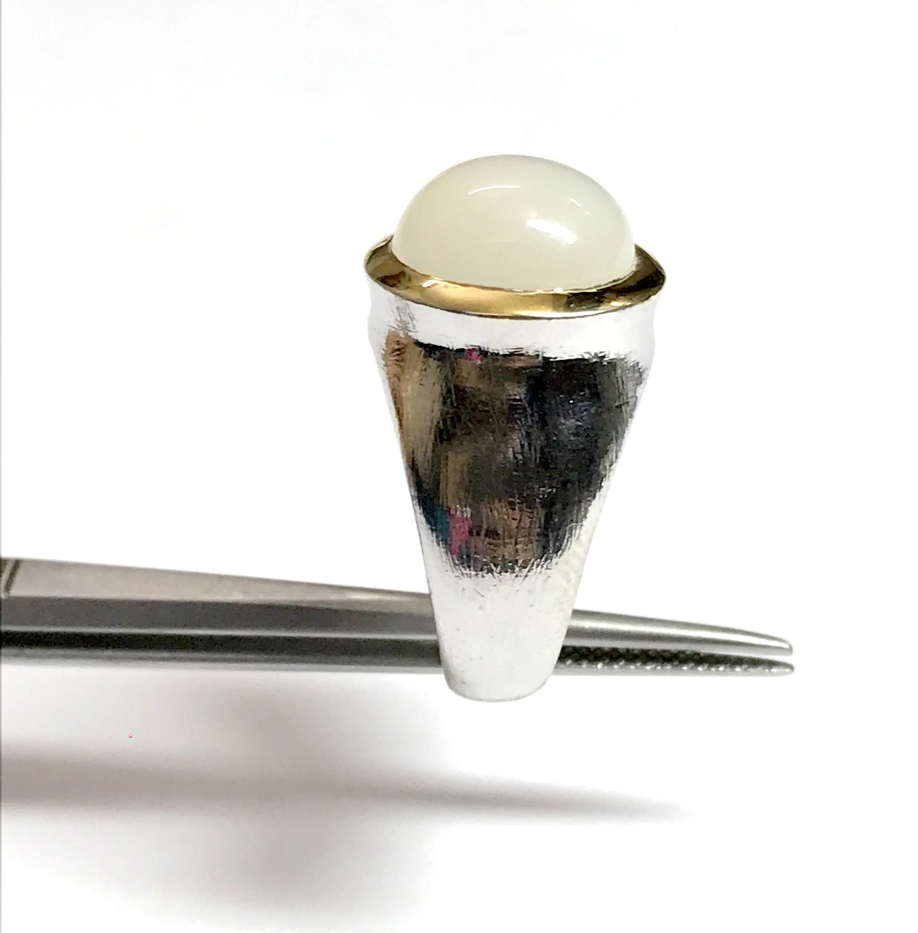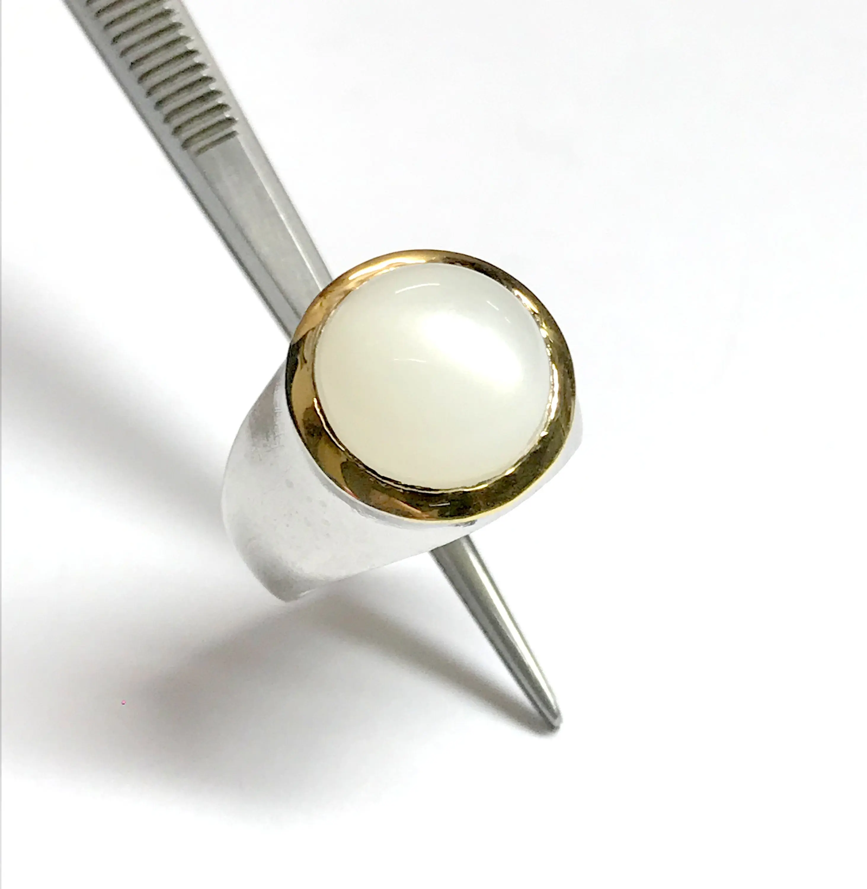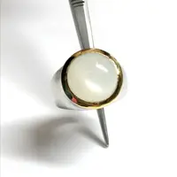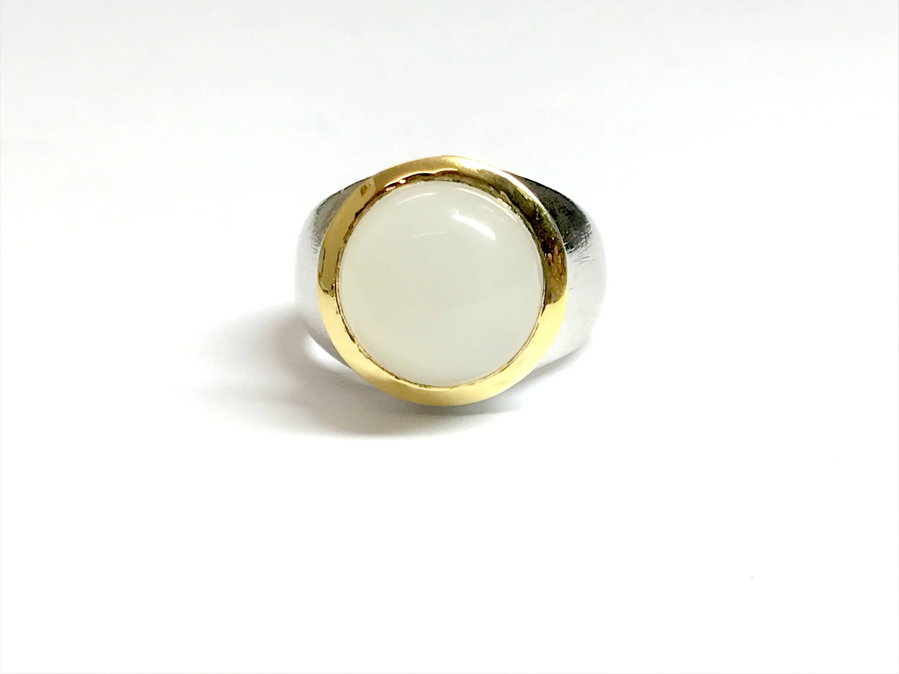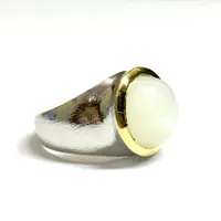 Fine quality NATURAL WHITE MOONSTONE round Cabochon Ring , sterling Silver , Men ring , Textured , perfect Moonlight , June Birthstone....