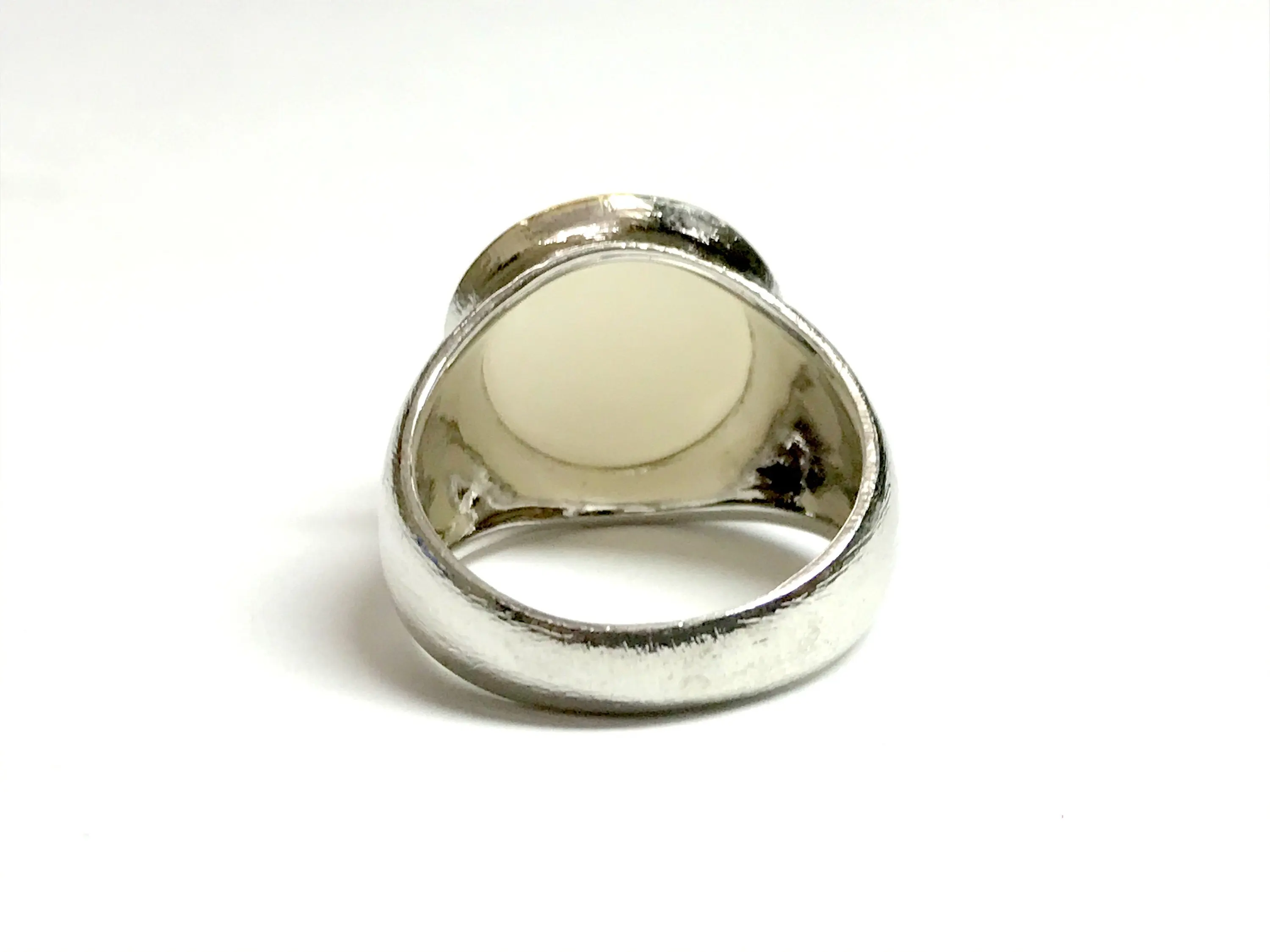 NATURAL WHITE MOONSTONE round Cabochon Ring , Sterling Silver , Men ring , Textured , perfect Moonlight , June Birthstone,Gift For Him....