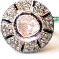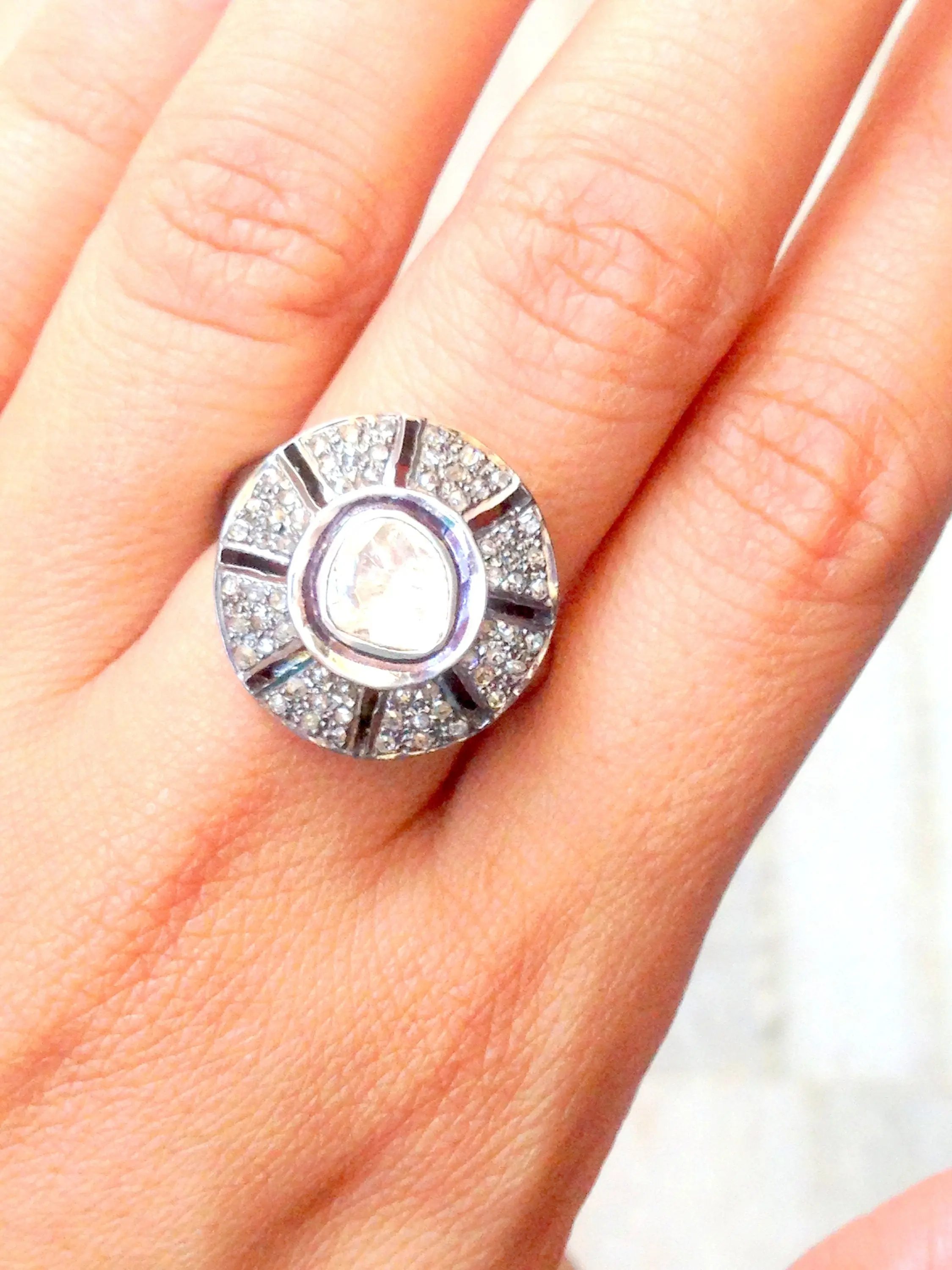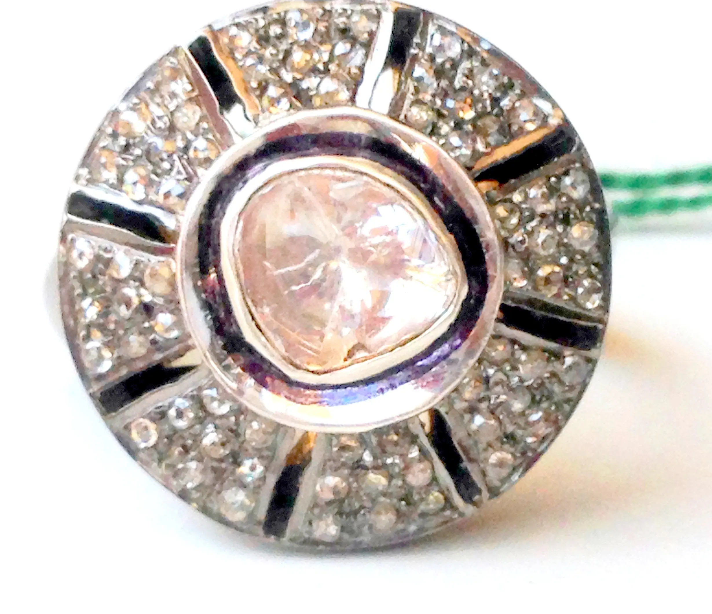 Single solitaire hand cut diamond ring studded with 100% natural Rose cut diamonds in pave set......and black rhodium and gold plated......................