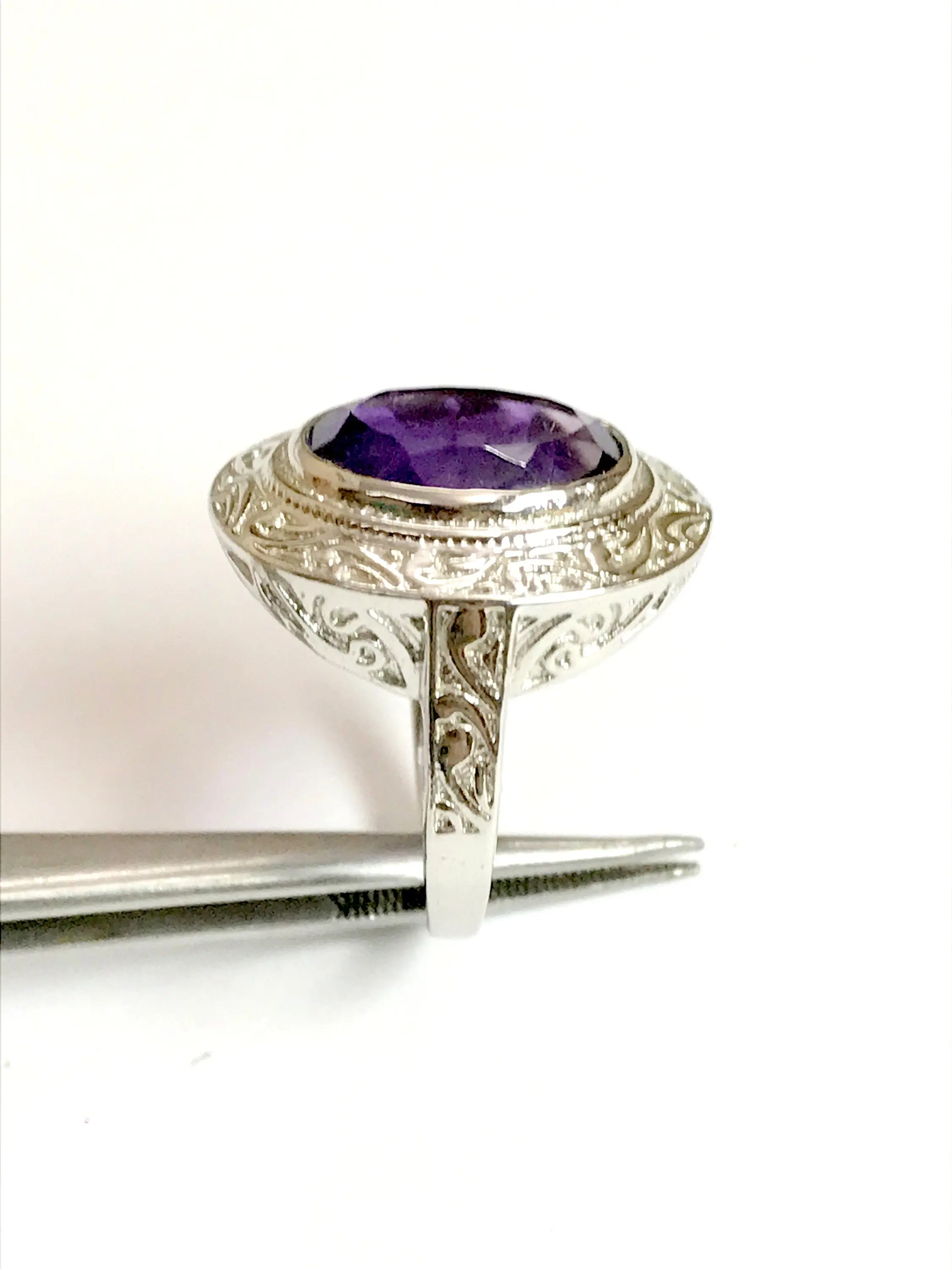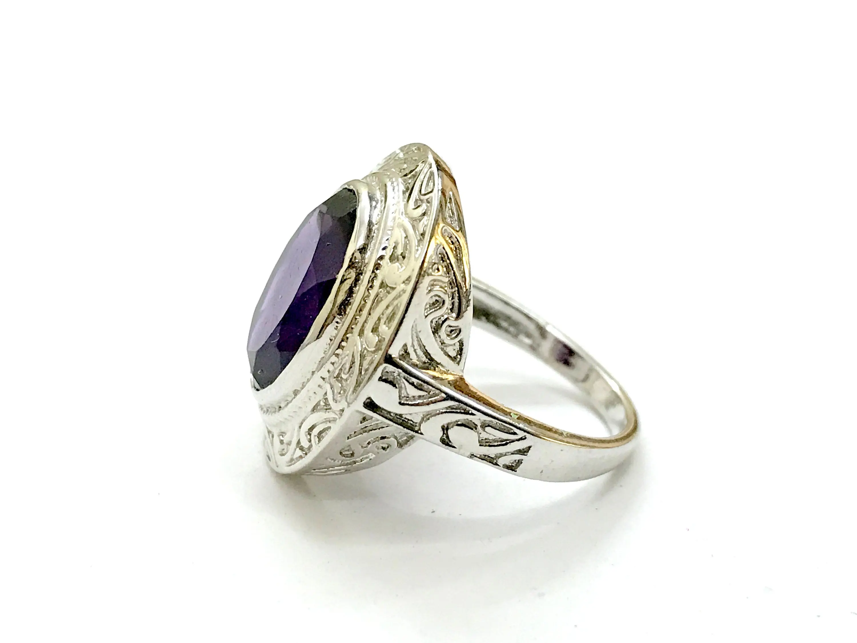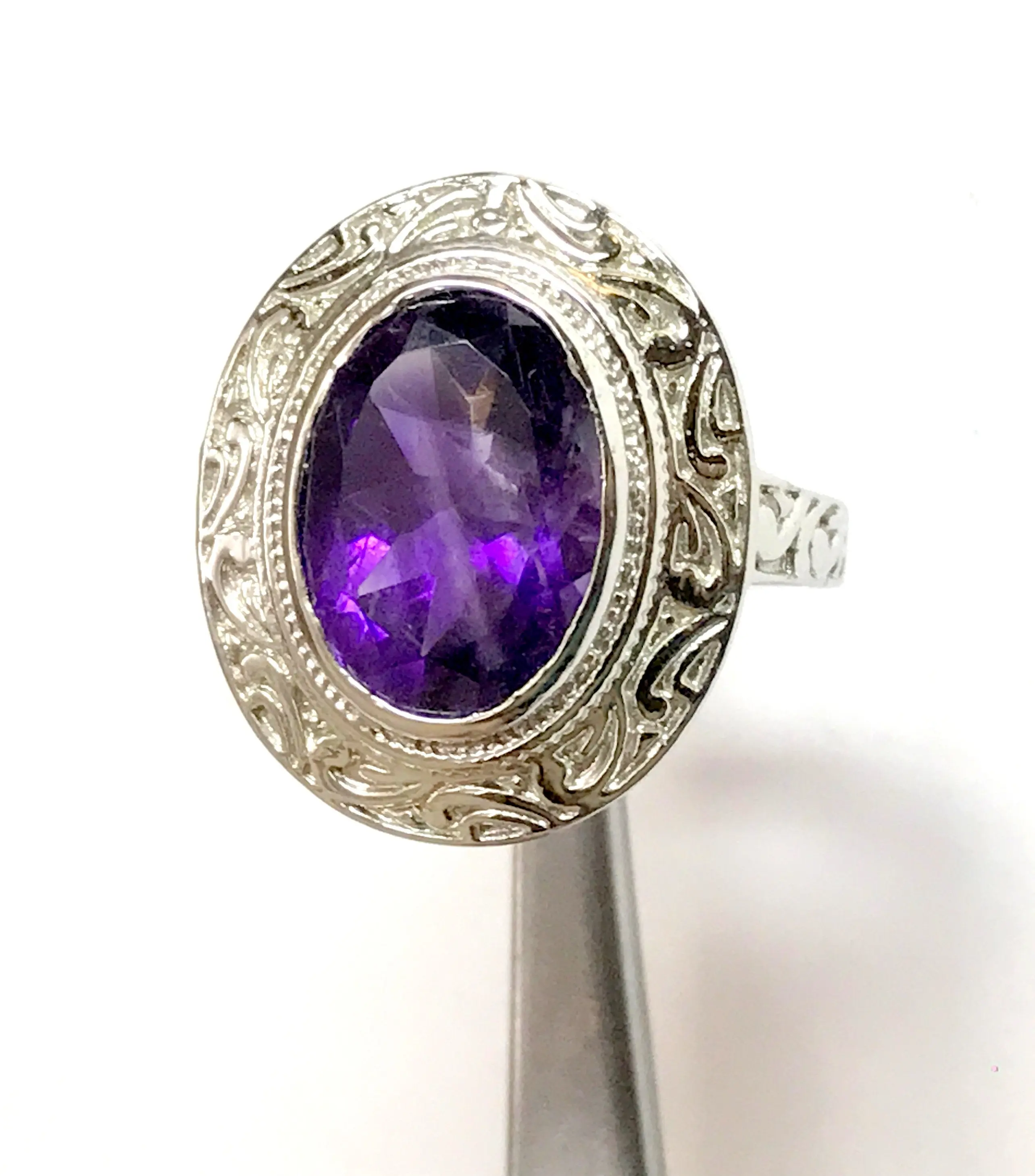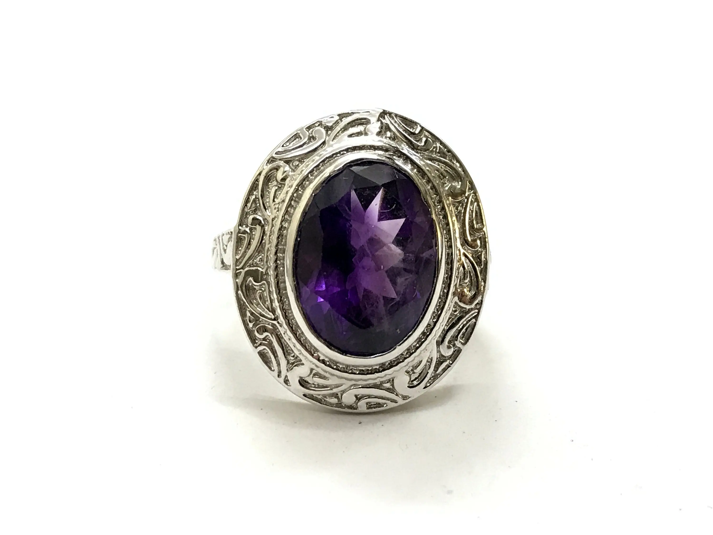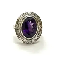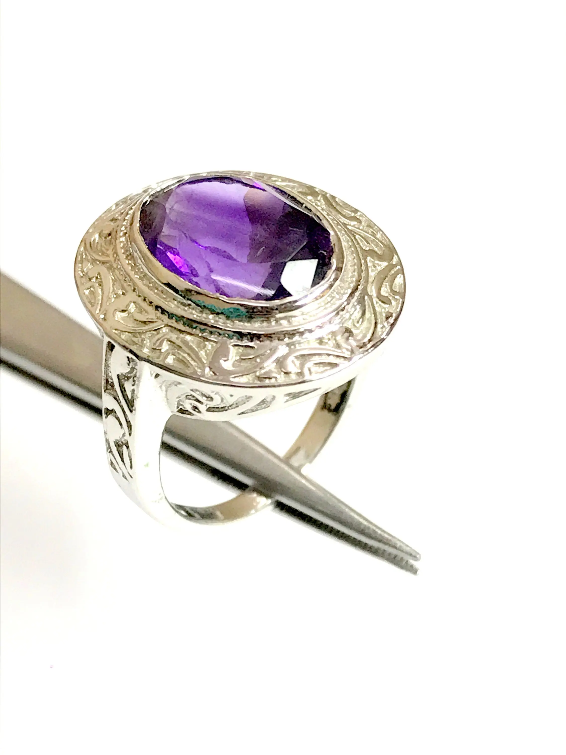 AMETHYST UNISEX RING ,925 sterling silver, February birthstone , Handmade Carving ring , Perfect for Him & Her,Cocktail Ring, Statement Ring