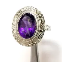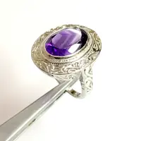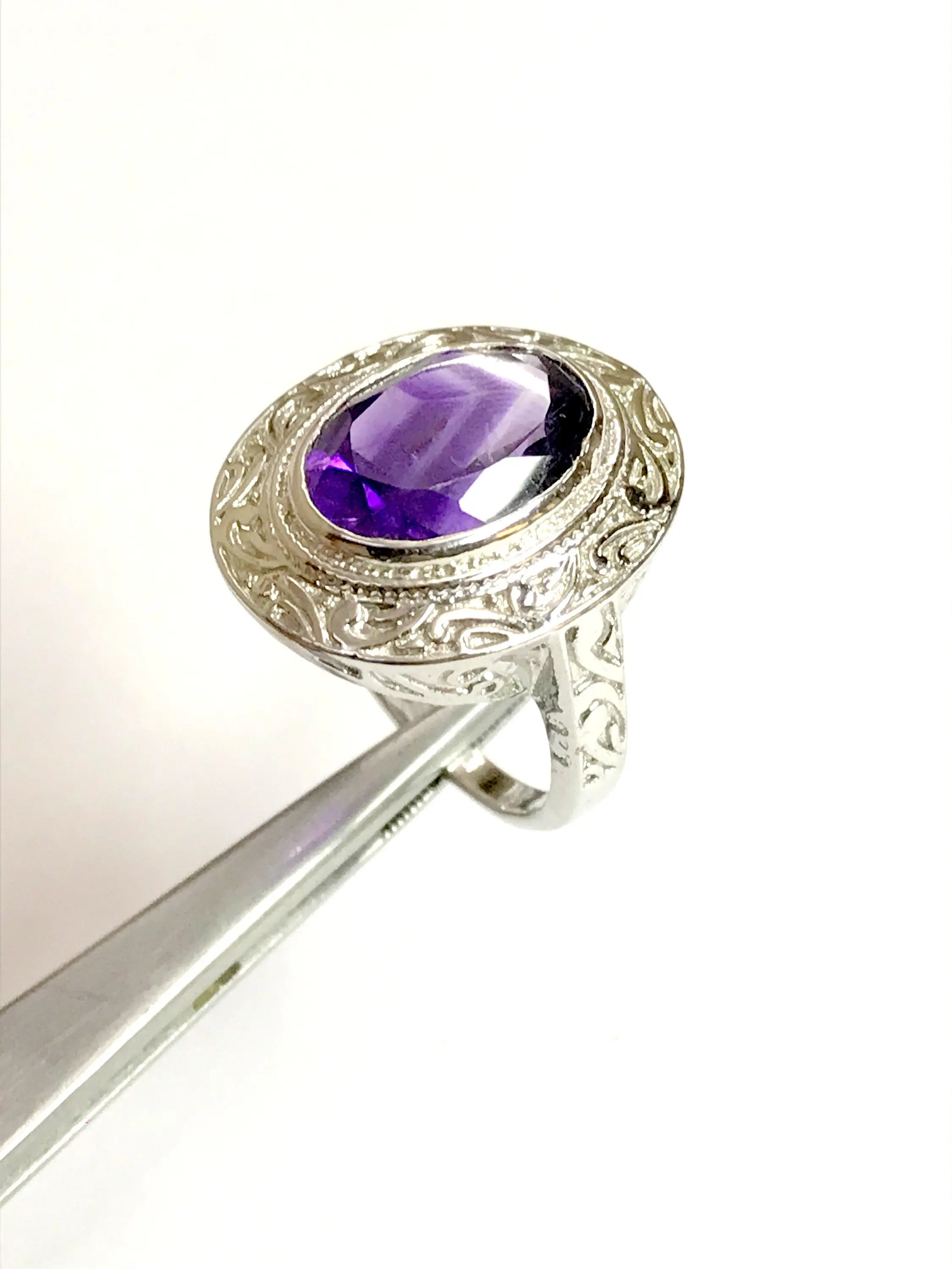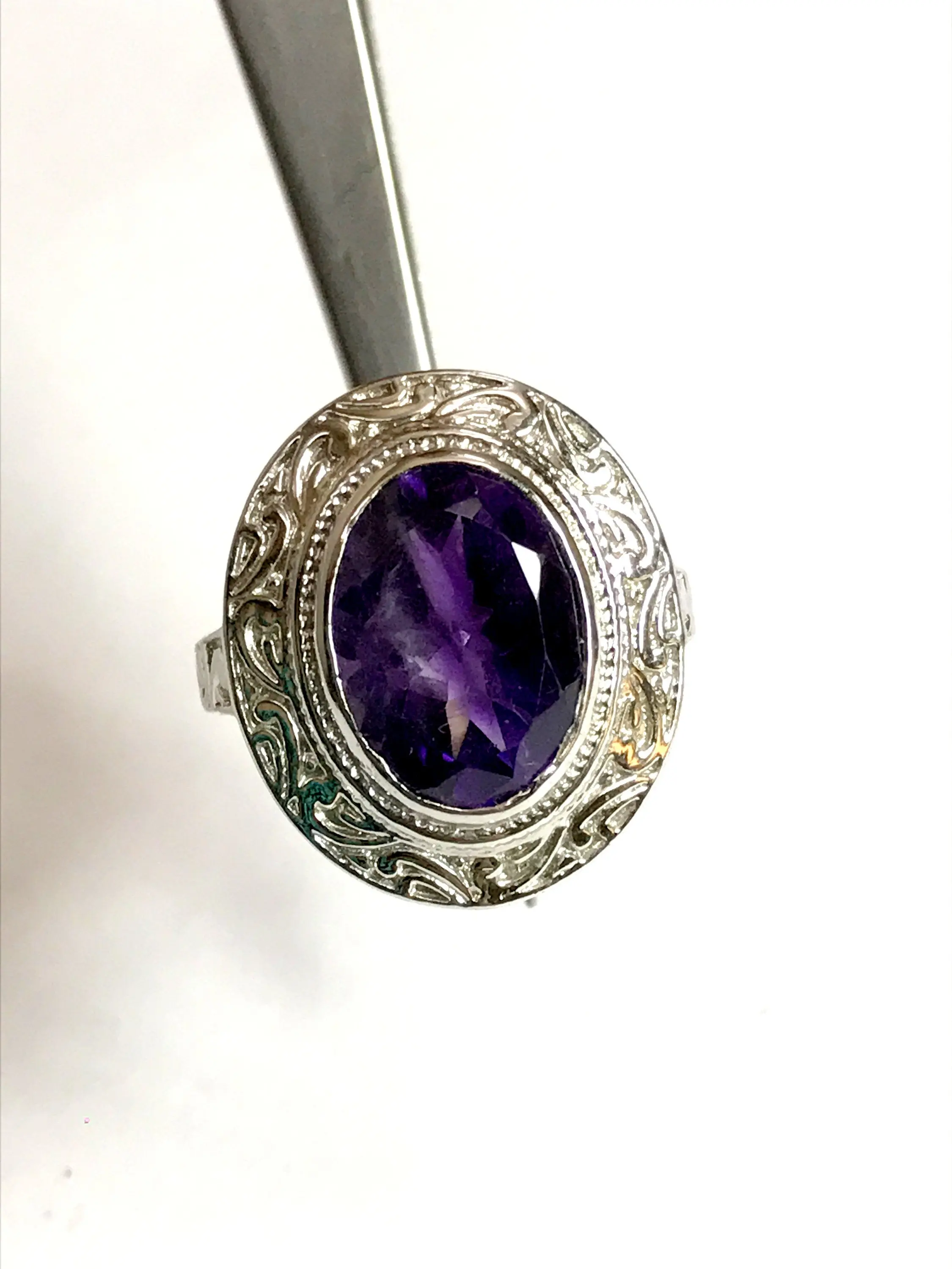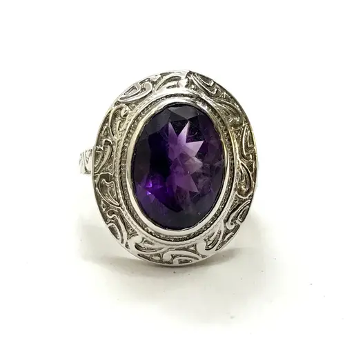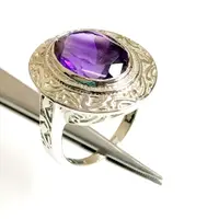 AMETHYST UNISEX RING ,925 sterling silver, February birthstone , Handmade Carving ring ...
