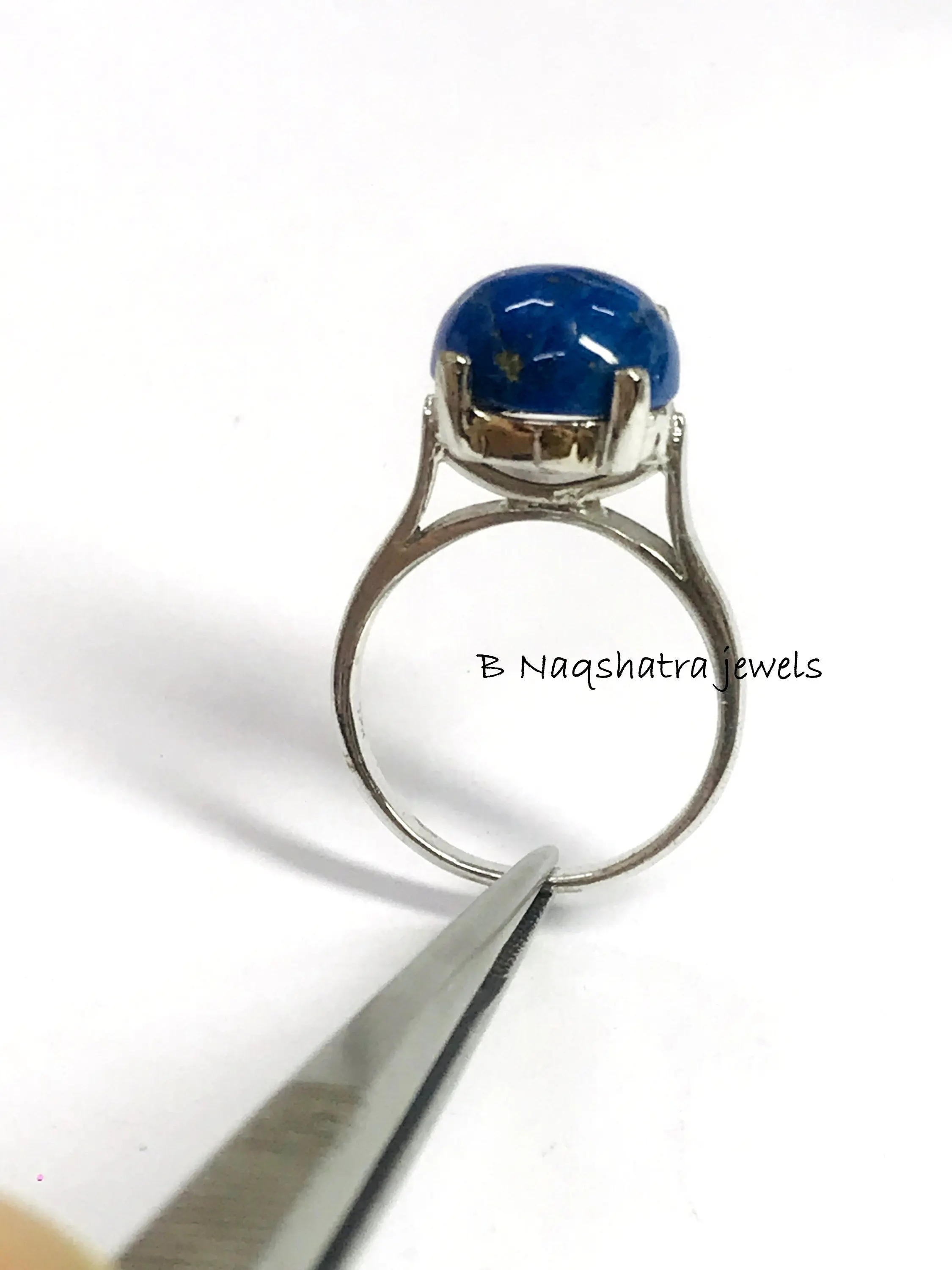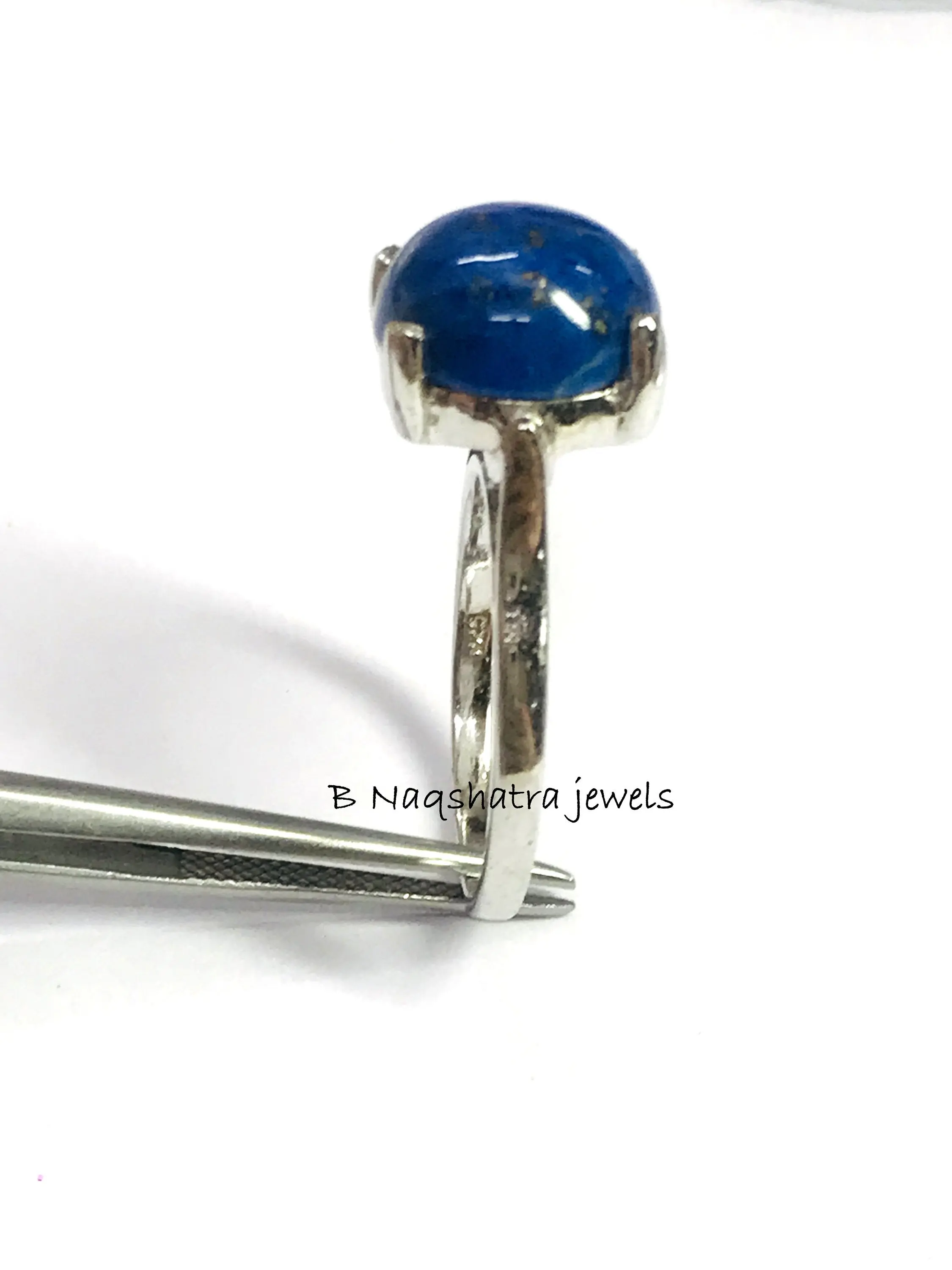 92.5 sterling sliver with rhodium plated rings studded with semi - precious stone as LAPIS LAZULI