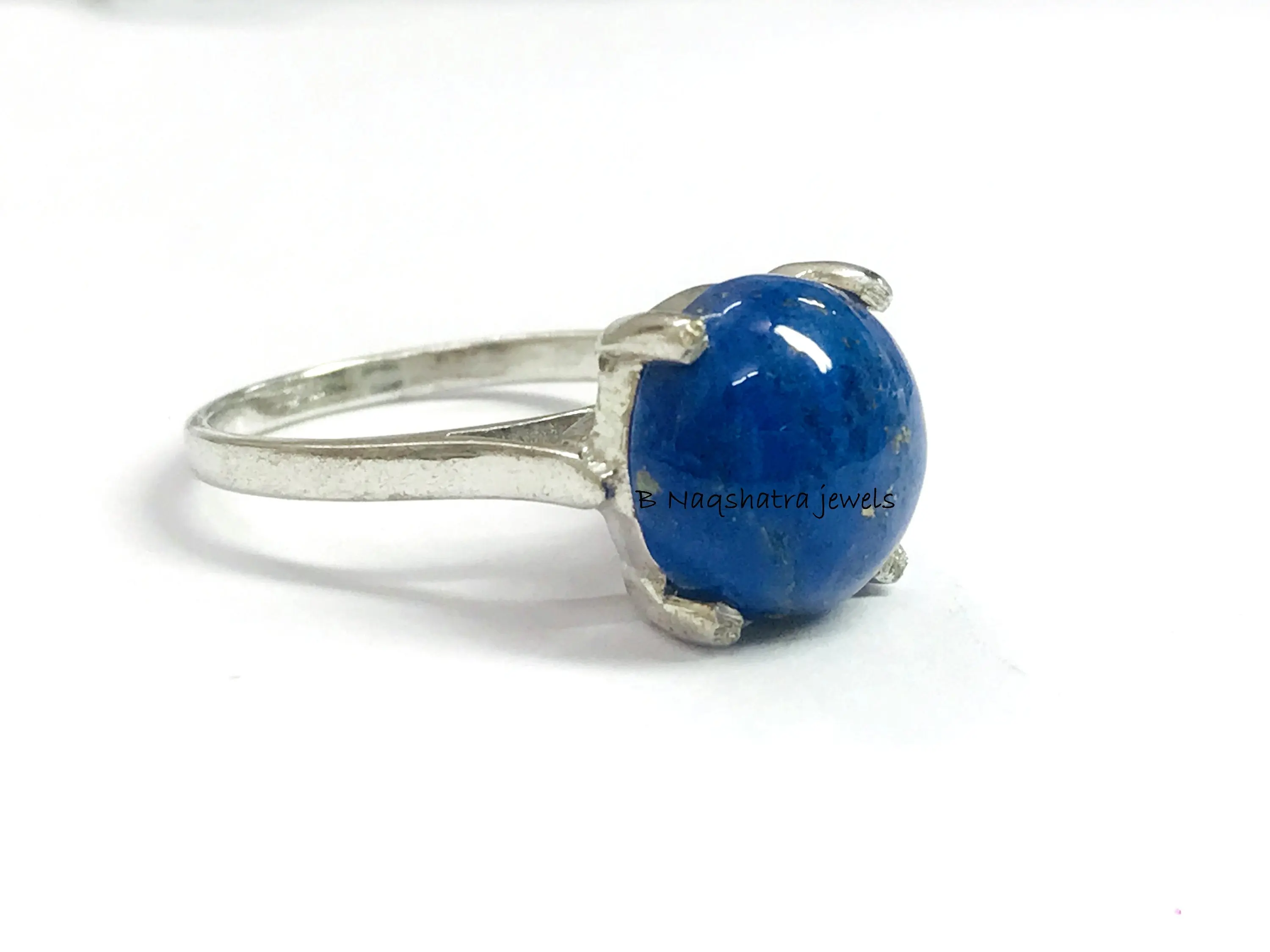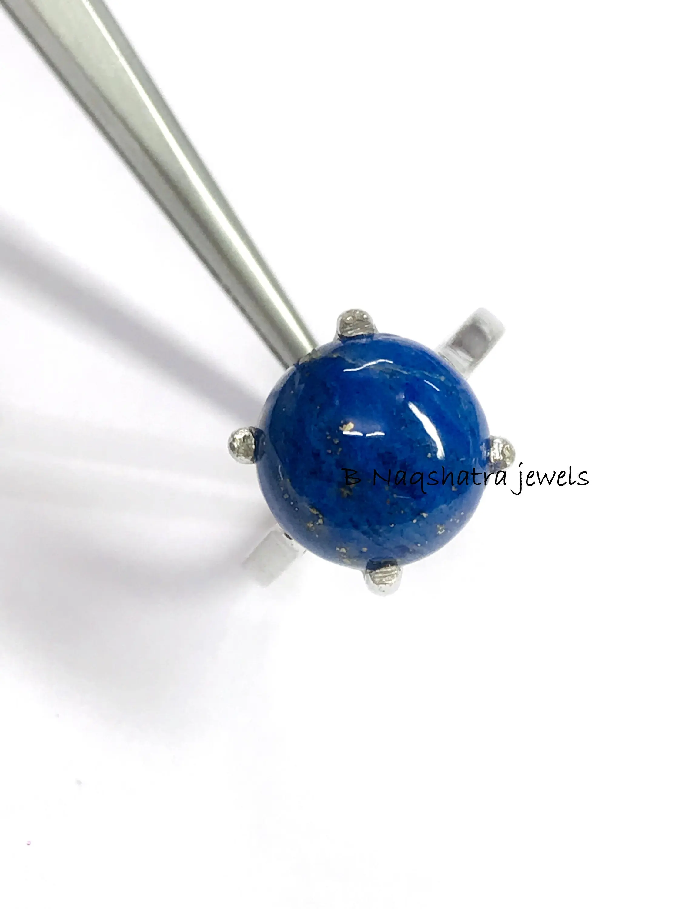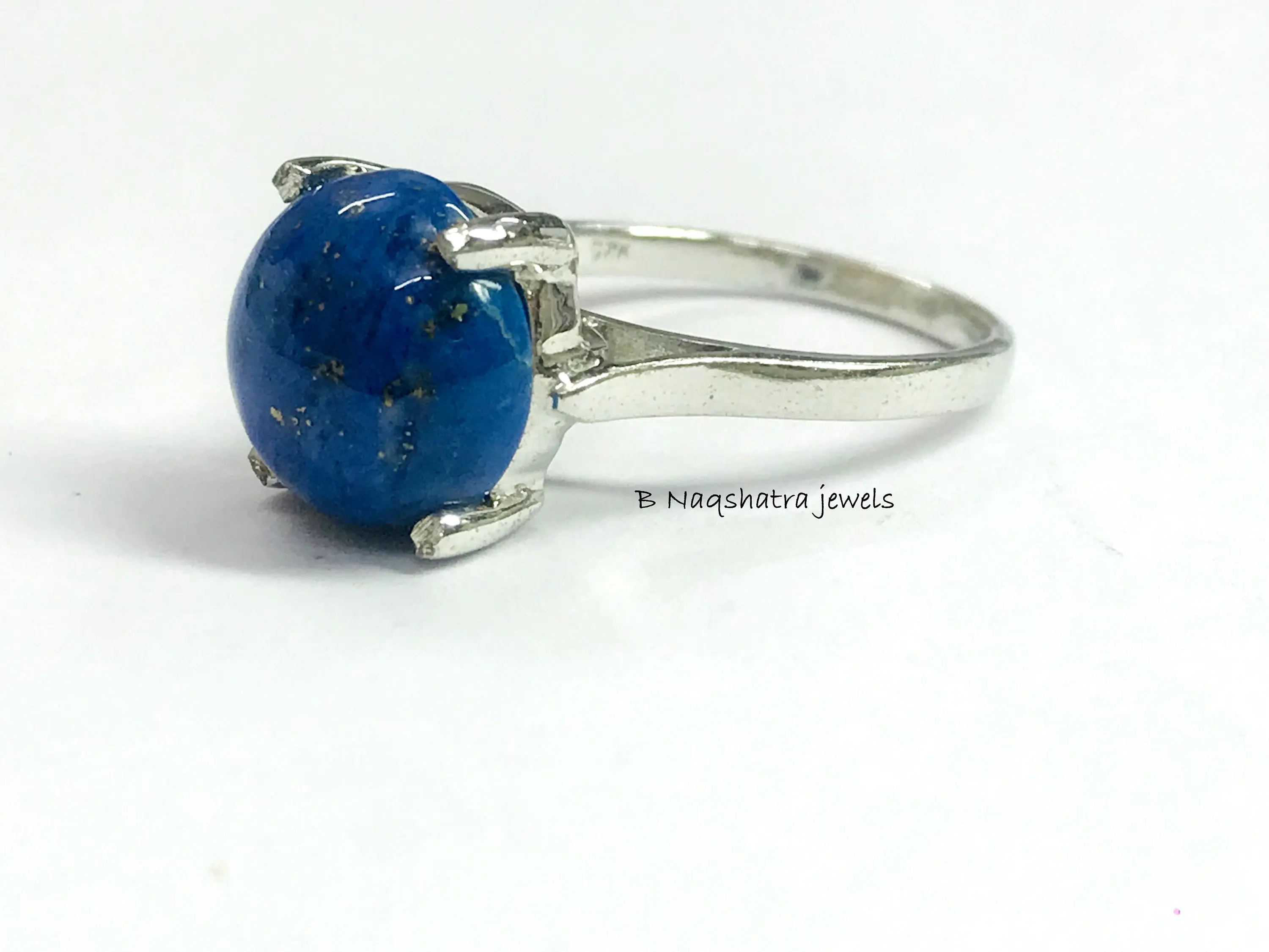 LAPIS LAZULI CABOCHON silver ring ,8 mm round ,Sterling Silver, Yeats, Azurite , Pyrite , Aoki lapis ,Blue Color ring,