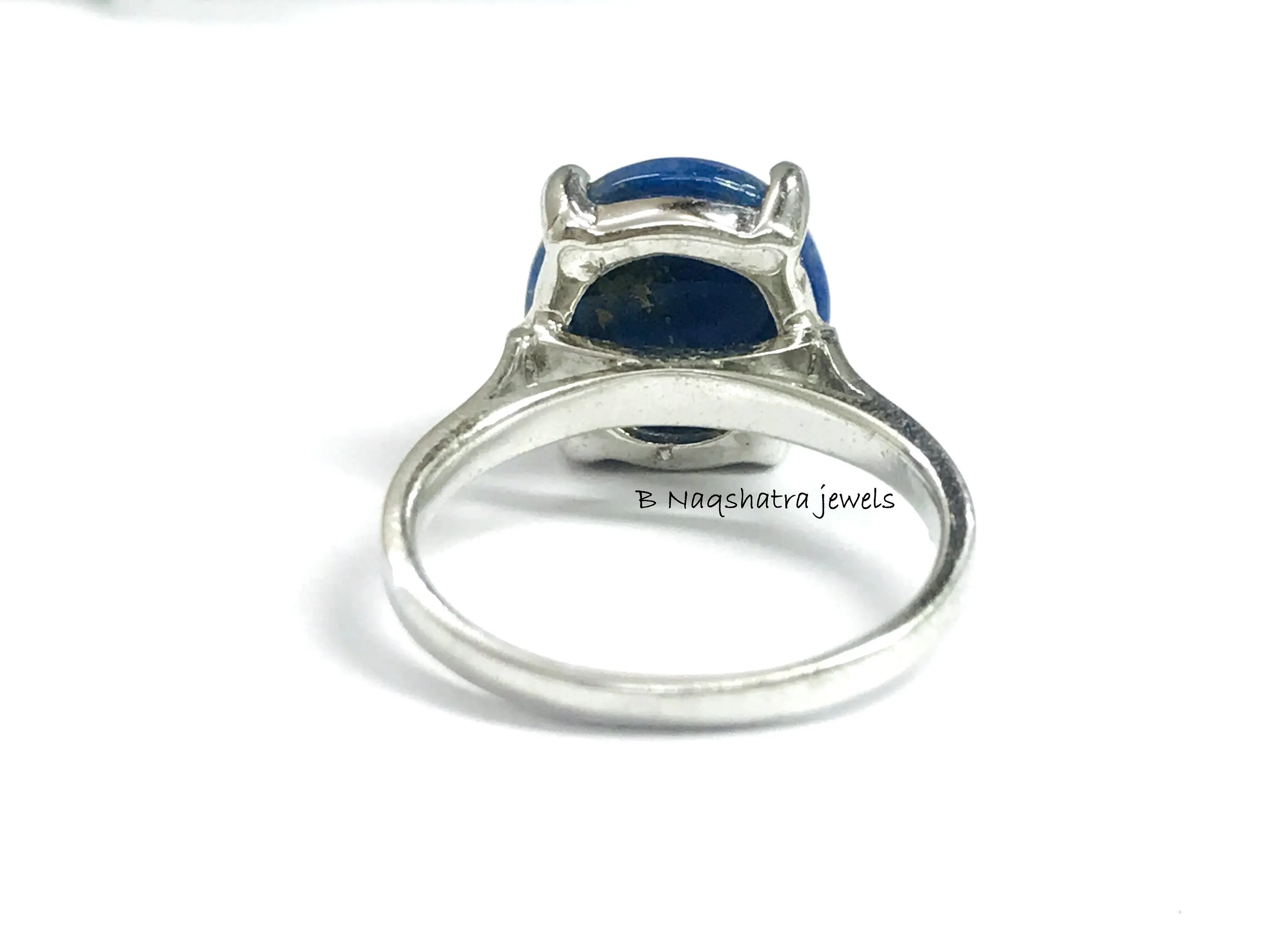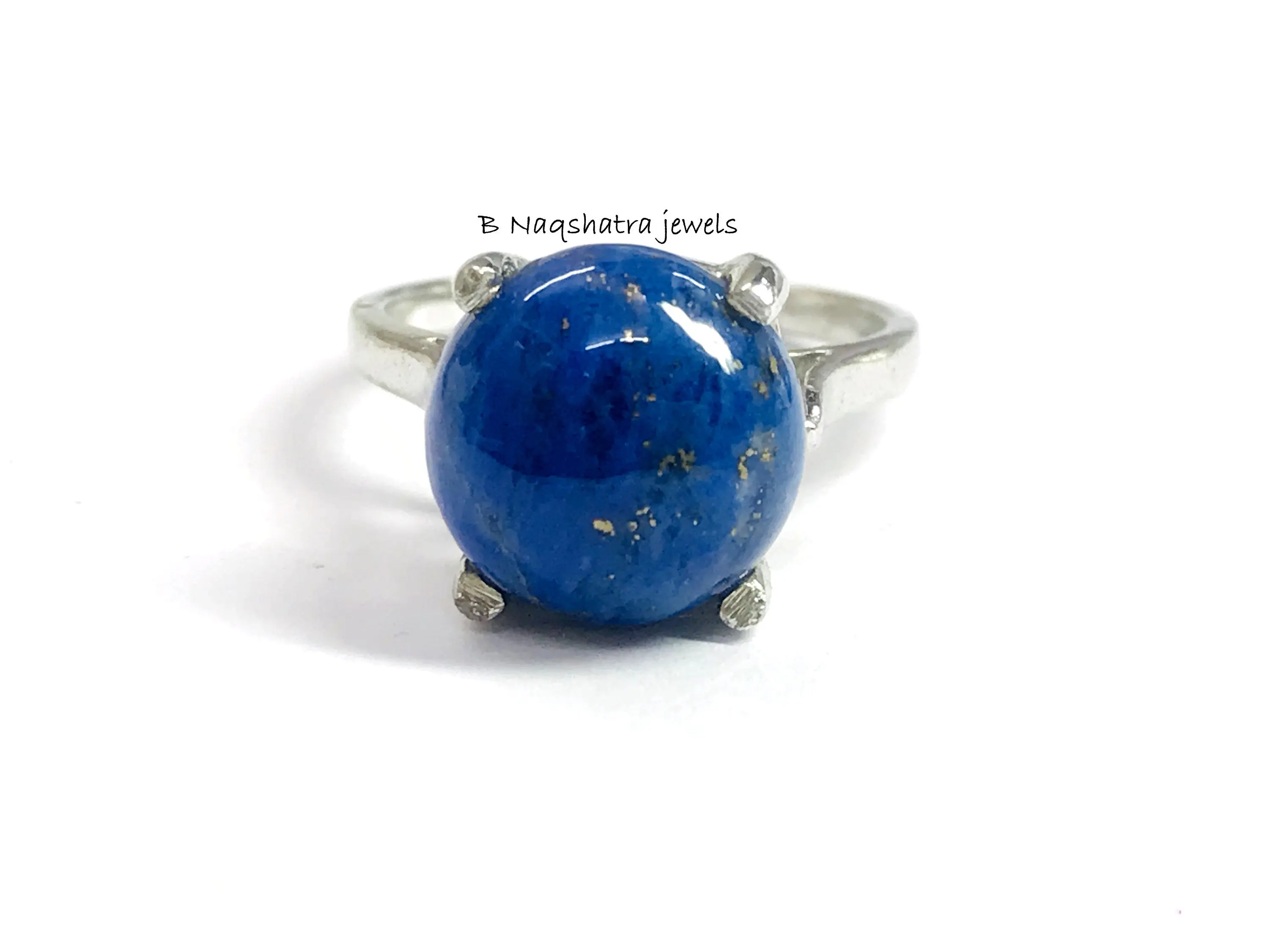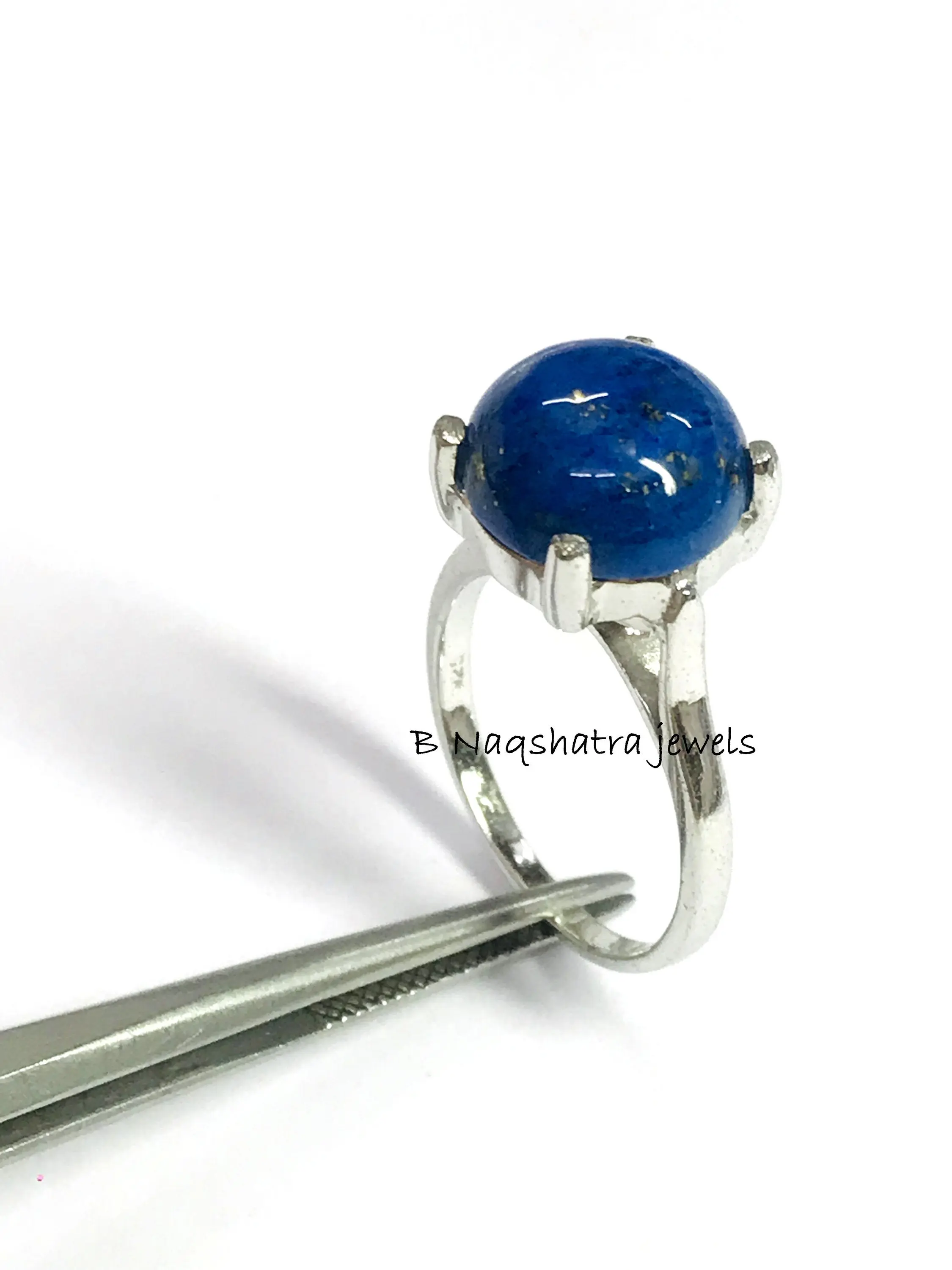 LAPIS LAZULI CABOCHON silver ring ,8 mm round ,Sterling Silver, Yeats, Azurite , Pyrite , Aoki lapis ,Blue Color ring,
