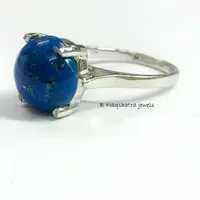 super fine quality of LAPIS LAZULI CABOCHON silver ring ,8 mm round ,sterling silver, Yeats, Azurite , Pyrite , Aoki lapis ,blue color ring