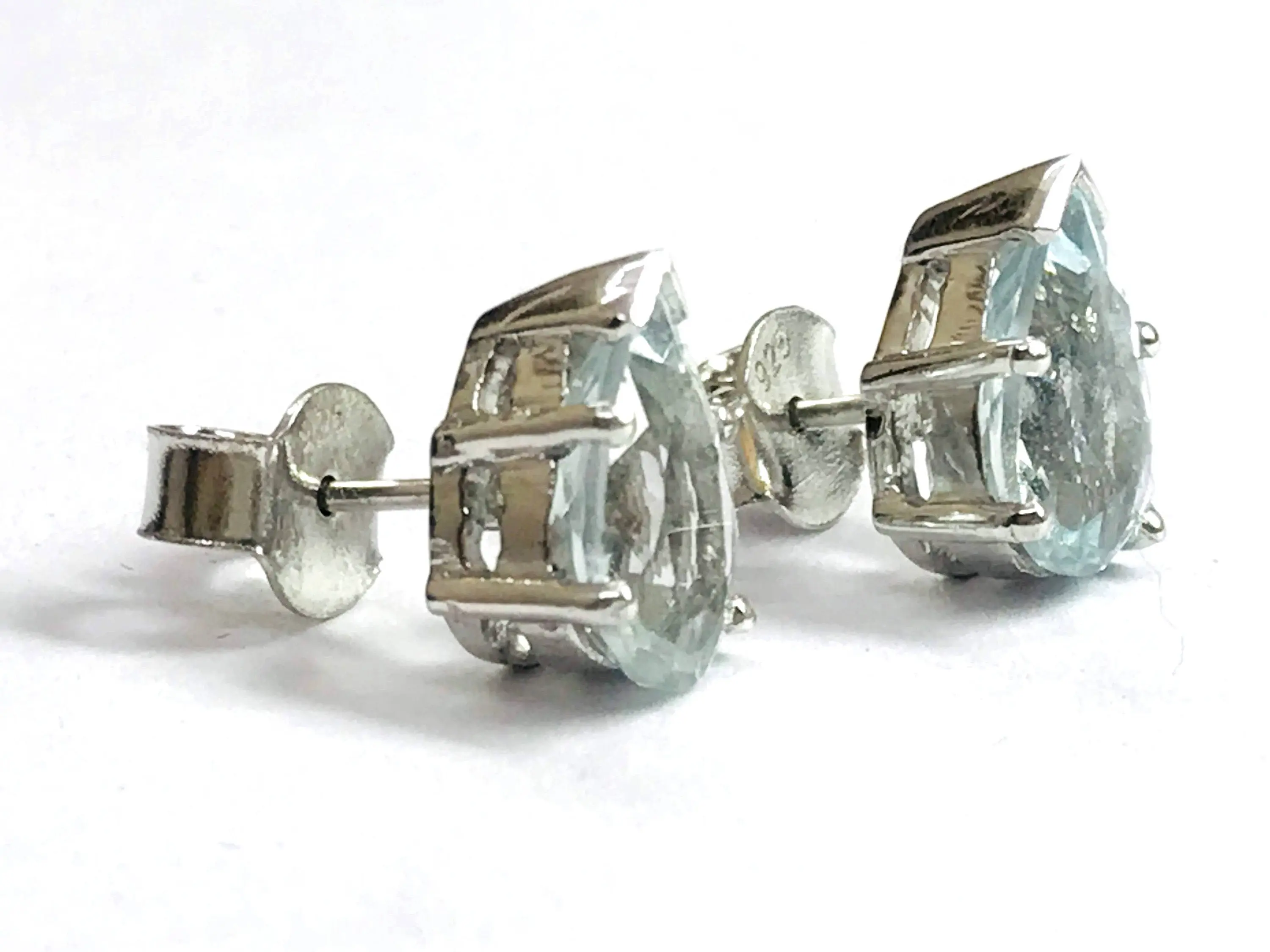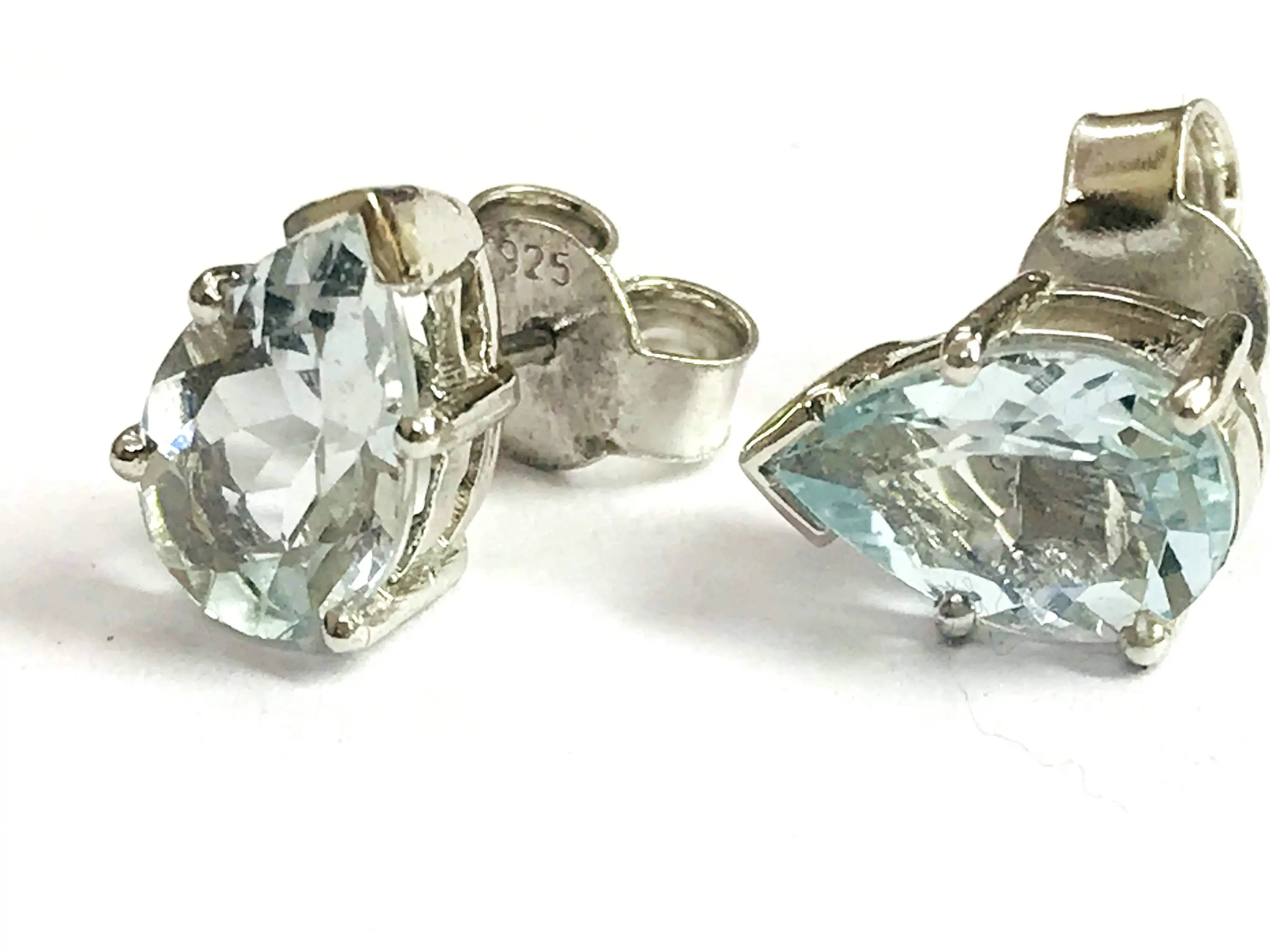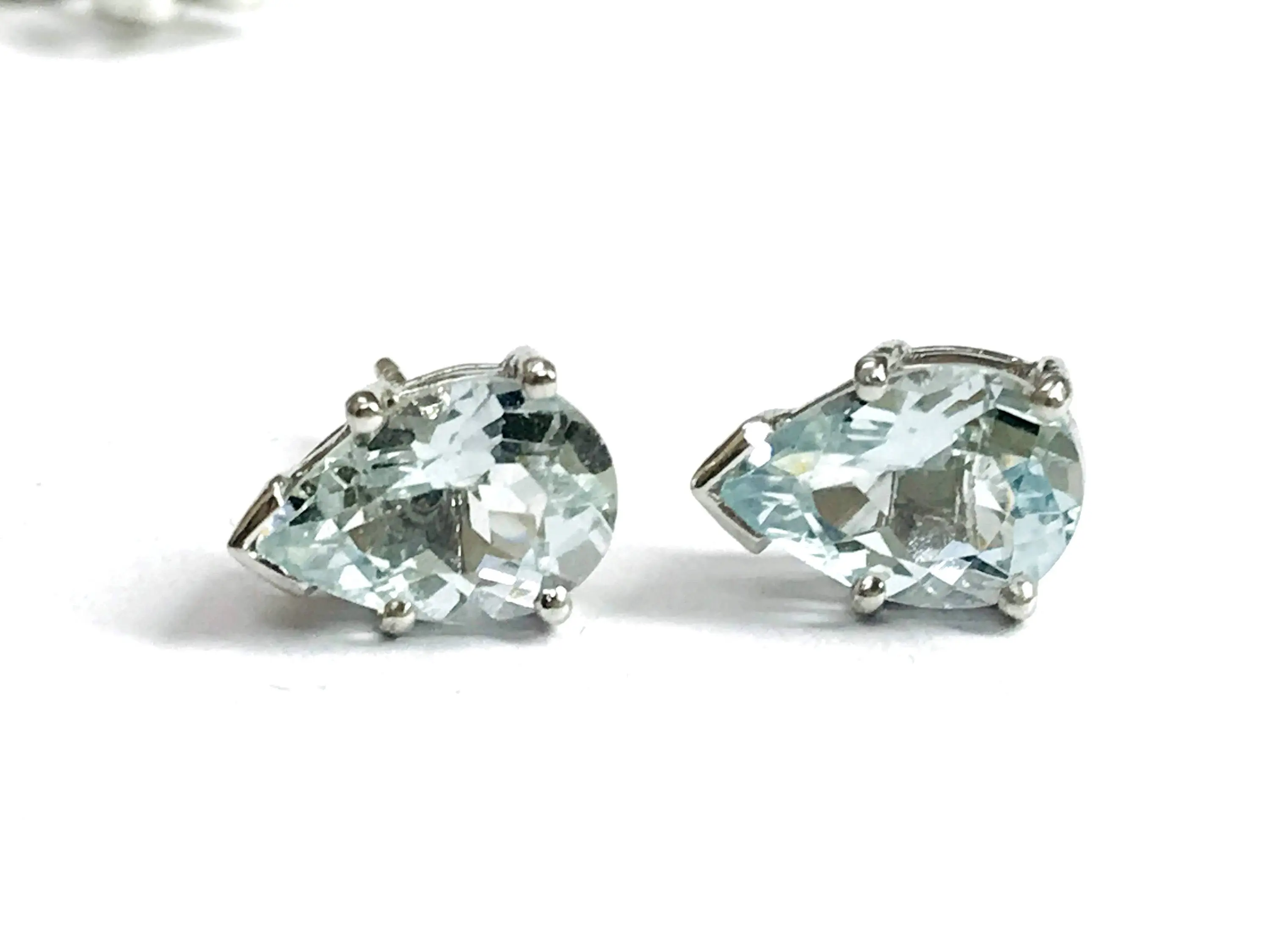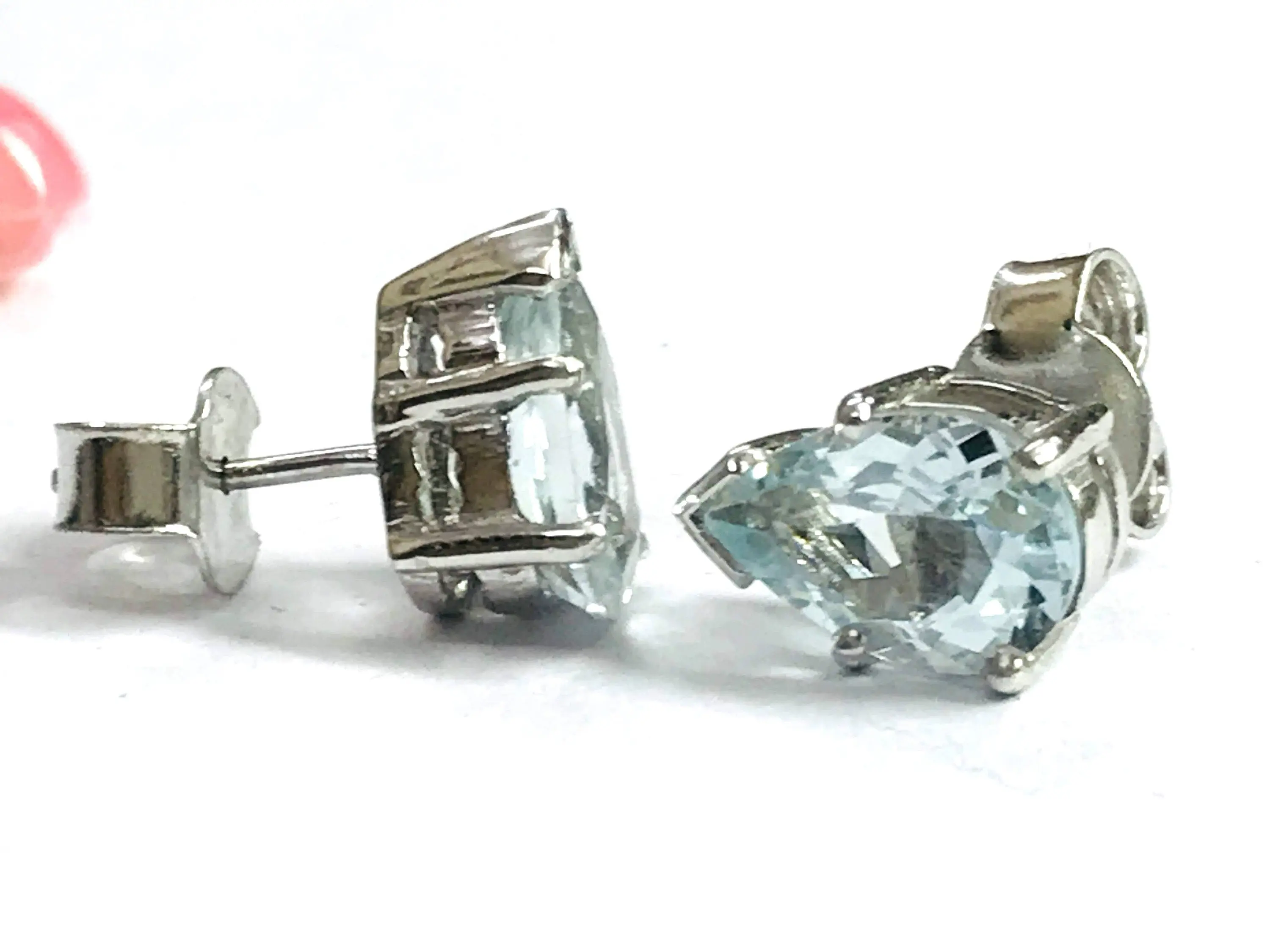 AQUAMARINE PEAR EARRINGS ,Gift for Her,Mothers day Gift,Stud earring,Natural aquamarine,March Birthstone