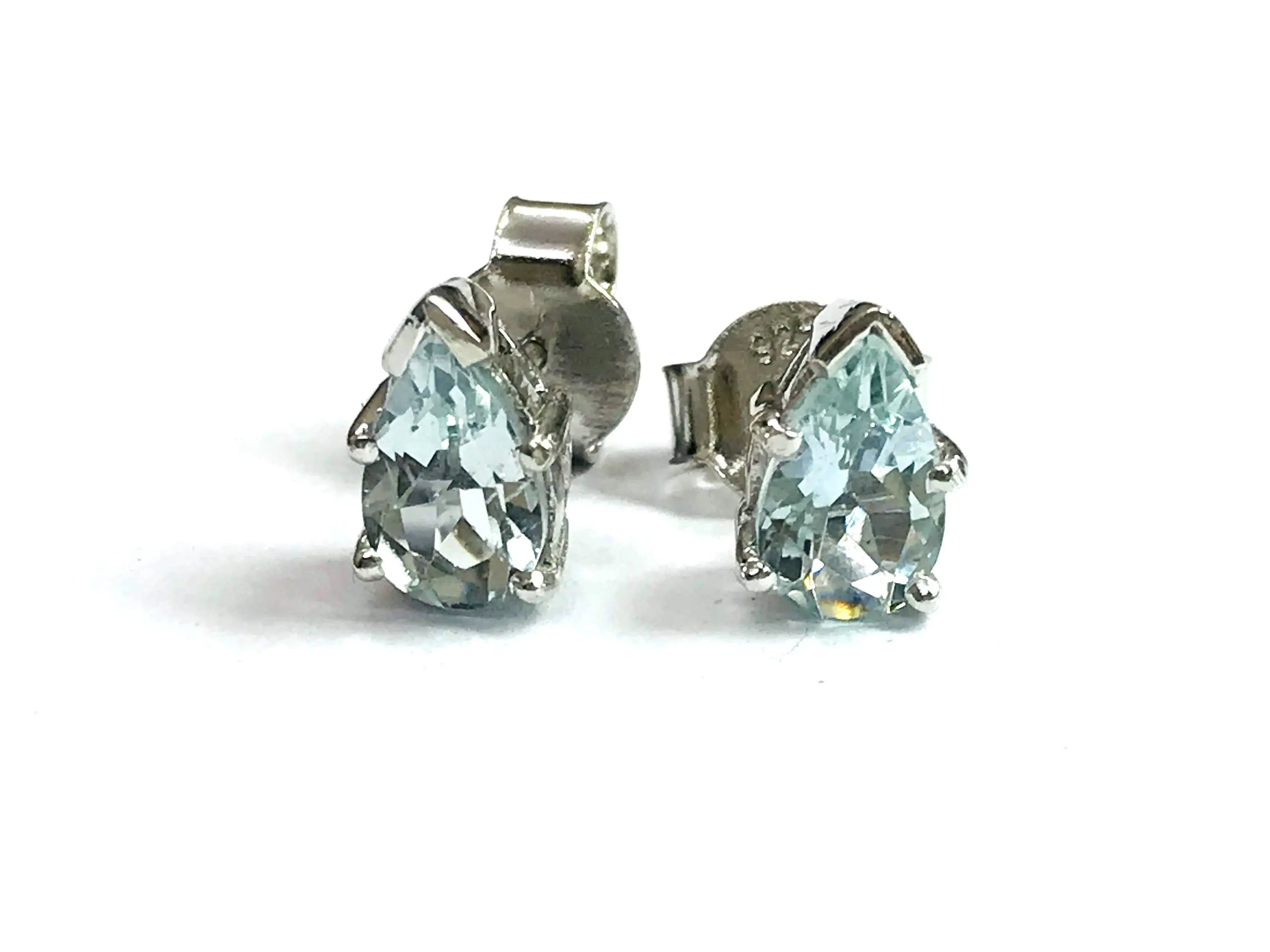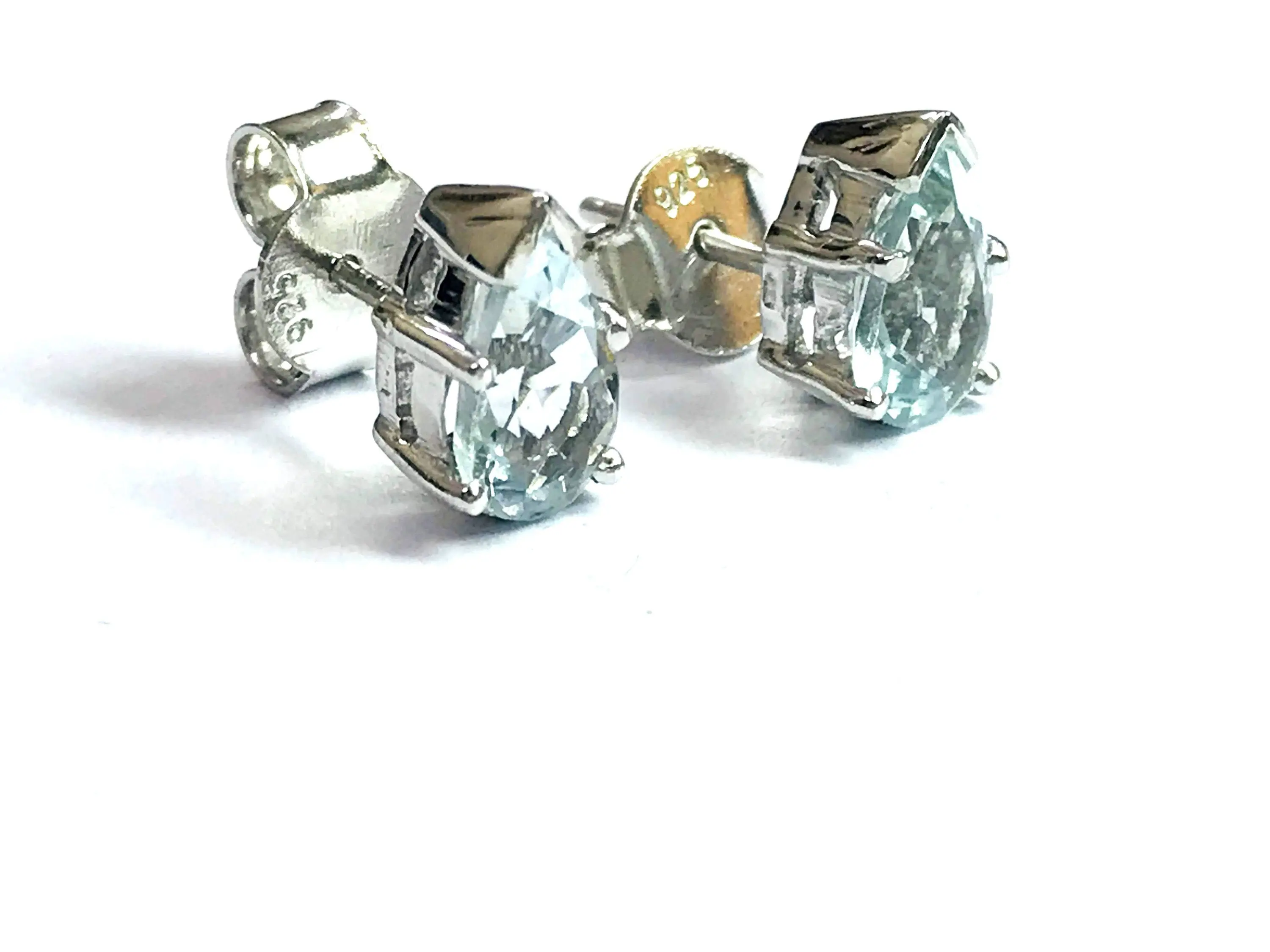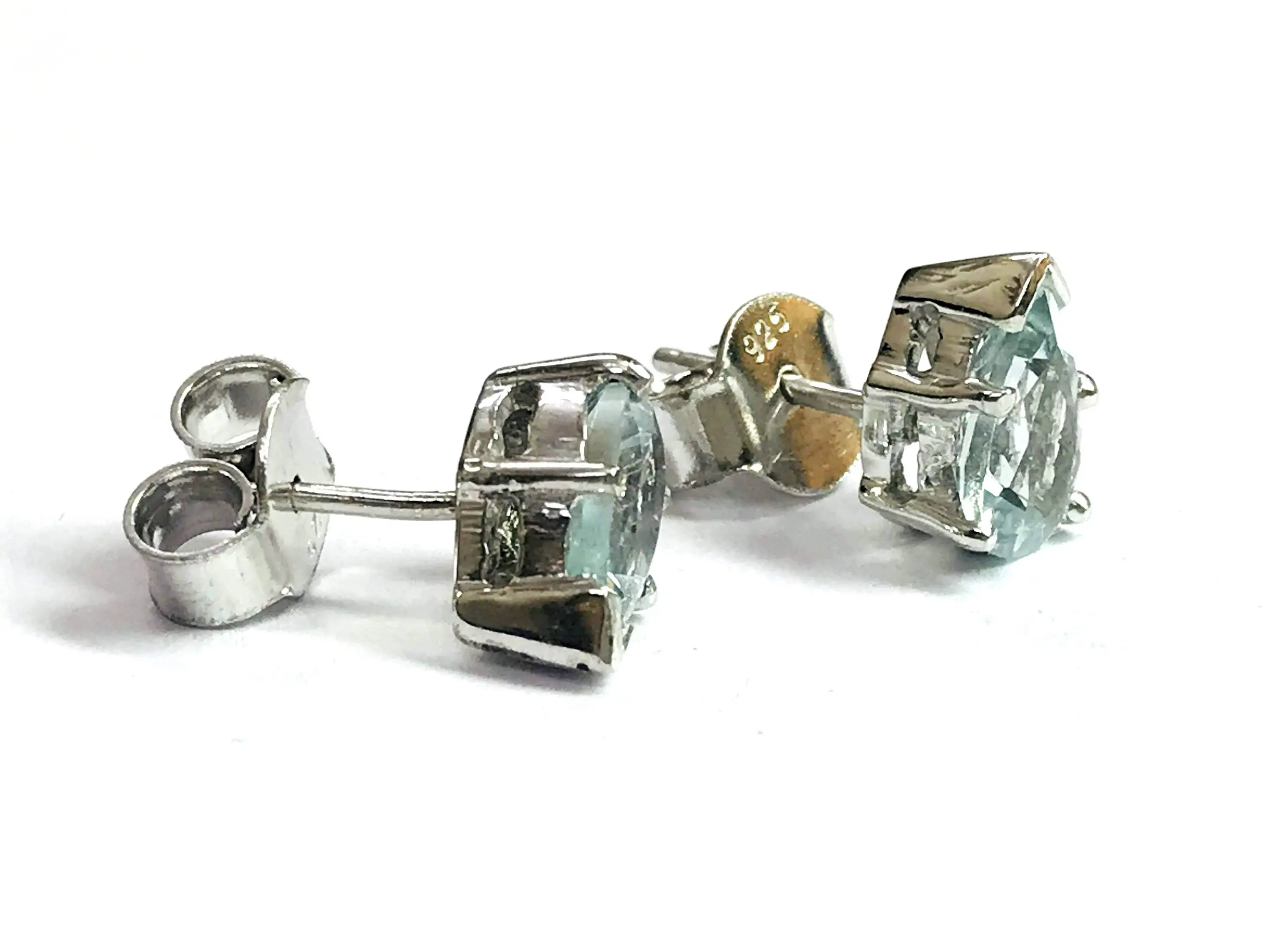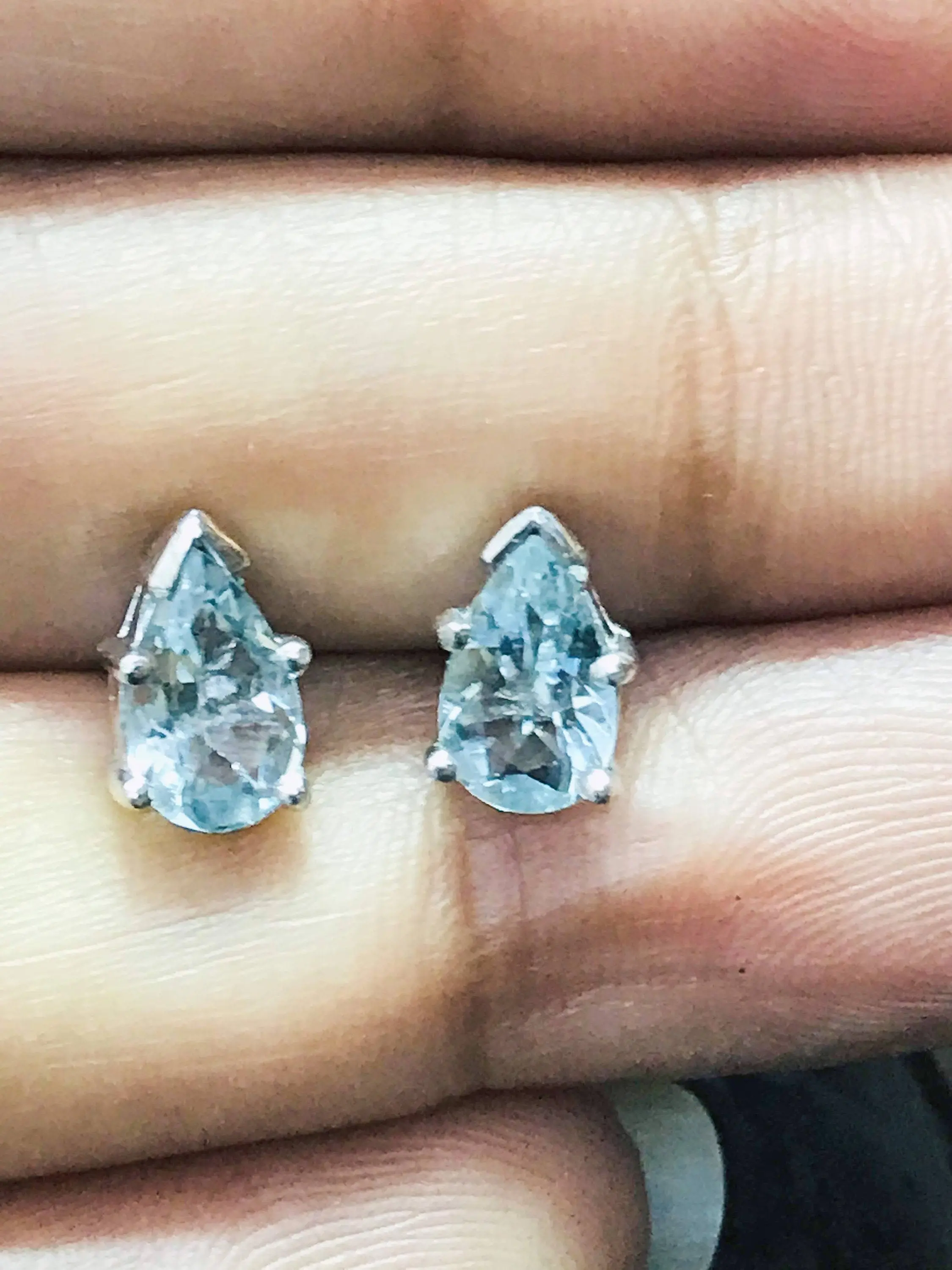AQUAMARINE STUD EARRINGS , March birthstone ,Tops ,925 sterling silver ,seawater earring,natural aquamarine,sky blue earring