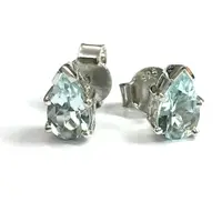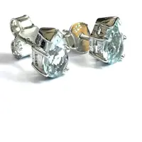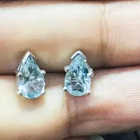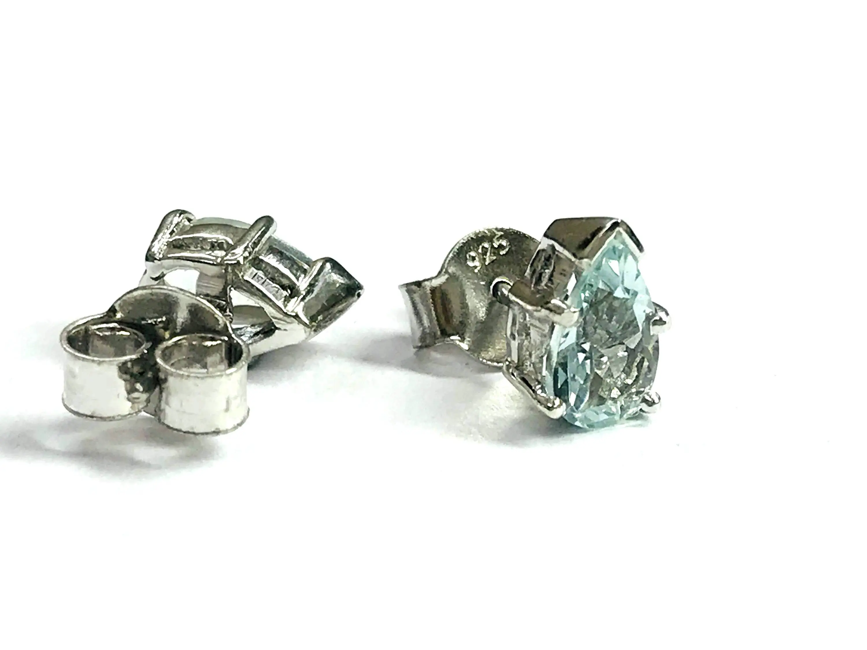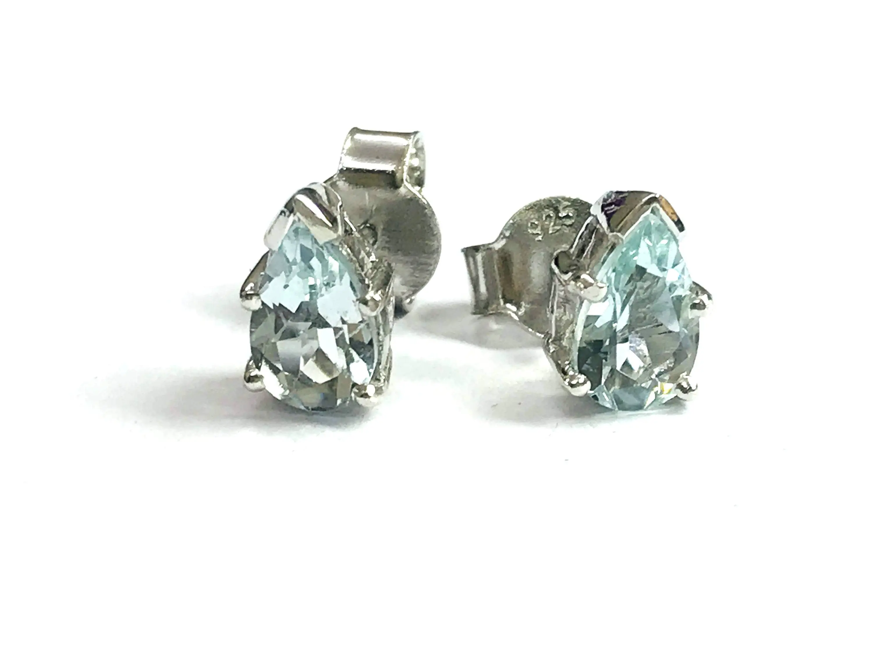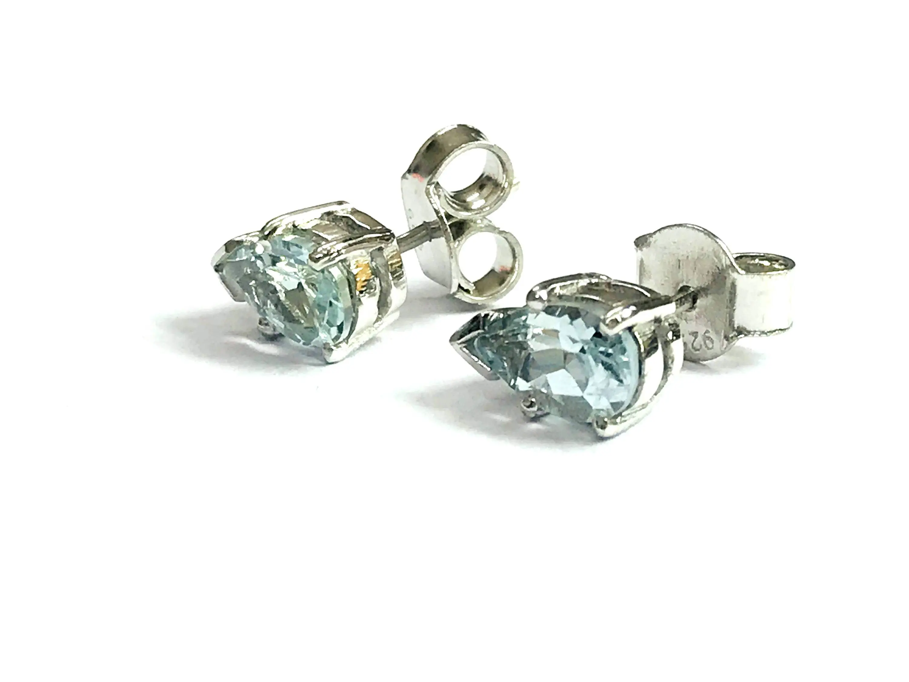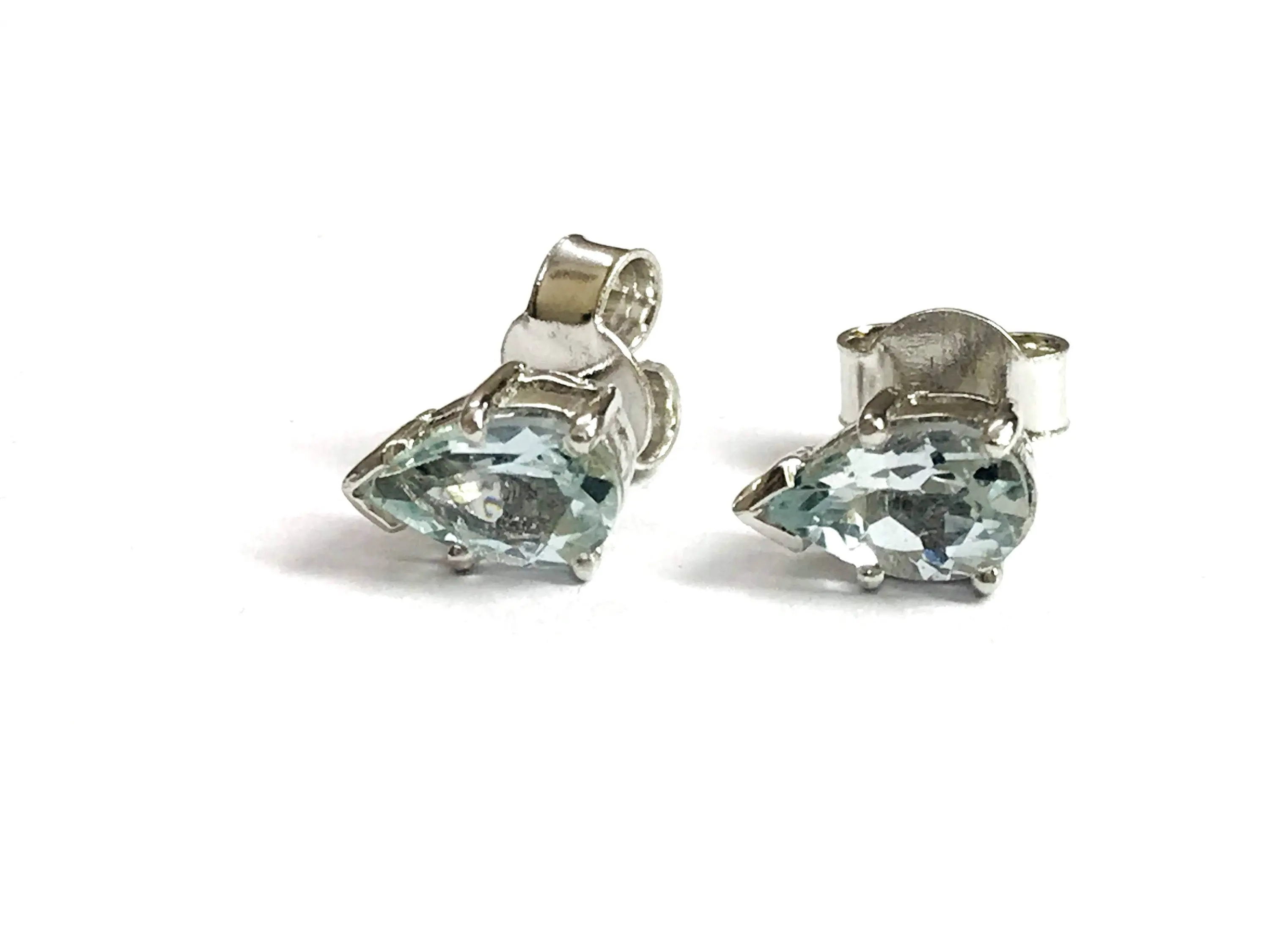 AQUAMARINE STUD EARRINGS , March birthstone ,Tops ,925 sterling silver ,seawater earring,natural aquamarine,sky blue earring