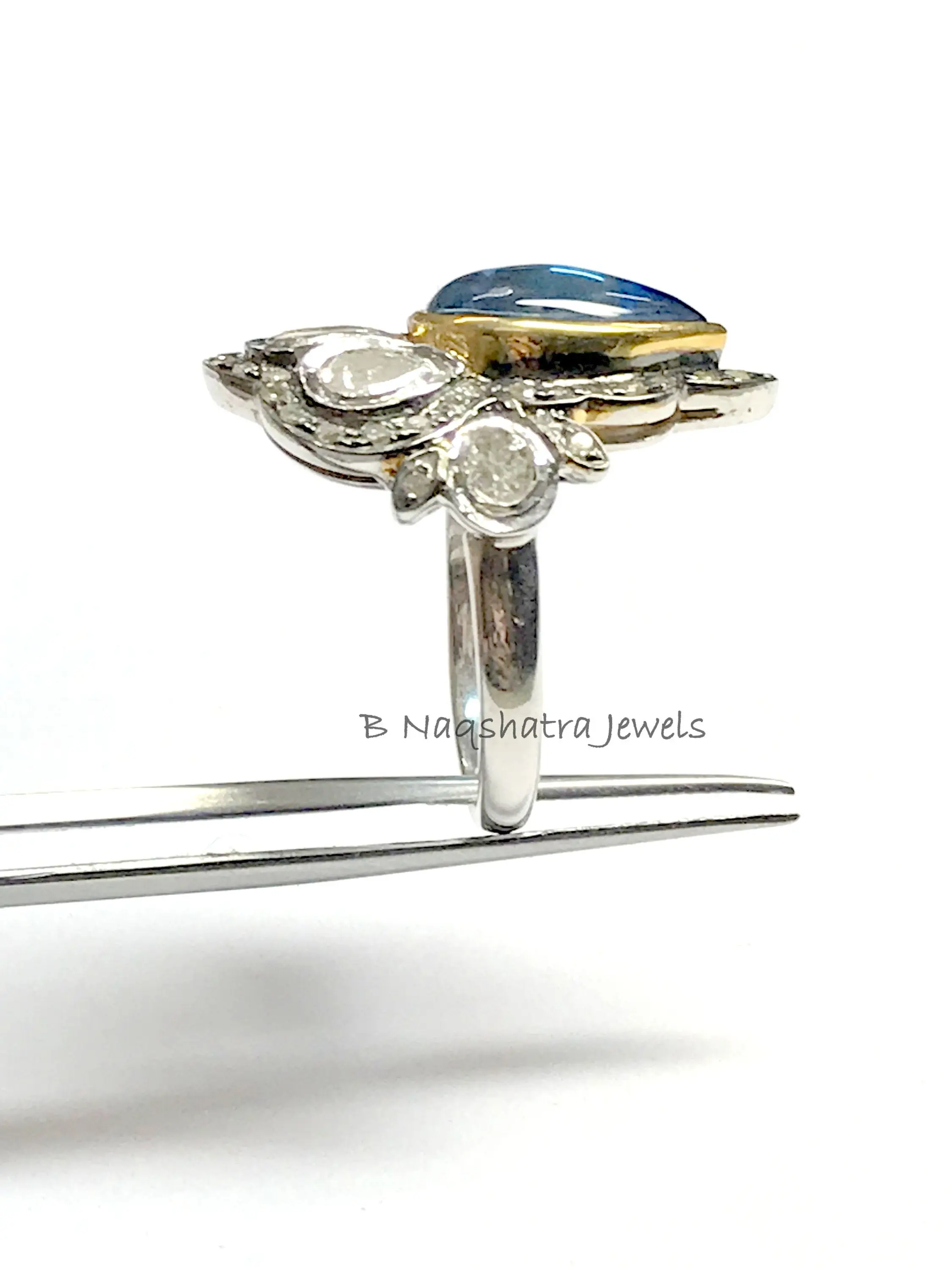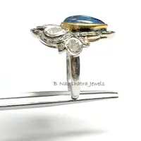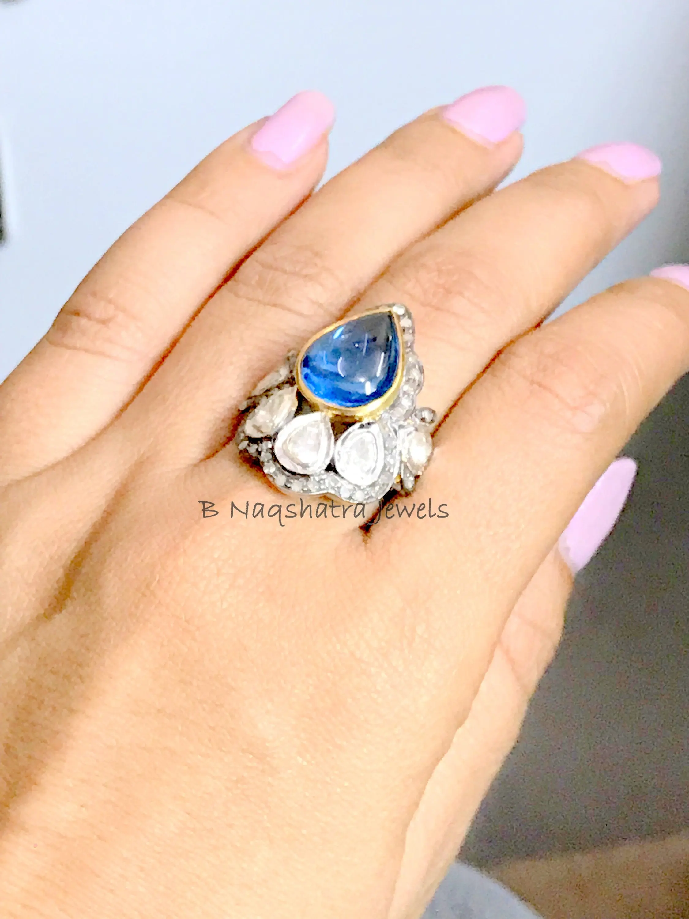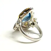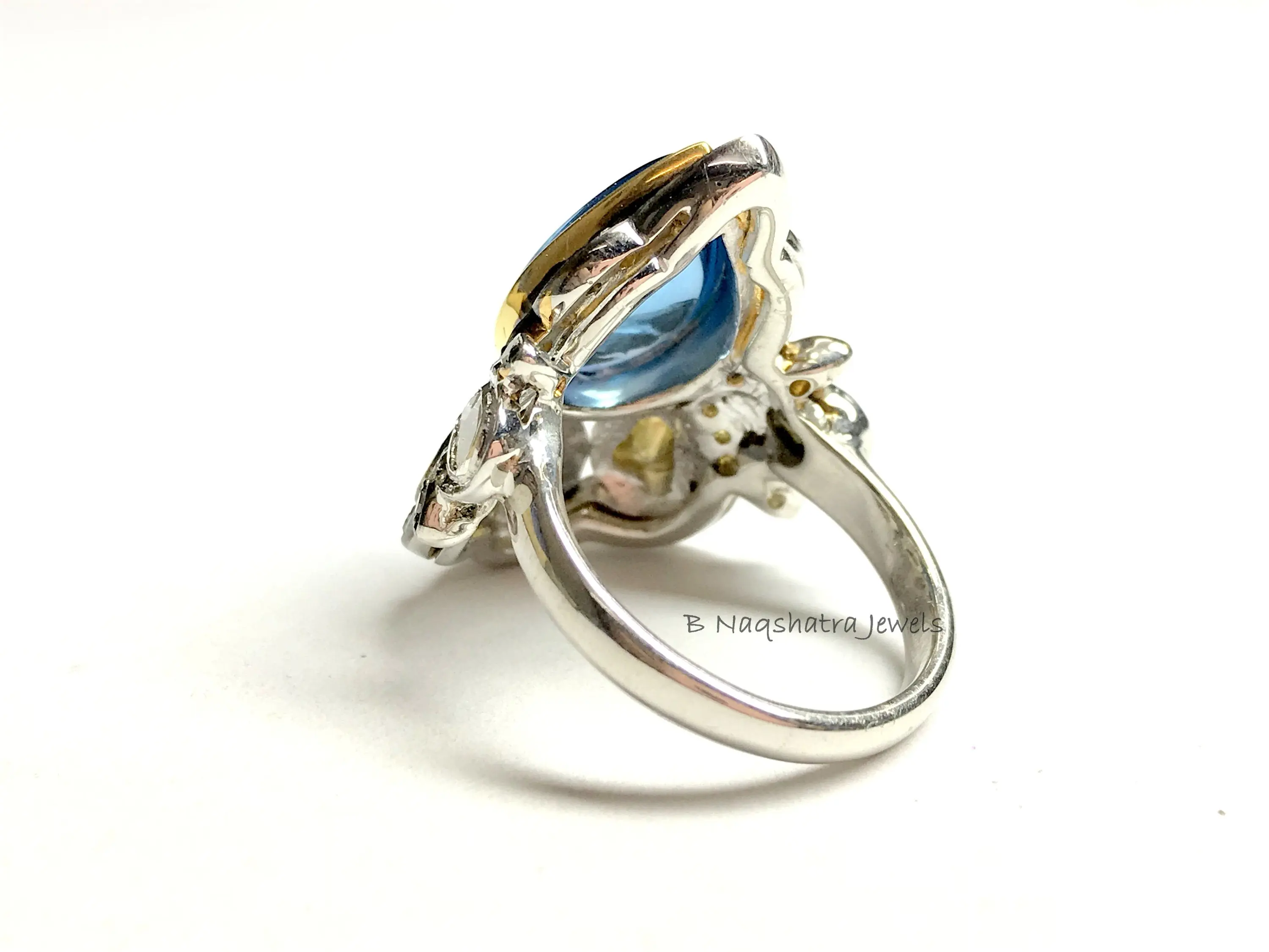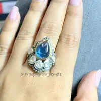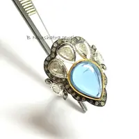 SWISS BLUE TOPAZ Rose cut diamond Rings ,December birthstone ,Teardrop Blue Topaz Cabochon ,Cocktail & Engagement Ring