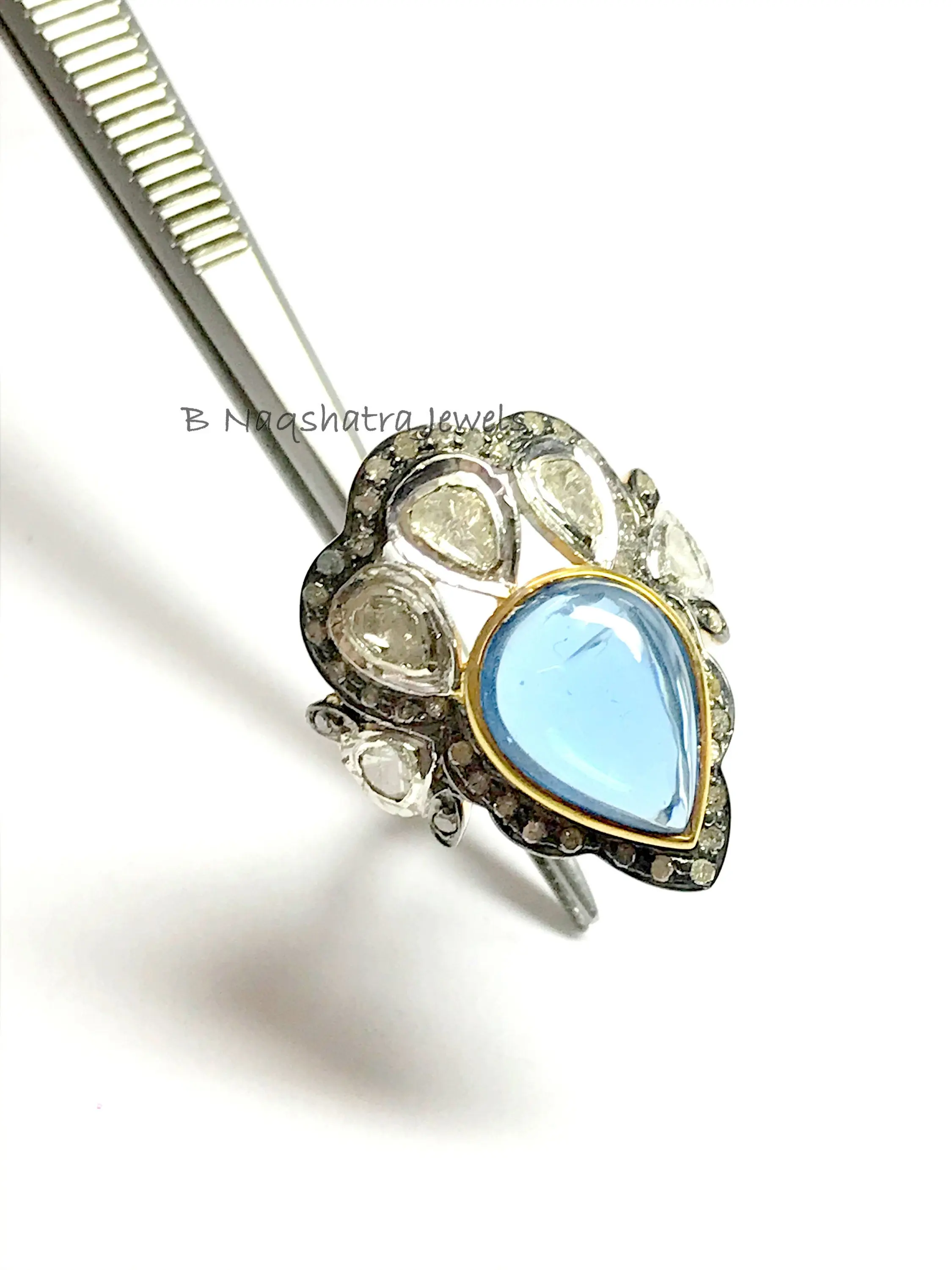 ✦Stone Size: 10 x 12 mm Teardrop & mix size diamonds