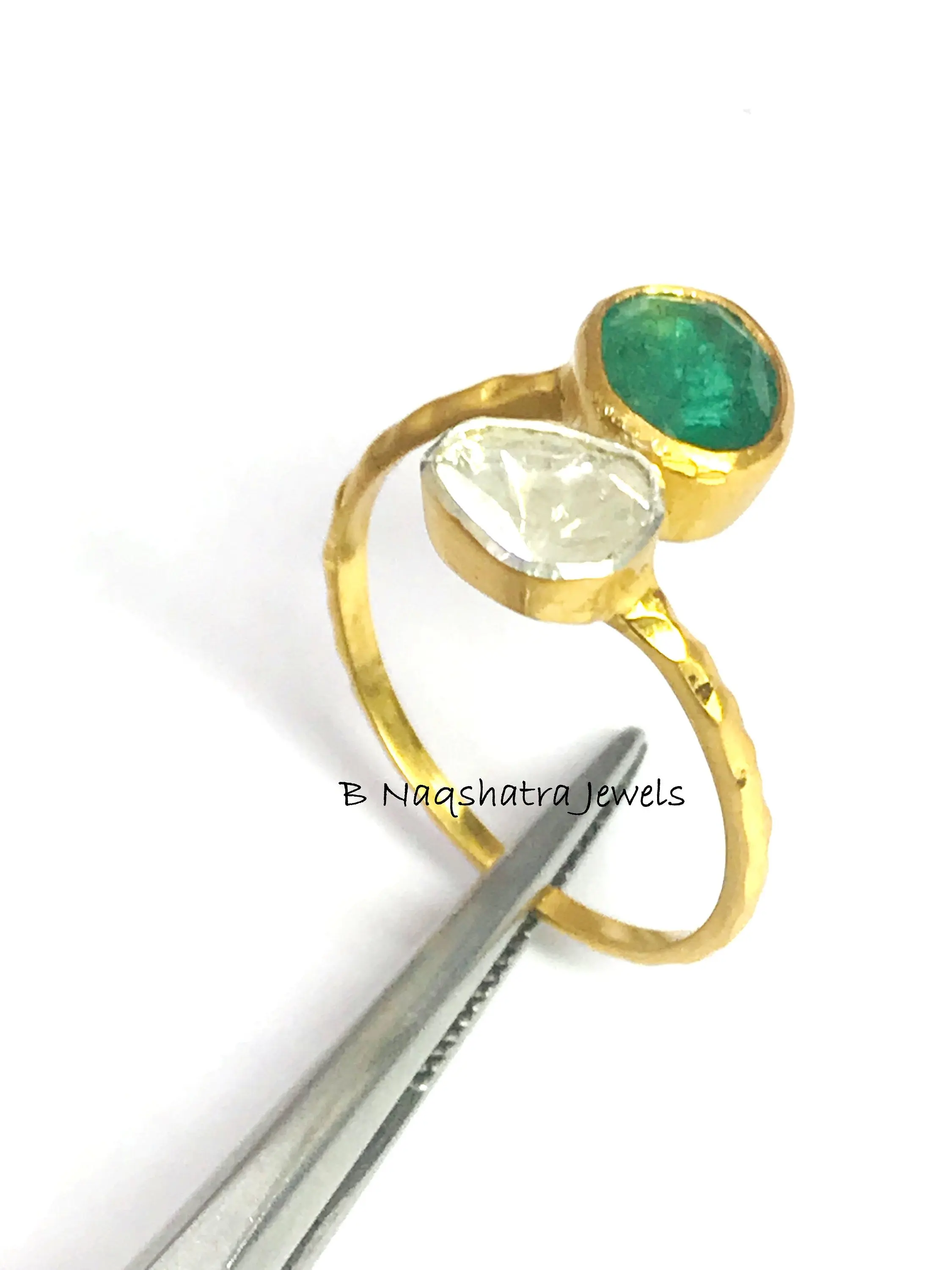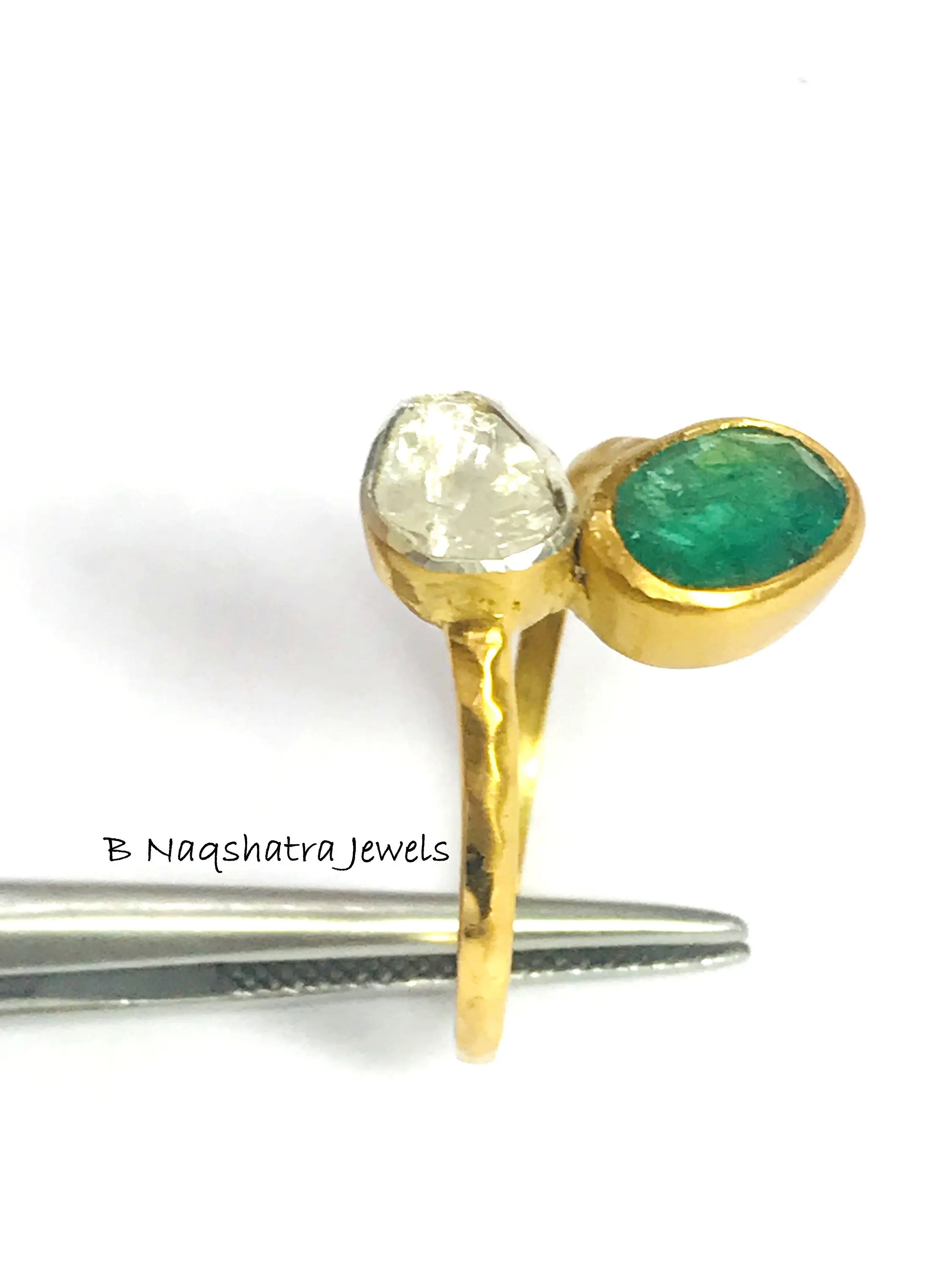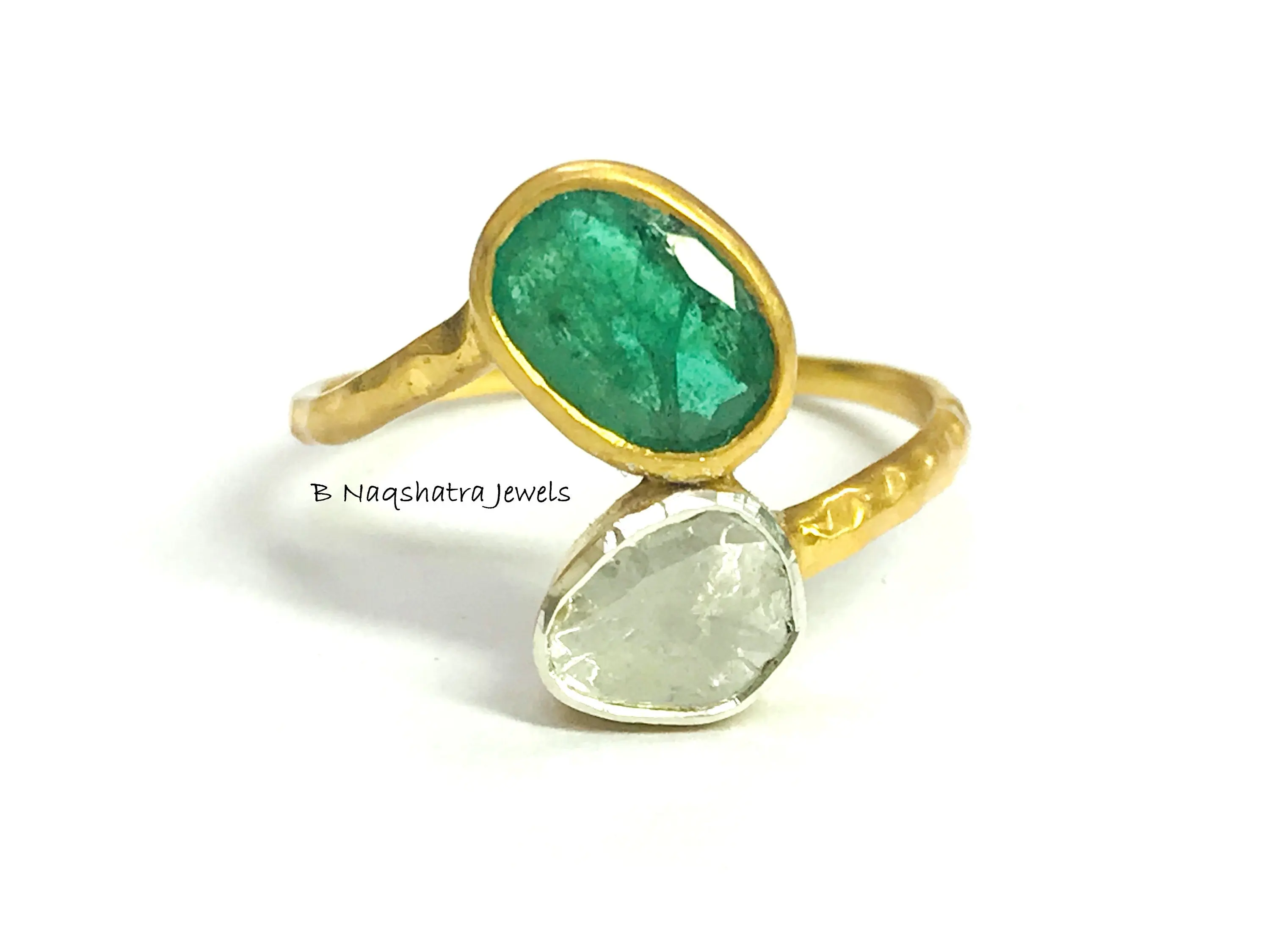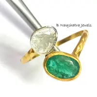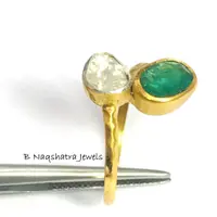 ✦Gemstone: Natural Raw Emerald *natural inclusions and Natural Rose Cut Diamonds (Polki)