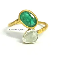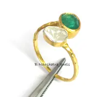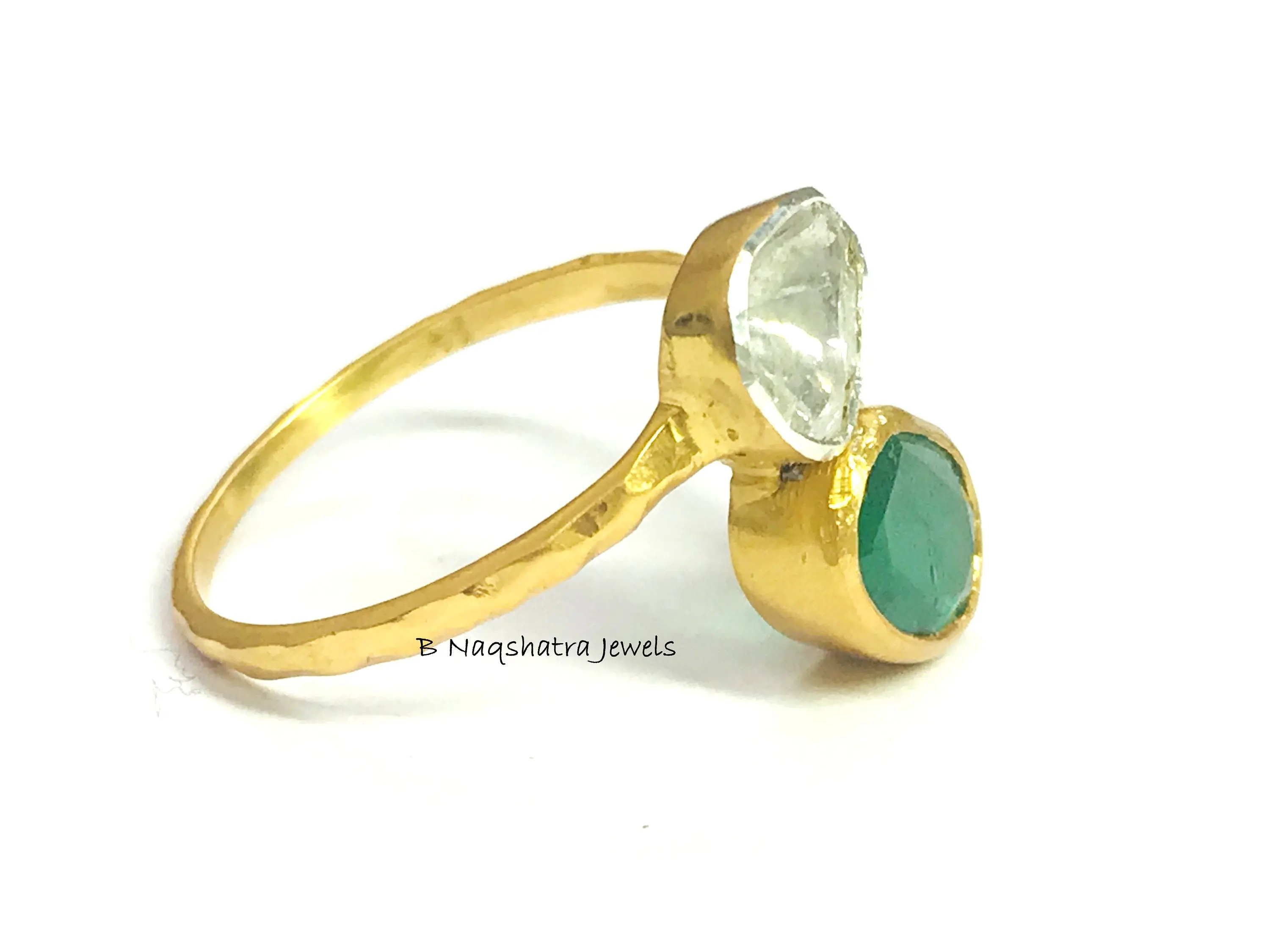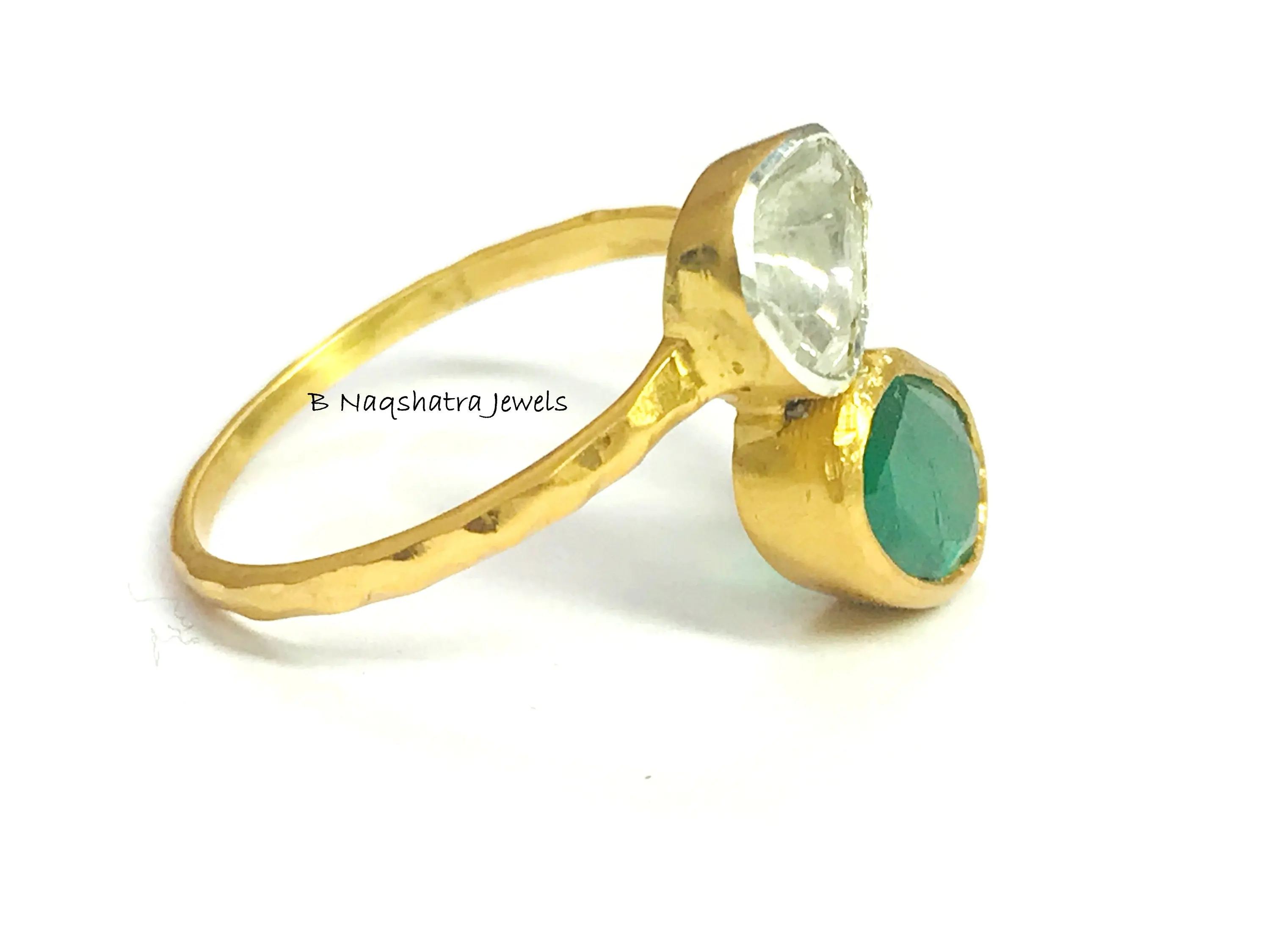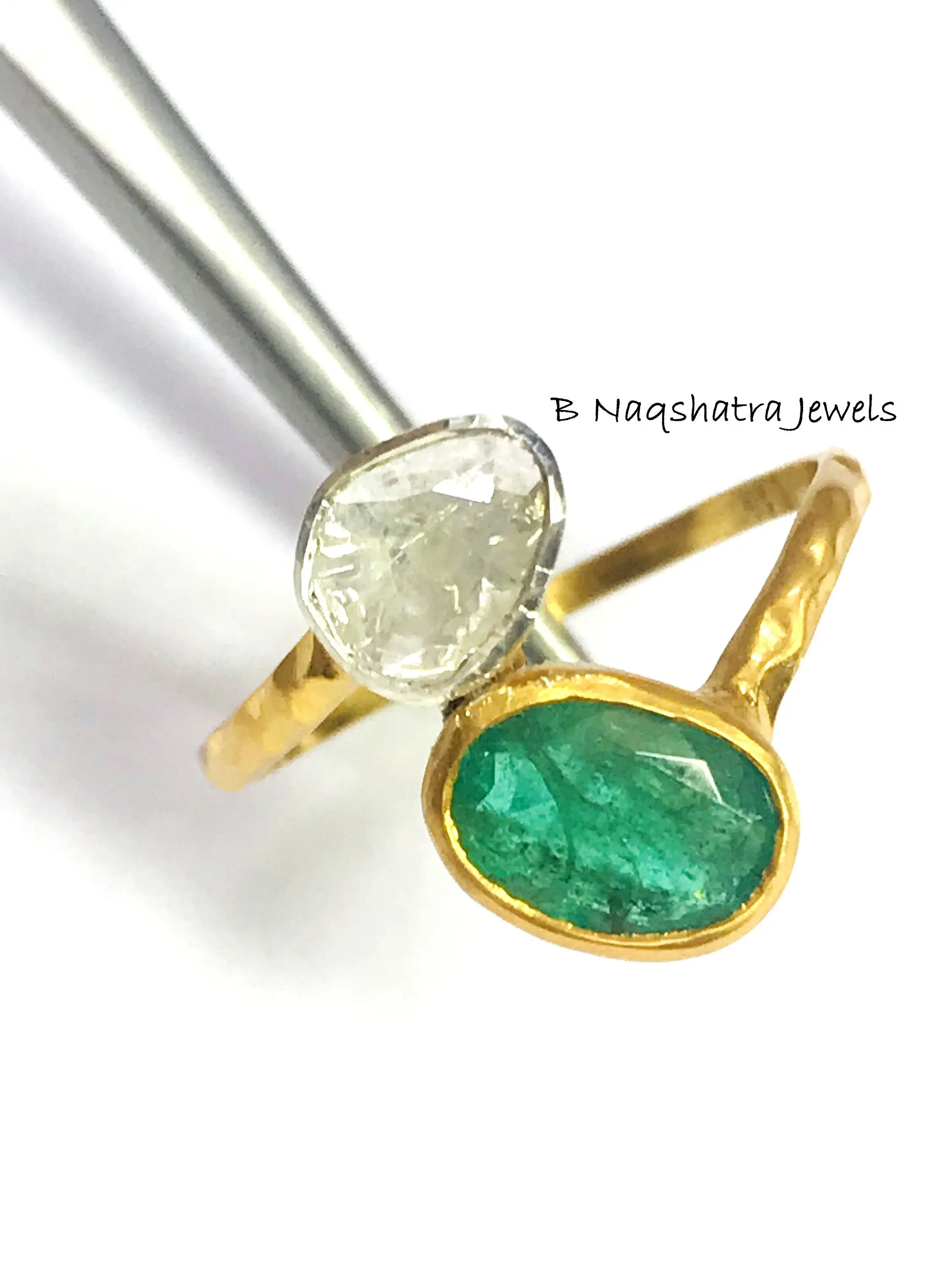 ✦Gemstone: Natural Raw Emerald *natural inclusions and Natural Rose Cut Diamonds (Polki)