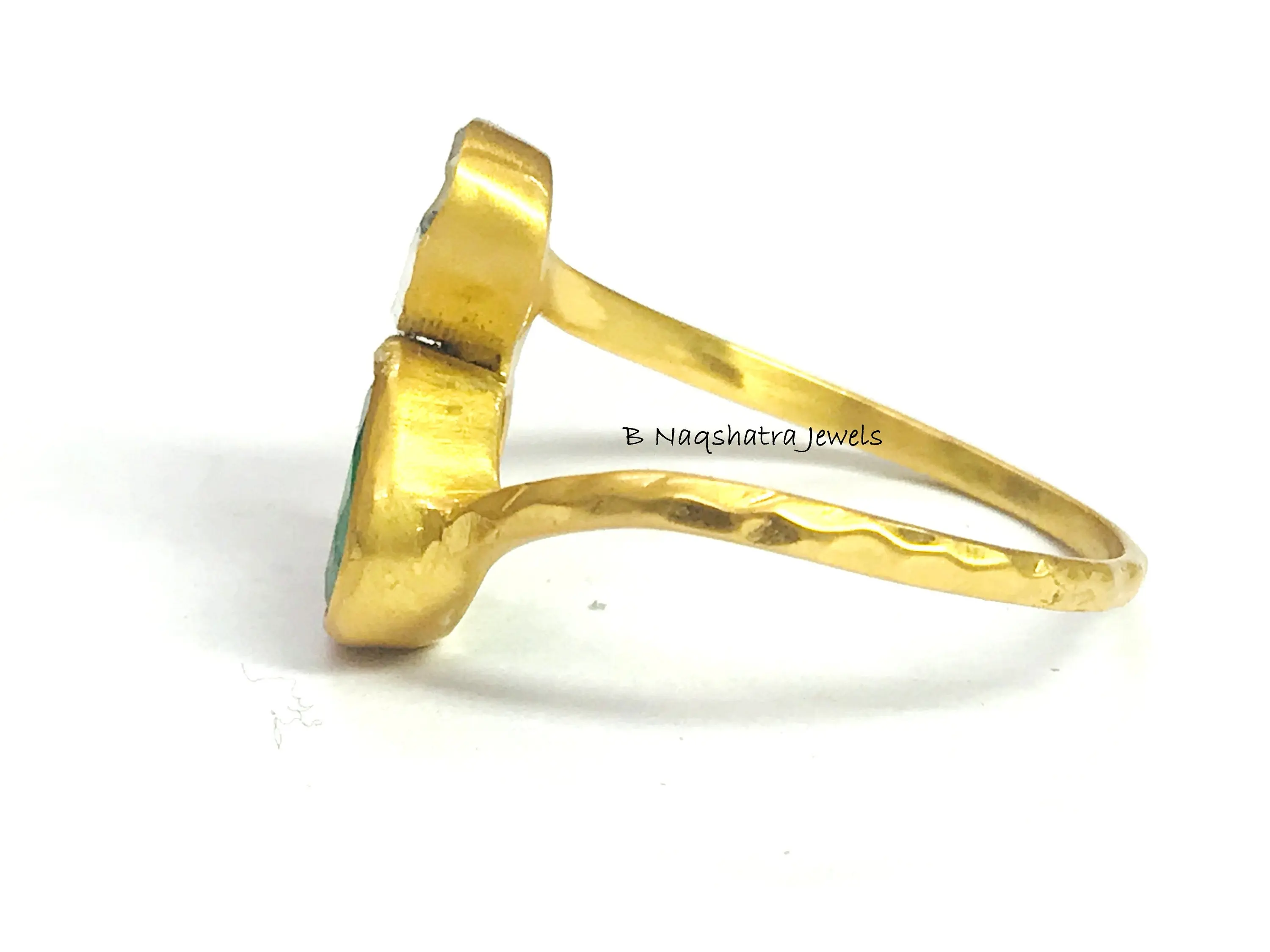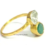 EMERALD Rose Cut DIAMOND COCKTAIL Ring ,May birthstone, Engagement Ring, 925 Sterling Silver, Antique Gold 1 Micron Finish ,Christmas Gift..