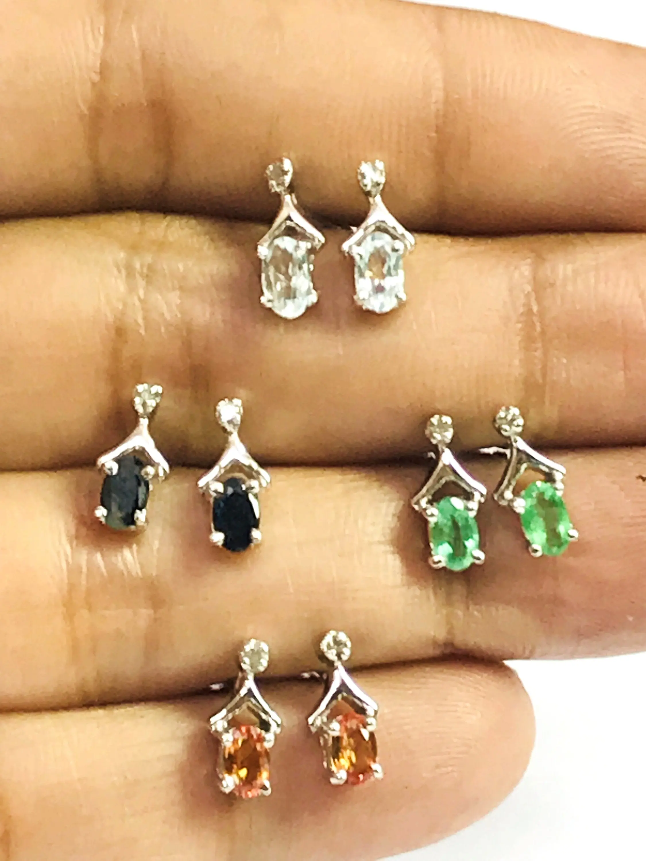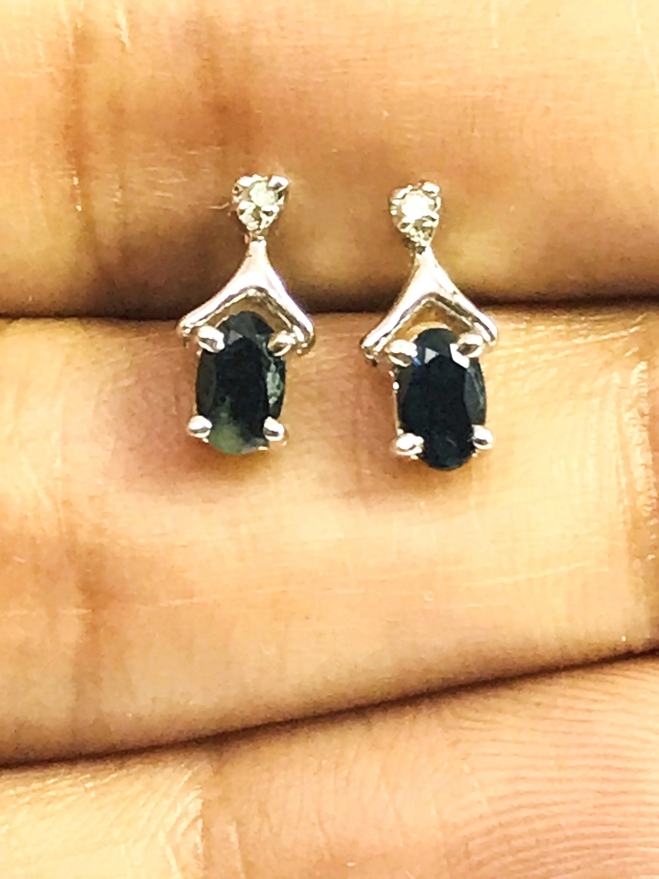 BLUE SAPPHIRE DIAMONDS Tiny Stud earrings , September birthstone ,Natural Diamonds,Blue earrings,Natural Sapphire,Gift for loved ones ..