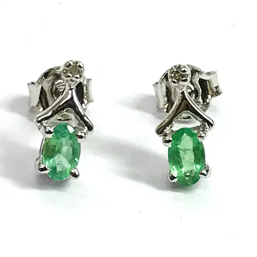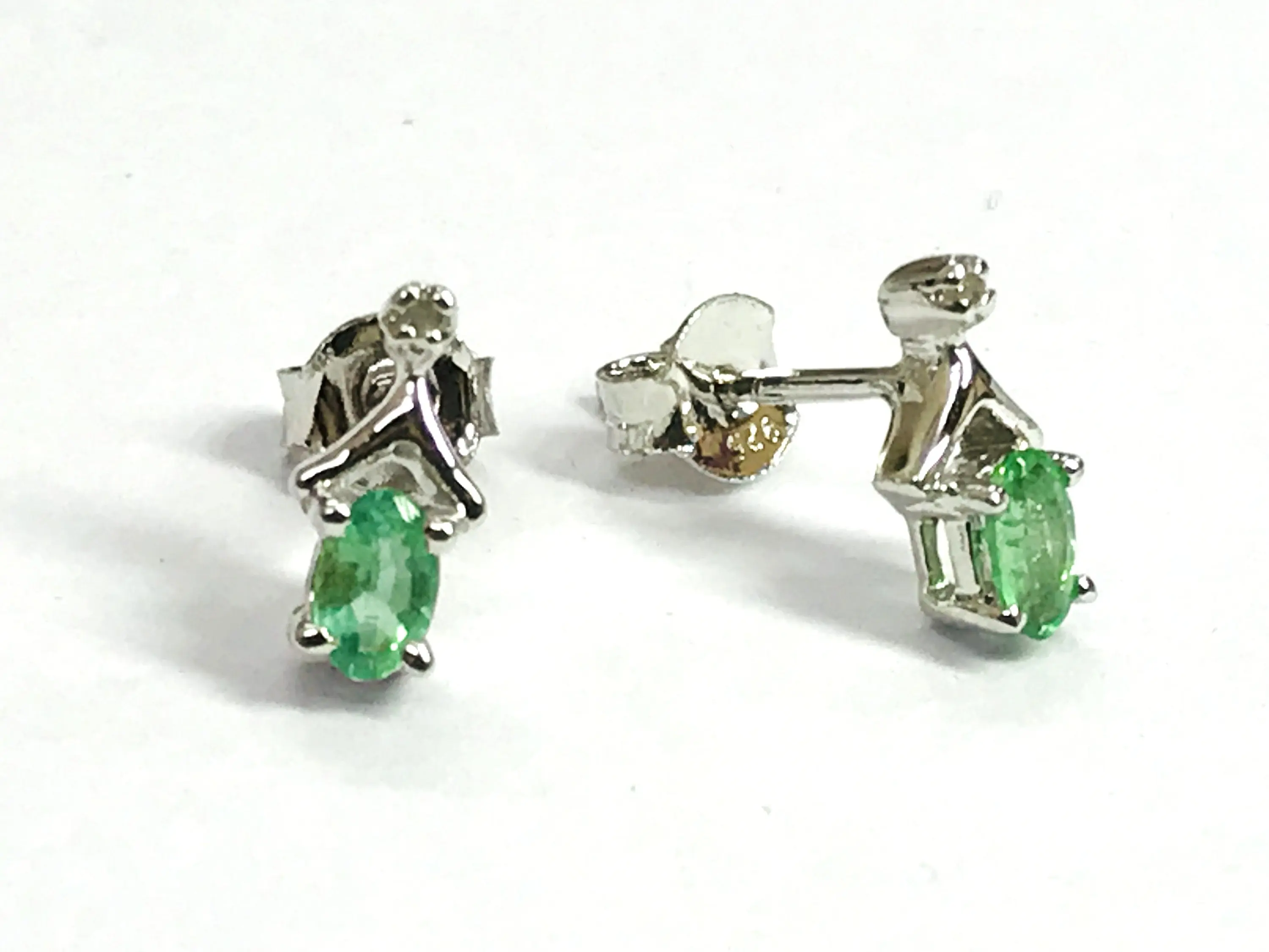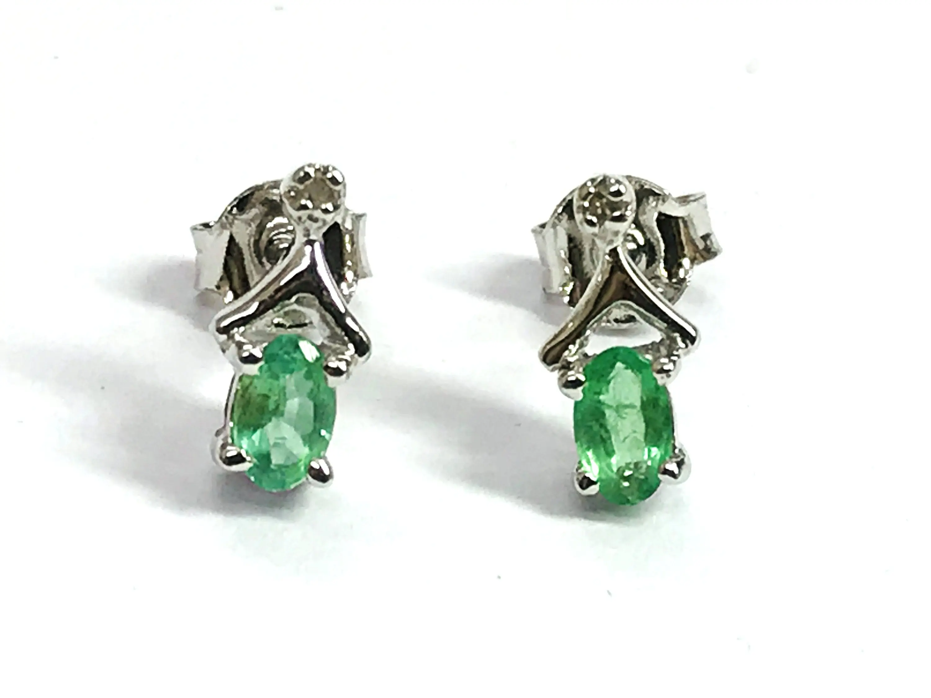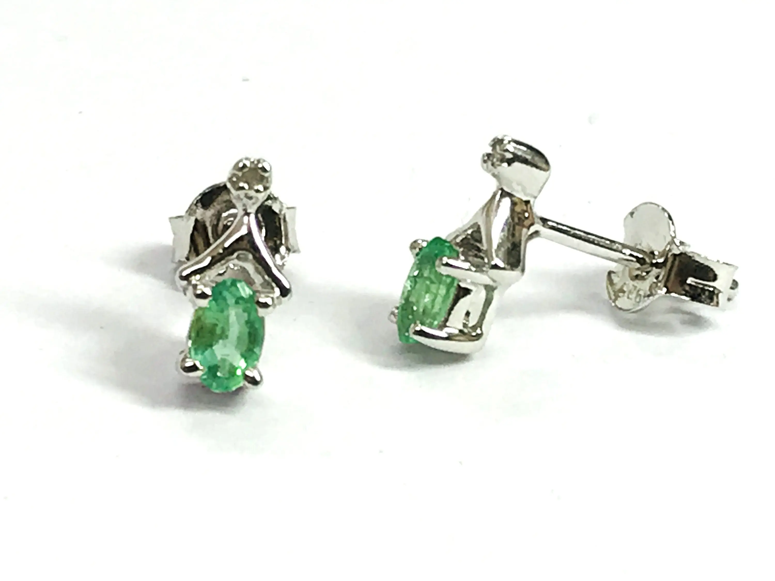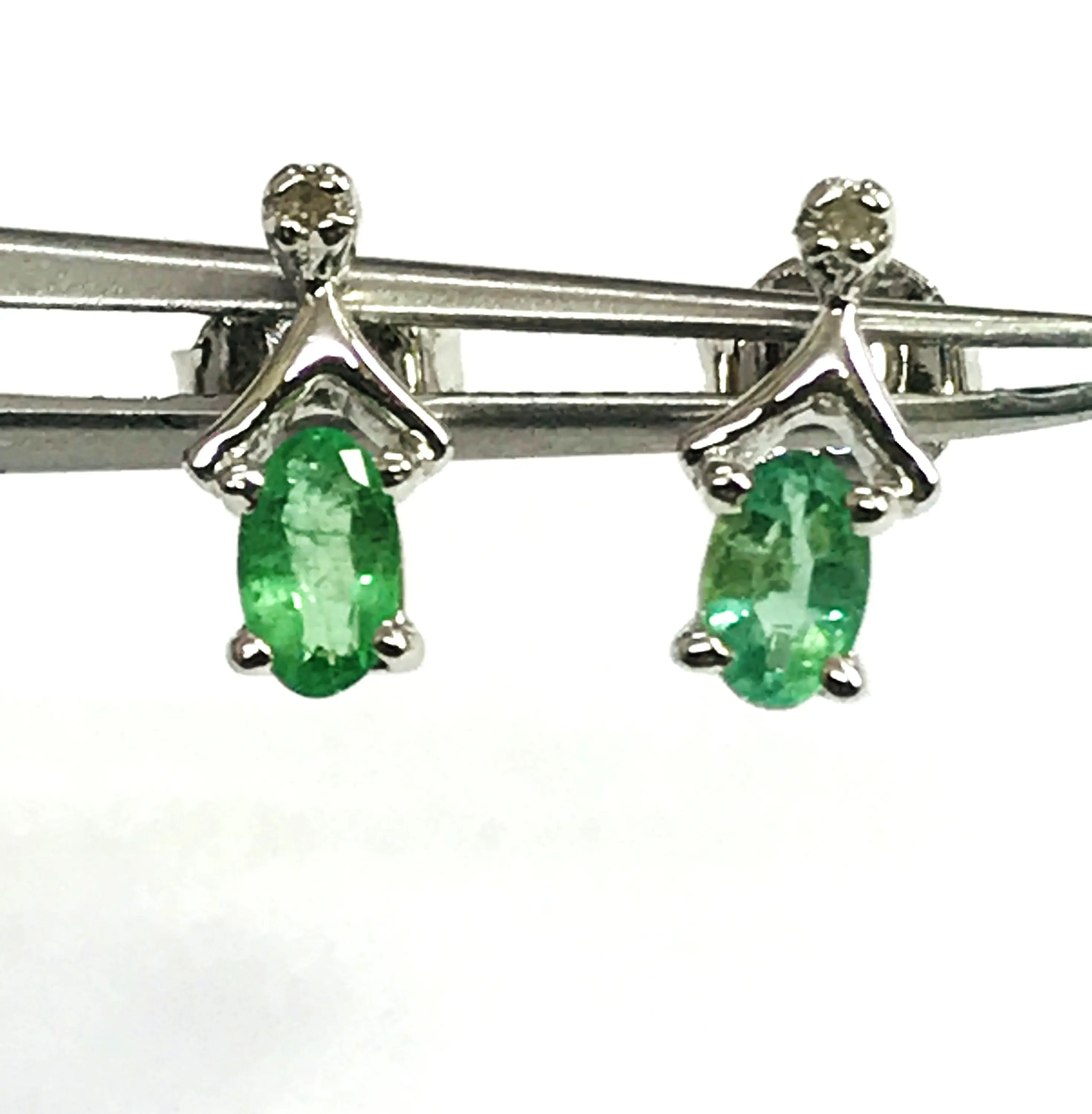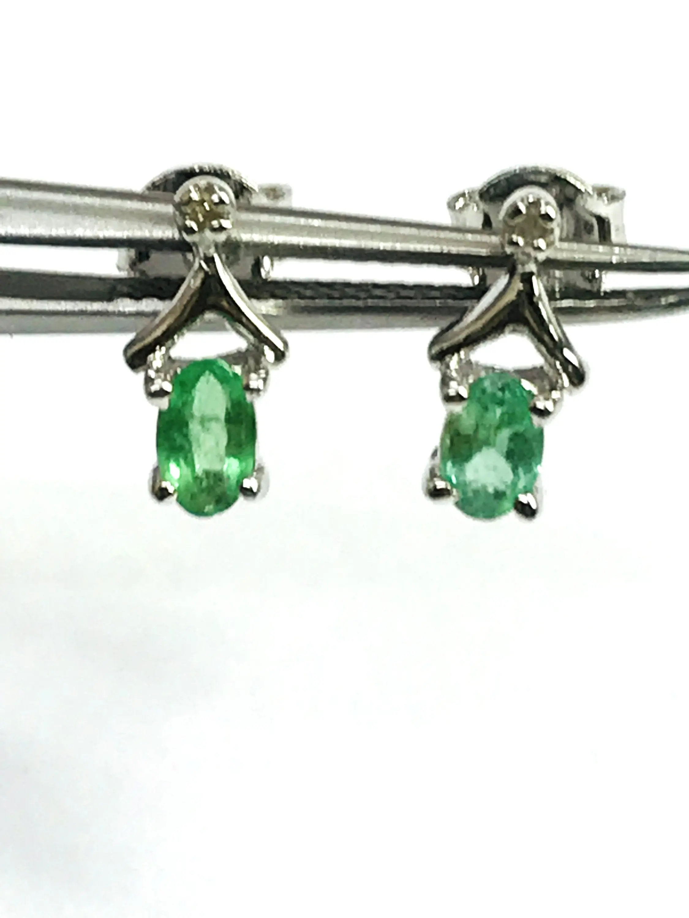 TINY EMERALD DIAMONDS Stud earrings , May birthstone ,Natural Diamonds,Green Beryl earrings,Natural Emerald,Gift for loved ones ..