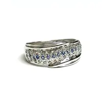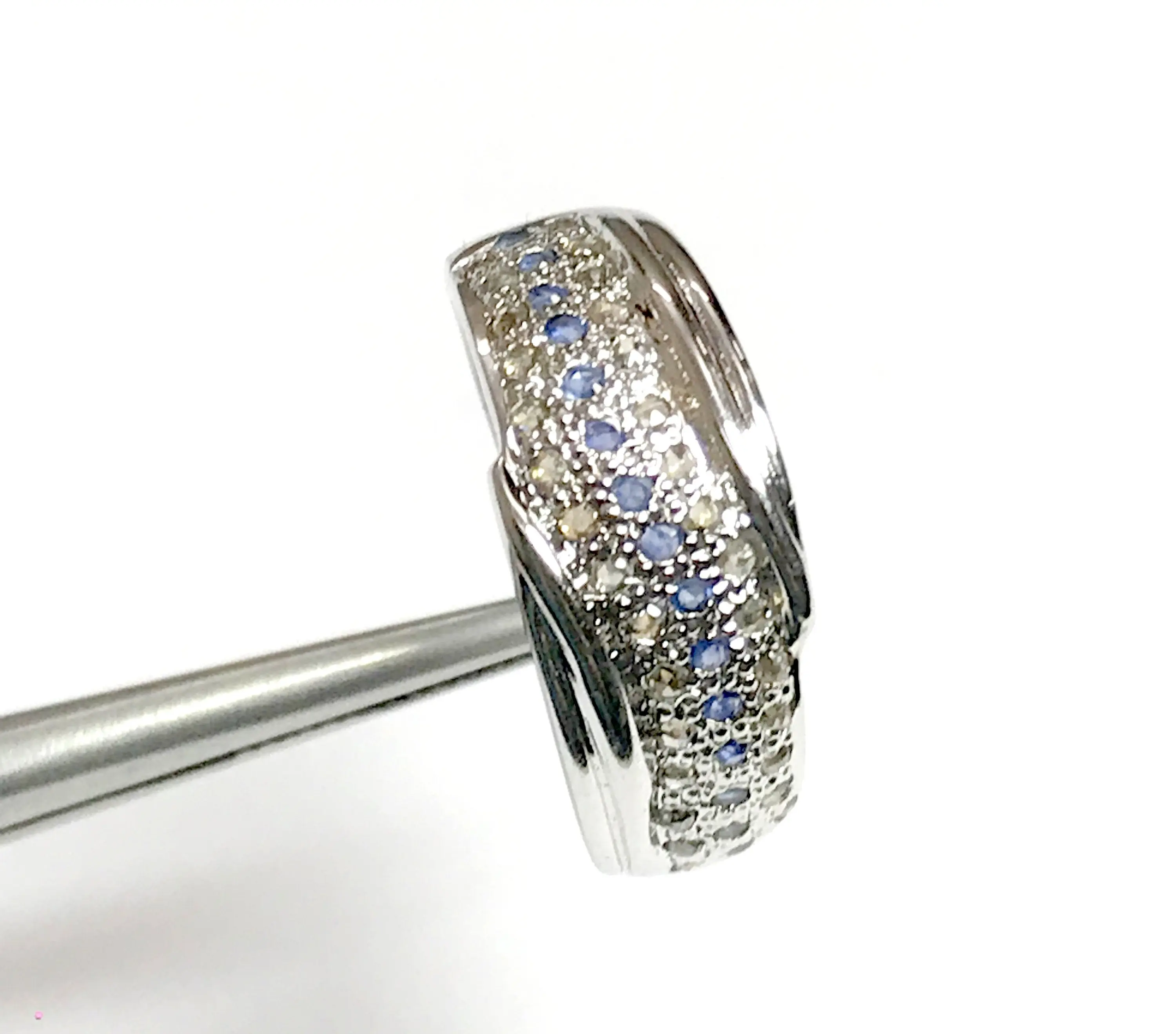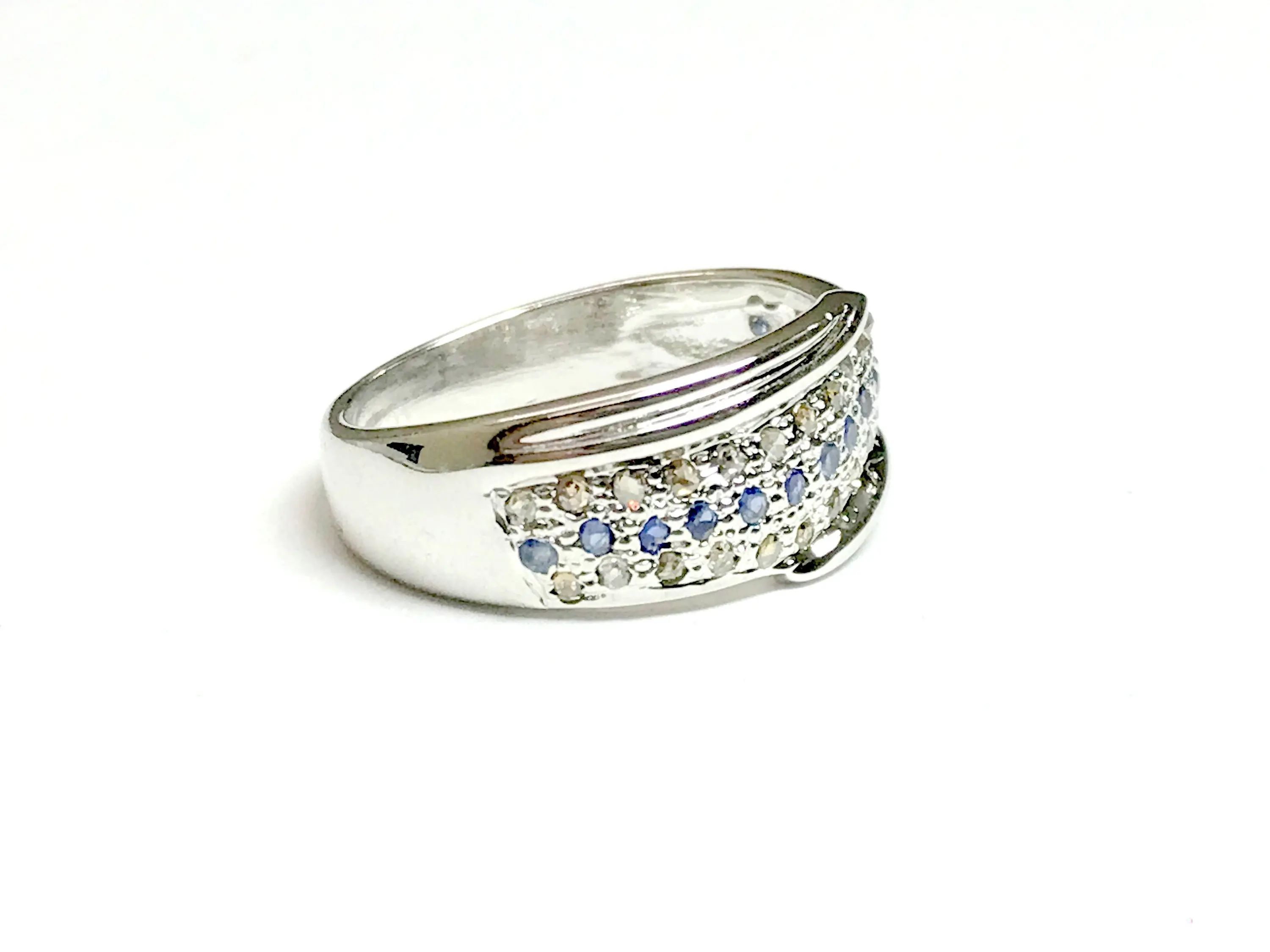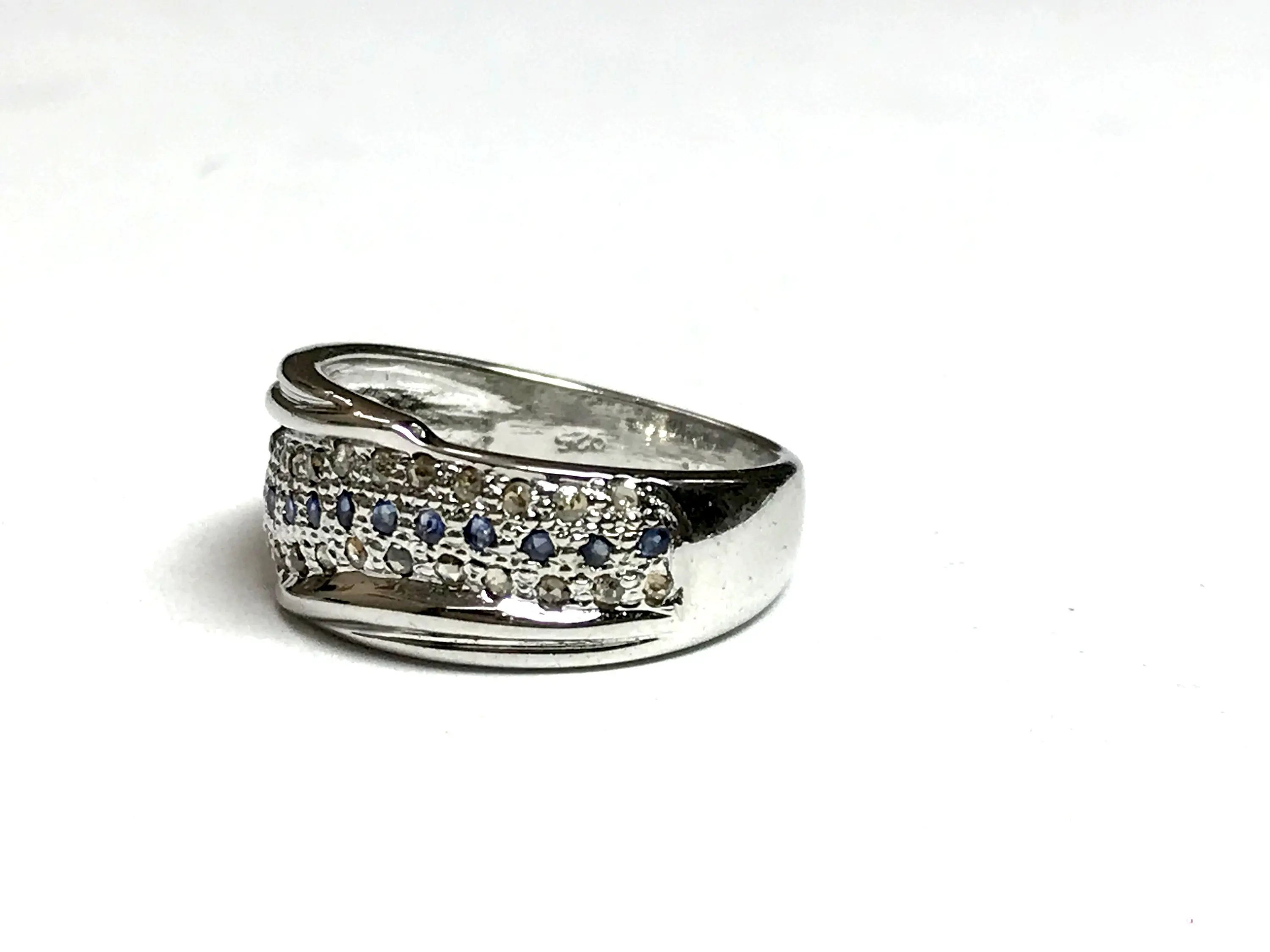 BLUE SAPPHIRE DIAMONDS Silver Ring , Eternity Band , September Birthstone , Stackable ring , Gift for her