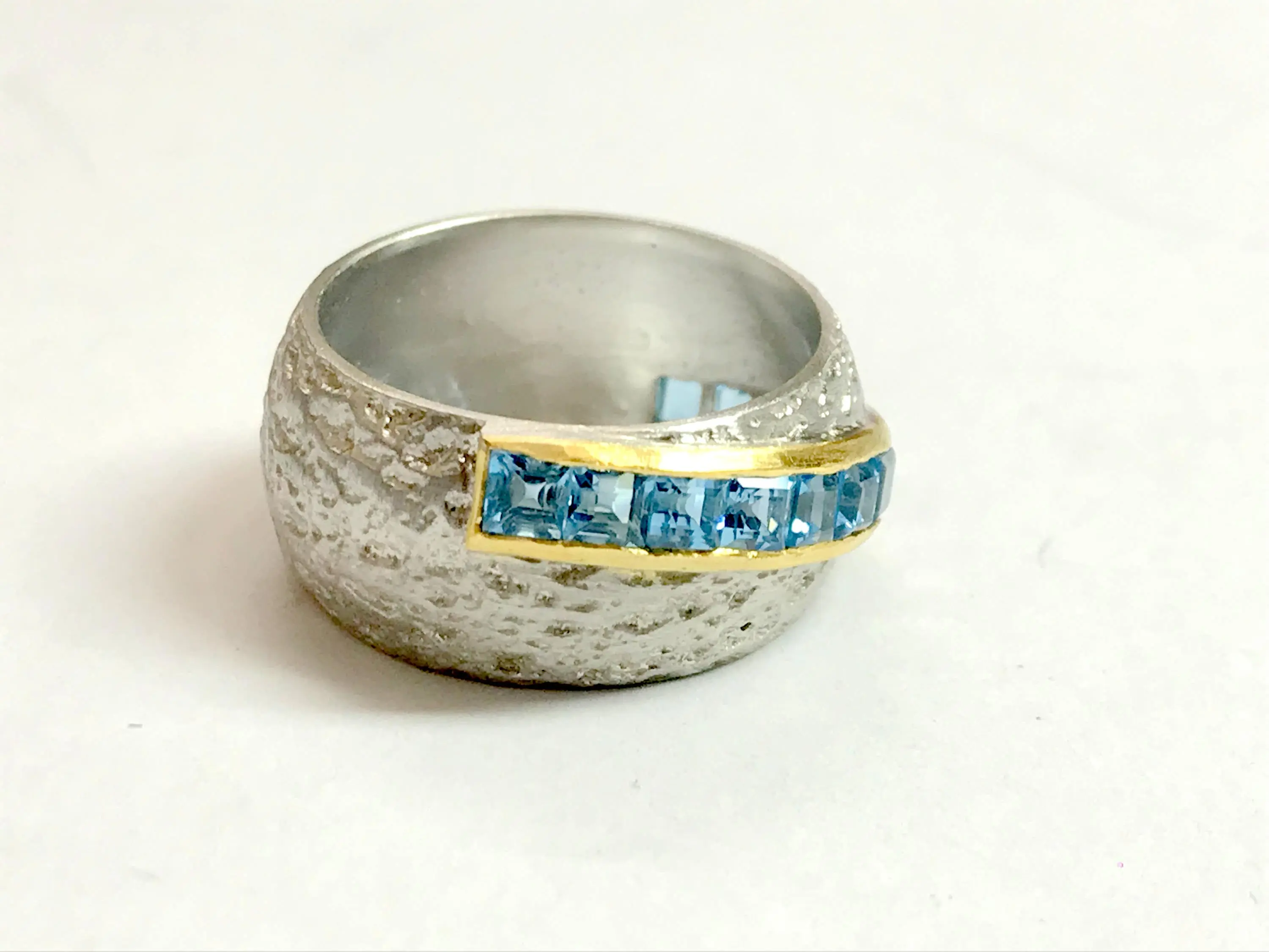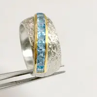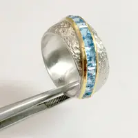 SWISS BLUE TOPAZ Square channel setting Ring,925 sterling silver Textured,Ring size Us 7,Valentine gift,Engagement Ring, Unisex ring ...