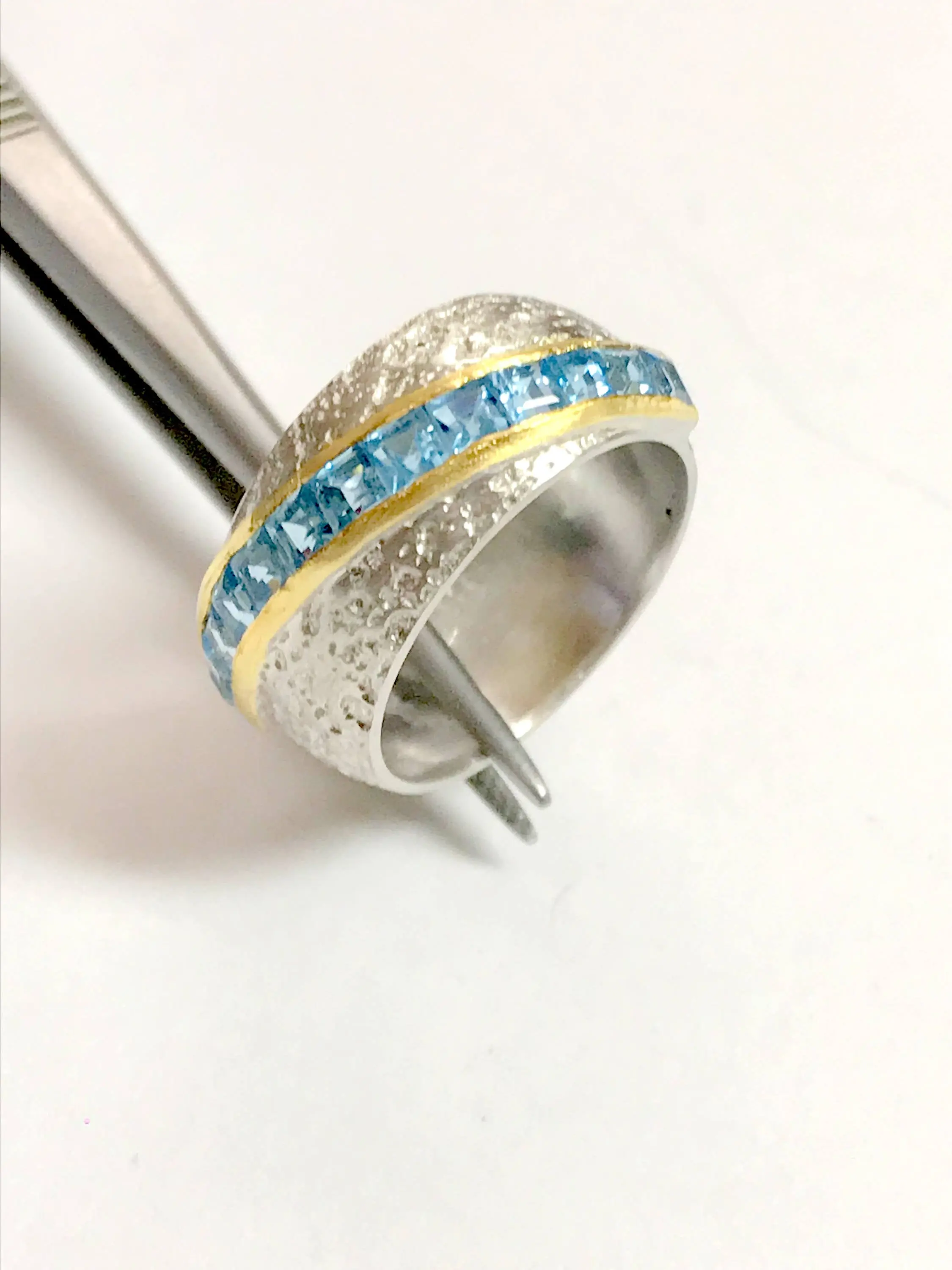 92.5 sterling silver rings handmade carved design studded with semi - precious stone as Blue topaz .....