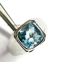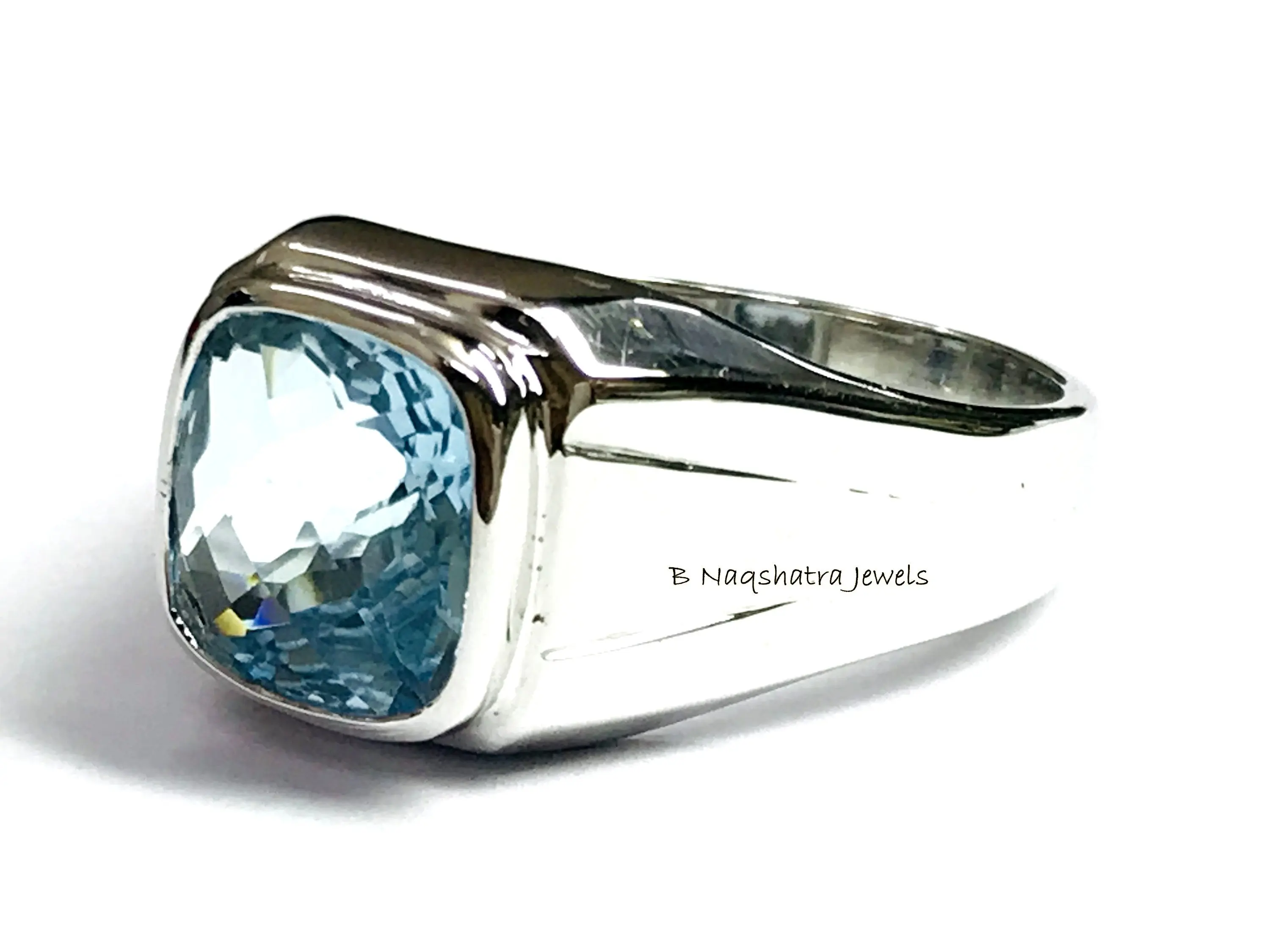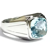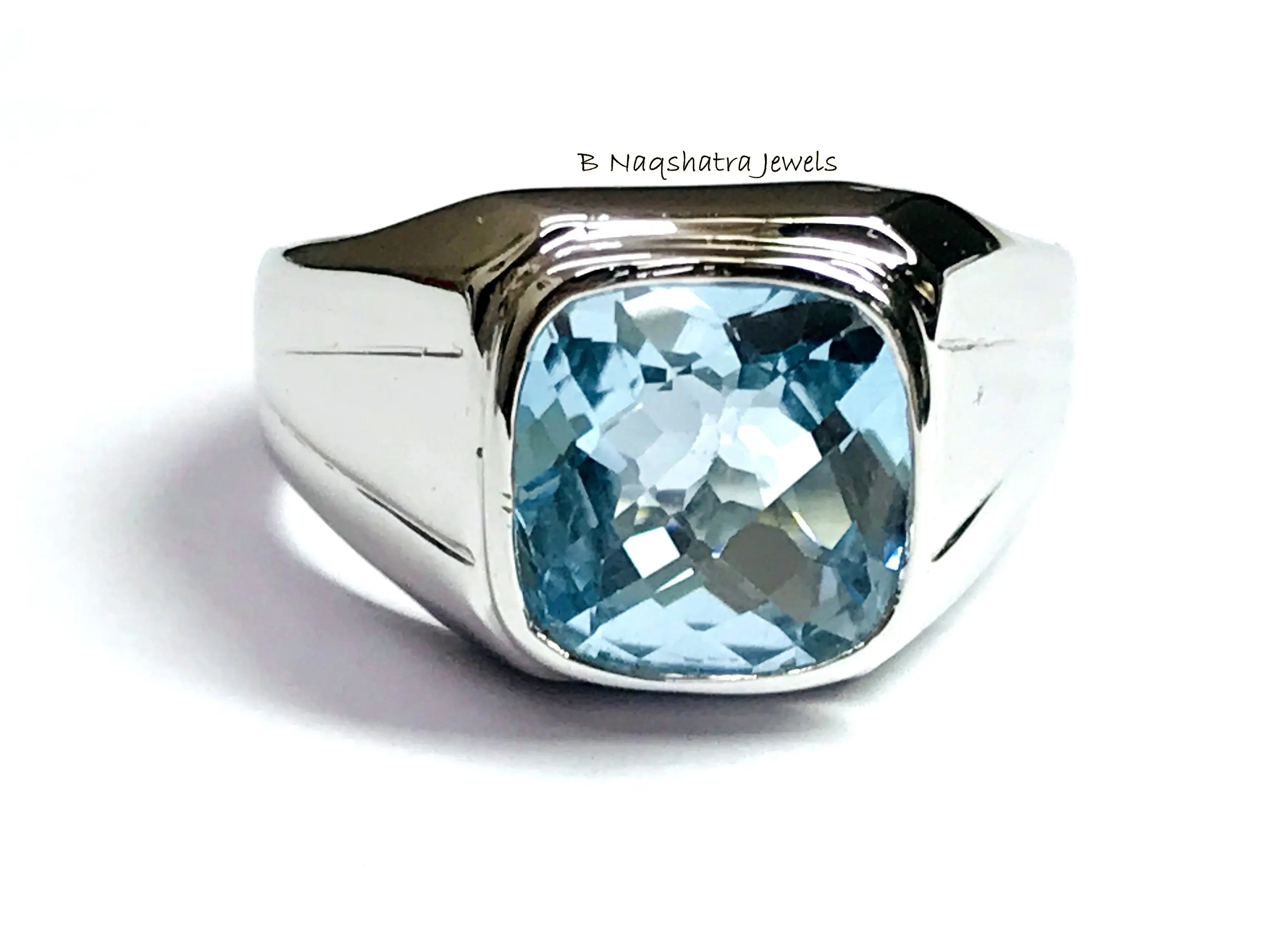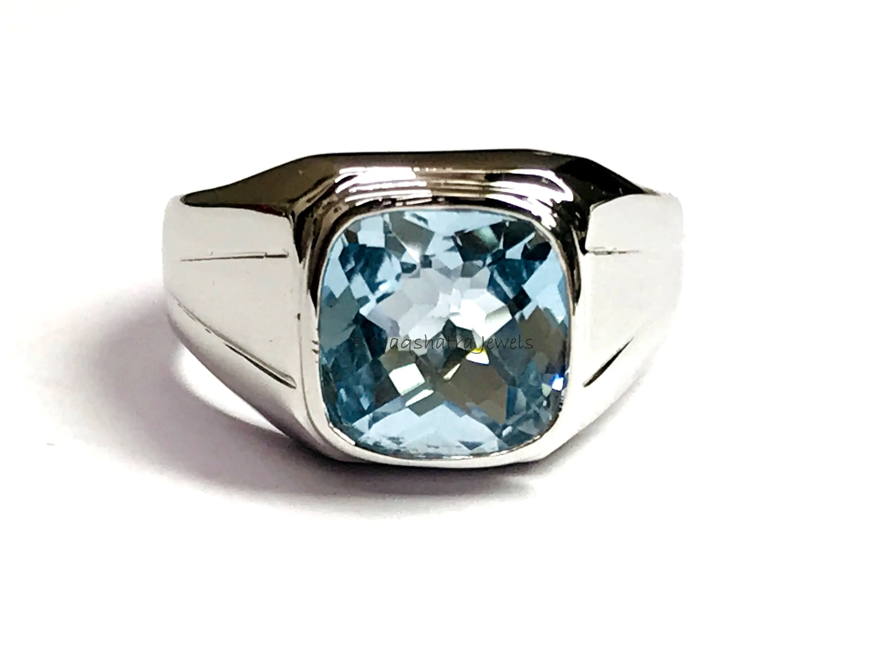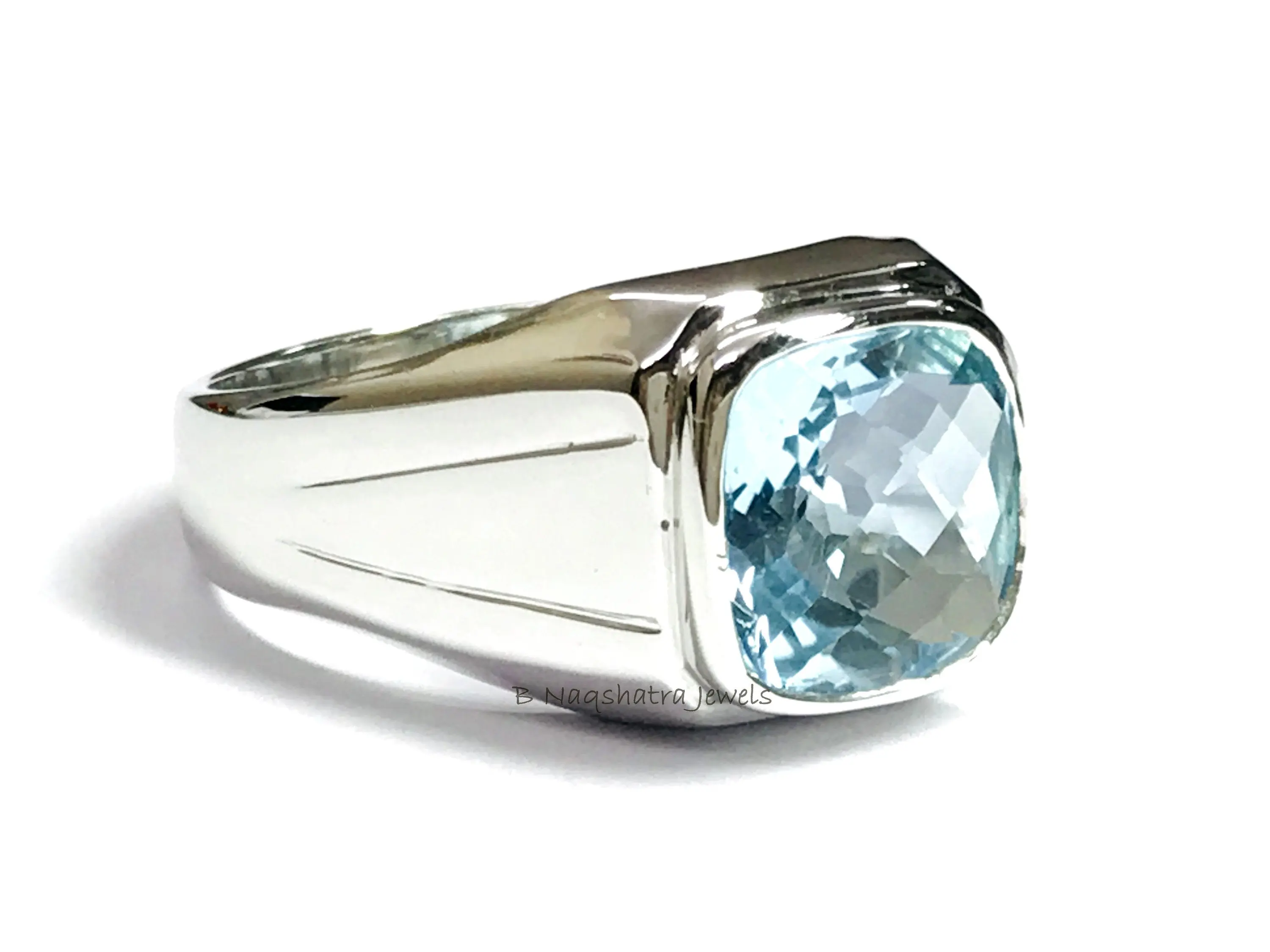 BLUE TOPAZ MEN'S Ring, Cushion Checker Cut Shape ,December Birthstone ,Hand Forged Ring ,Promise Ring for him, Christmas gift ..