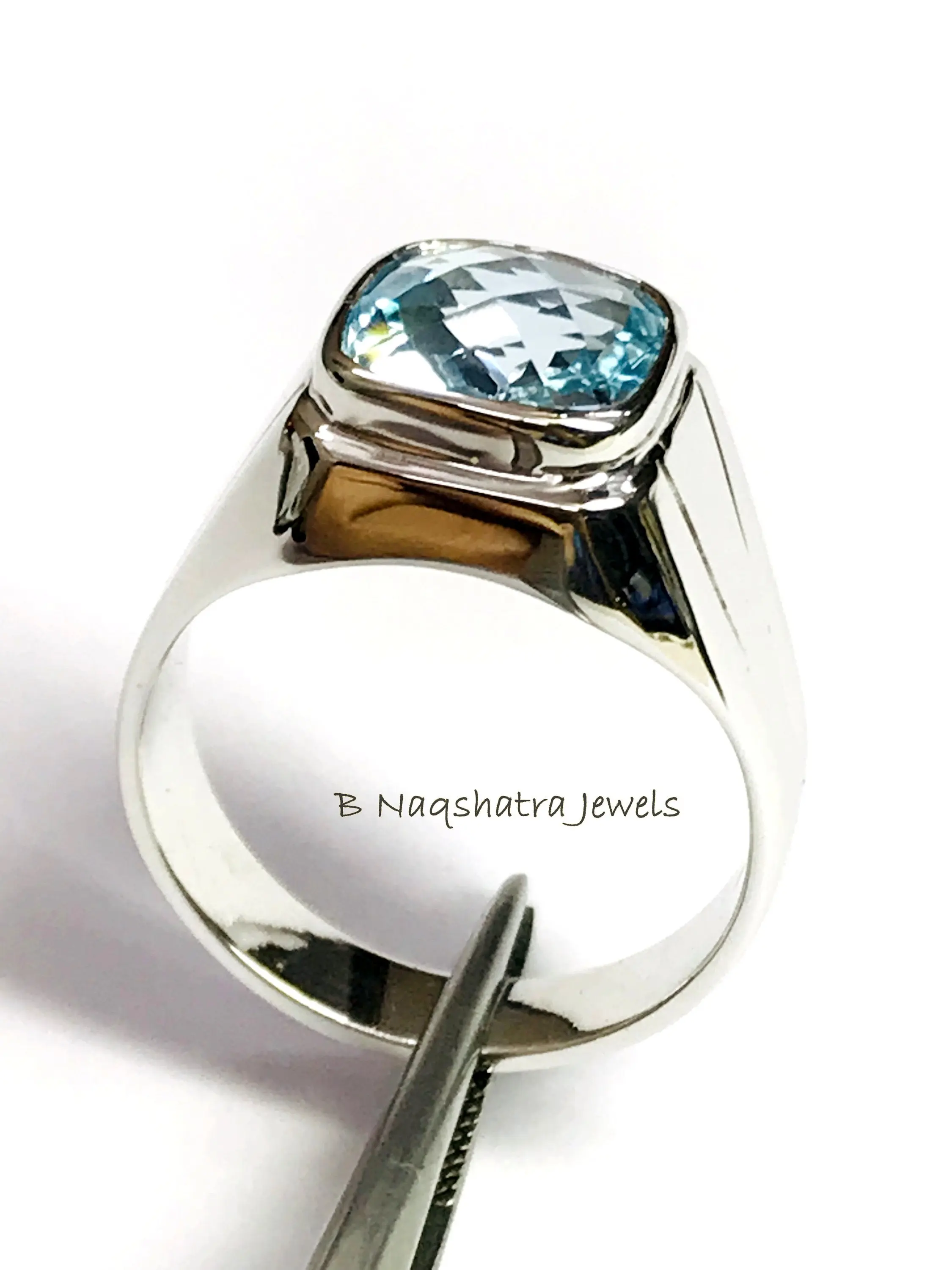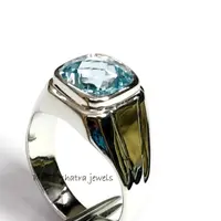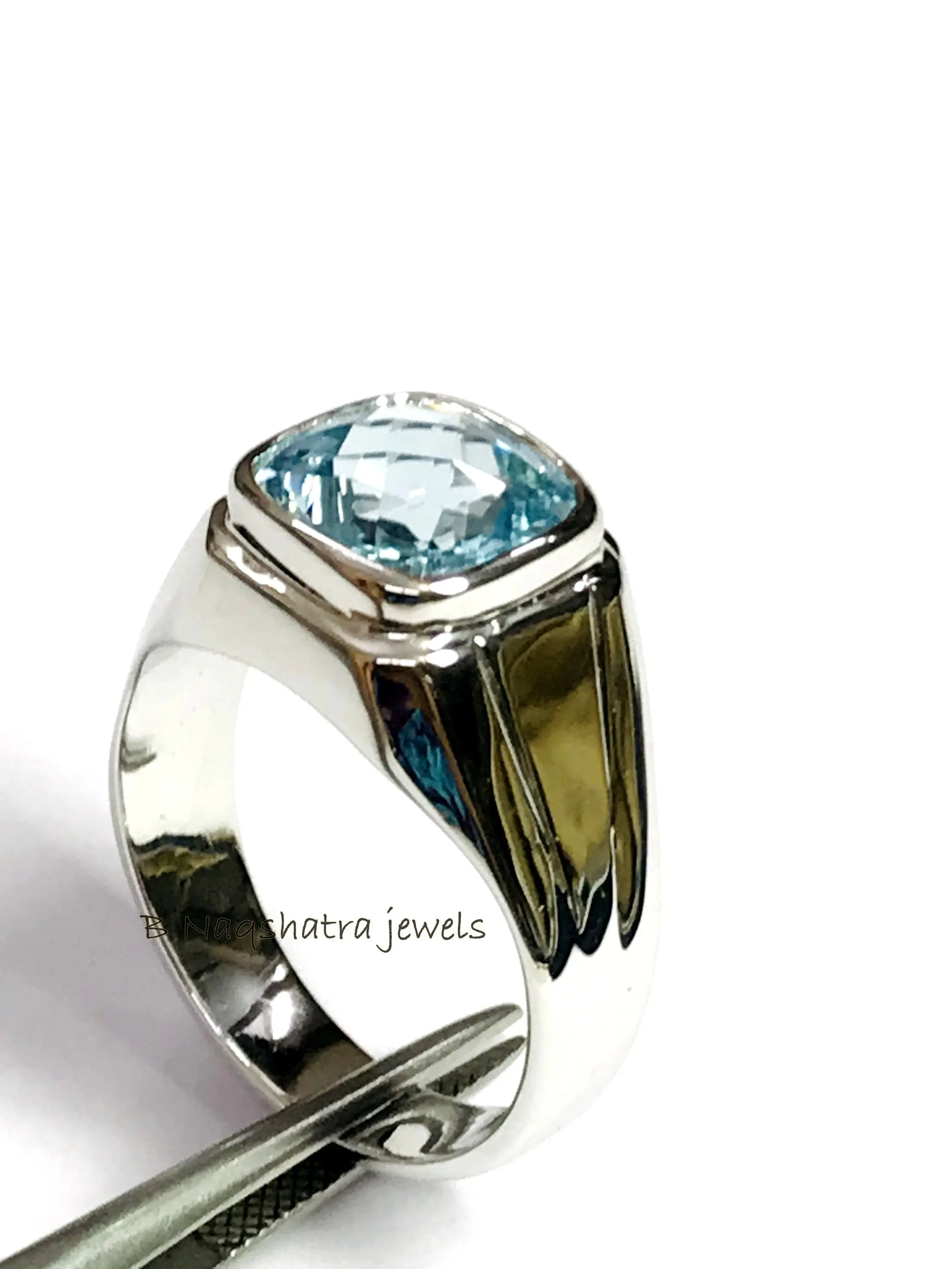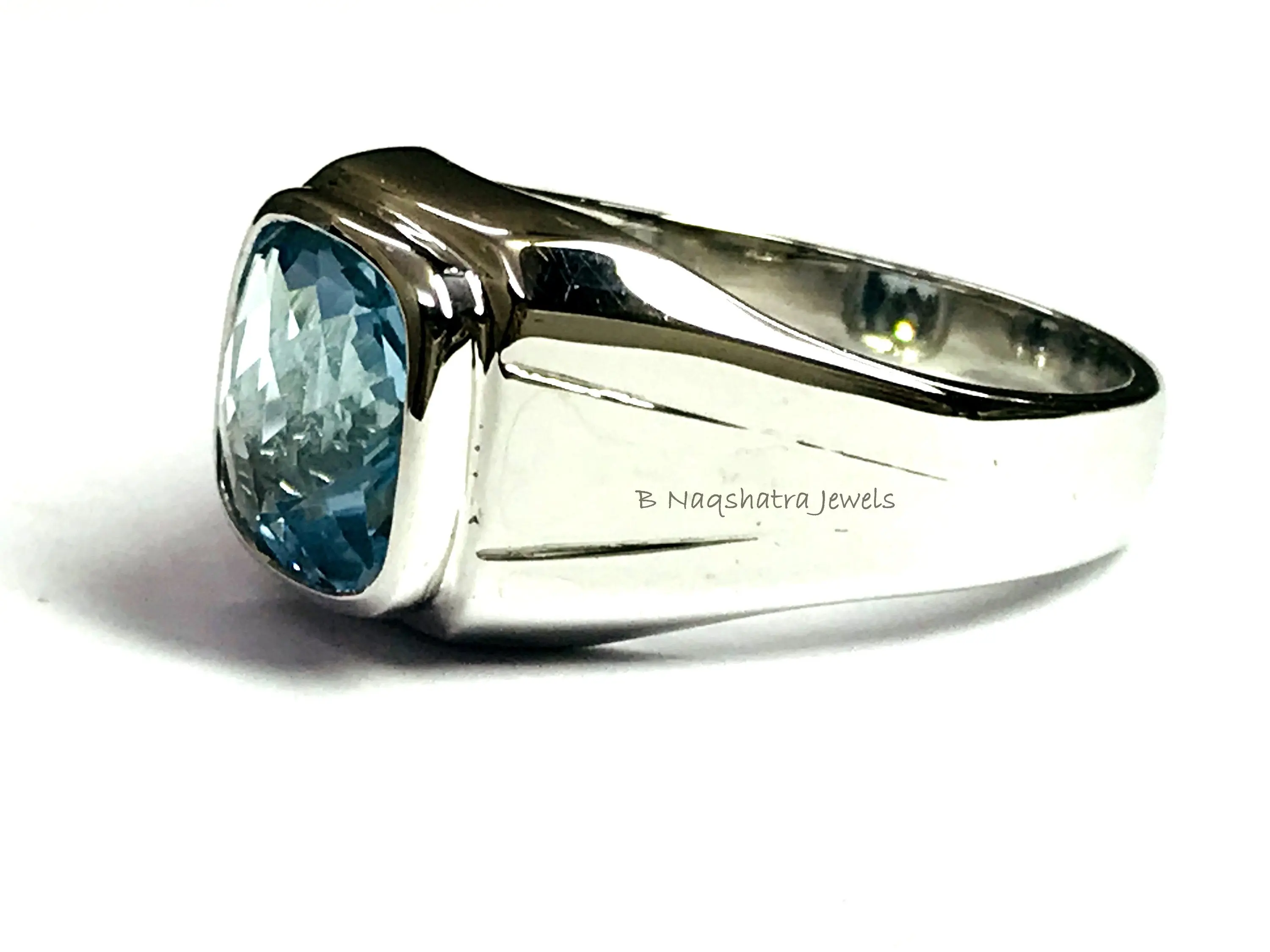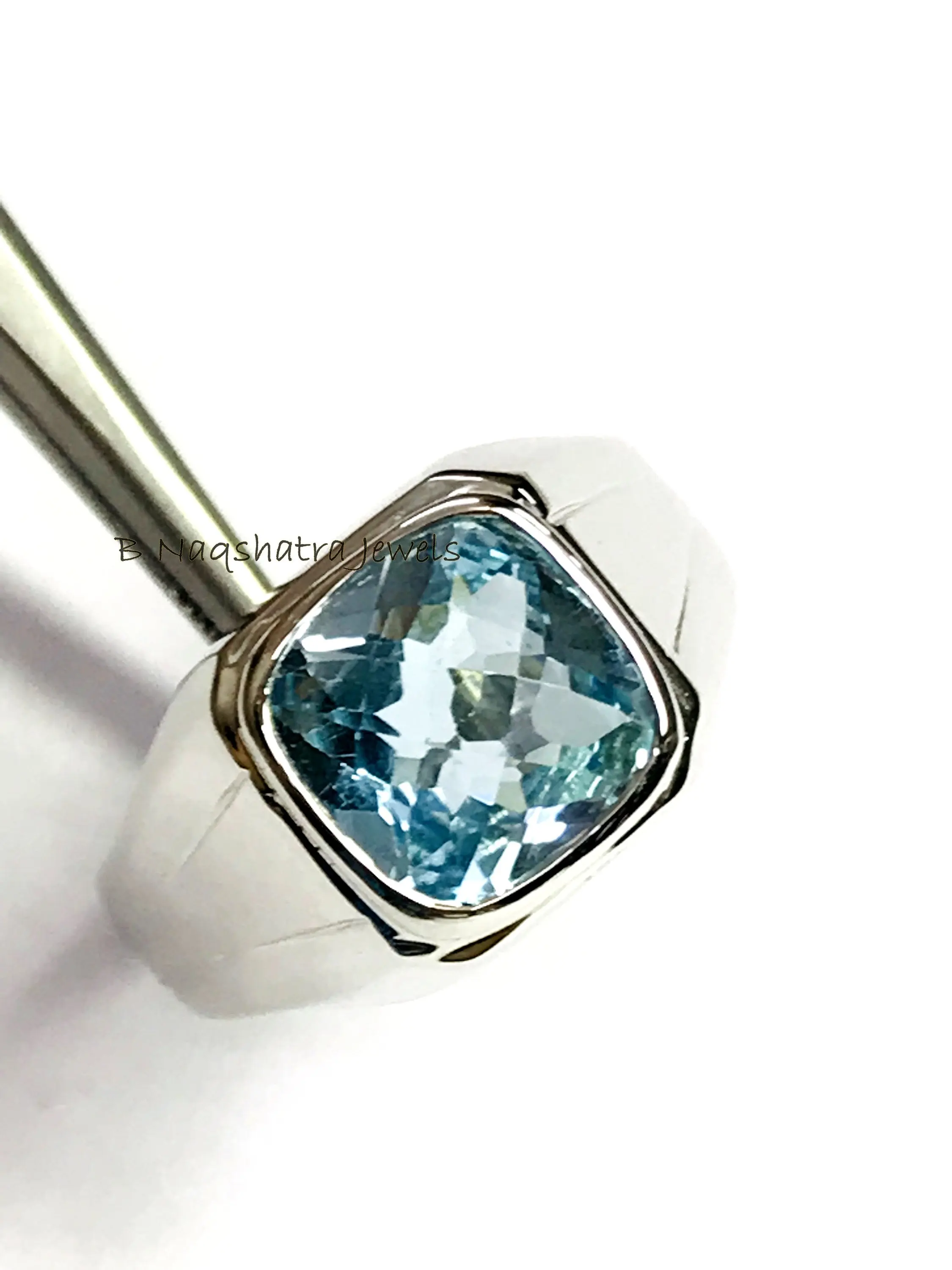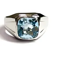 BLUE TOPAZ MEN'S Ring, Cushion Checker Cut Shape ,December Birthstone ,Hand Forged Ring ,Promise Ring for him, Christmas gift ..