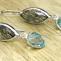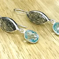 Gem: Black Rutile Quartz Marquise shape and Blue Topaz oval Briollete
