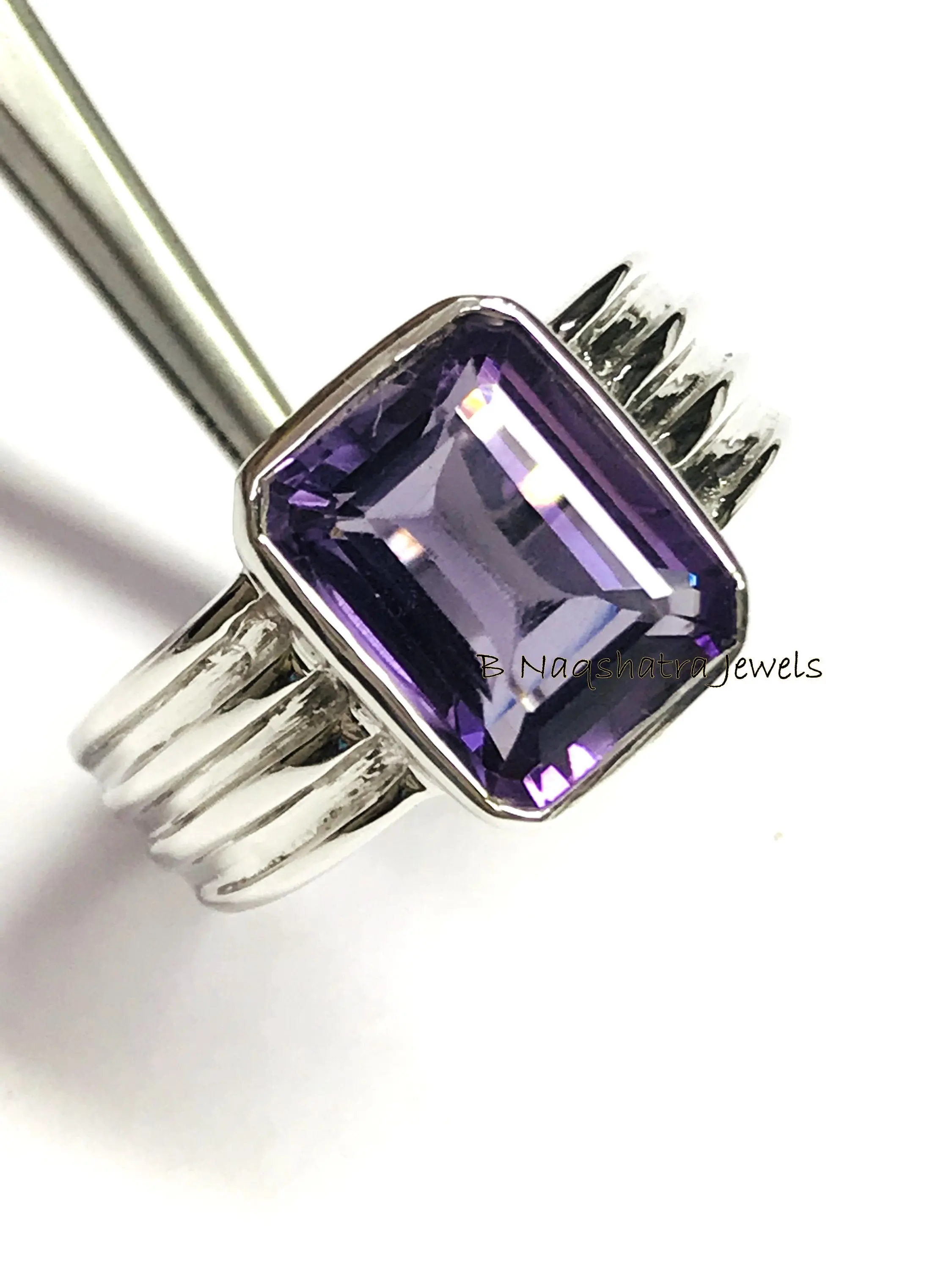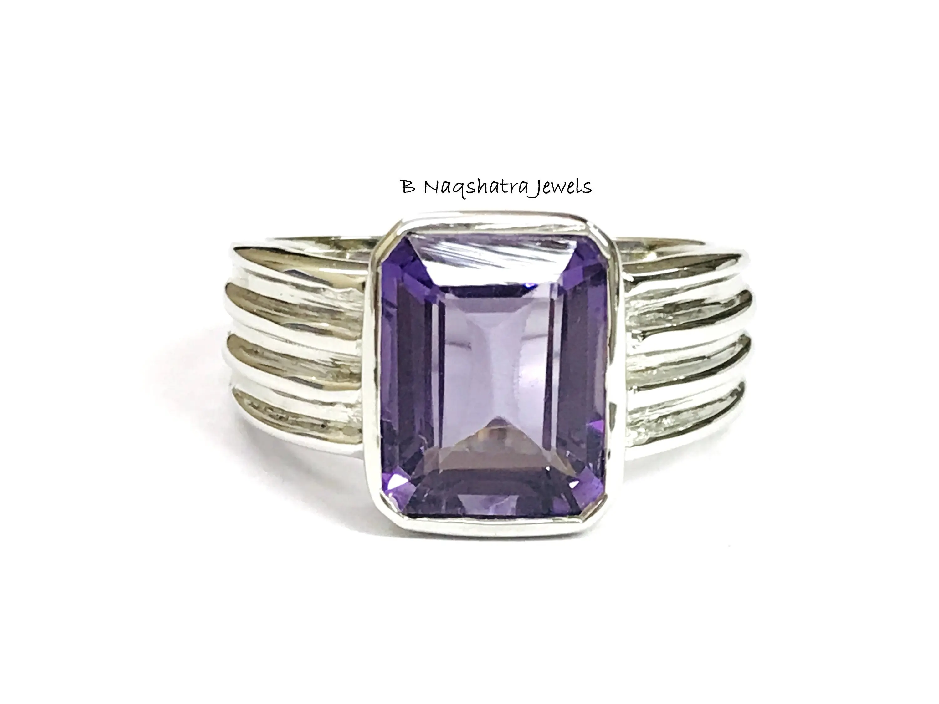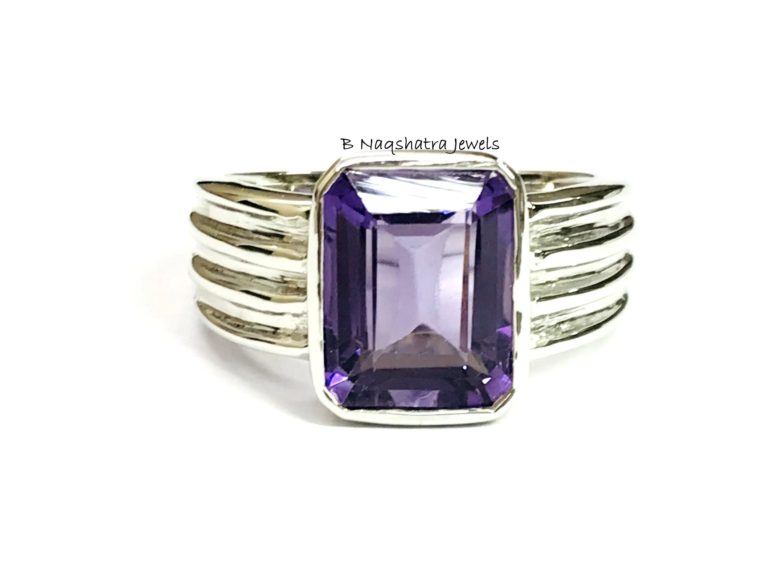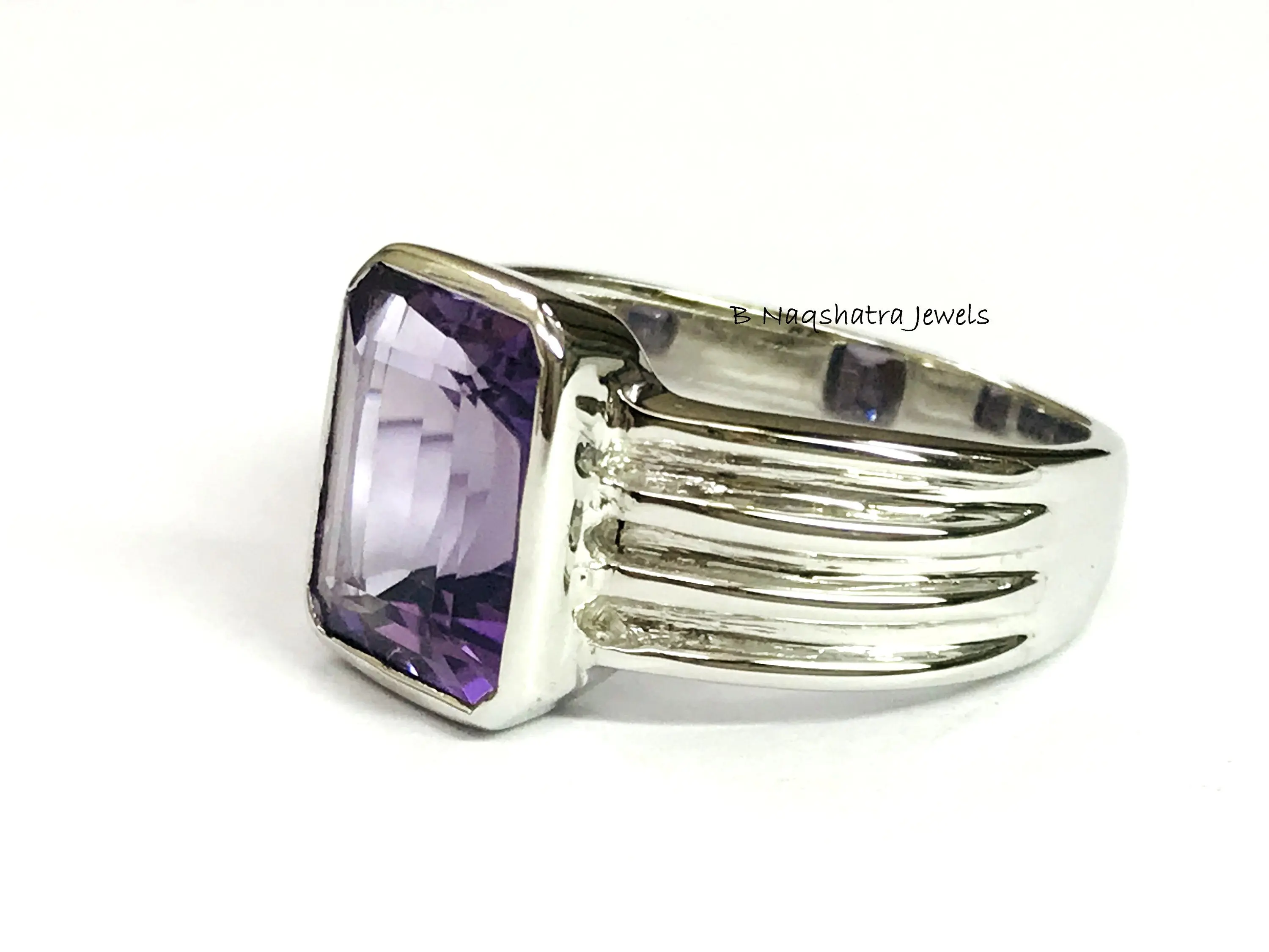 AMETHYST MEN'S Ring -925 Sterling Silver , Octagon Emerald Cut Amethyst,February Birthstone,Fathers Day Gift,Men's Jewelry , Gift For him ,