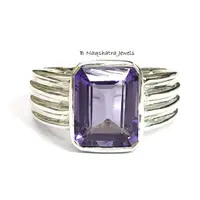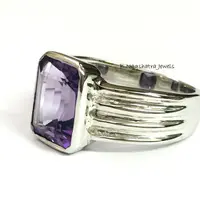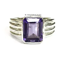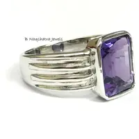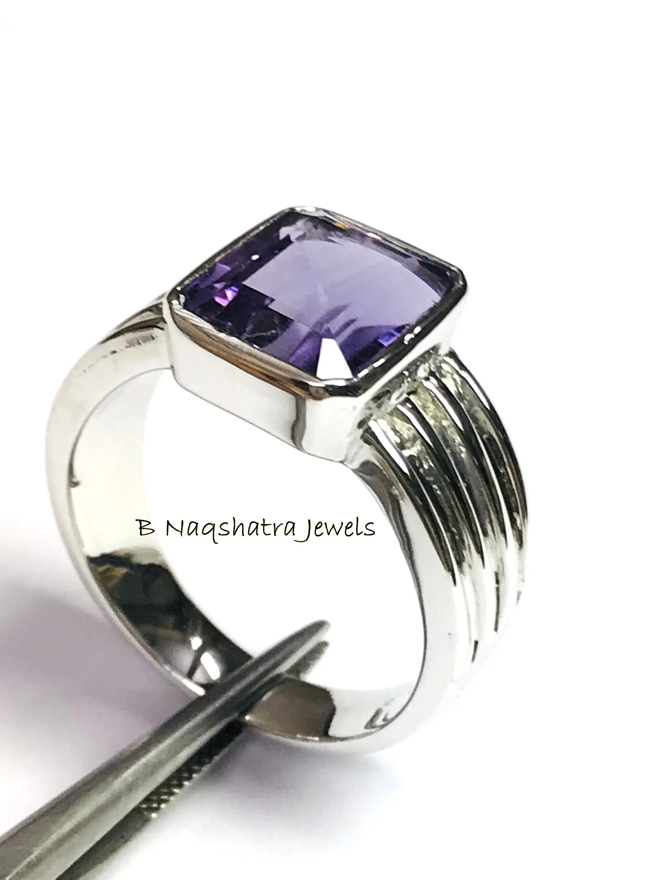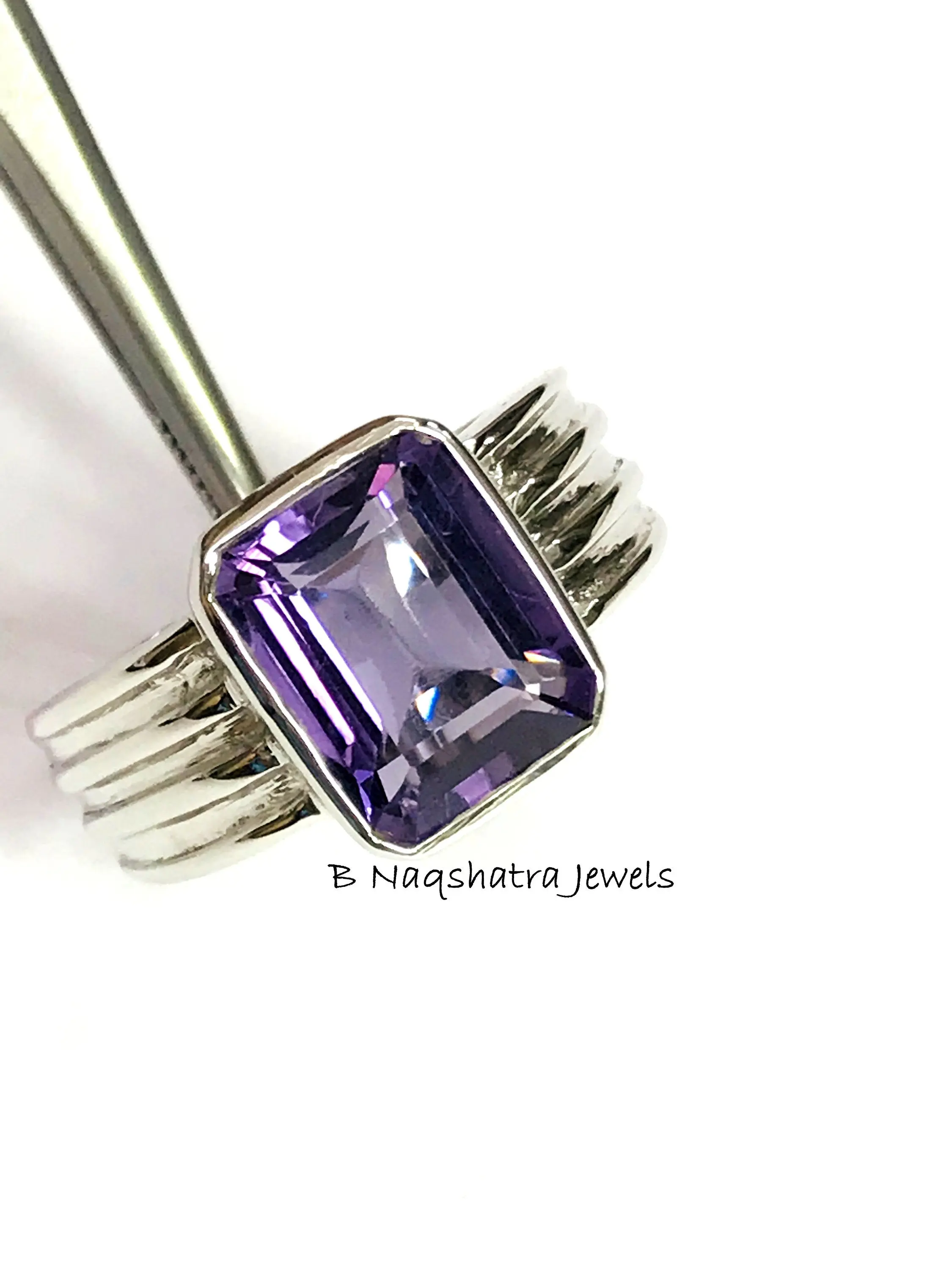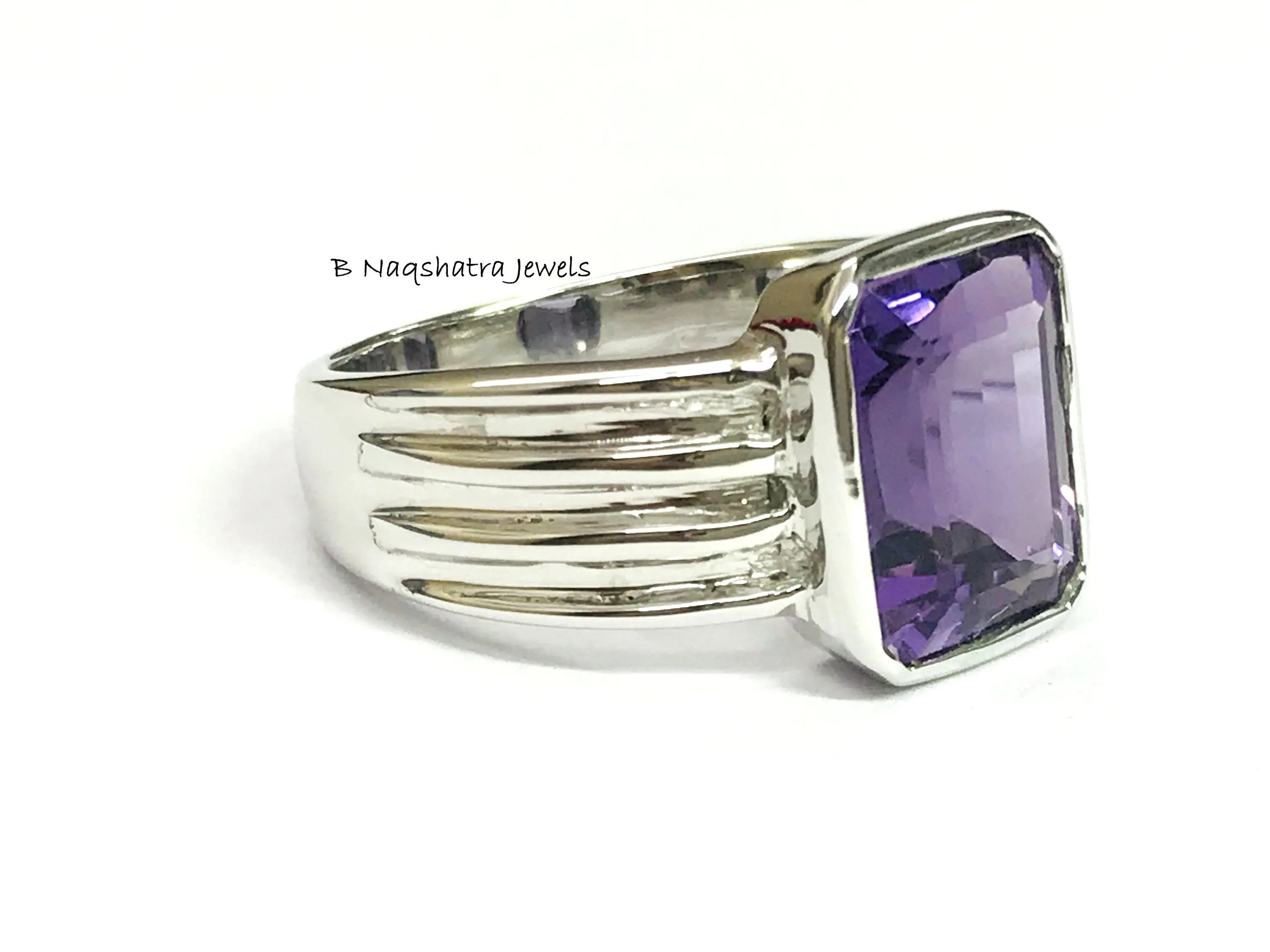 AMETHYST MEN'S Ring -925 Sterling Silver , Octagon Emerald Cut Amethyst,February Birthstone,Fathers Day Gift,Men's Jewelry , Gift For him ,