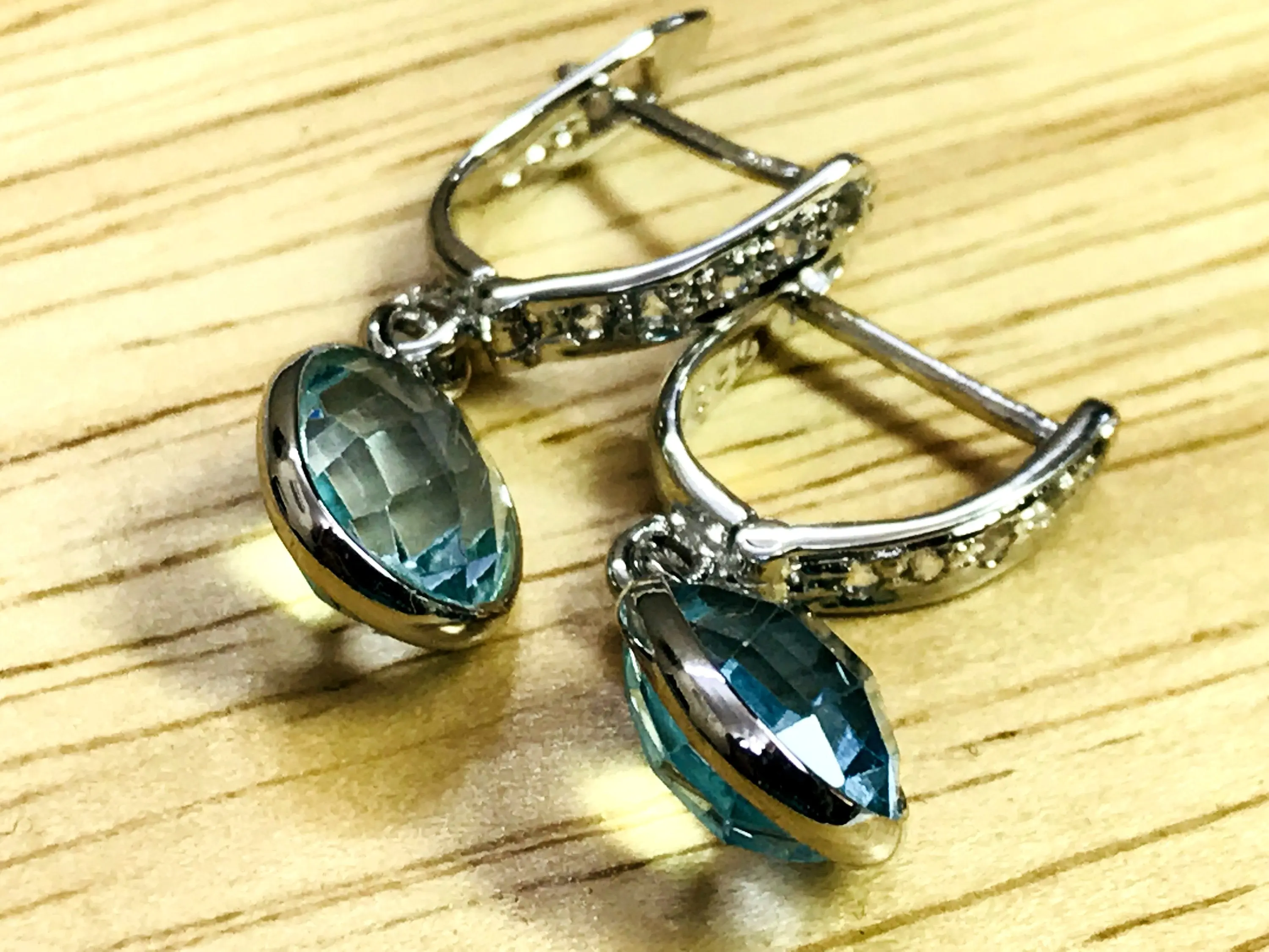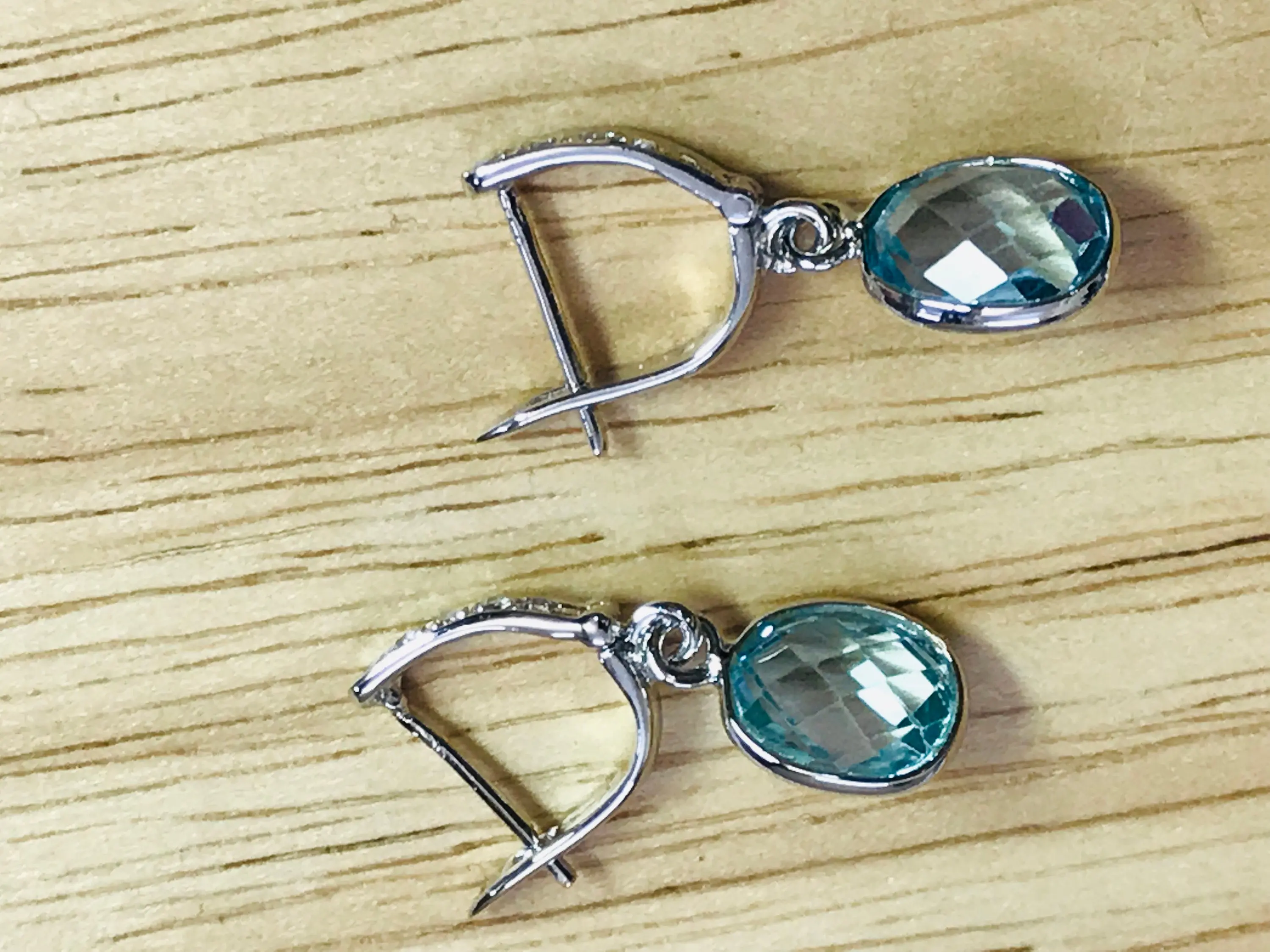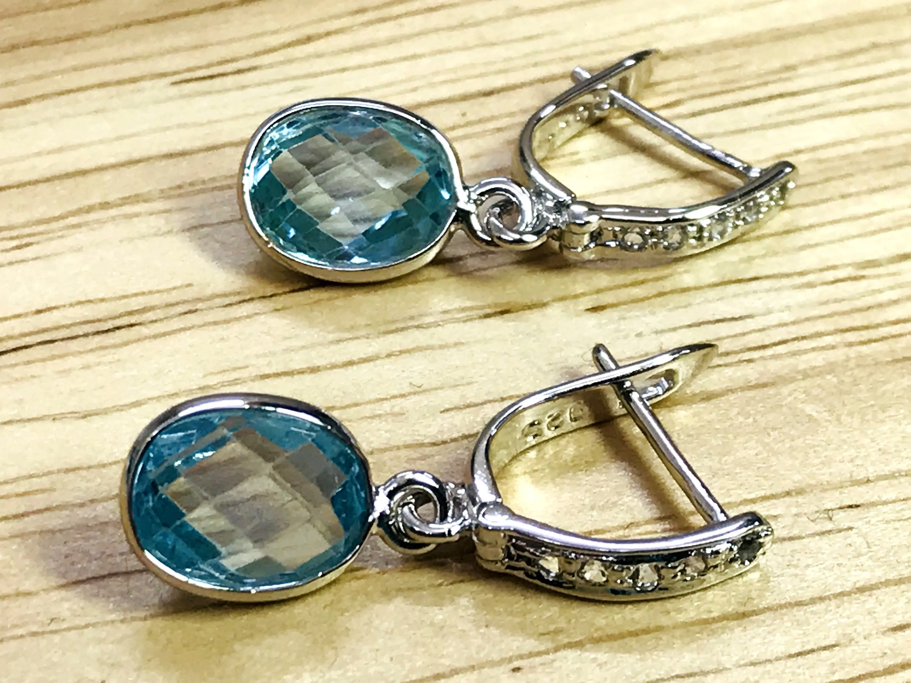 BLUE TOPAZ DANGLE Earrings,Briollete Cut,Cushion shape,Drop Earrings,Russian Lock,December birthstone,Valentine's Love Gift