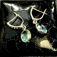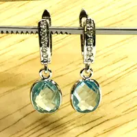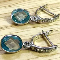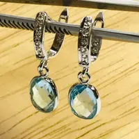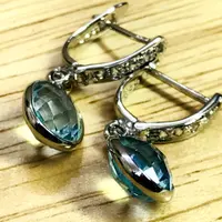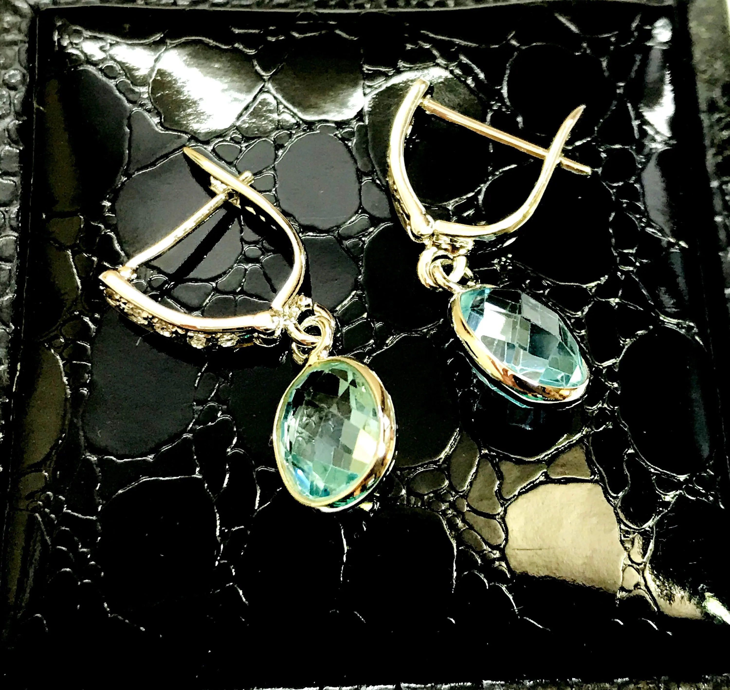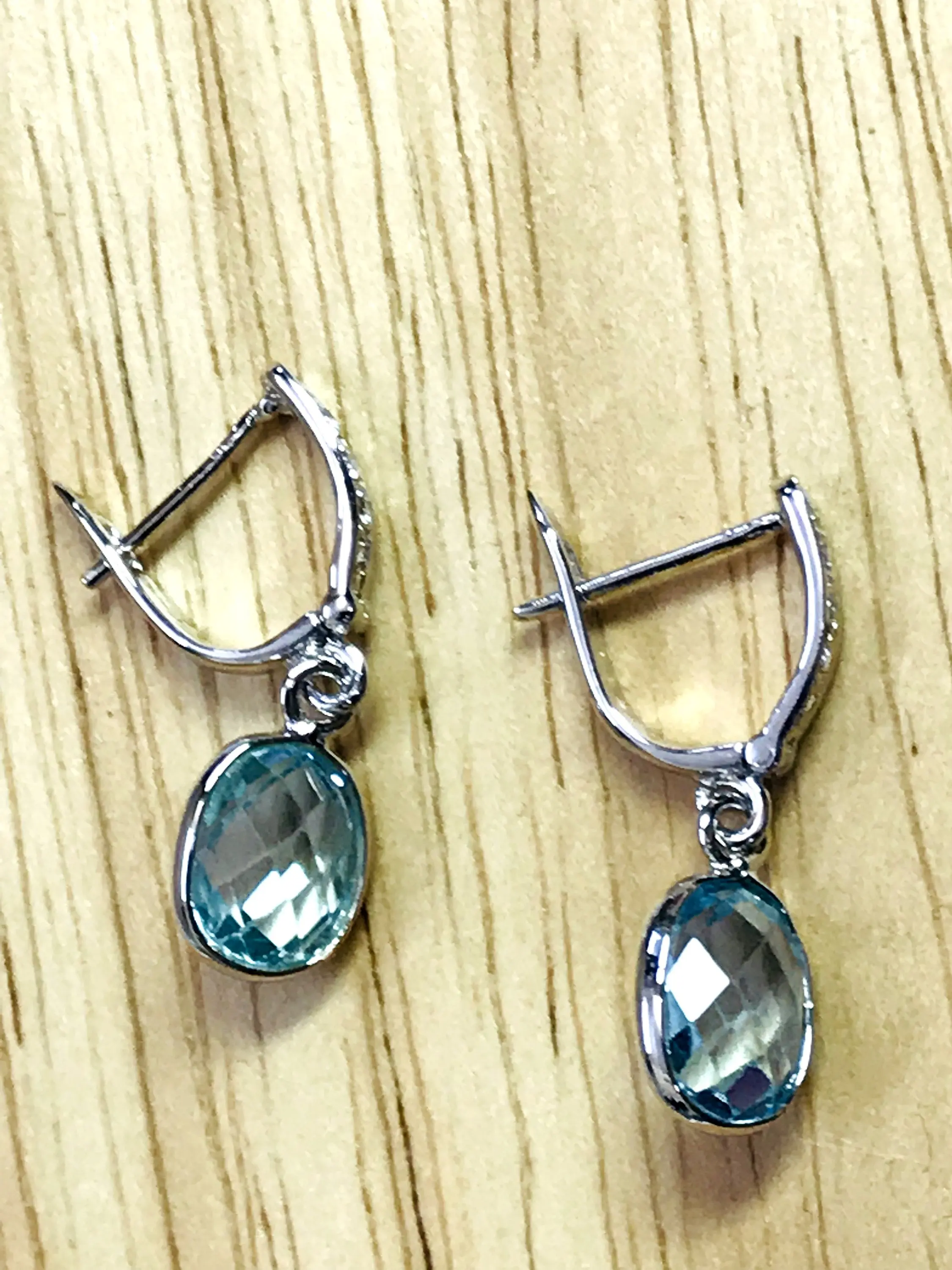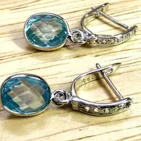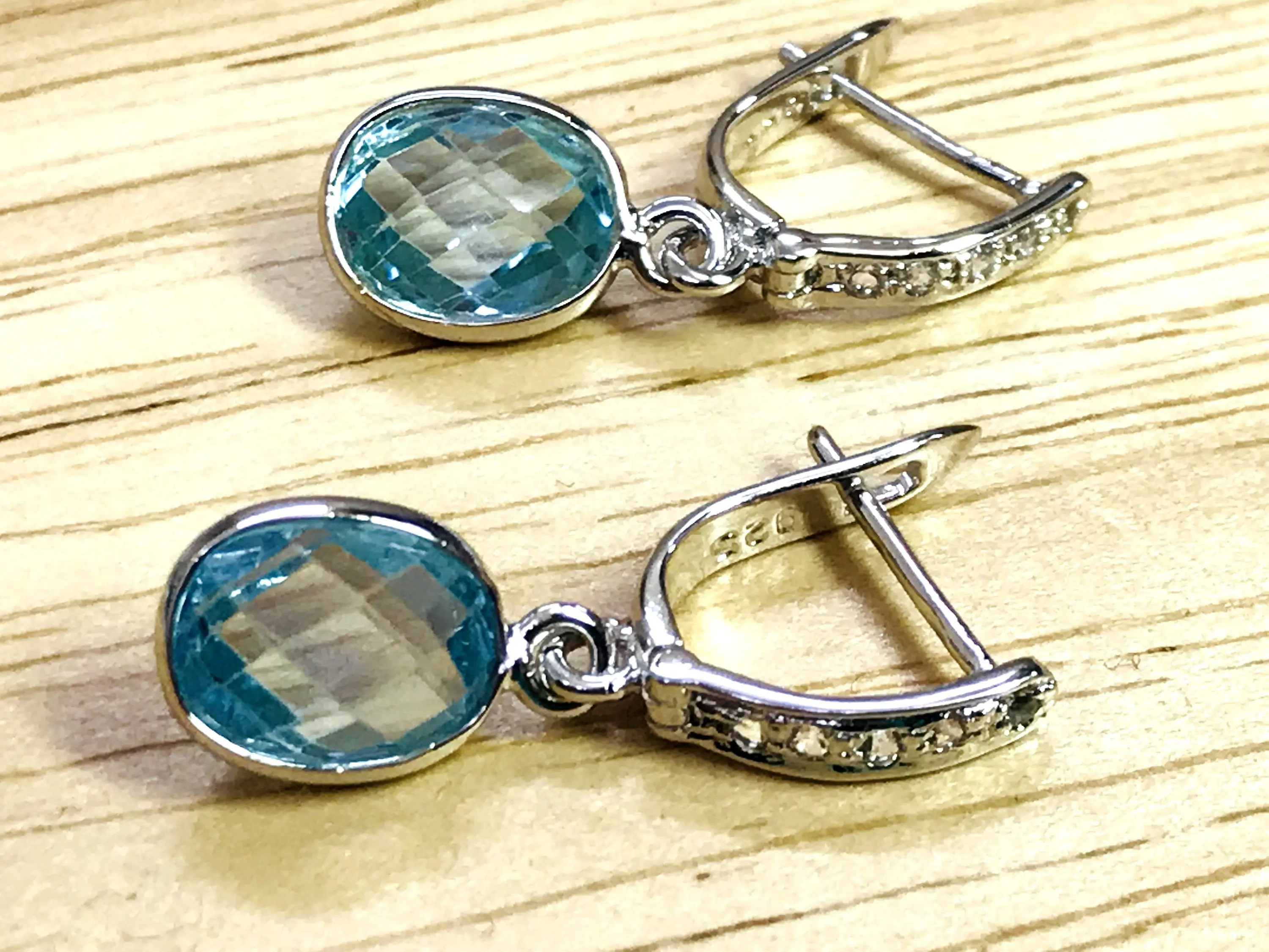 BLUE TOPAZ DANGLE Earrings,Briollete Cut,Cushion shape,Drop Earrings,Russian Lock,December birthstone,Valentine's Love Gift