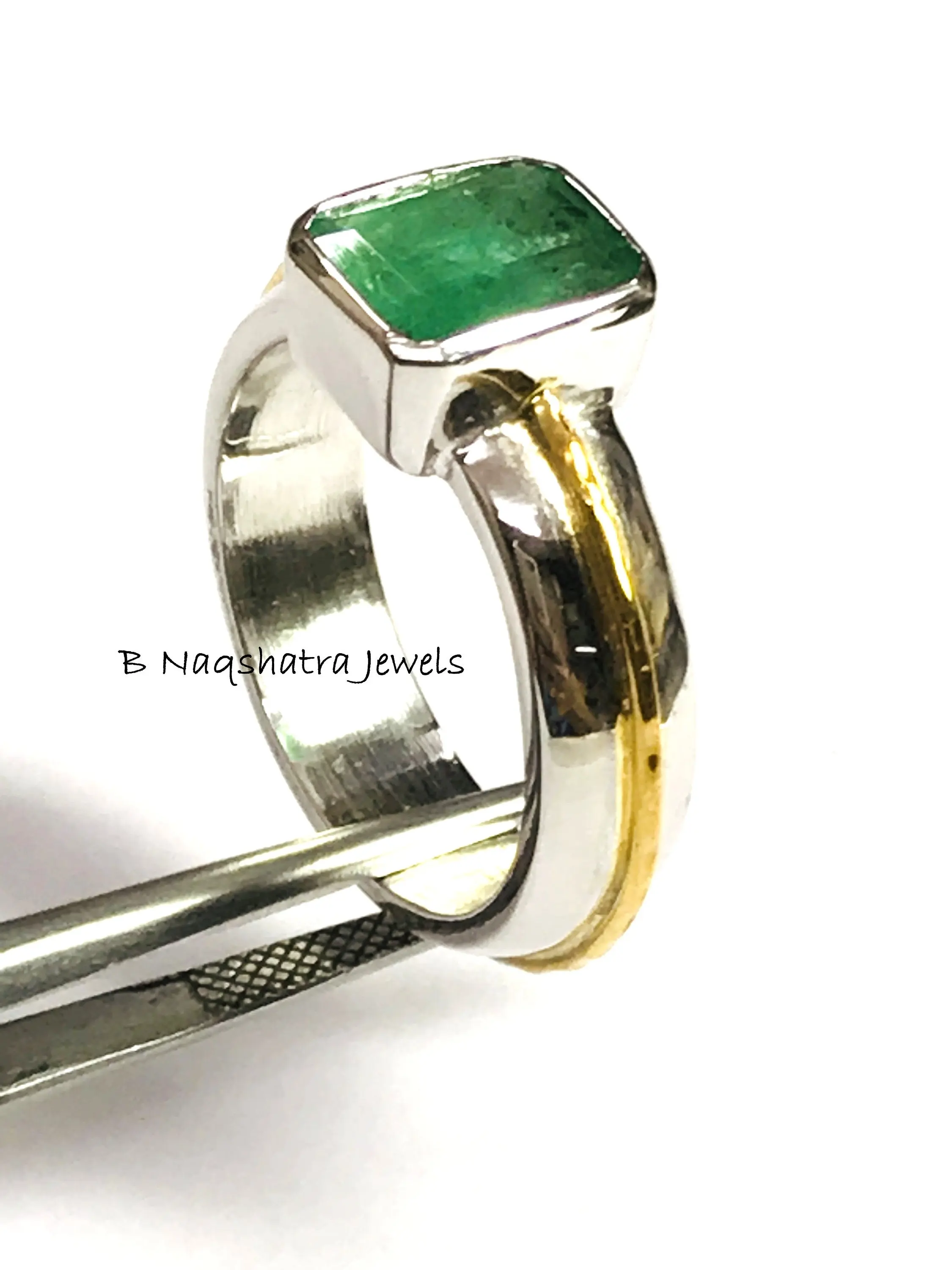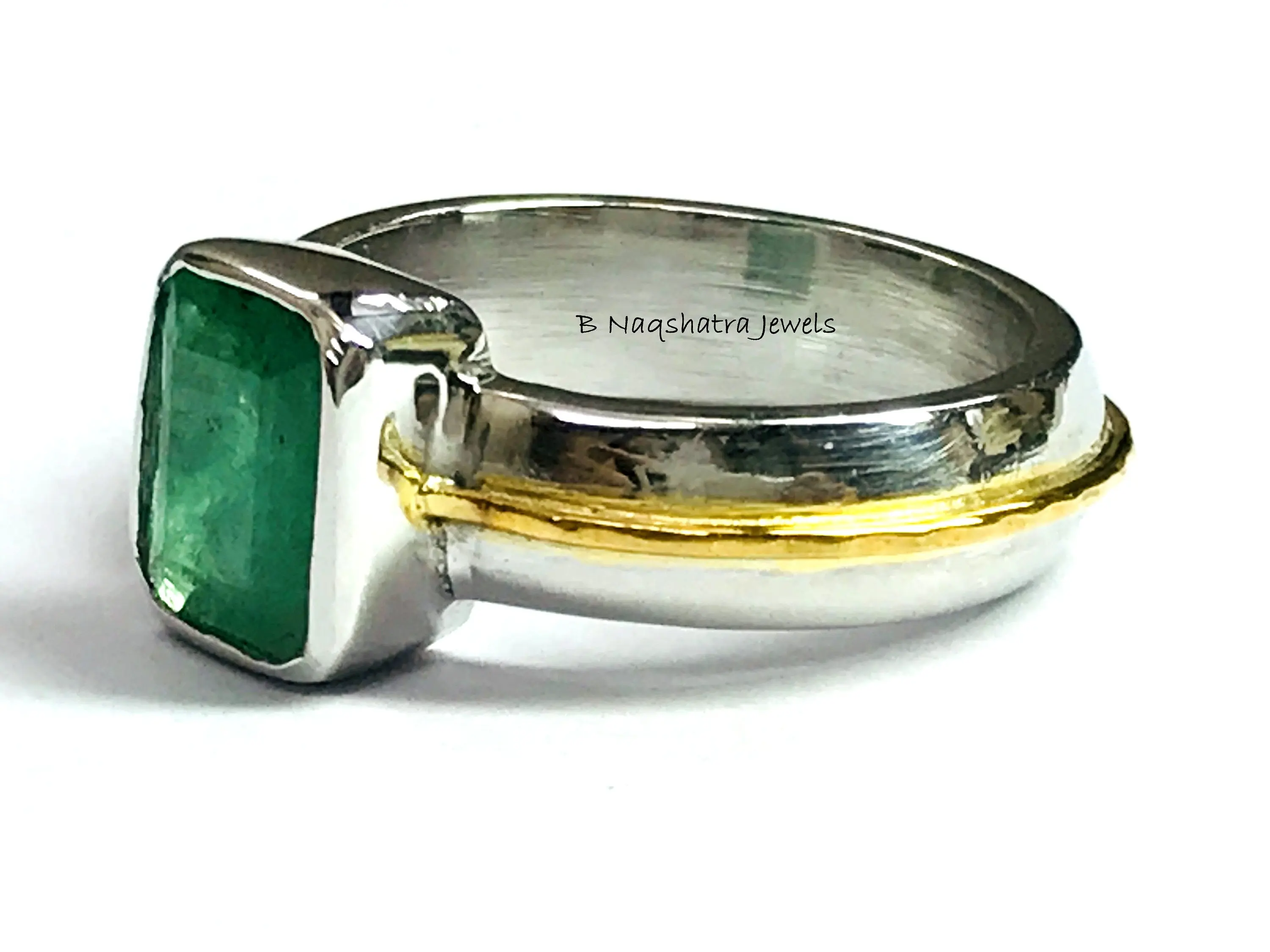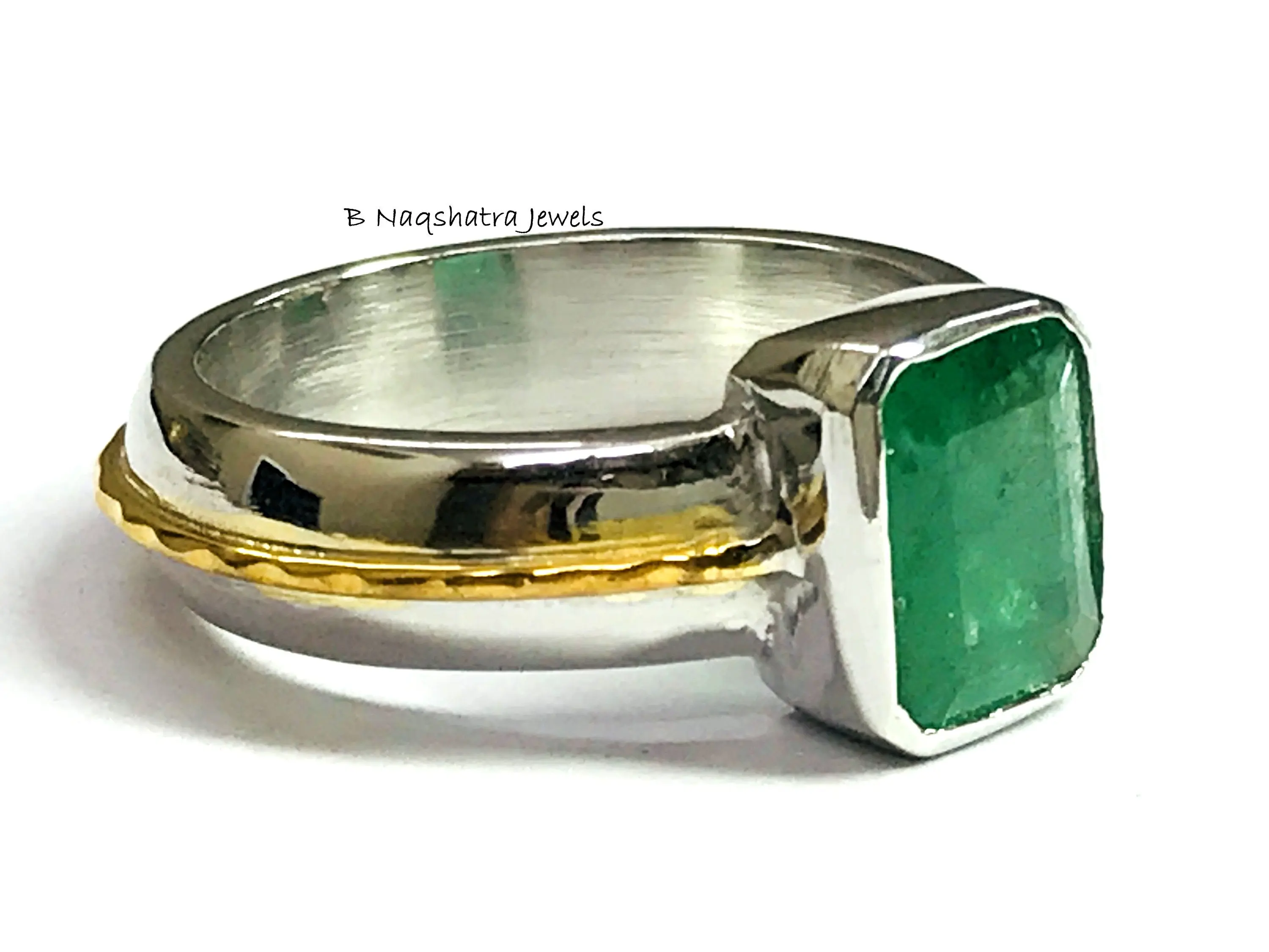 This is a beautifully designed Men's fantasy ring with Natural Genuine Emerald Gemstone in 925 sterling silver