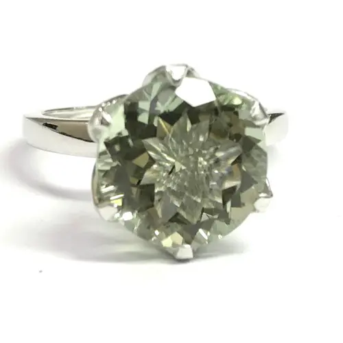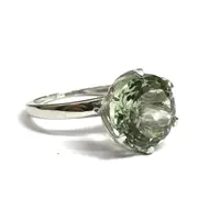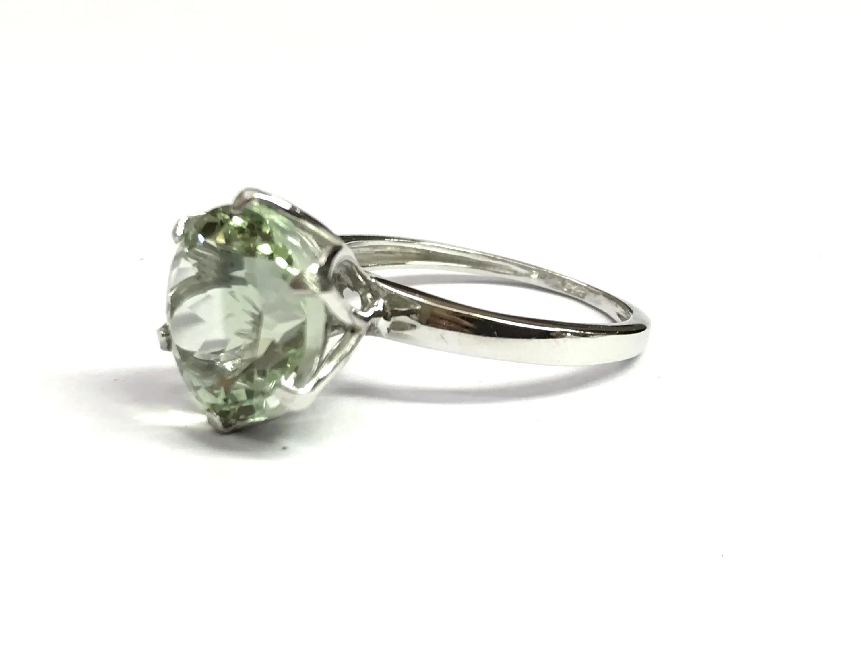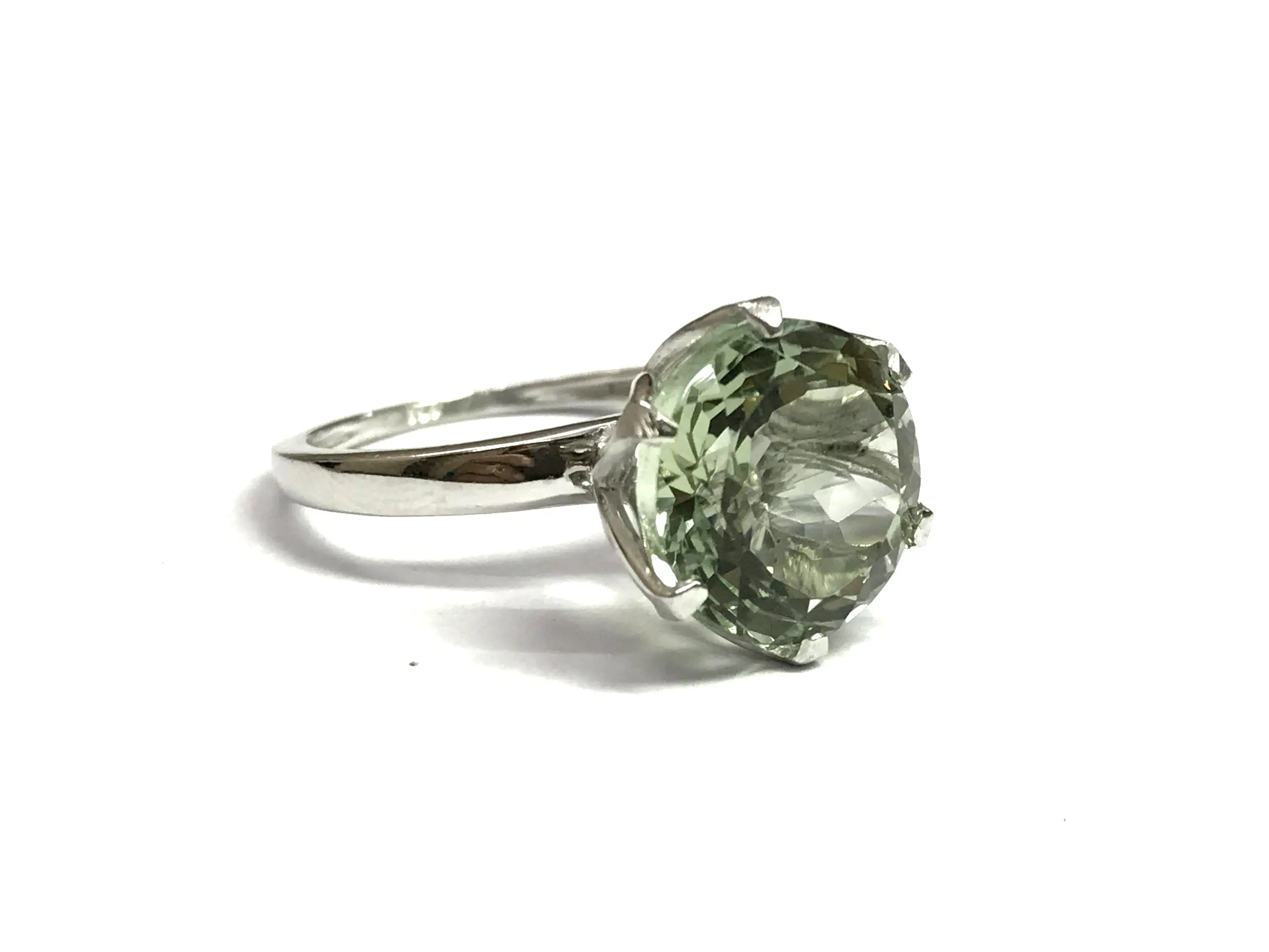 GREEN AMETHYST ROUND Sterling Silver Ring ,Prasiolite ,Green Quartz ,February Birthstone ,Women Ring ,Gift for her..