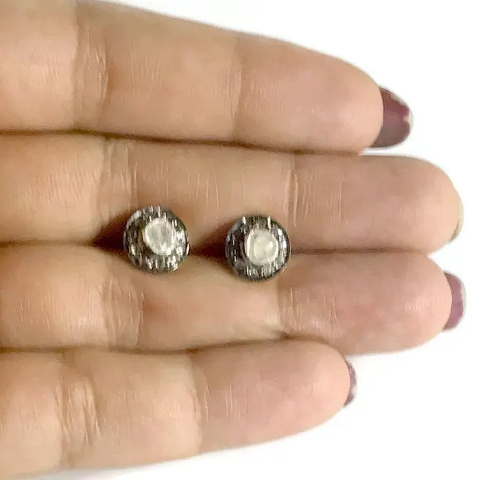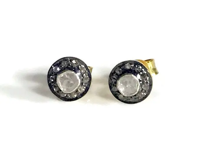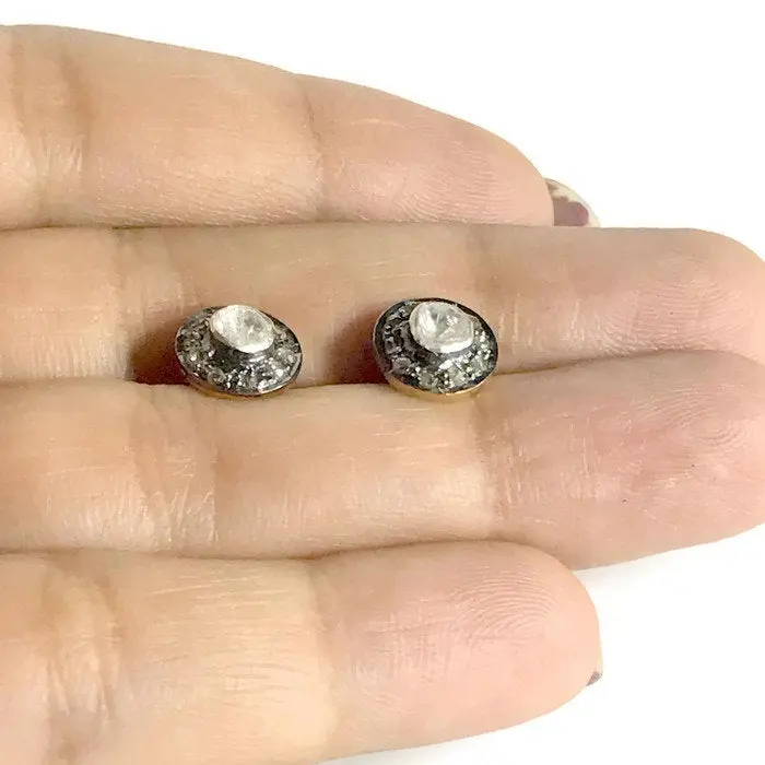finest handmade antique art,natural handmade diamond polkis studs, rose cut diamonds tops, vintage diamonds earrings , handcut diamonds