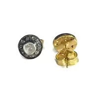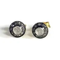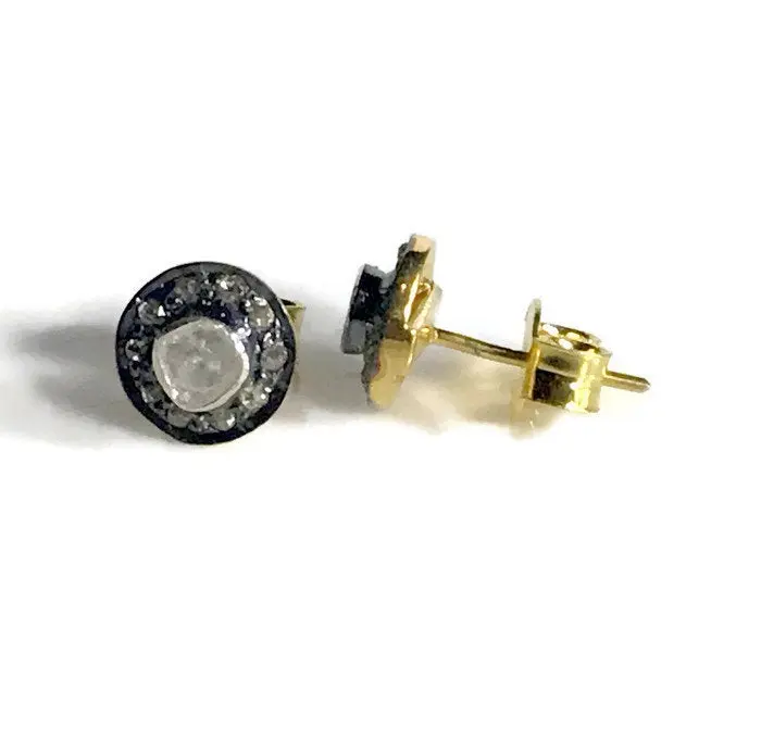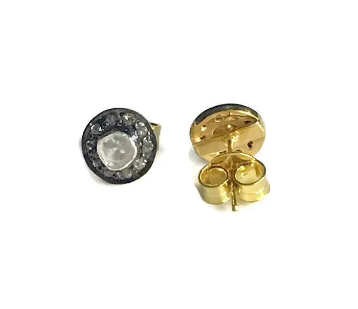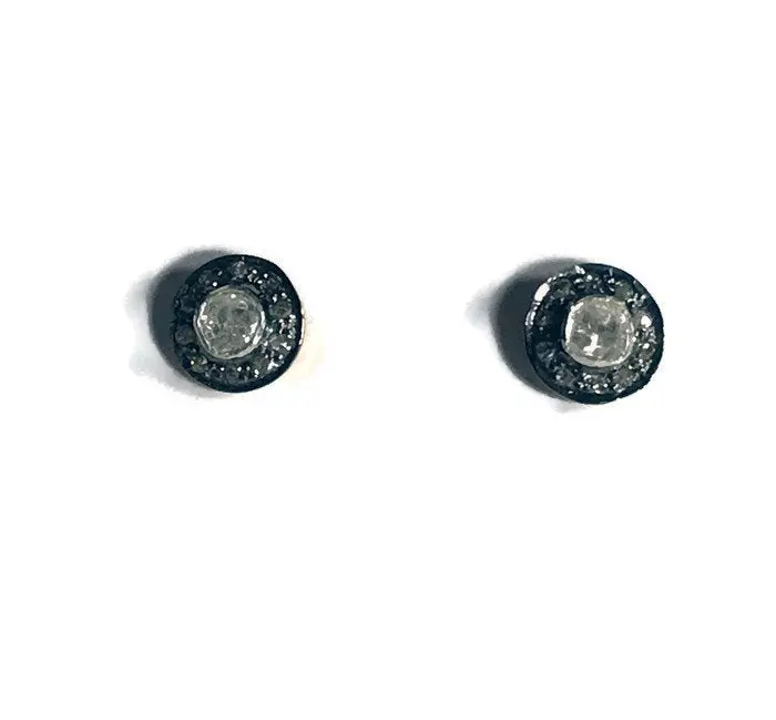 single solitaire hand cut diamond earring studded with 100% natural Rose cut diamonds in bezel and pave set......and black rhodium and gold plated plated......................