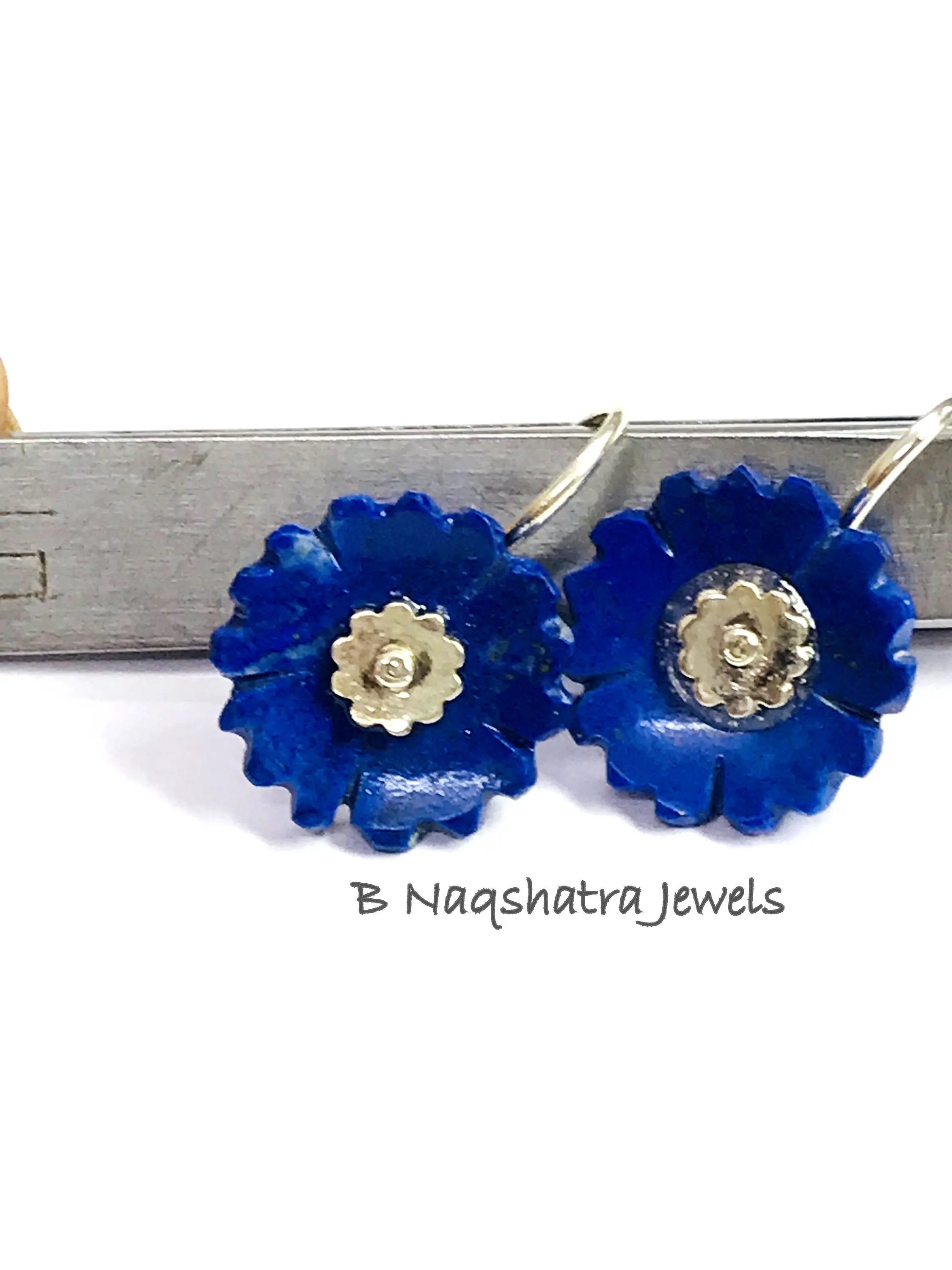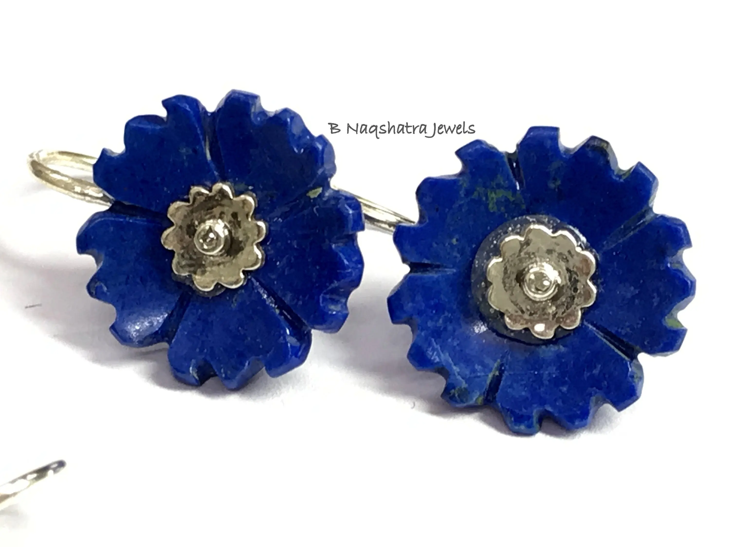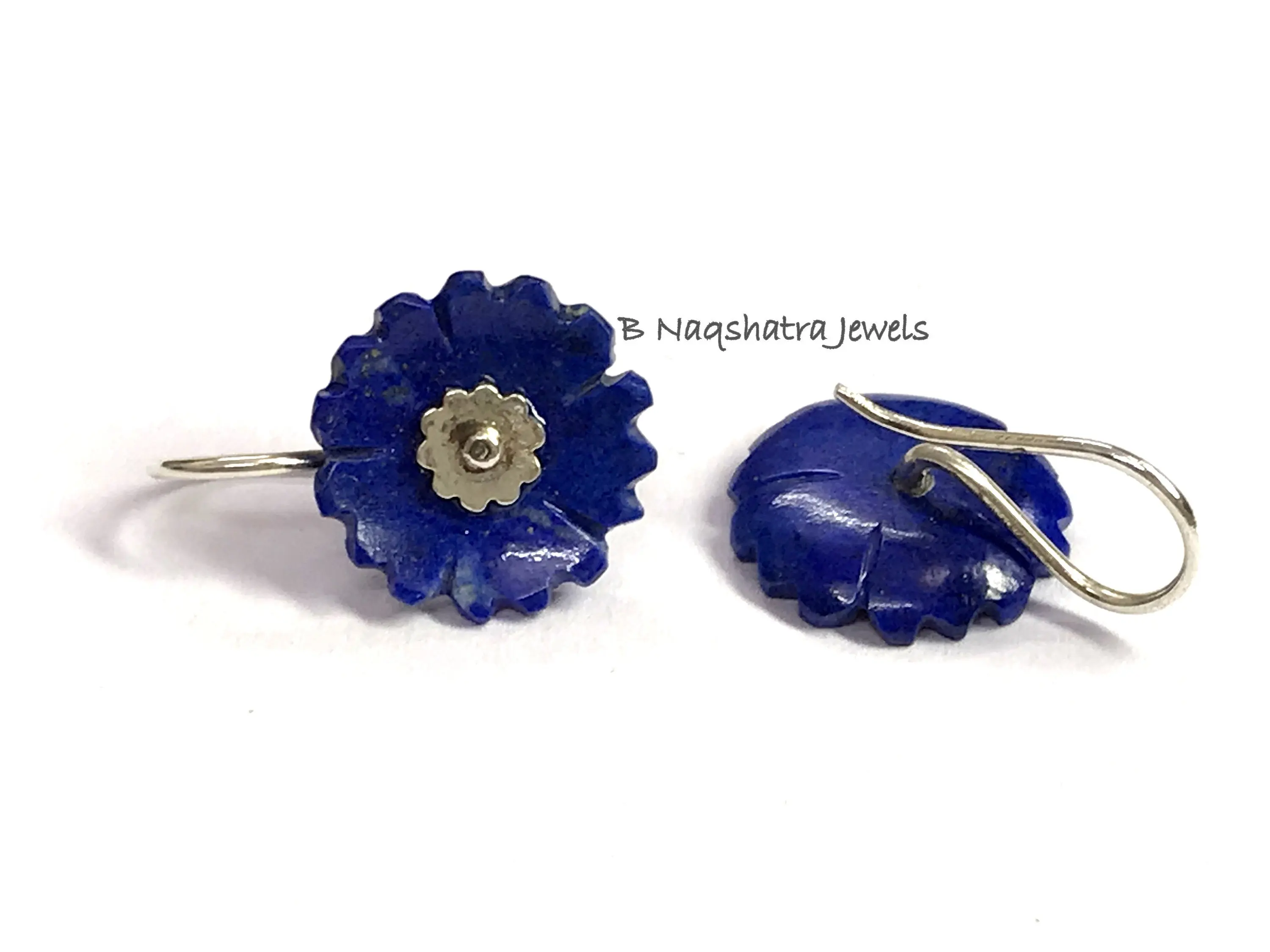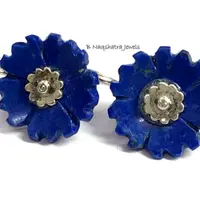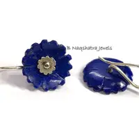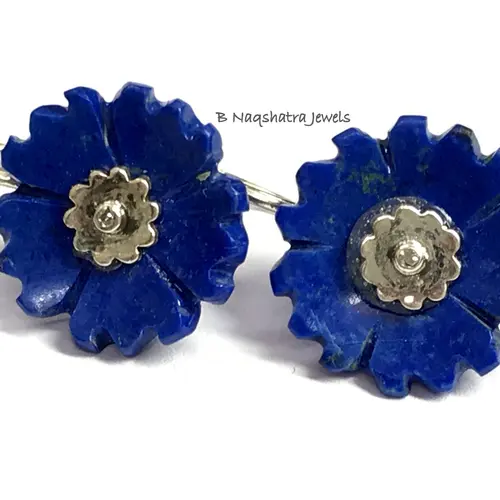 LAPIS LAZULI CARVED Flower Earrings , Sterling Silver ring ,Yeats, Azurite , Pyrite , Aoki lapis ,Blue Color Earring