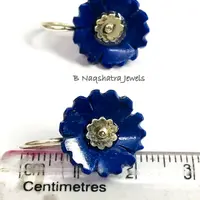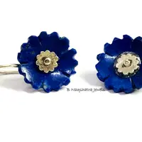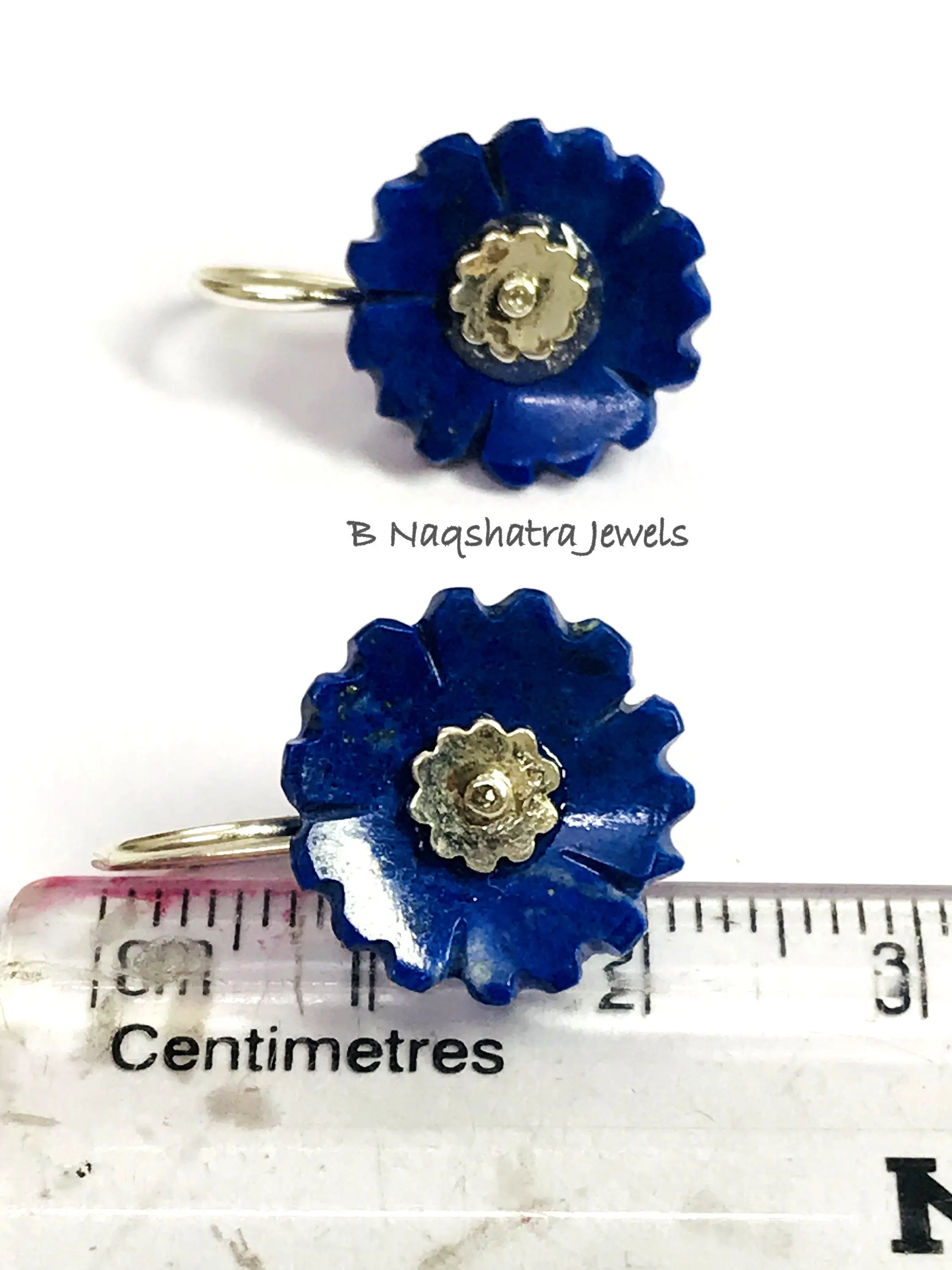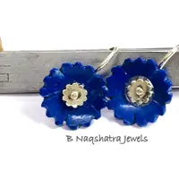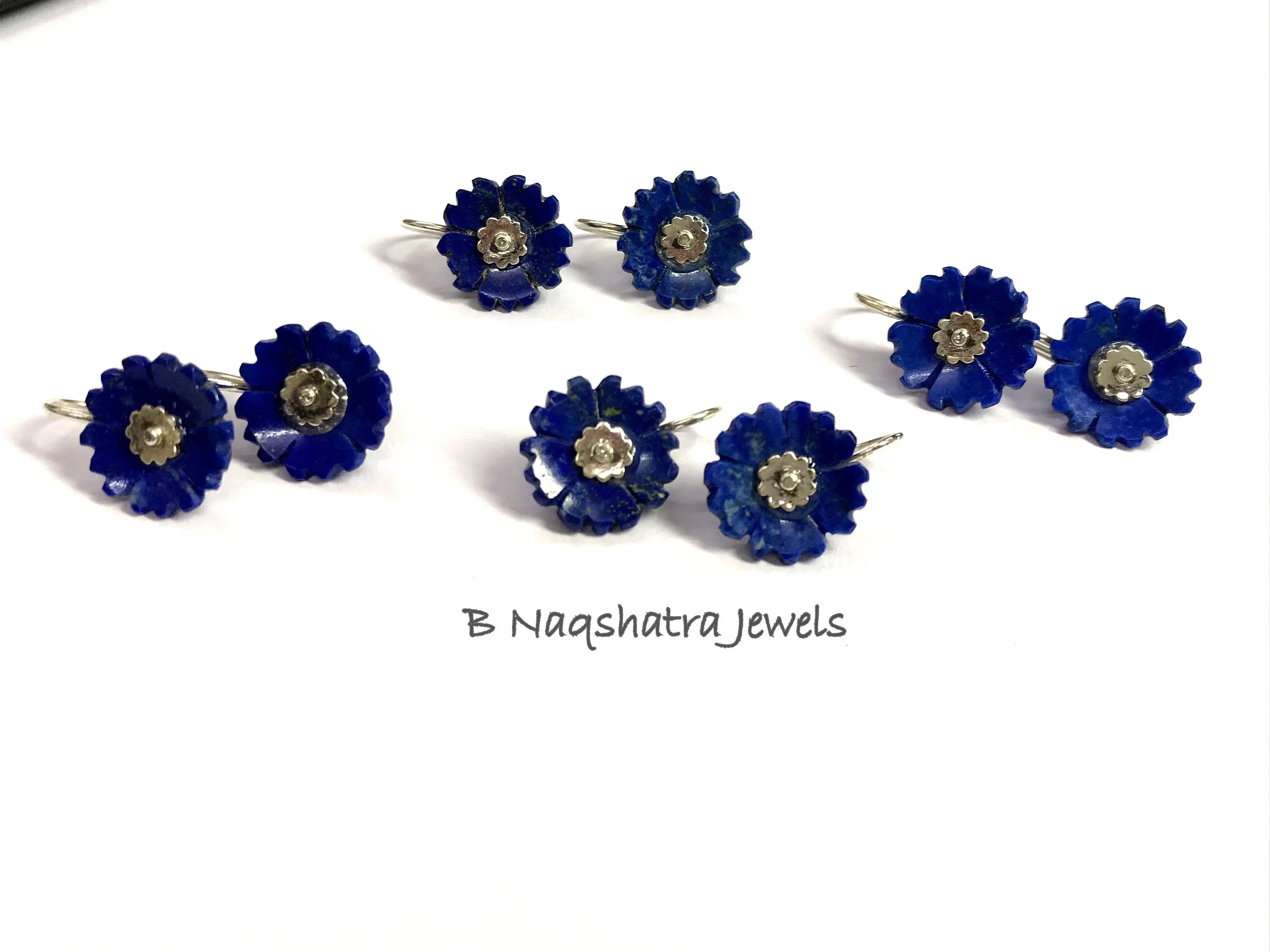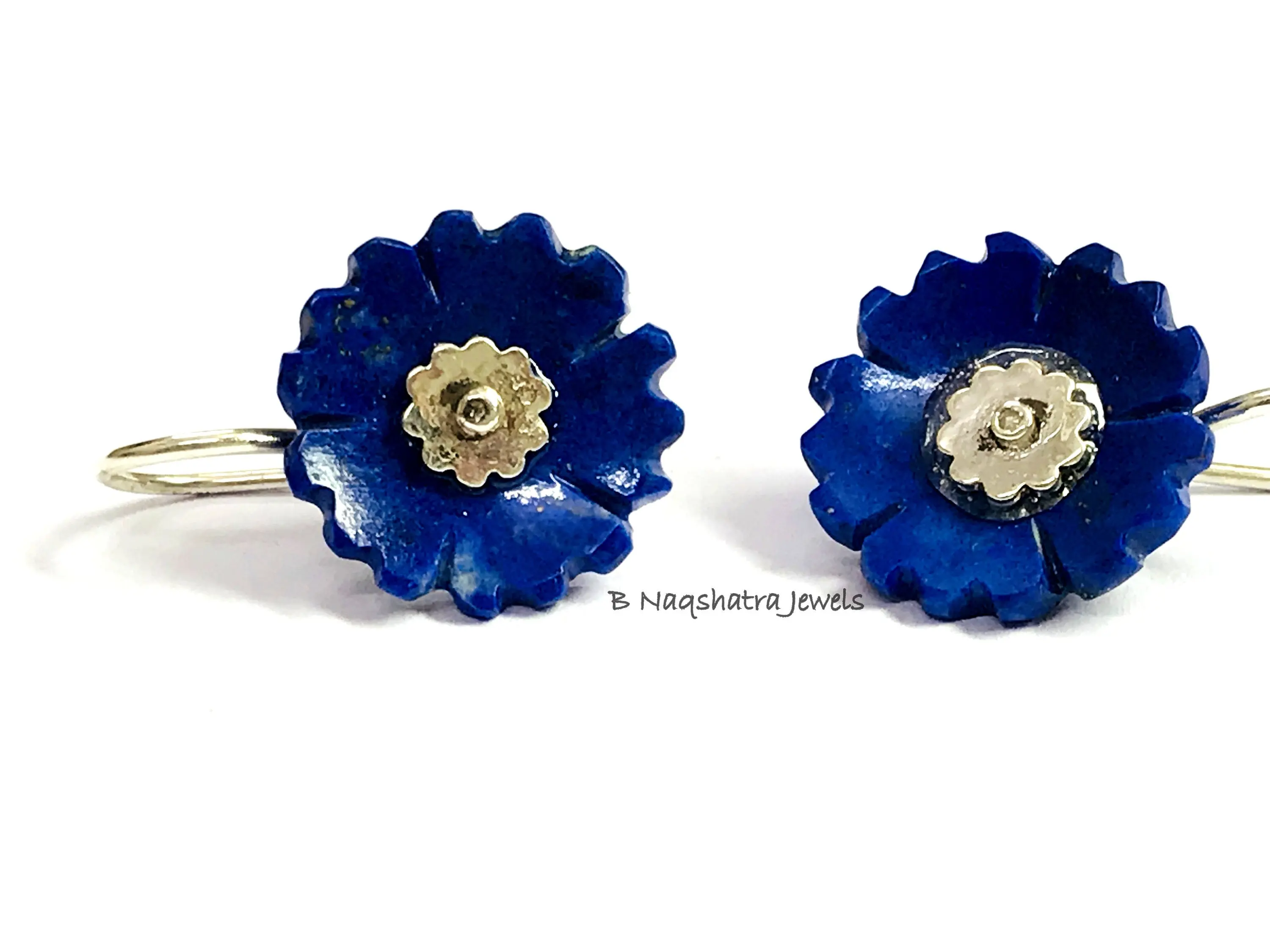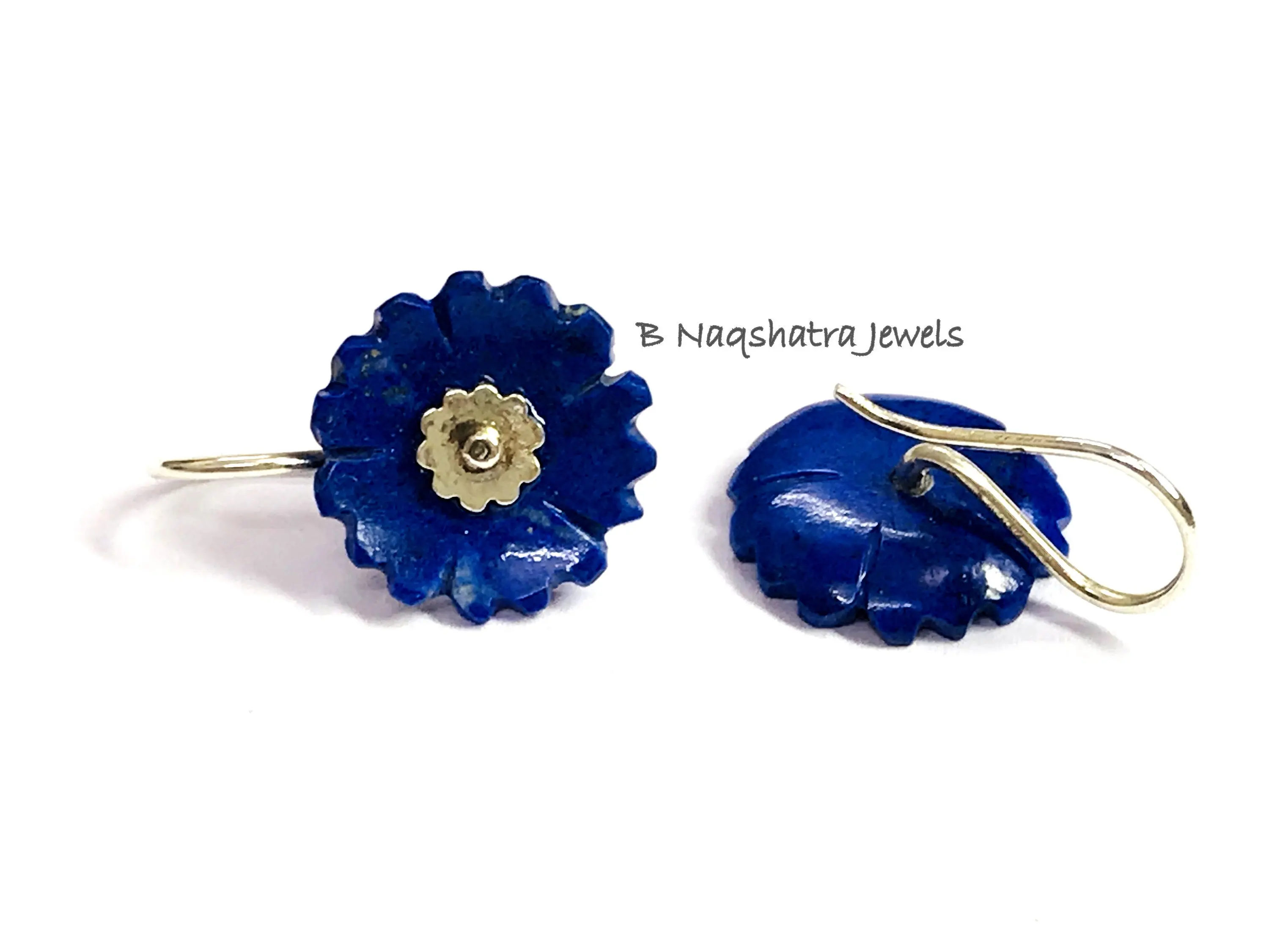 LAPIS LAZULI CARVED Flower Earrings , Sterling Silver ring ,Yeats, Azurite , Pyrite , Aoki lapis ,Blue Color Earring