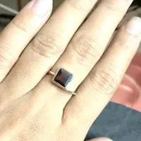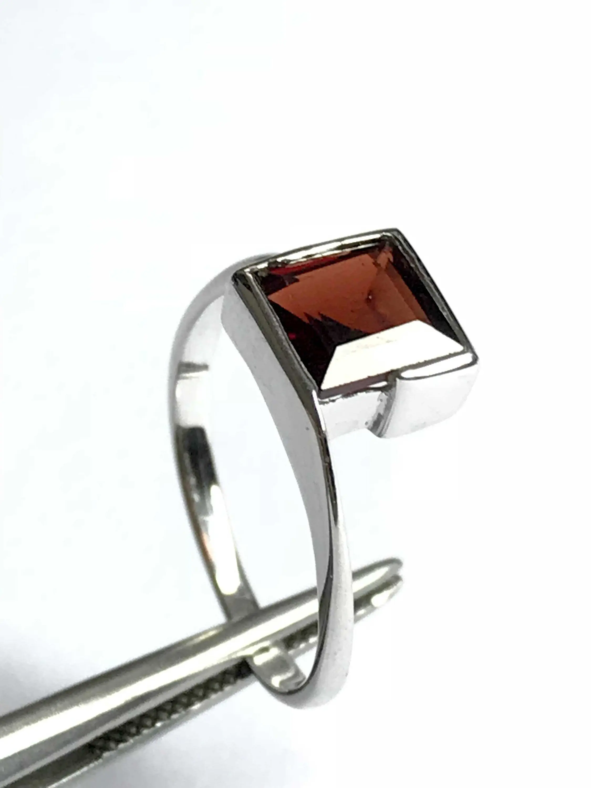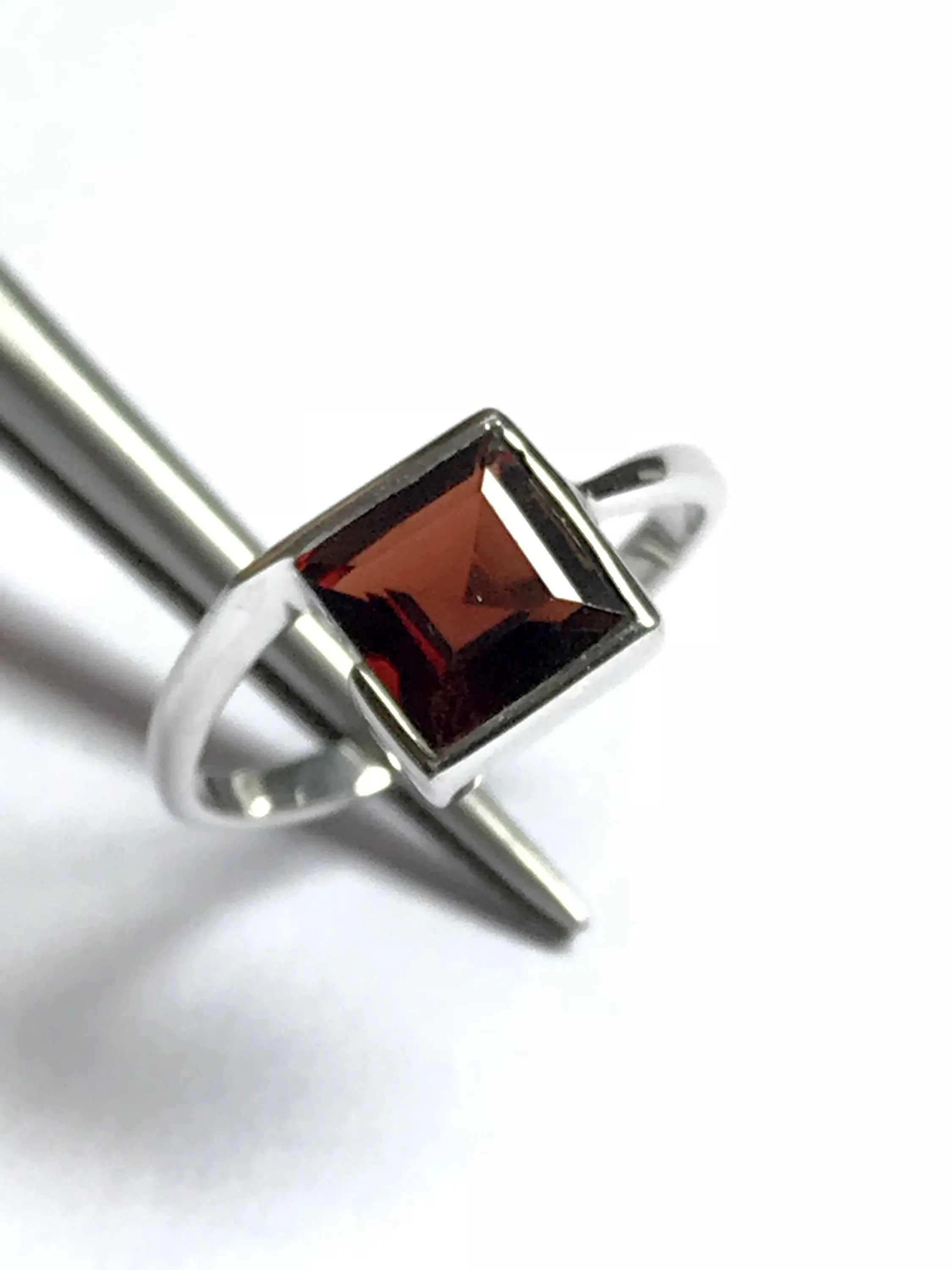 This dainty ring features a very rich, deep brownish red,natural garnet, set in .925 solid sterling silver. Very comfortable to wear and absolutely stunning in natural light.